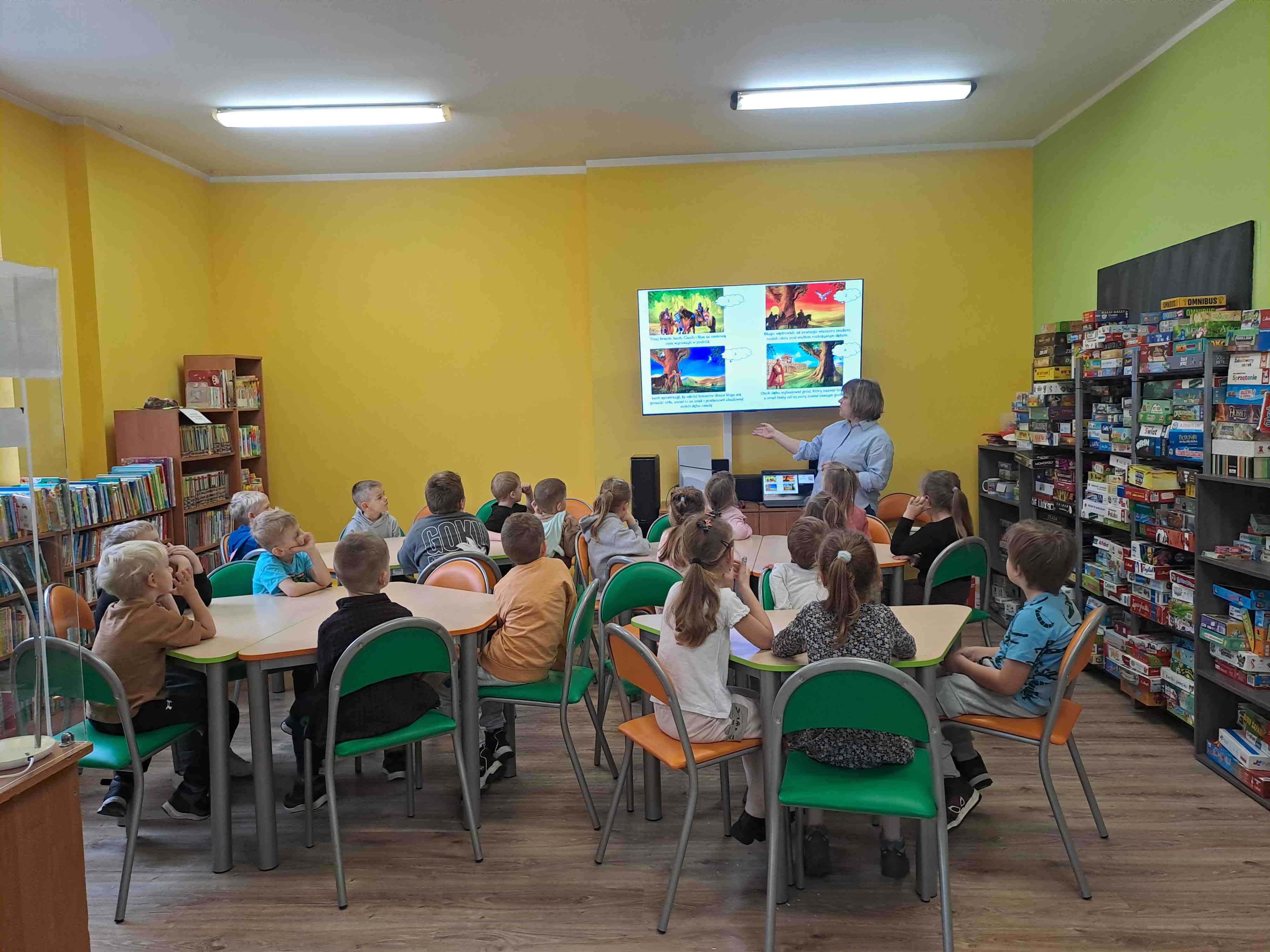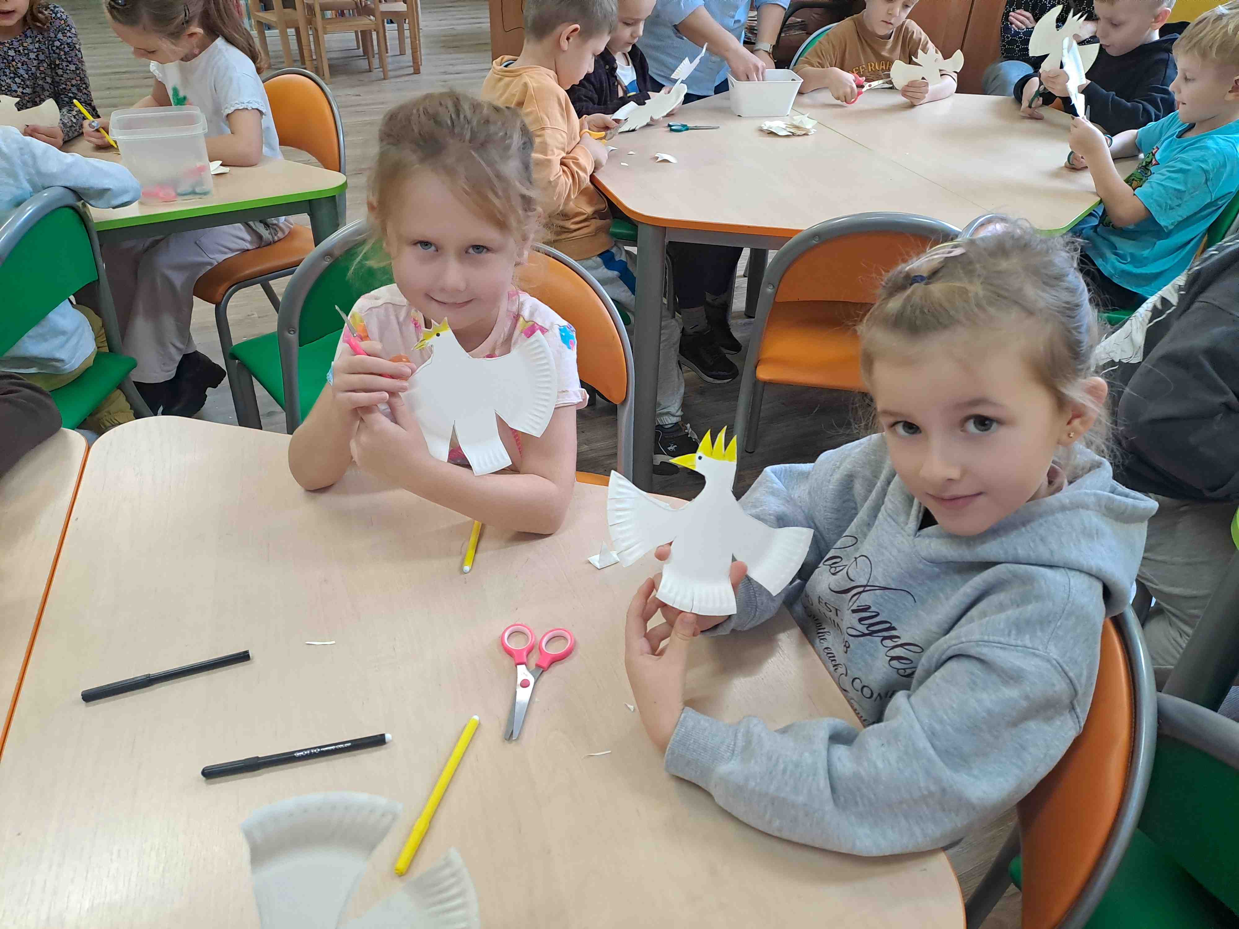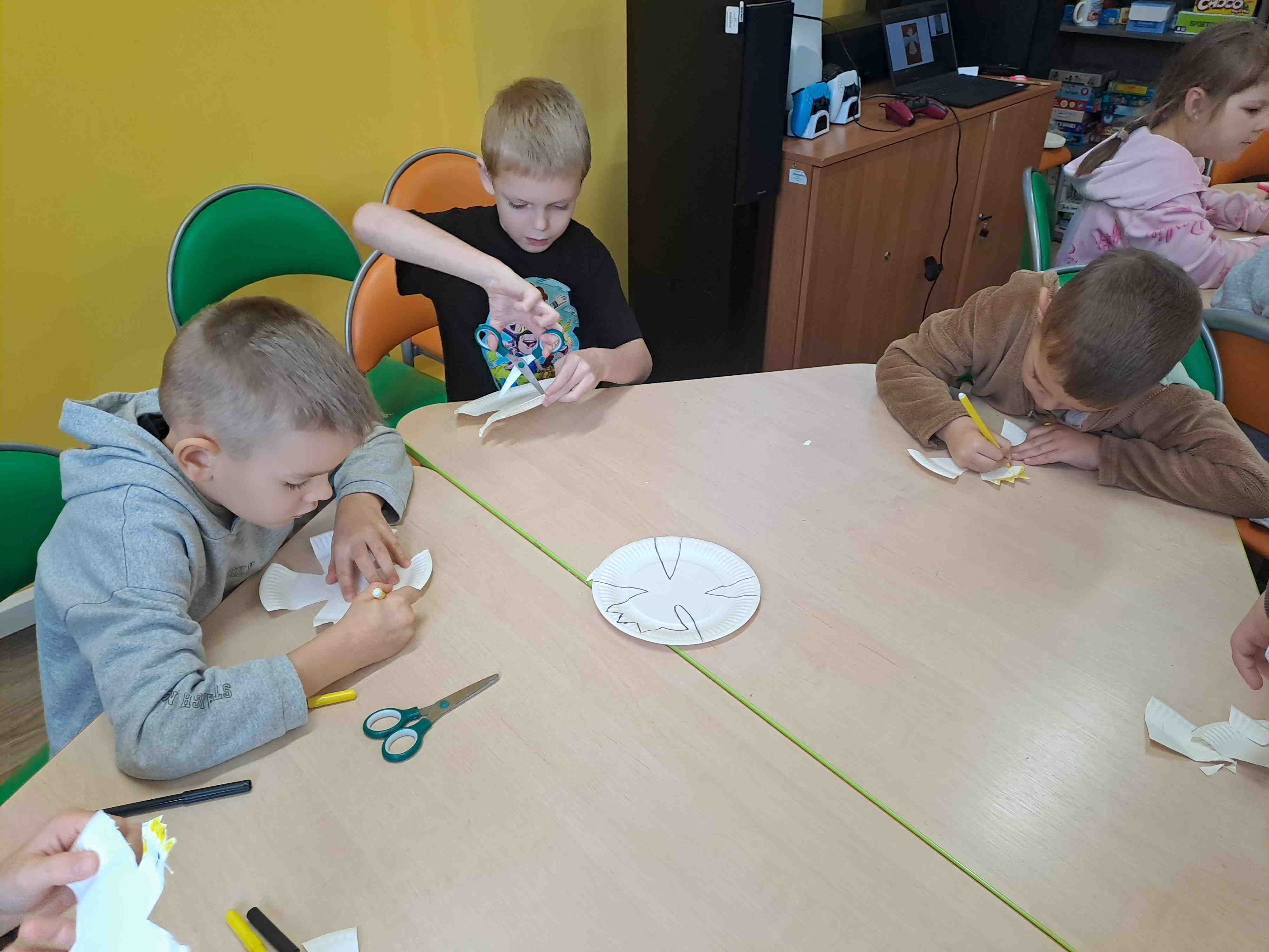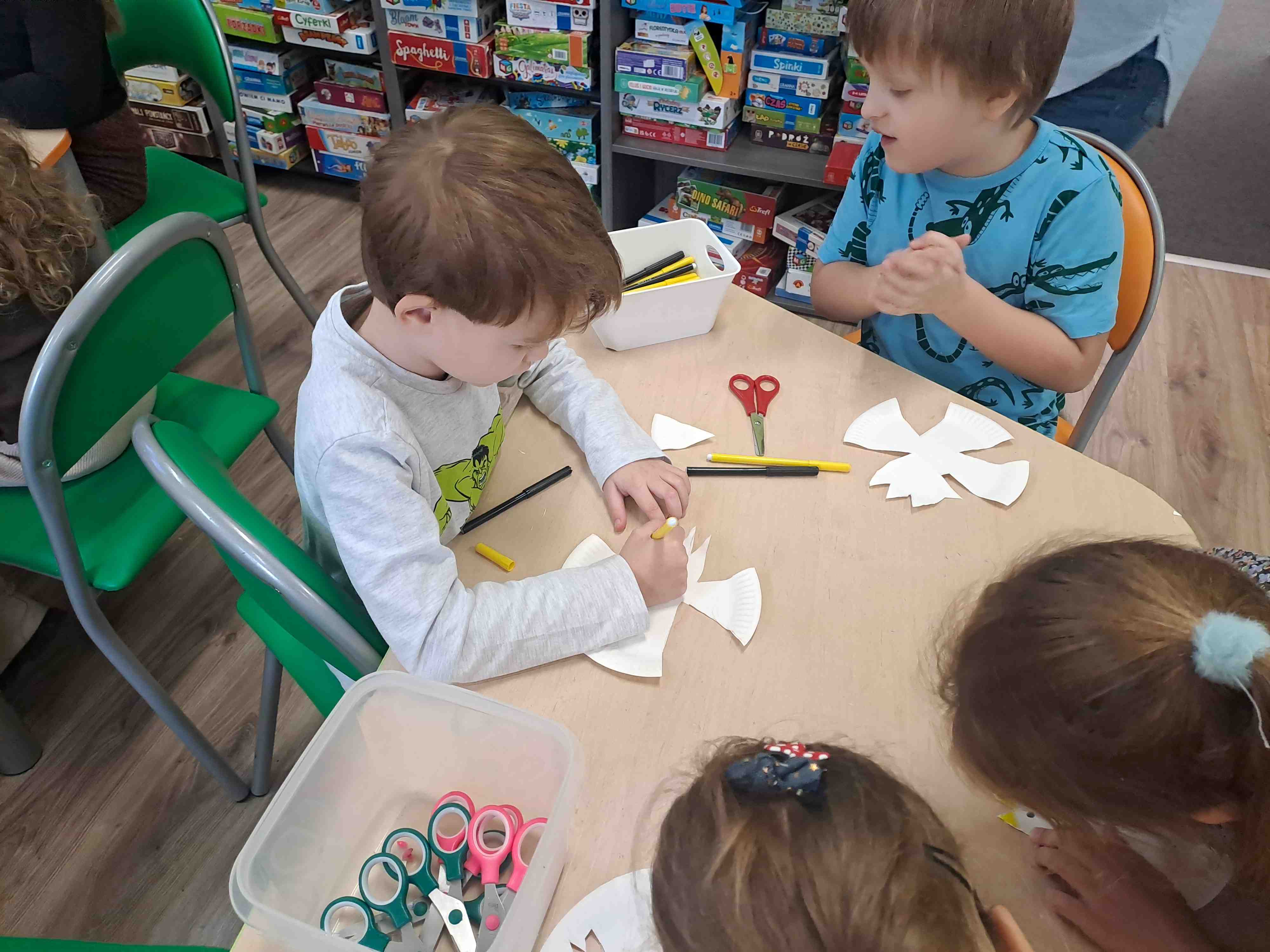 Podczas dzisiejszych zajęć w Bibliotece Miejskiej Motylki omawiały tematykę polskich symboli narodowych. Wspólnie z panią Moniką opowiedziały legendę o założeniu państwa polskiego - "O Lechu, Czechu i Rusie". Recytowały wiersz W. Bełzy "Katechizm polskiego dziecka". Miały okazję zaobserwować, jak zmieniał się wygląd polskiego godła na przestrzeni wieków. Zwieńczeniem zajęć było wykonanie pracy plastycznej z wykorzystaniem papierowych talerzyków i czerwonych kartek, które dzieci przerobiły na wizerunek białego orła na czerwonym tle czyli współczesnego godła Polski.