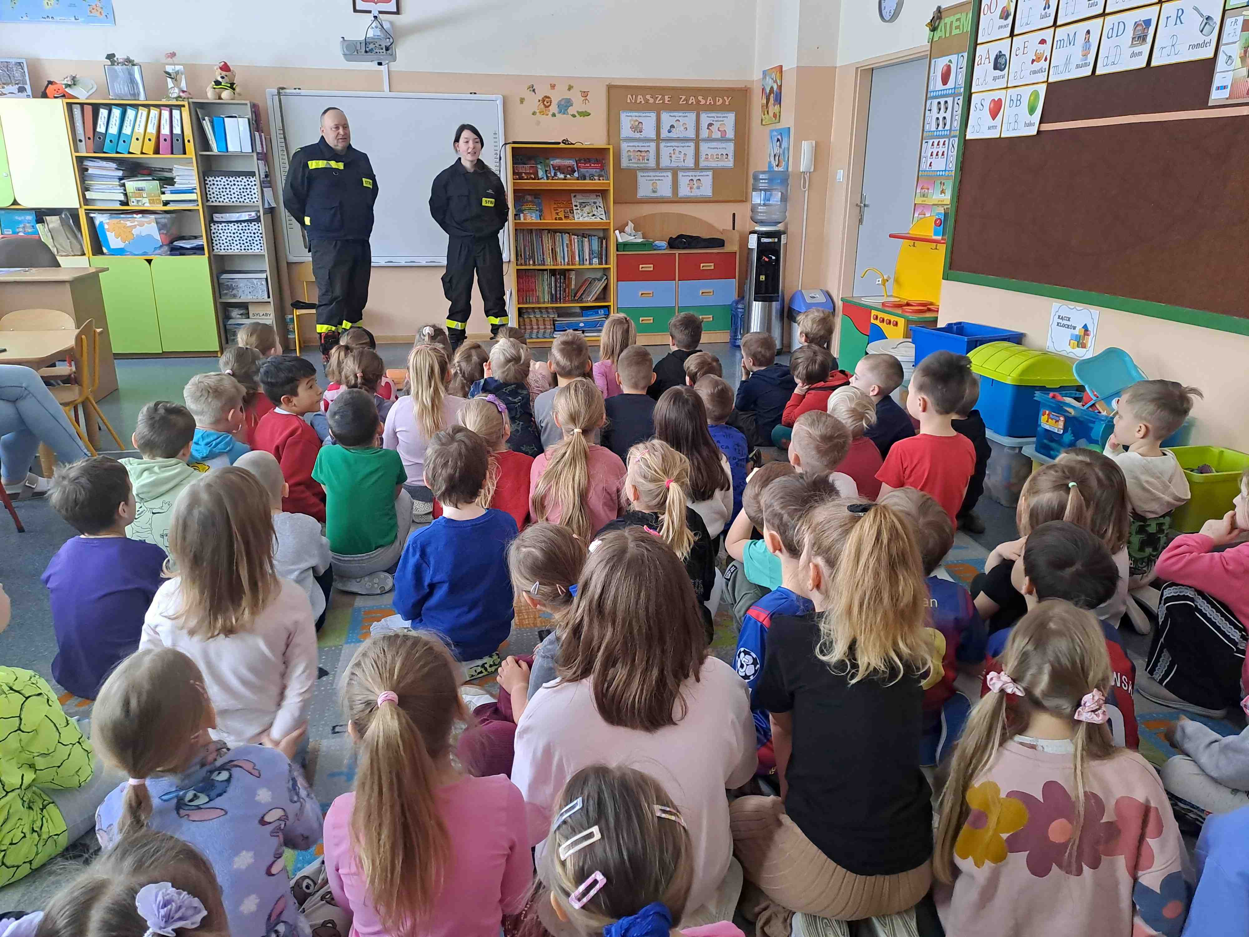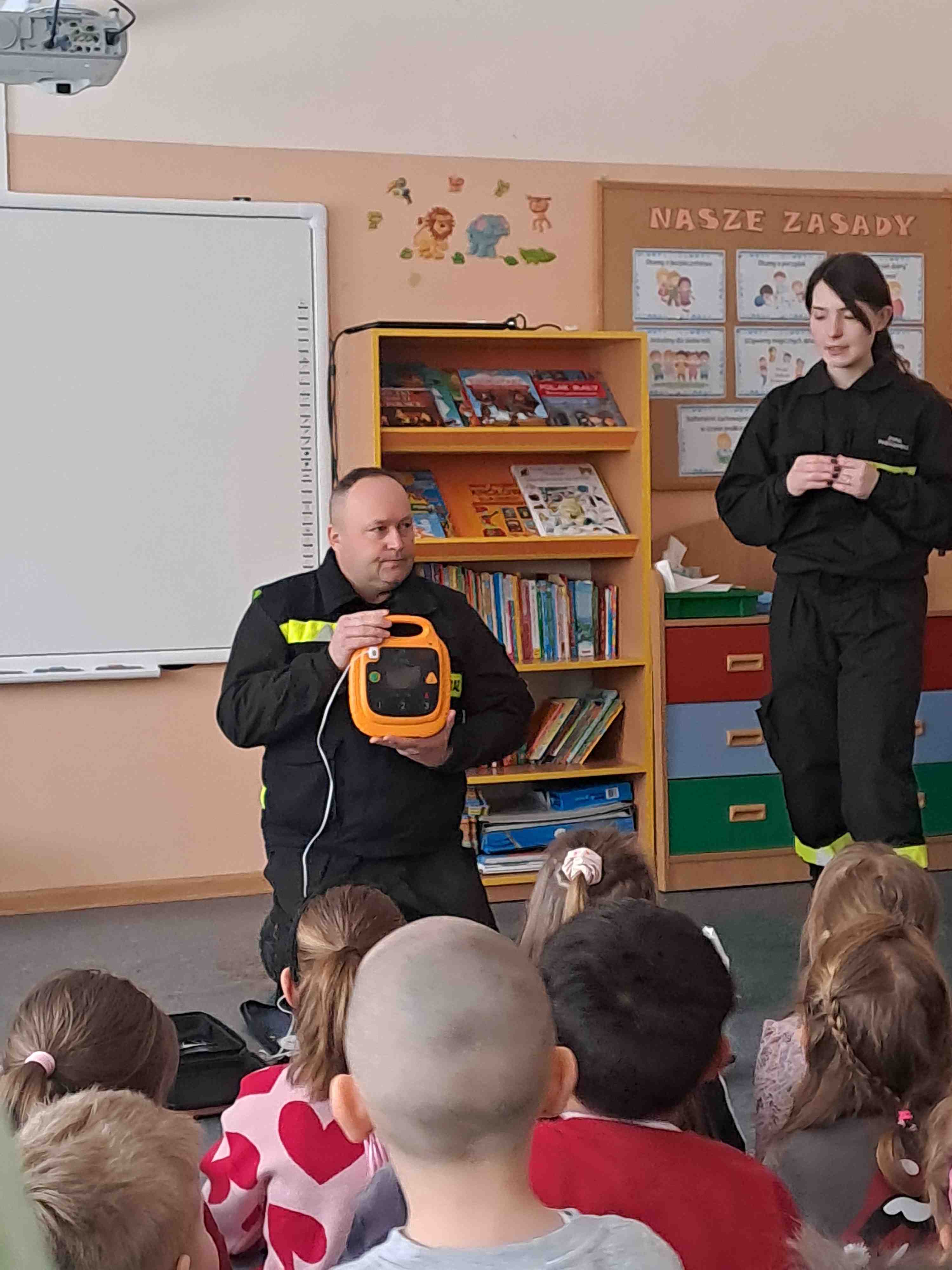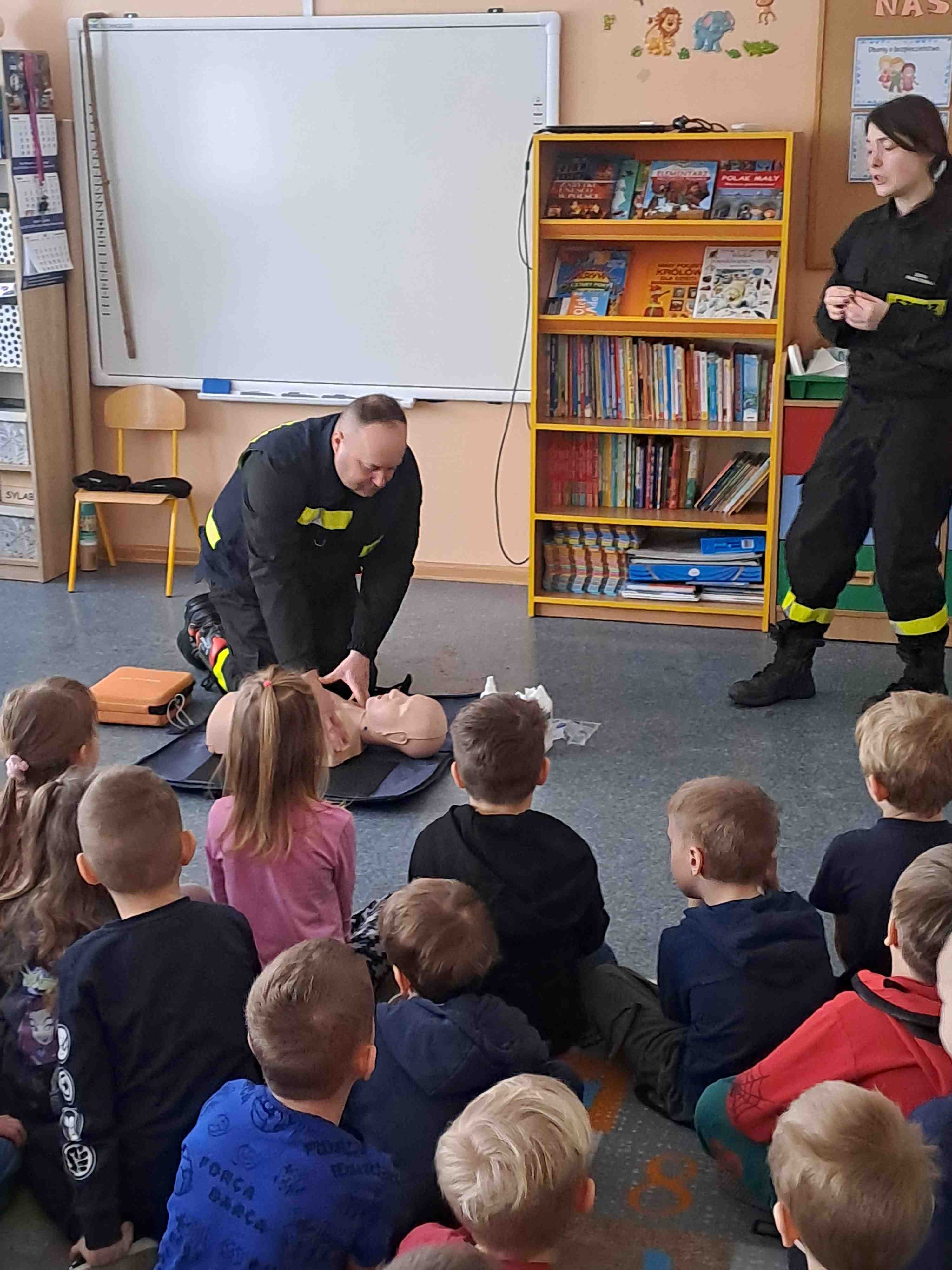 W dniu 17 lutego oddziały najstarsze naszego przedszkola odwiedzili strażacy z Ochotniczej Straży Pożarnej w Wierzbiu, którzy przybliżyli dzieciom zasady udzielania pierwszej pomocy osobom poszkodowanym. Na początku przedszkolaki wysłuchały pogadanki o konieczności zachowania bezpieczeństwa w sytuacjach zagrażających życiu i zdrowiu osób z ich otoczenia. Utrwaliły numery alarmowe oraz sposób informowania służb o zdarzeniu, w którym biorą udział. Następnie strażacy przy pomocy fantoma zaprezentowali dzieciom sposób dokonywania reanimacji osoby poszkodowanej. Chętni mogli w praktyce spróbować powtórzyć omawiane czynności.. Umiejętność udzielania pierwszej pomocy jest niezwykle ważna, gdyż nigdy nie wiemy, jakiej sytuacji możemy być świadkami. Dziękujemy strażakom za tę ważną i potrzebną lekcję.