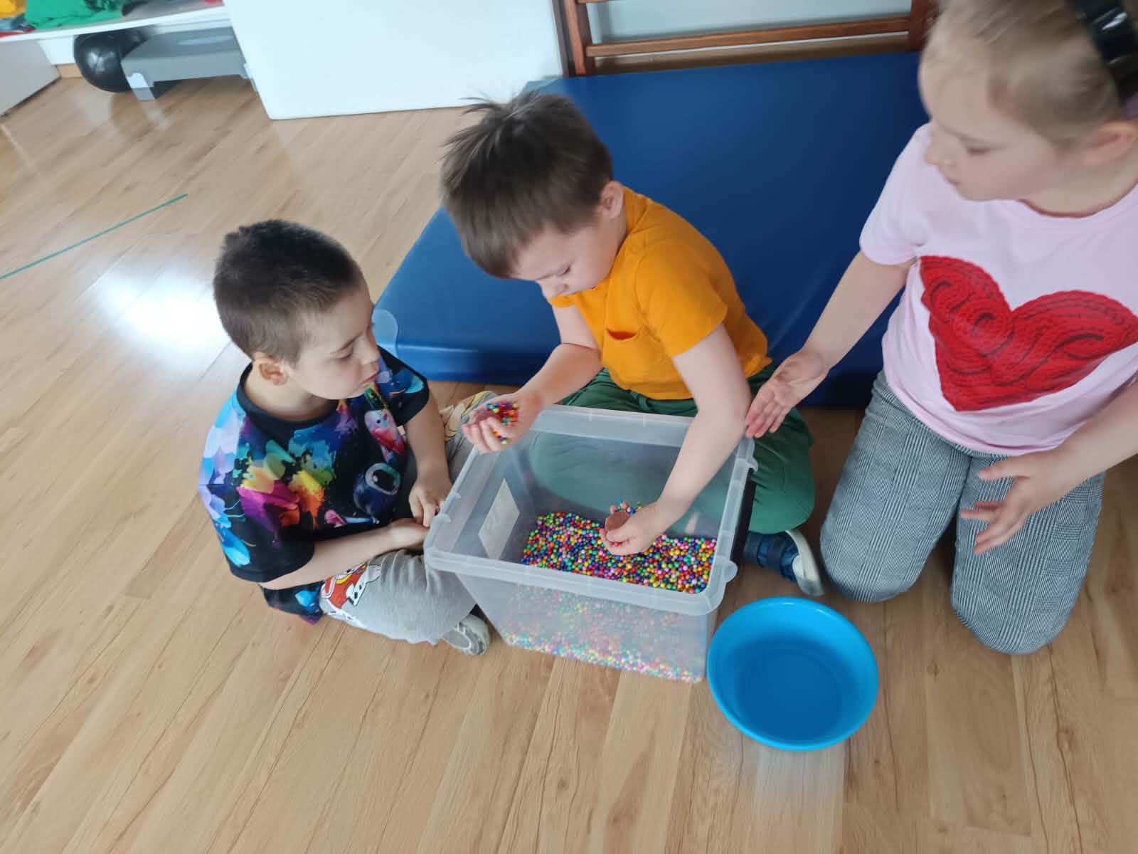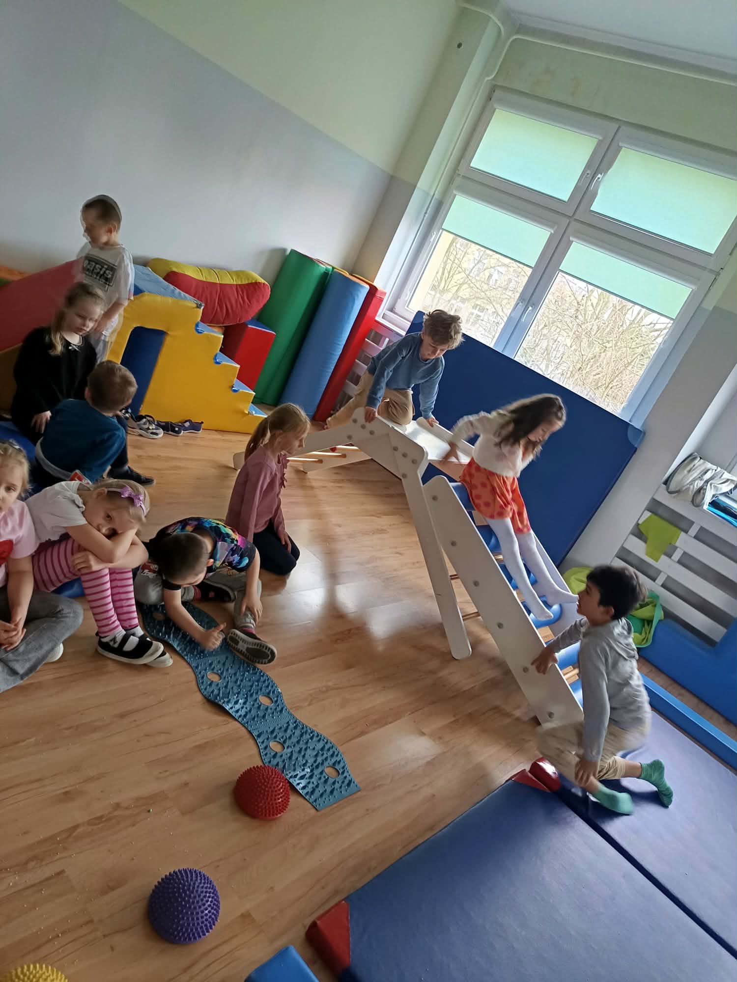 Każde zadanie było nie tylko świetną zabawą, ale także ważnym krokiem w budowaniu świadomości własnego ciała i otaczającego świata. Zajęcia przebiegały w atmosferze radości, ciekawości i zaangażowania.