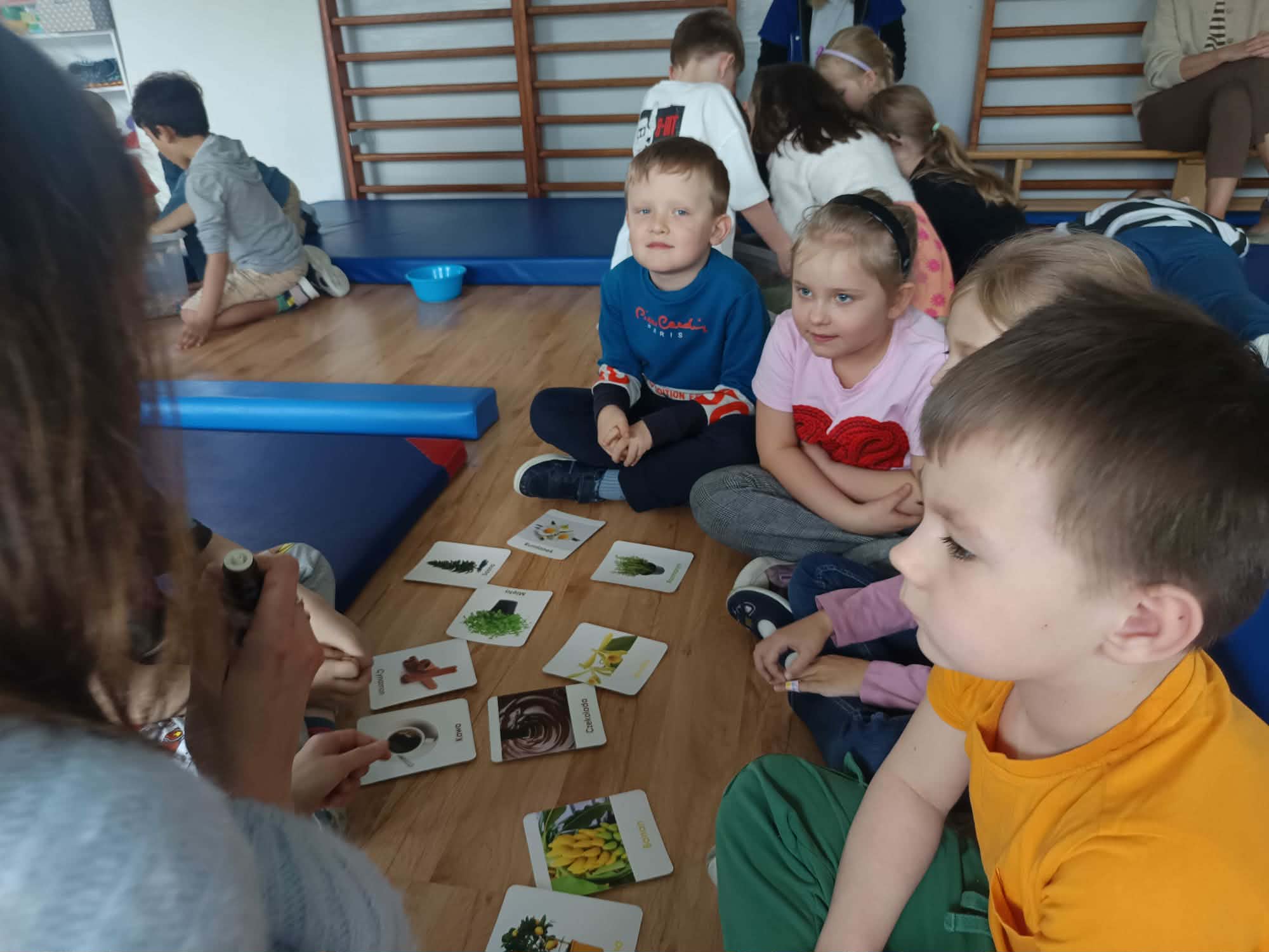 Dzieci uczestniczyły w różnorodnych zabawach, które pomagały im rozpoznawać i nazywać różne bodźce – dotykowe, słuchowe, wzrokowe, a nawet zapachowe.