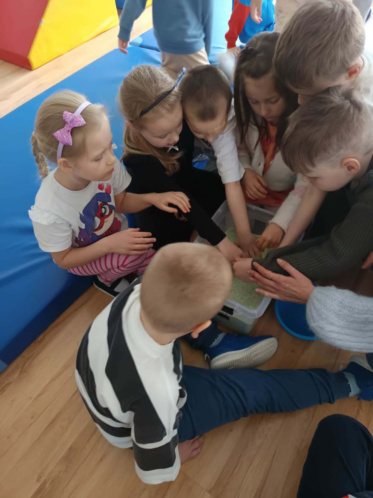 Poprzez kreatywne aktywności, takie jak ścieżki sensoryczne, zagadki dźwiękowe czy zabawy z różnymi fakturami, maluchy rozwijały swoją wrażliwość oraz umiejętność koncentracji.