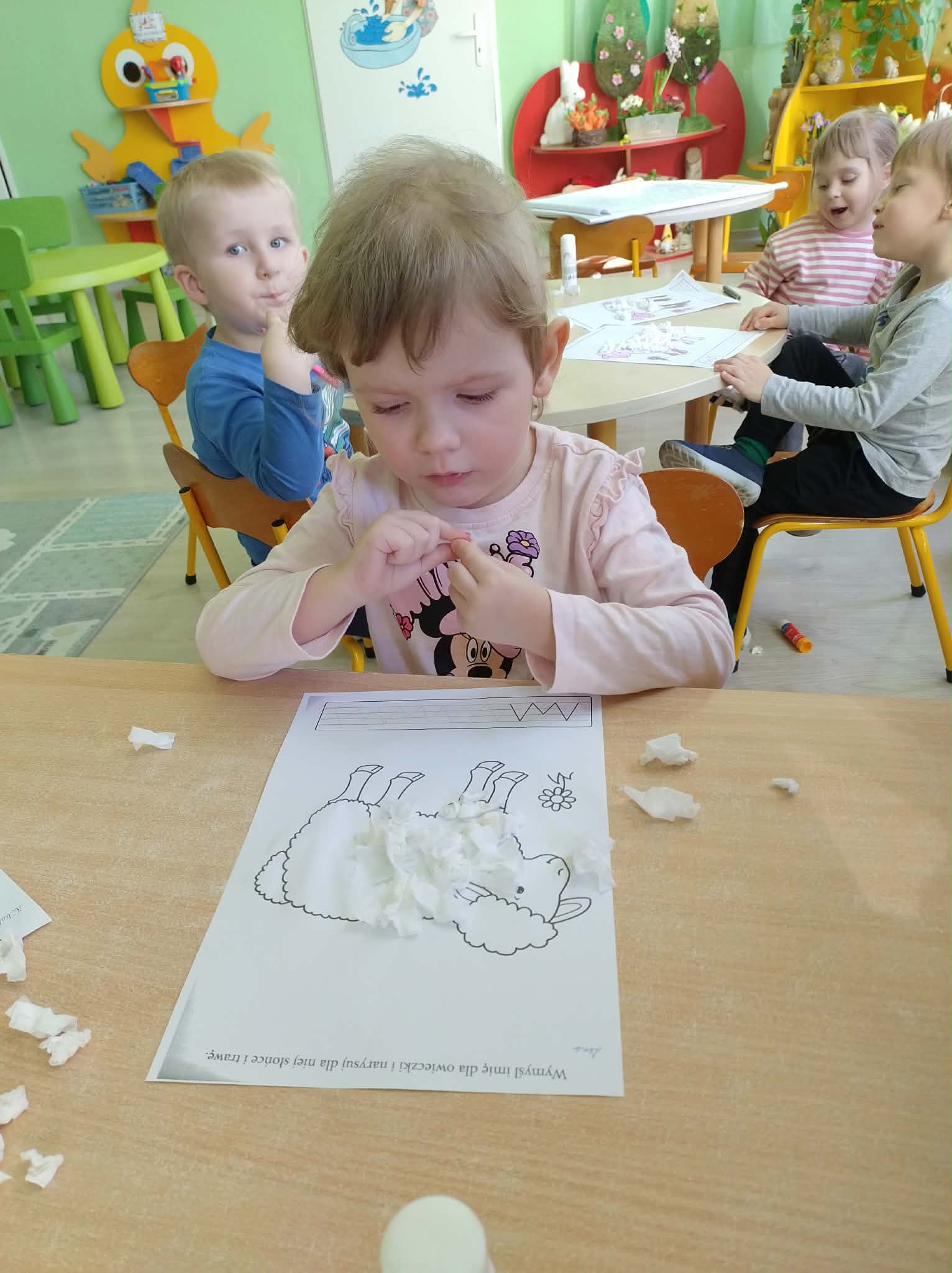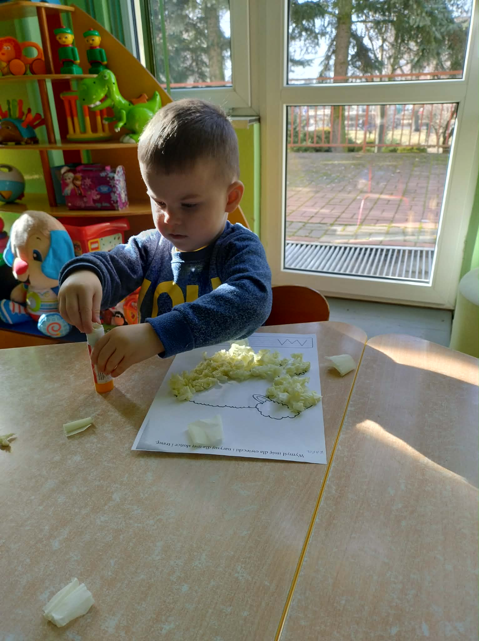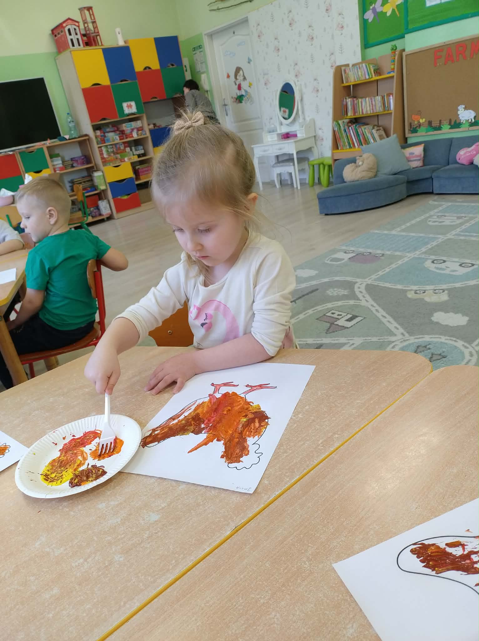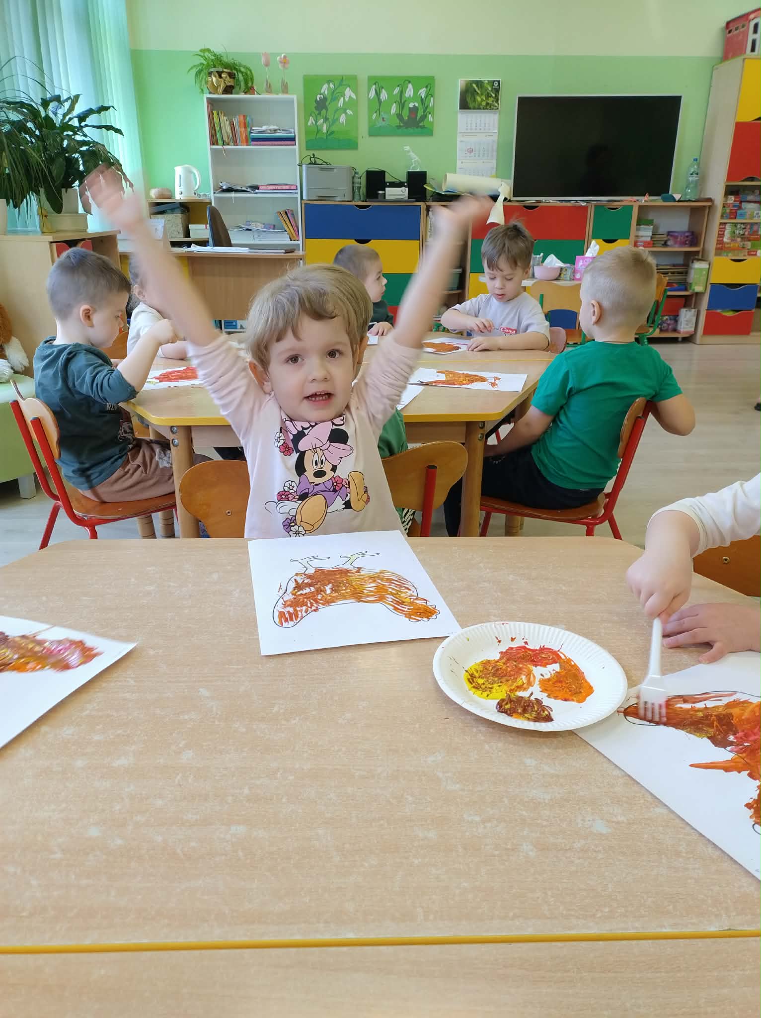 „Poznajemy zwierzęta gospodarskie”. Dzieci miały okazję dowiedzieć się, jakie zwierzęta mieszkają na wsi oraz jaką rolę pełnią w gospodarstwie. Podczas zajęć przedszkolaki oglądały obrazki i figurki zwierząt takich jak krowa, koń, świnia, kura, kaczka czy owca. Nauczycielka opowiadała, gdzie mieszkają te zwierzęta, czym się żywią oraz jakie produkty dzięki nim otrzymujemy, na przykład mleko, jajka czy wełnę. Dzieci chętnie naśladowały również odgłosy zwierząt, co sprawiło im wiele radości. Wspólnie zastanawiały się, jak mówi krowa, jak gdacze kura czy jak beczy owca. Była to świetna okazja do nauki poprzez zabawę. Nie zabrakło także zabaw ruchowych, podczas których przedszkolaki wcielały się w zwierzęta gospodarskie — chodziły jak kaczki, skakały jak koniki i naśladowały ich ruchy. Dzieci wykonały pracę plastyczną przedstawiającą wybrane zwierzęta z wiejskiego podwórka. Dzięki temu mogły utrwalić zdobytą wiedzę i rozwijać swoją kreatywność. Zajęcia były pełne śmiechu, ciekawostek i nowych doświadczeń. Dzieci z dużym zainteresowaniem poznawały świat zwierząt gospodarskich i świetnie się przy tym bawiły.
