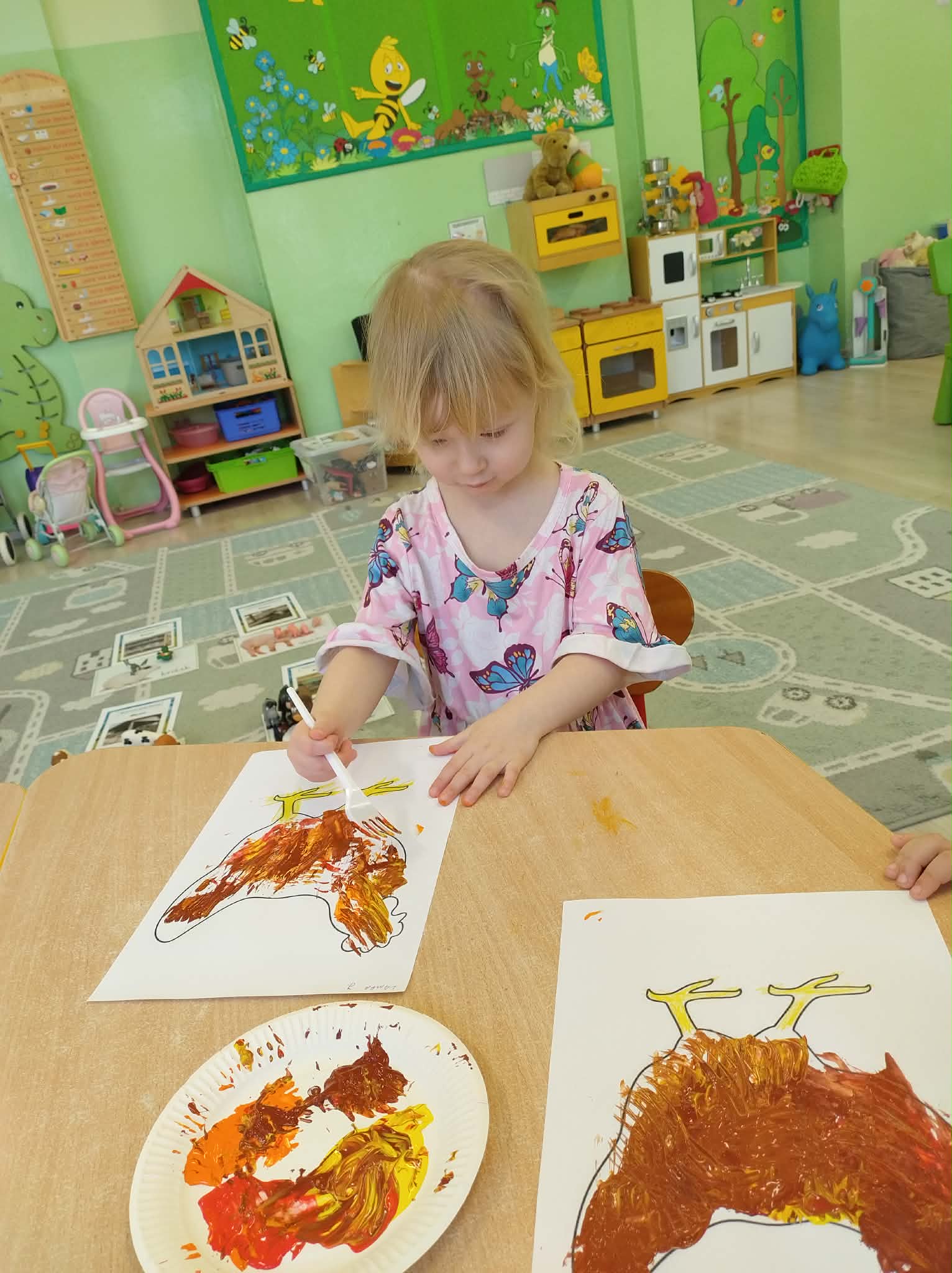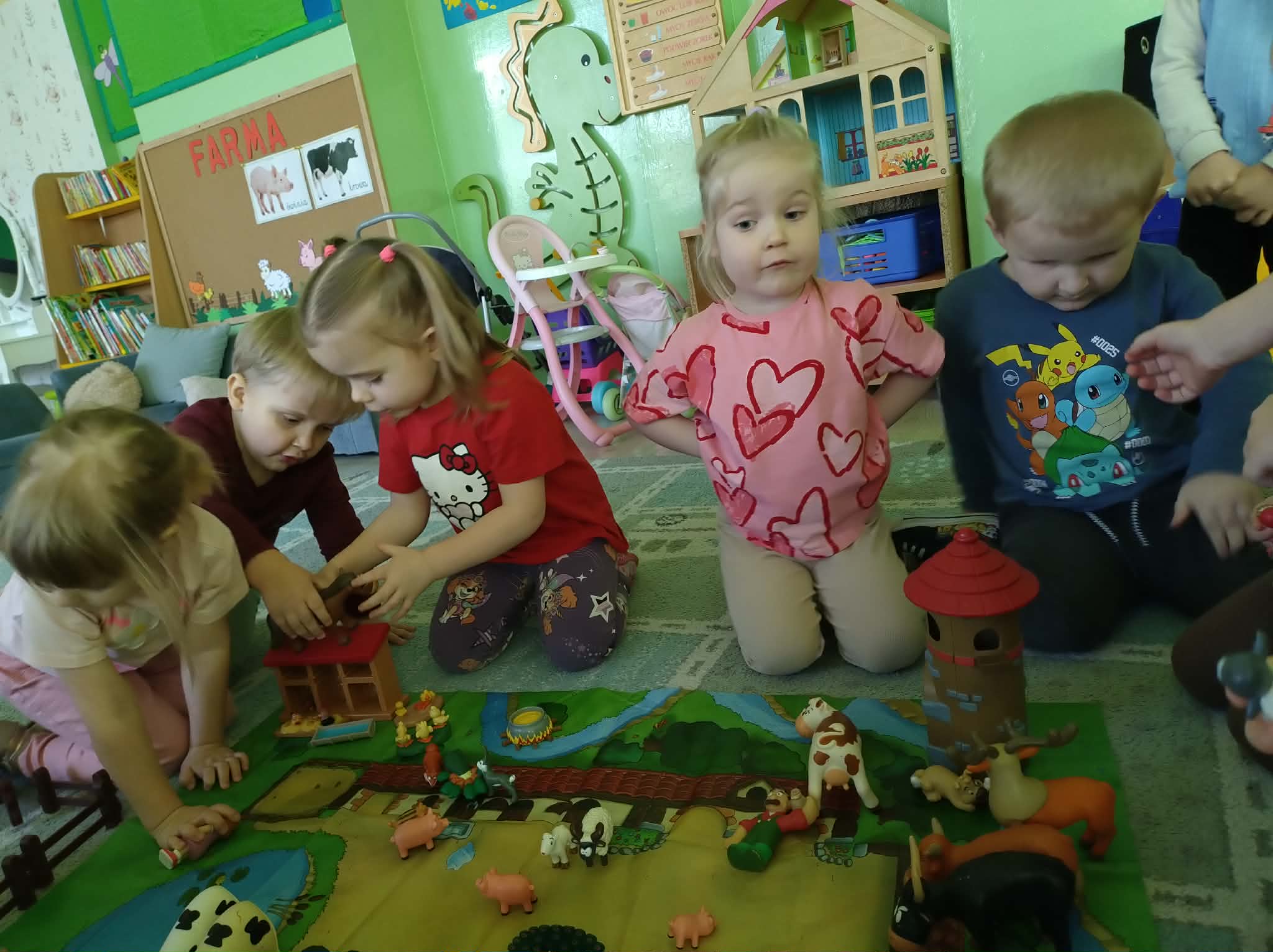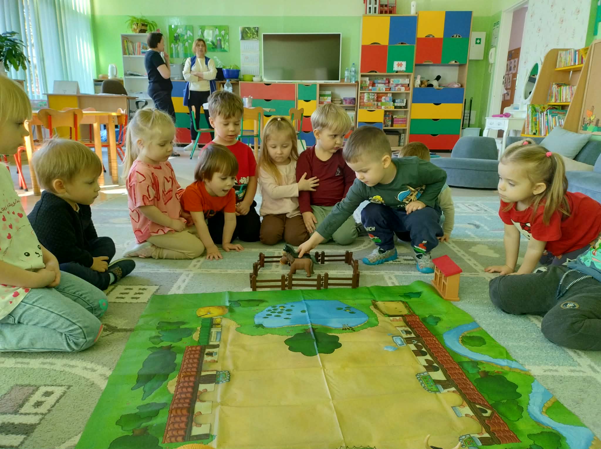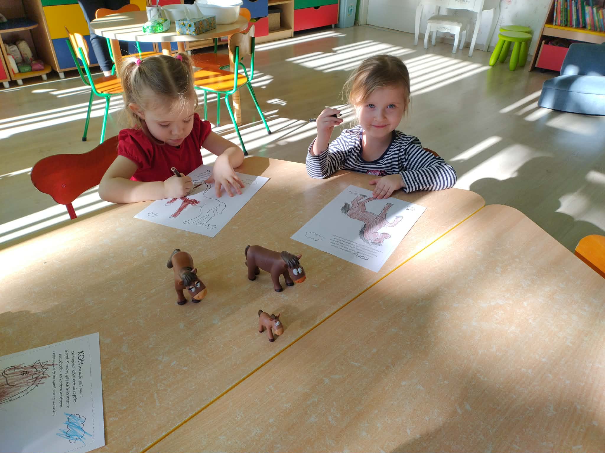„Poznajemy zwierzęta gospodarskie”. Dzieci miały okazję dowiedzieć się, jakie zwierzęta mieszkają na wsi oraz jaką rolę pełnią w gospodarstwie. Podczas zajęć przedszkolaki oglądały obrazki i figurki zwierząt takich jak krowa, koń, świnia, kura, kaczka czy owca. Nauczycielka opowiadała, gdzie mieszkają te zwierzęta, czym się żywią oraz jakie produkty dzięki nim otrzymujemy, na przykład mleko, jajka czy wełnę. Dzieci chętnie naśladowały również odgłosy zwierząt, co sprawiło im wiele radości. Wspólnie zastanawiały się, jak mówi krowa, jak gdacze kura czy jak beczy owca. Była to świetna okazja do nauki poprzez zabawę. Nie zabrakło także zabaw ruchowych, podczas których przedszkolaki wcielały się w zwierzęta gospodarskie — chodziły jak kaczki, skakały jak koniki i naśladowały ich ruchy. Dzieci wykonały pracę plastyczną przedstawiającą wybrane zwierzęta z wiejskiego podwórka. Dzięki temu mogły utrwalić zdobytą wiedzę i rozwijać swoją kreatywność. Zajęcia były pełne śmiechu, ciekawostek i nowych doświadczeń. Dzieci z dużym zainteresowaniem poznawały świat zwierząt gospodarskich i świetnie się przy tym bawiły.