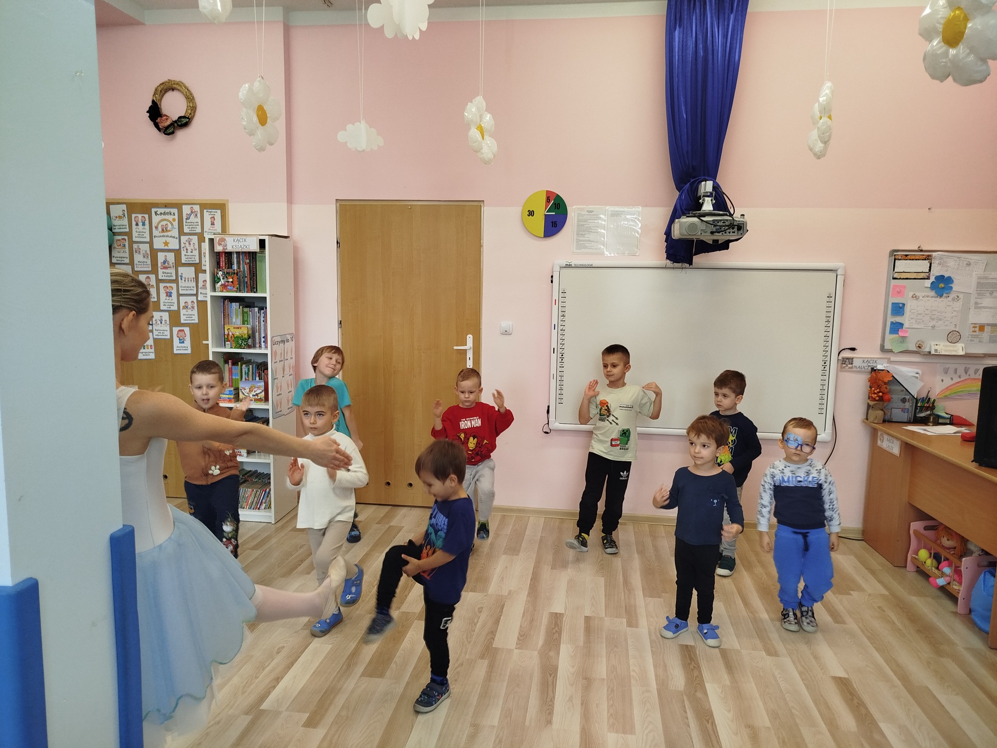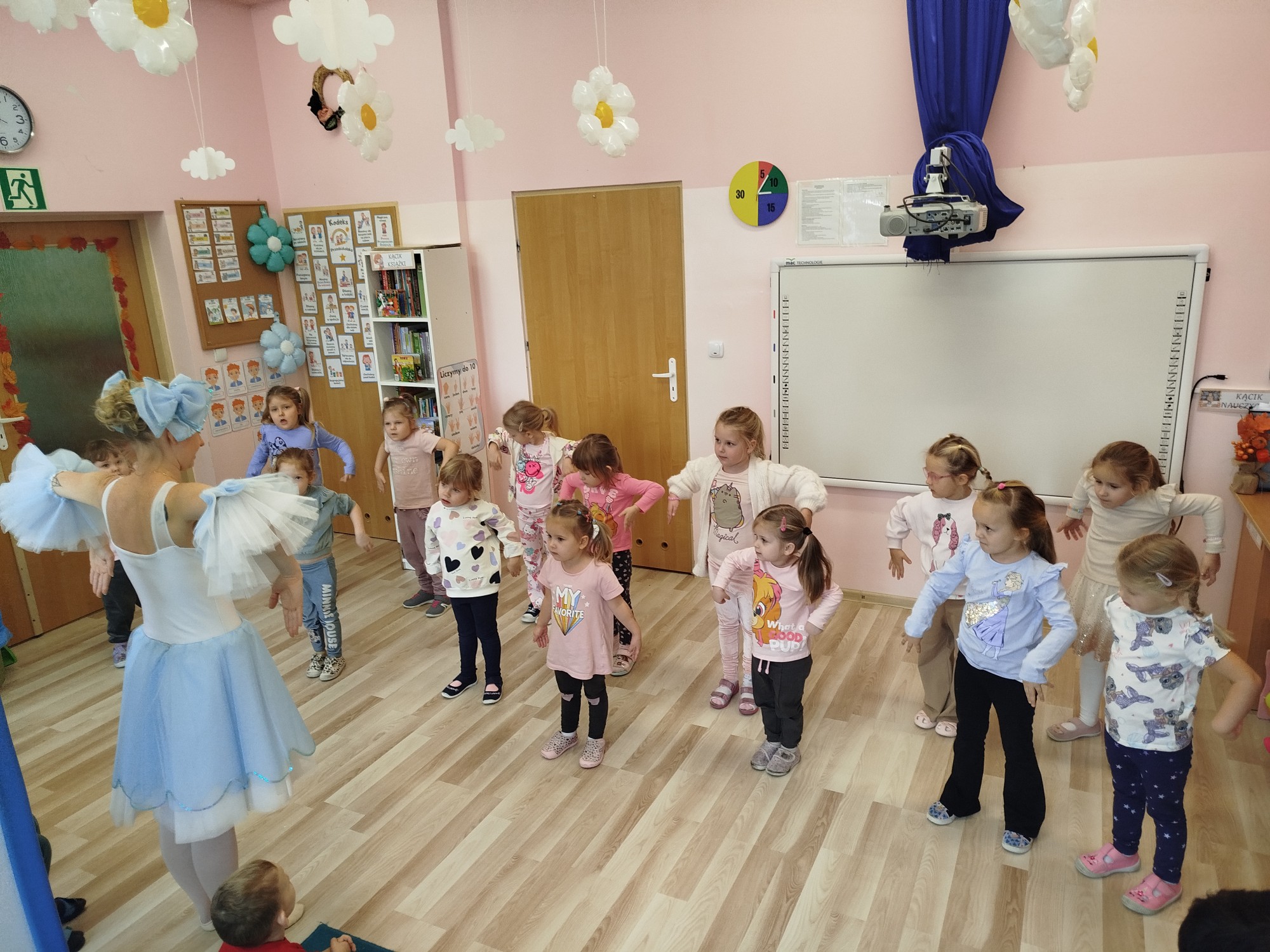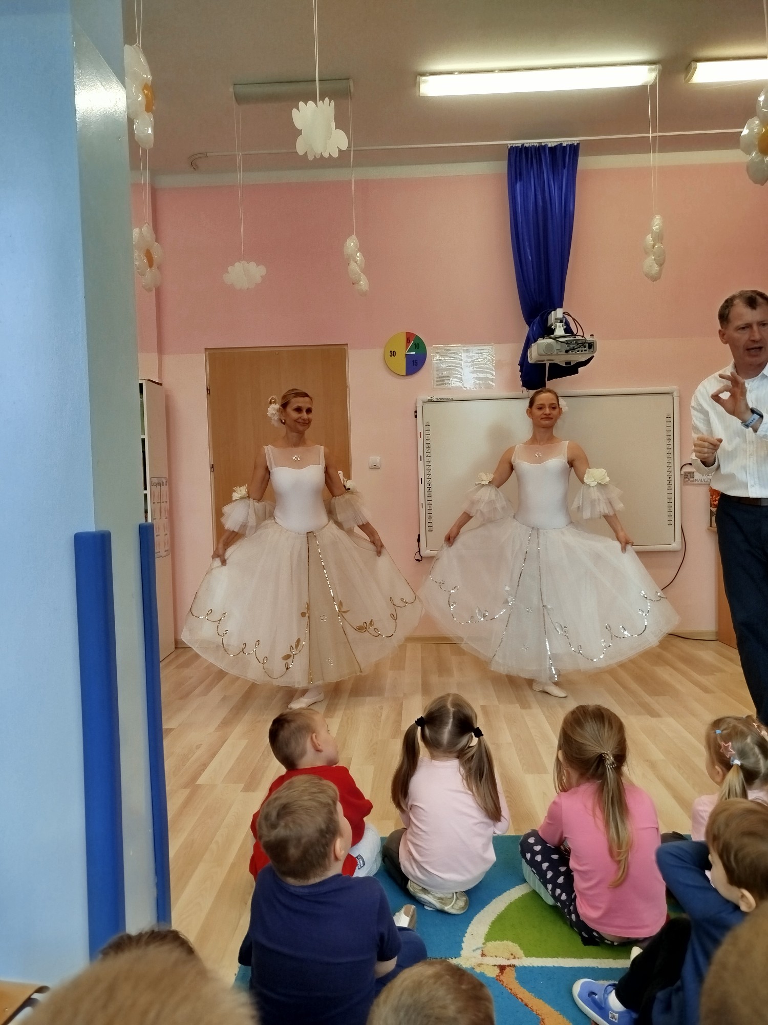 Dziś nasze przedszkolaki miały okazję przenieść się w świat baśni, a to za sprawą przedstawienia baletowego, pt. "Tańce z Baśni", zaprezentowane przez tancerki z Teatru Wielkiego. Dzieci wzięły również udział w tańcach baletowych poznając podstawowe kroki. Dowiedziały się również co to jest rekwizyt i do czego jest wykorzystywany. Dziękujemy za piękny pokaz.