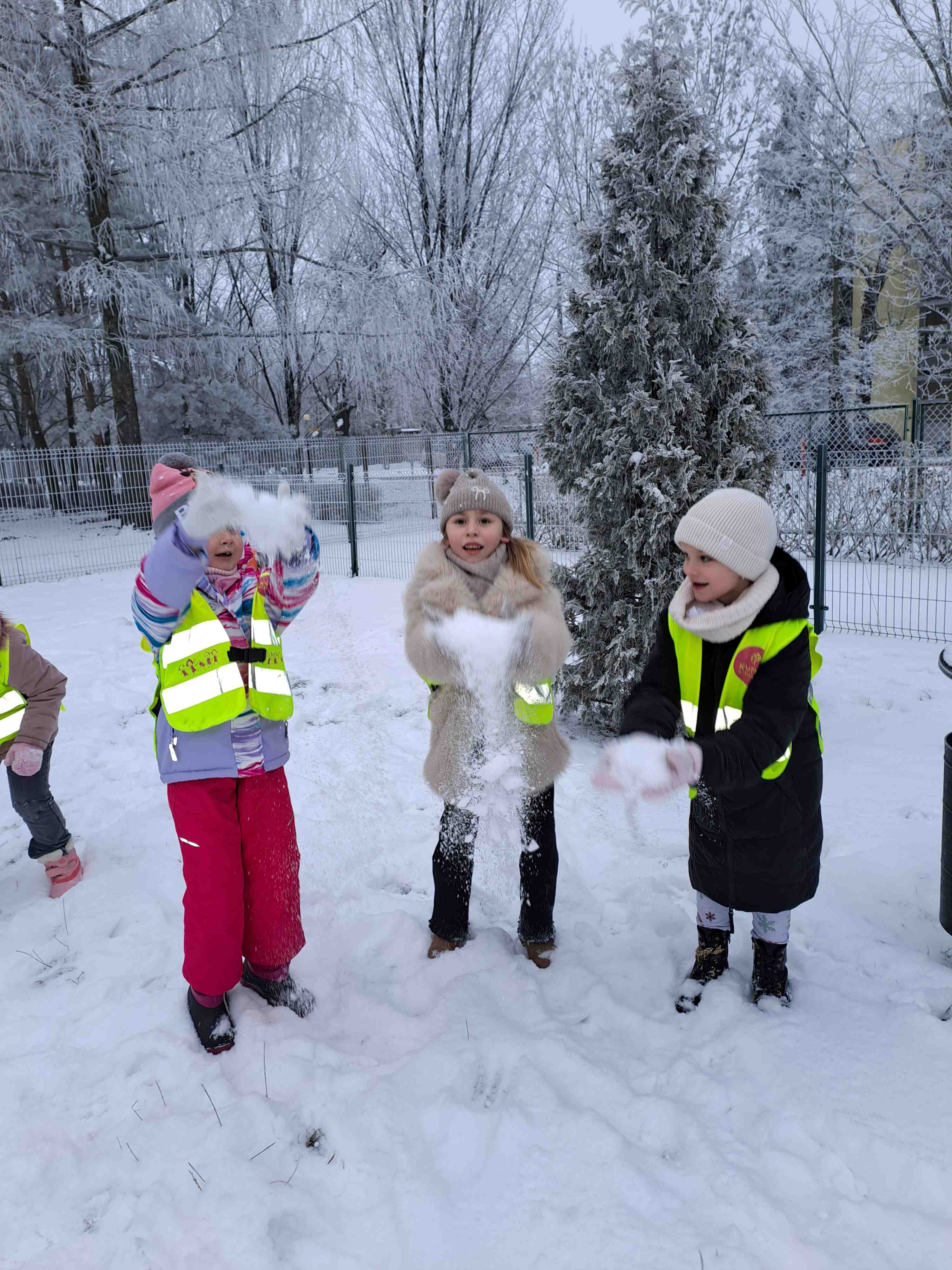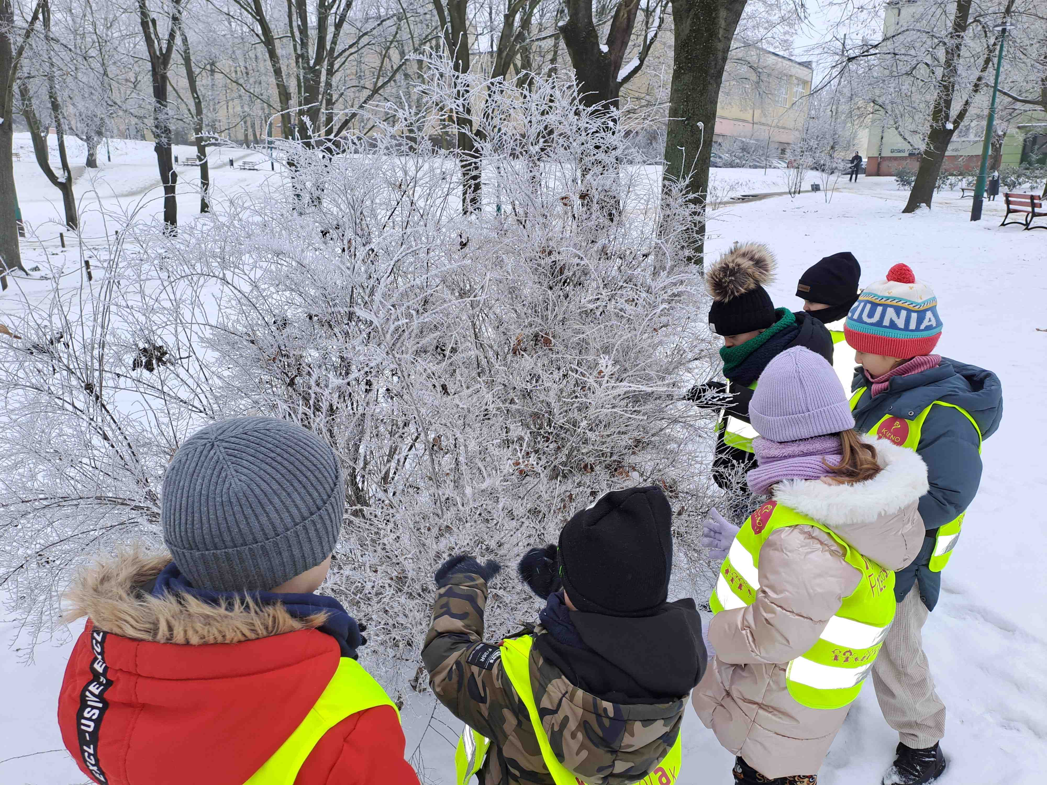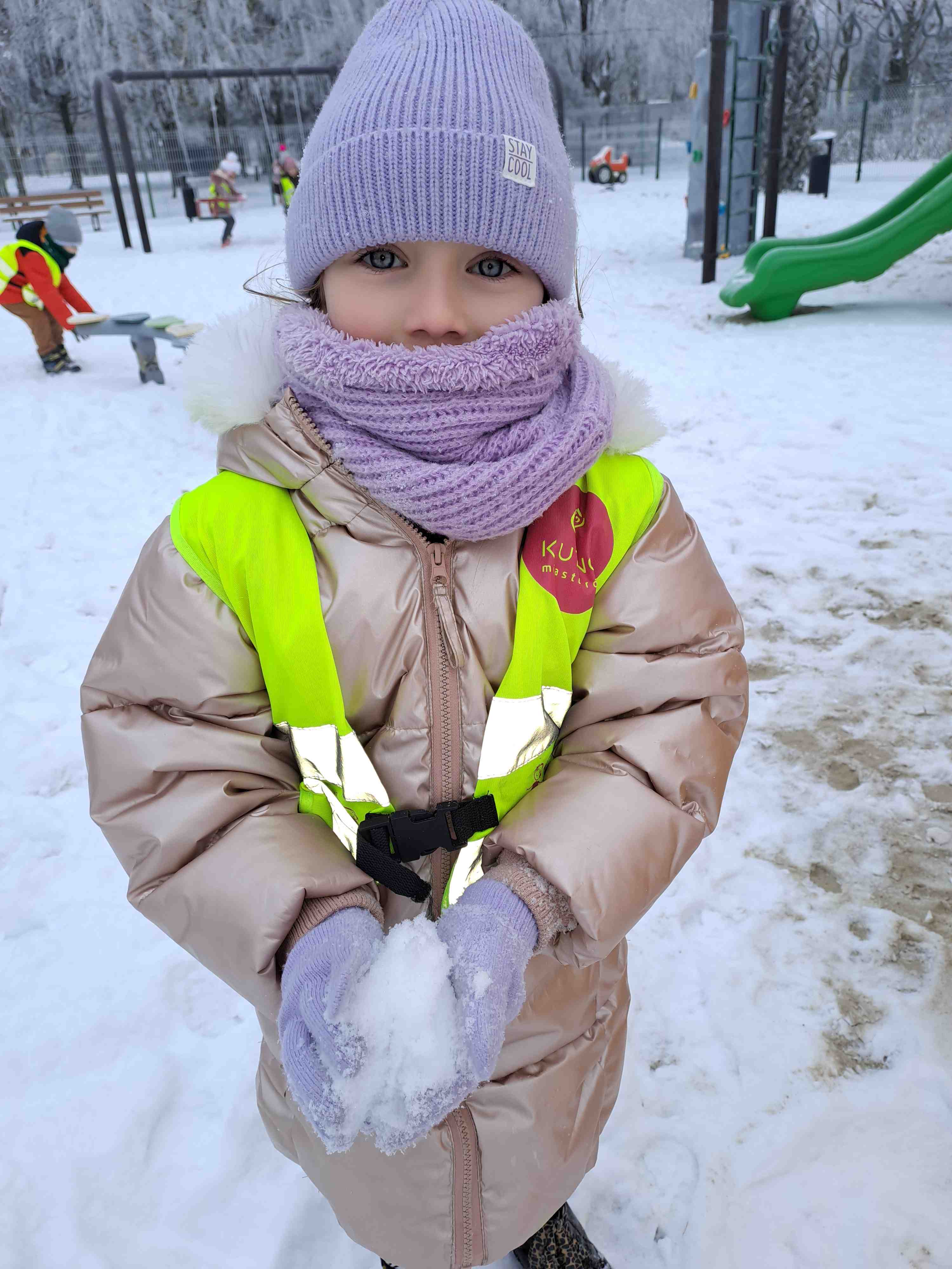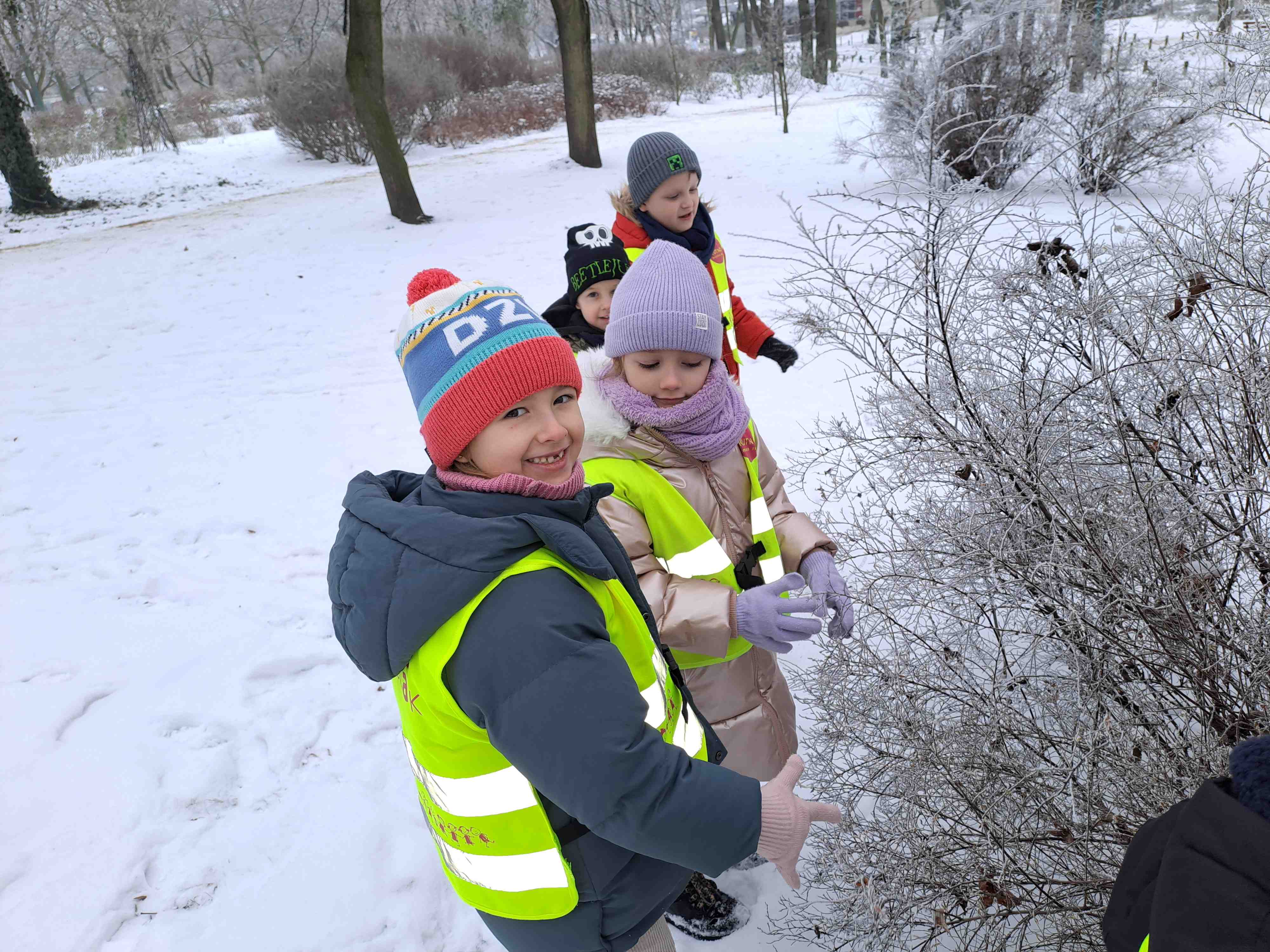 Nadszedł styczeń, a wraz z nim piękna śnieżna i mroźna zima. Korzystając z jej uroków Motylki wybrały się na spacer do parku, gdzie podziwiały ośnieżone drzewa i krzewy oraz całą zimową scenerię panującą dookoła. W drodze powrotnej zatrzymaliśmy się na chwilę na zasypanym śniegiem placu zabaw, na którym dzieci pobawiły się radośnie korzystając z obecności białego puchu.