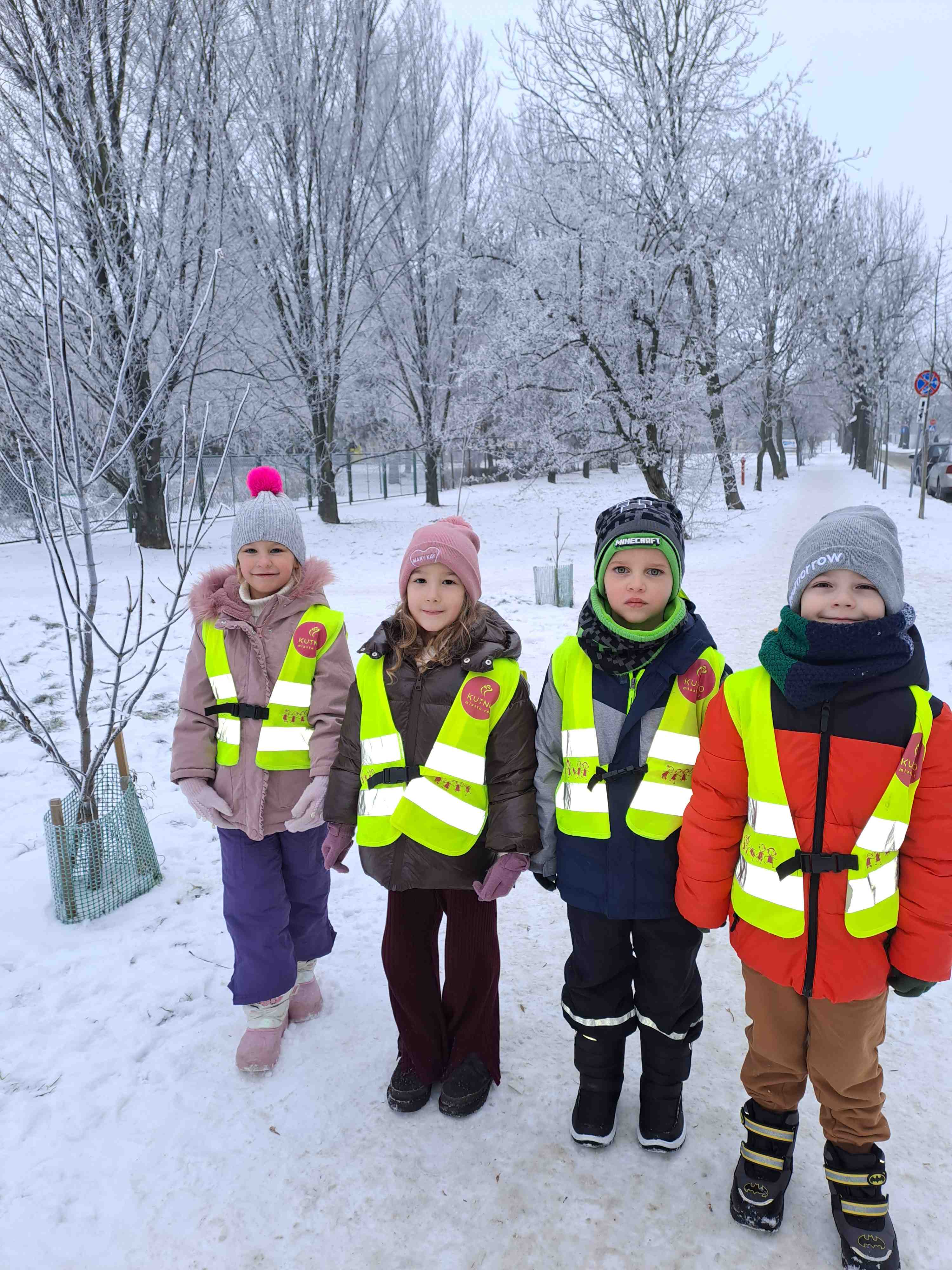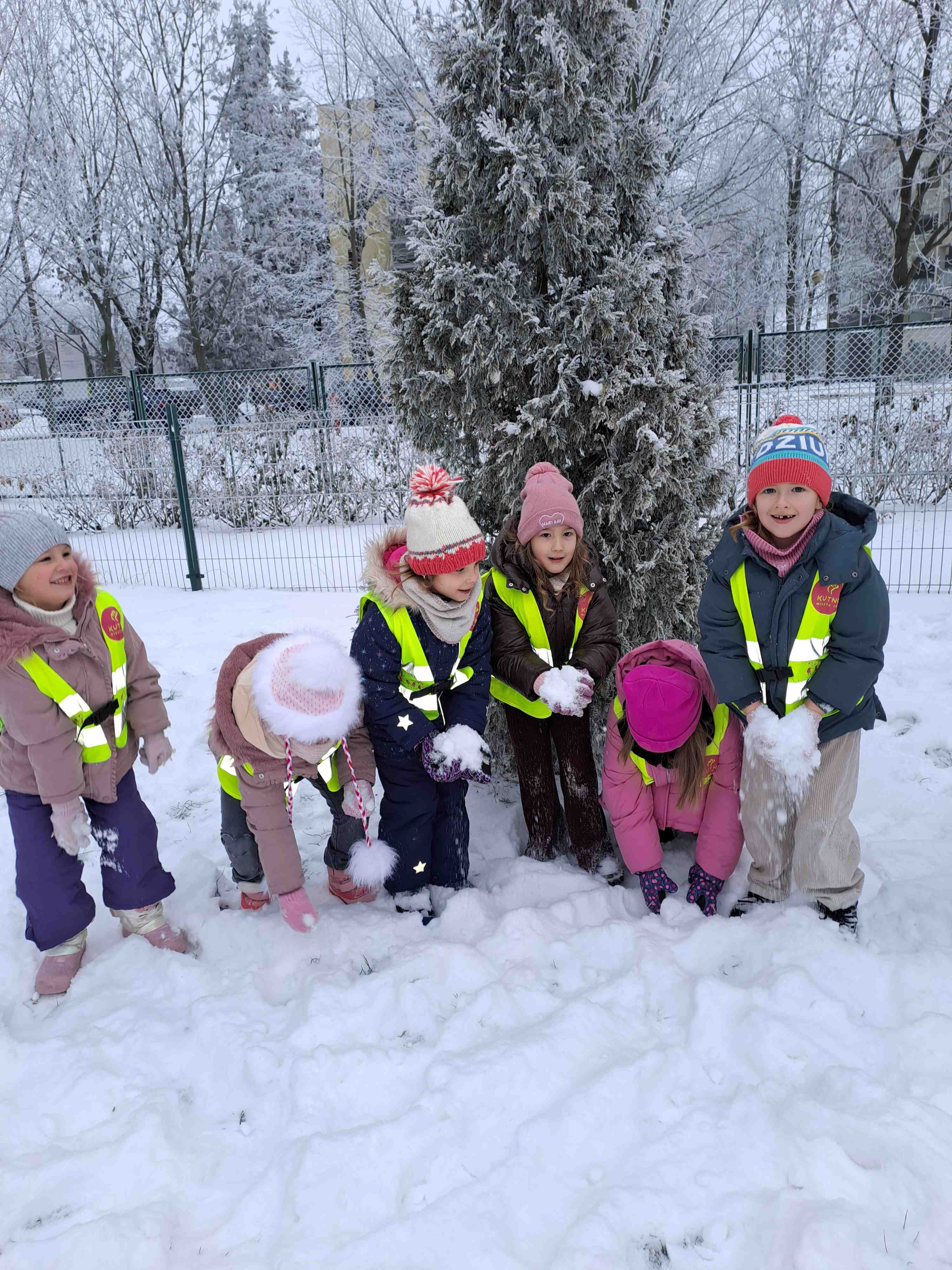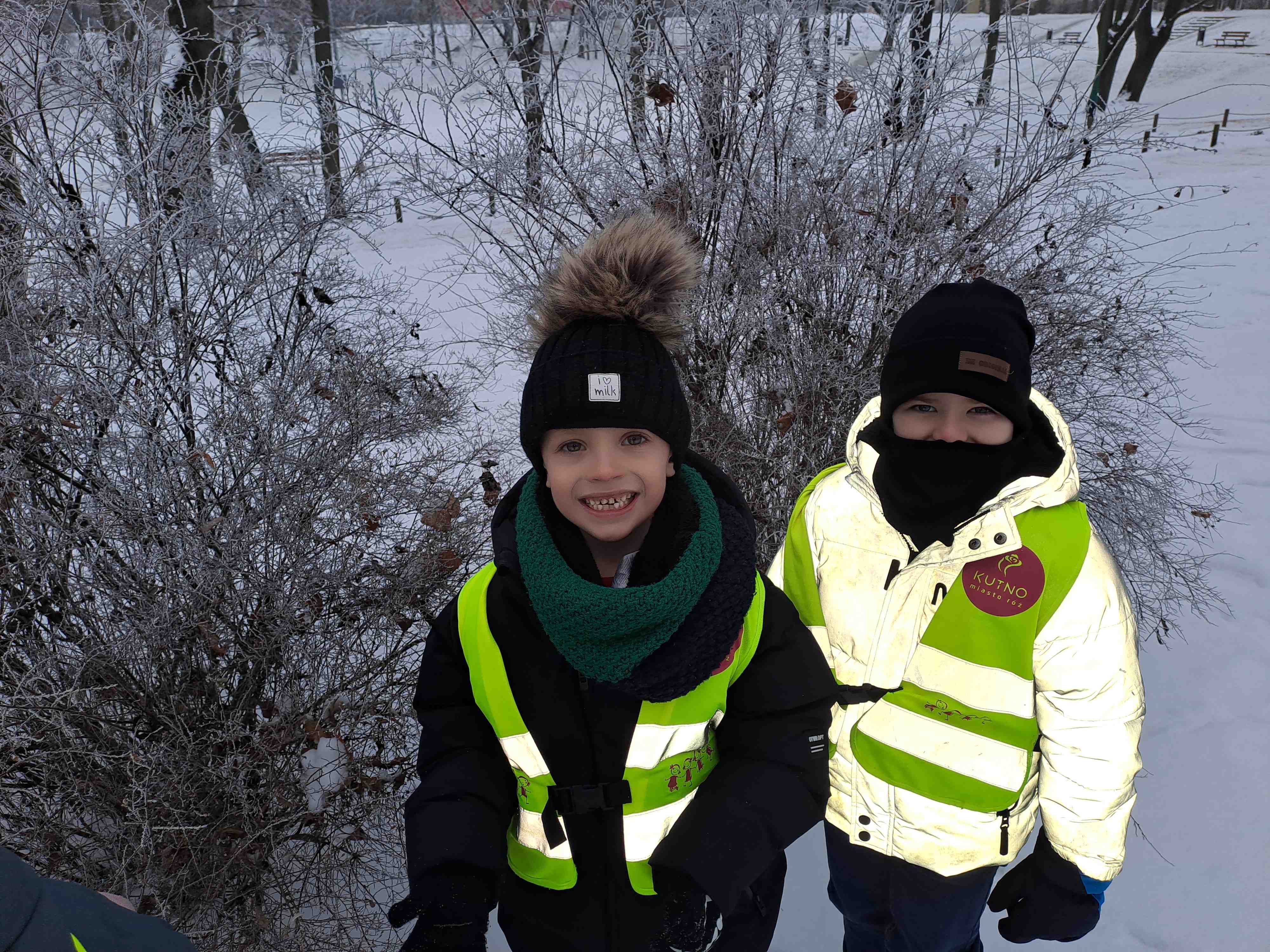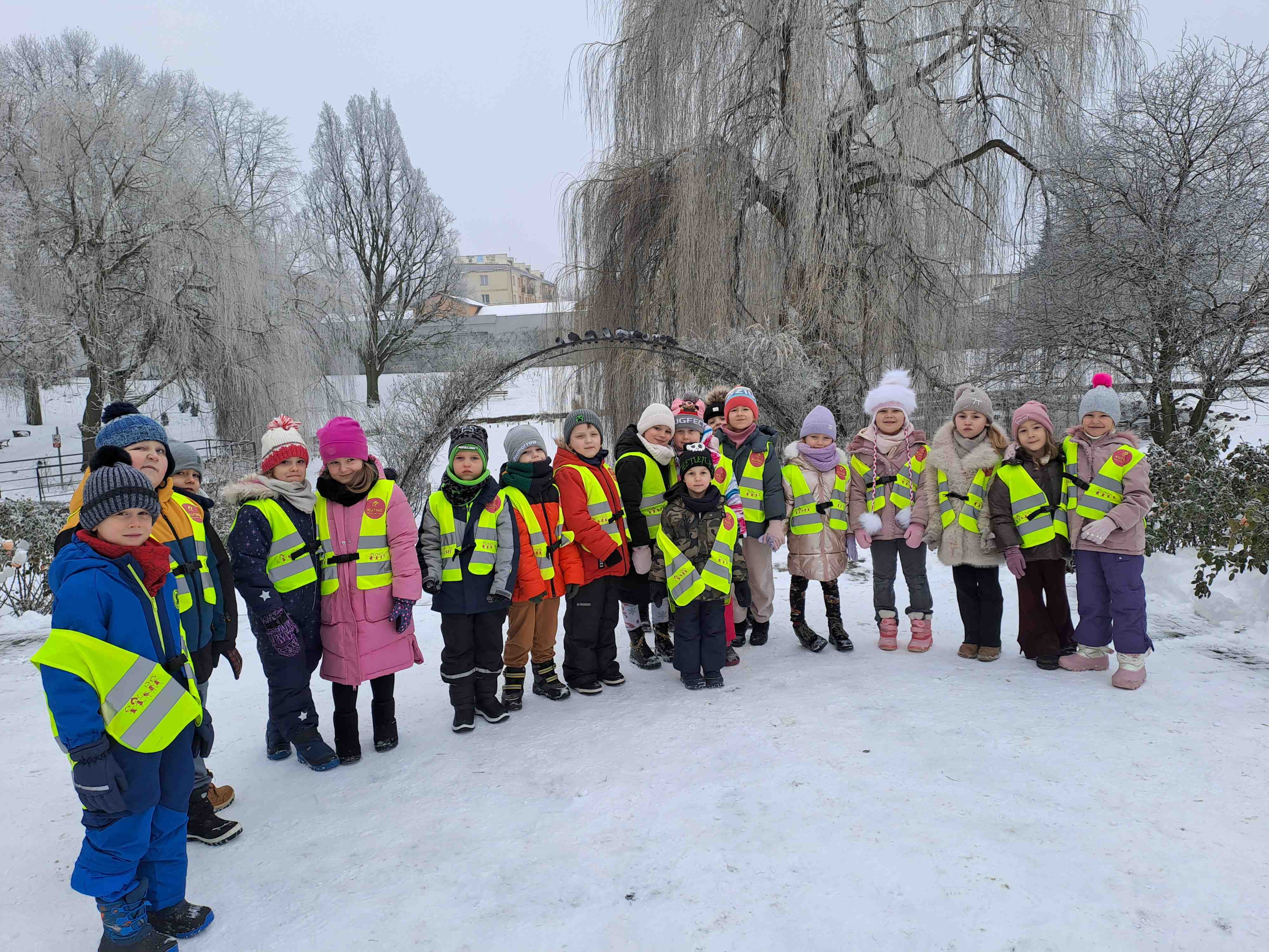 Nadszedł styczeń, a wraz z nim piękna śnieżna i mroźna zima. Korzystając z jej uroków Motylki wybrały się na spacer do parku, gdzie podziwiały ośnieżone drzewa i krzewy oraz całą zimową scenerię panującą dookoła. W drodze powrotnej zatrzymaliśmy się na chwilę na zasypanym śniegiem placu zabaw, na którym dzieci pobawiły się radośnie korzystając z obecności białego puchu.