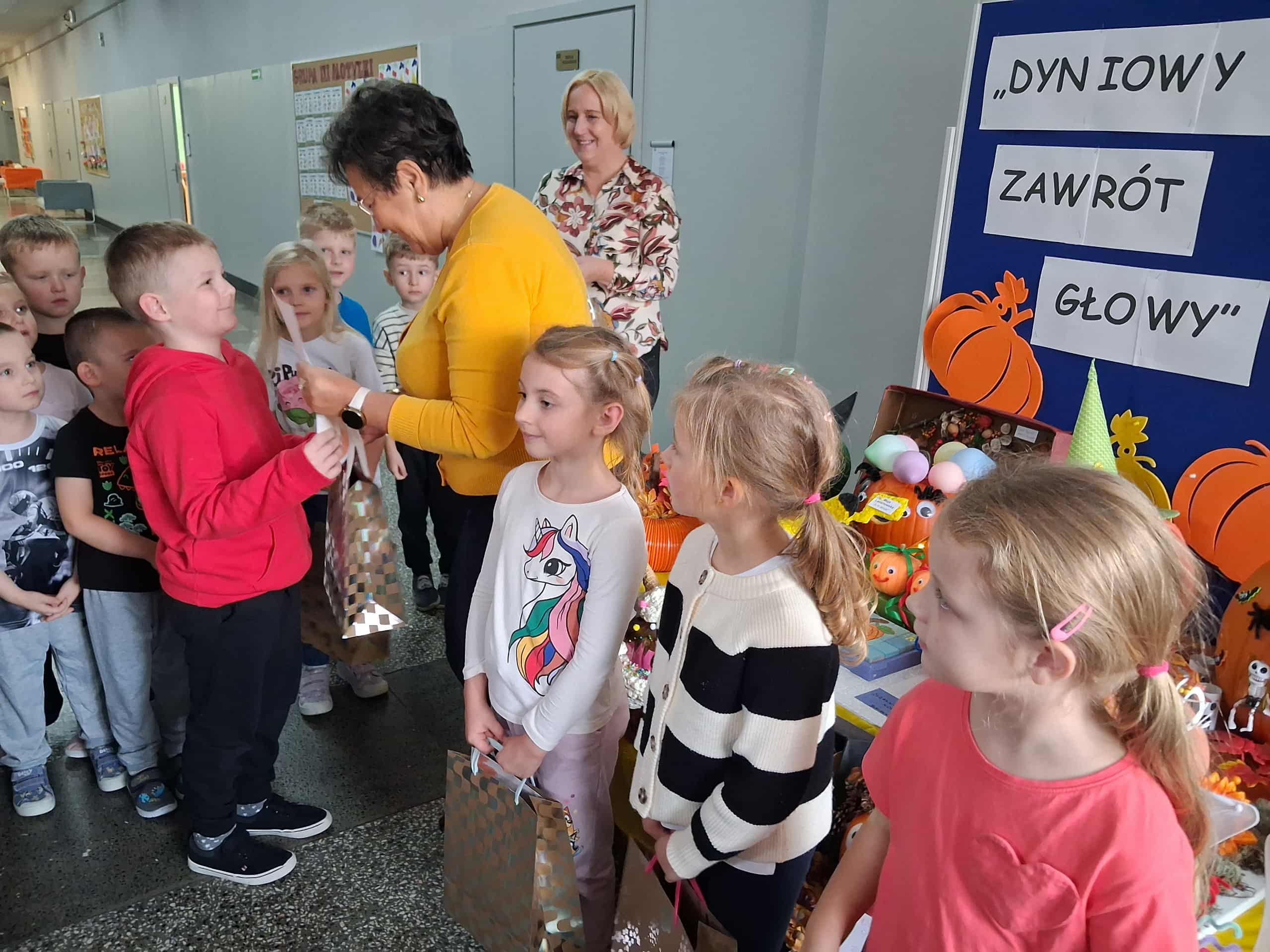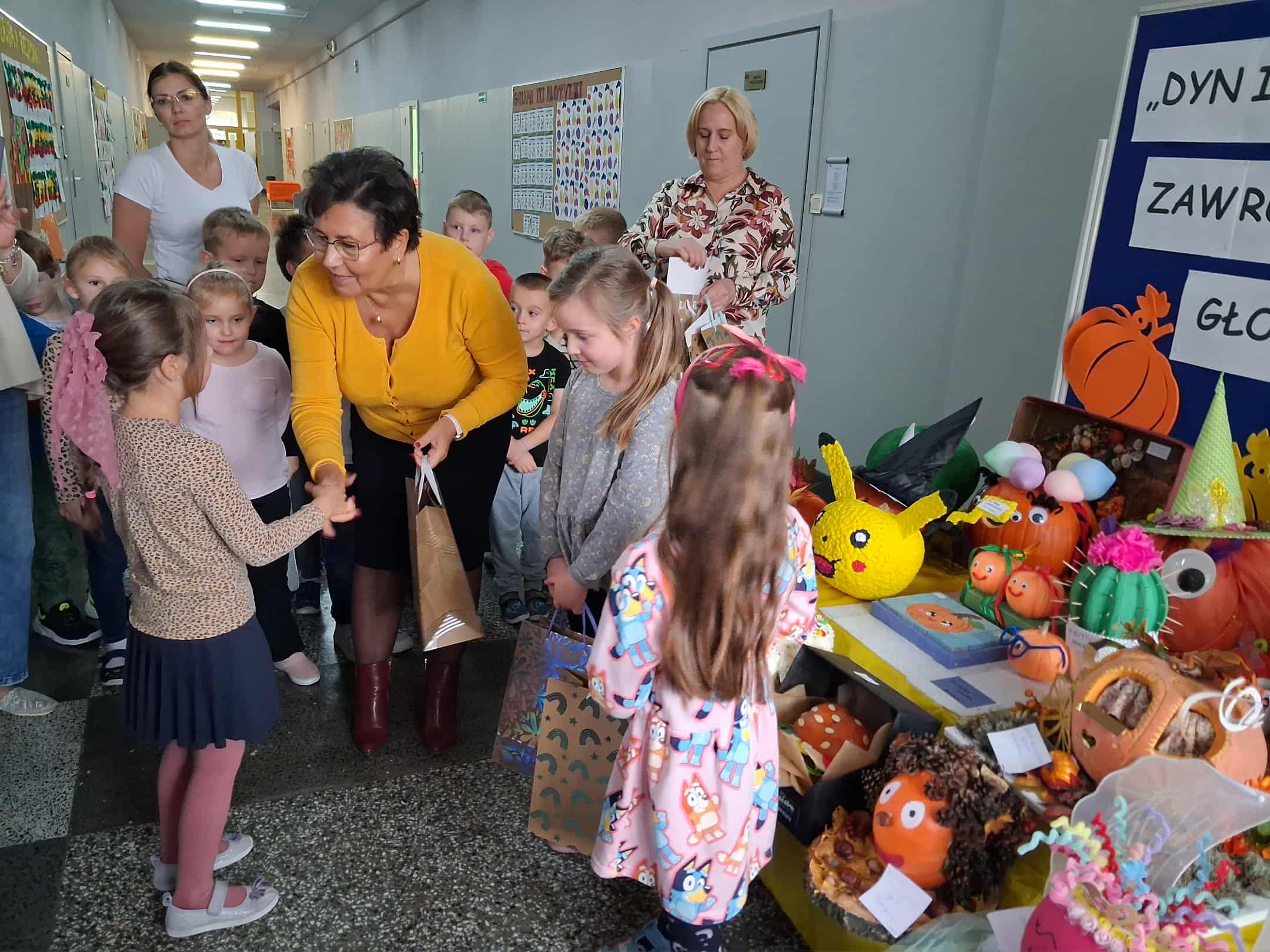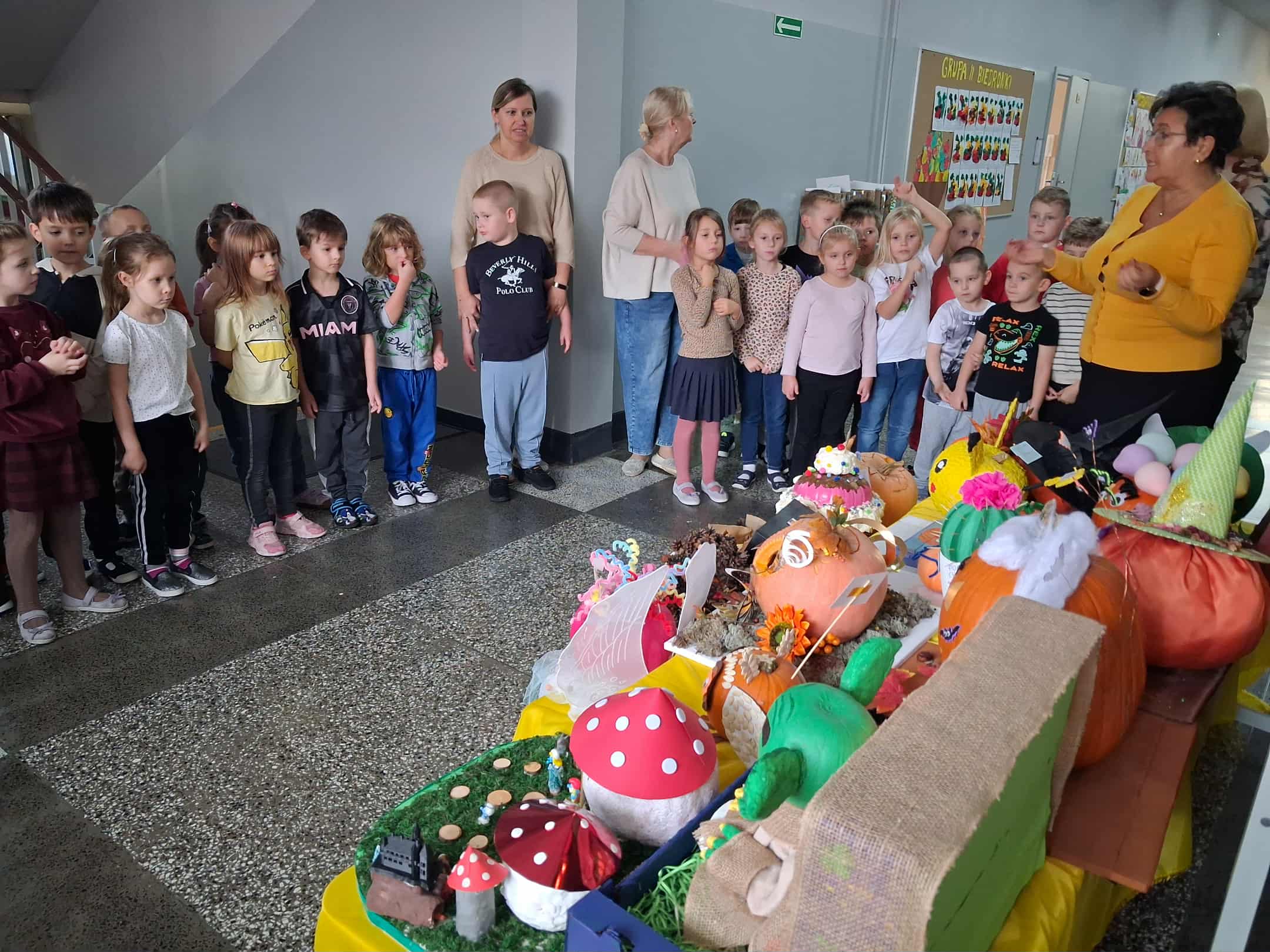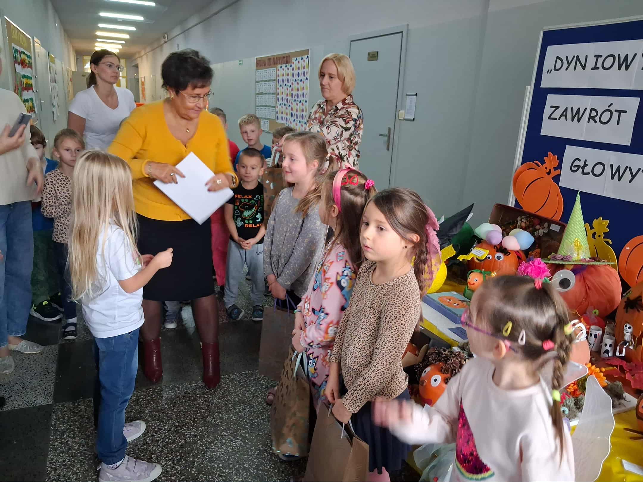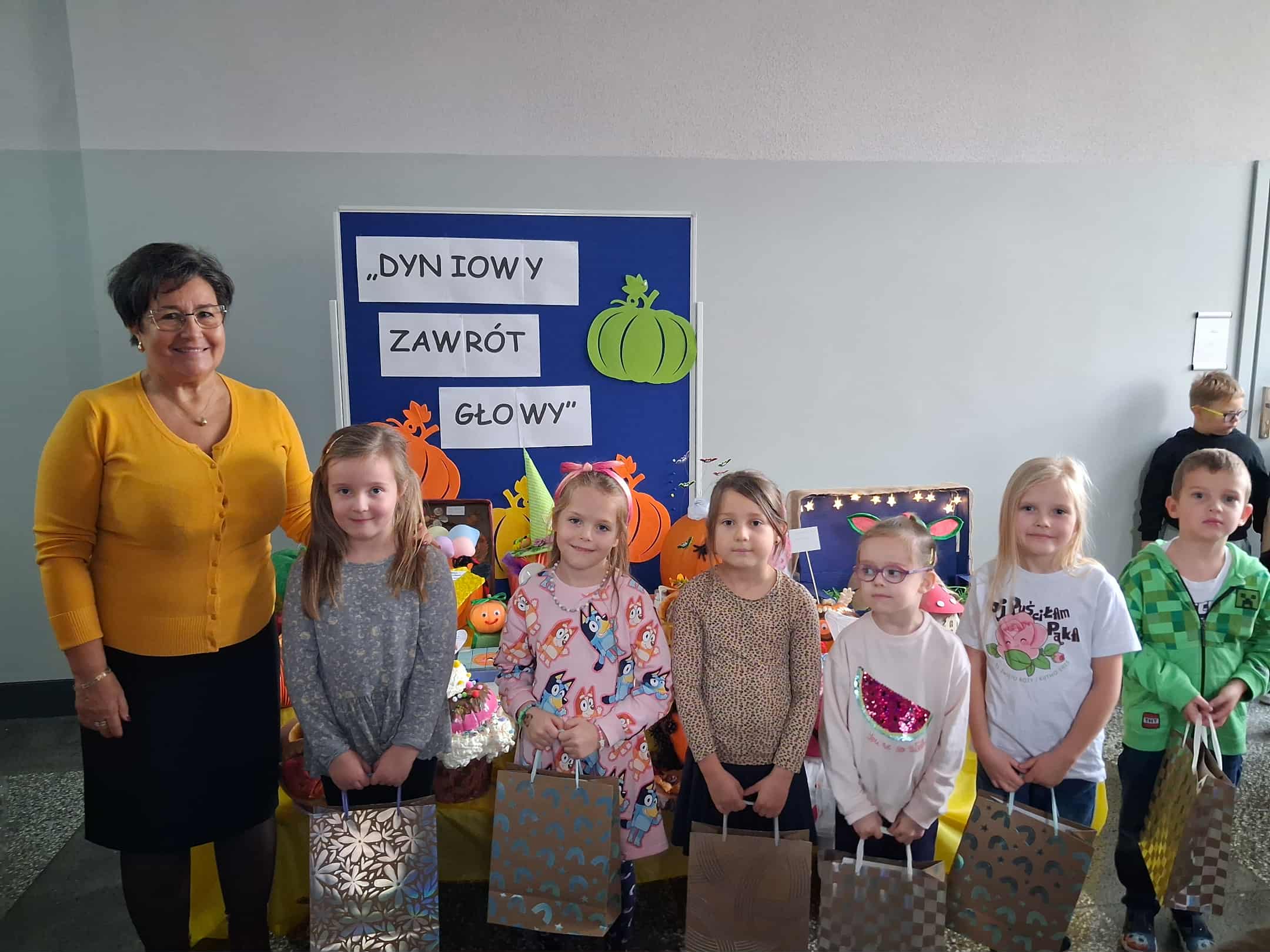 W październiku dzieci z grup najstarszych naszego przedszkola wzięły udział w konkursie plastycznym na pracę przestrzenną "Dyniowy zawrót głowy". Wraz z rodzicami przygotowały w domach przepiękne, bardzo pomysłowe prace. Na konkurs wpłynęło 20 dyniowych arcydzieł, a podziwiać je mogliśmy na urządzonej wystawie na holu szkoły. W dniu 30 października nastąpiło uroczyste rozstrzygnięcie konkursu i wręczenie nagród oraz pamiątkowych dyplomów przez p. dyrektor Jolantę Siudę i organizatorki konkursu - p. Angelikę Ziółkowską i p. Annę Pałczyńską. Z uwagi na bardzo wysoki poziom konkursu wszyscy uczestnicy znaleźli się na podium i zdobyli zasłużone nagrody. Gratulujemy dzieciom i ich rodzicom pomysłowości i wkładu pracy w wykonanie dyniowych dzieł.