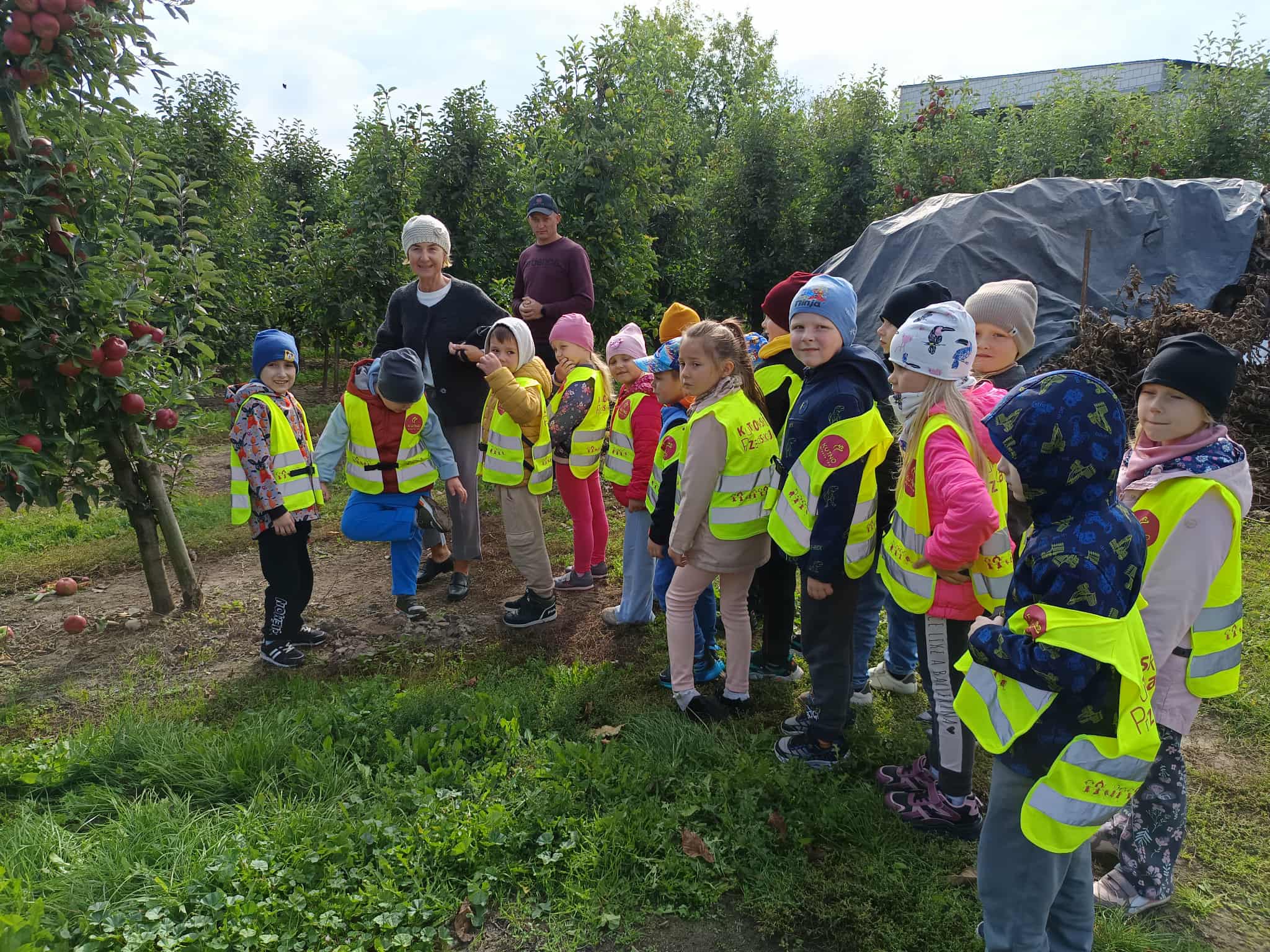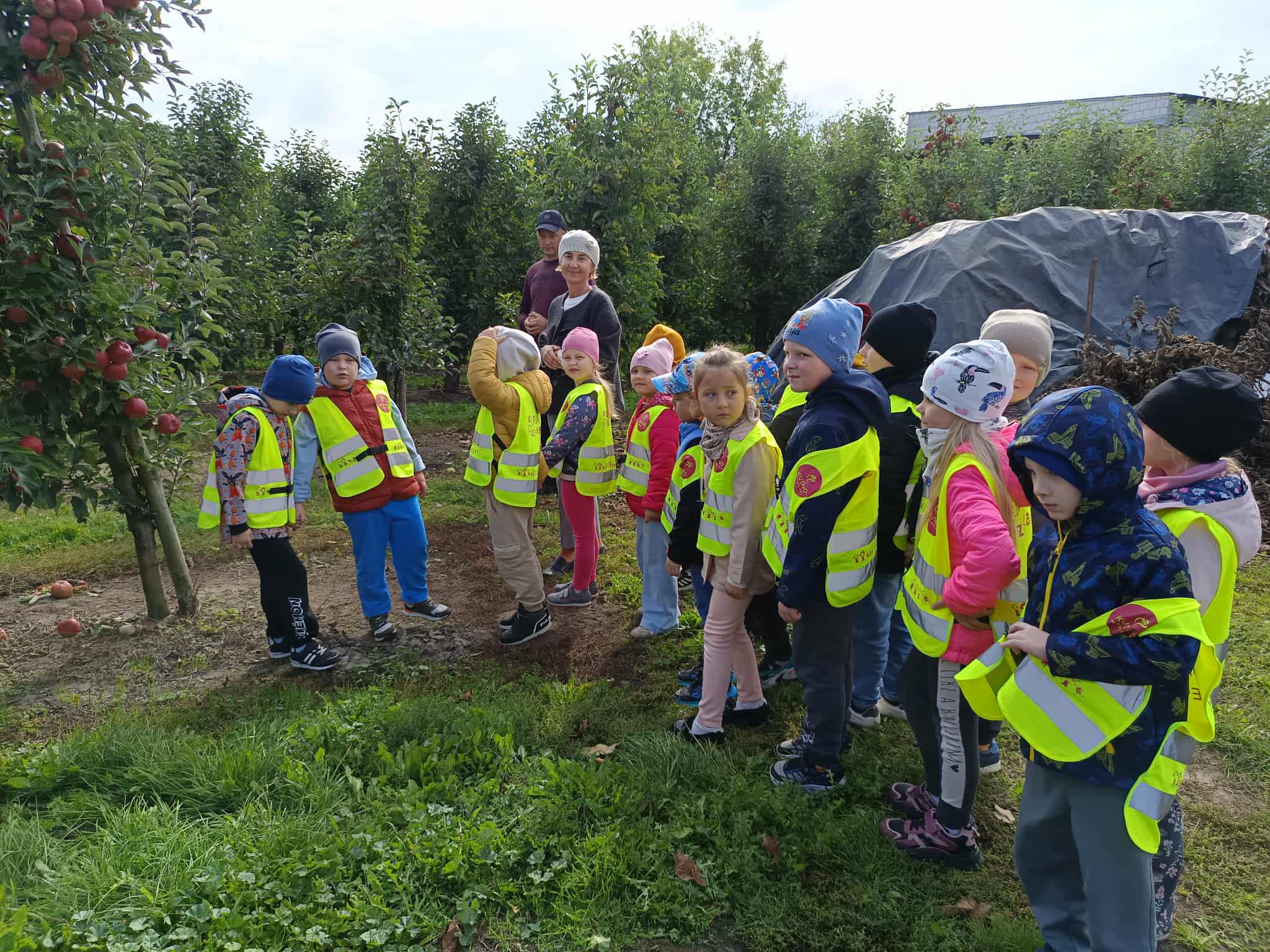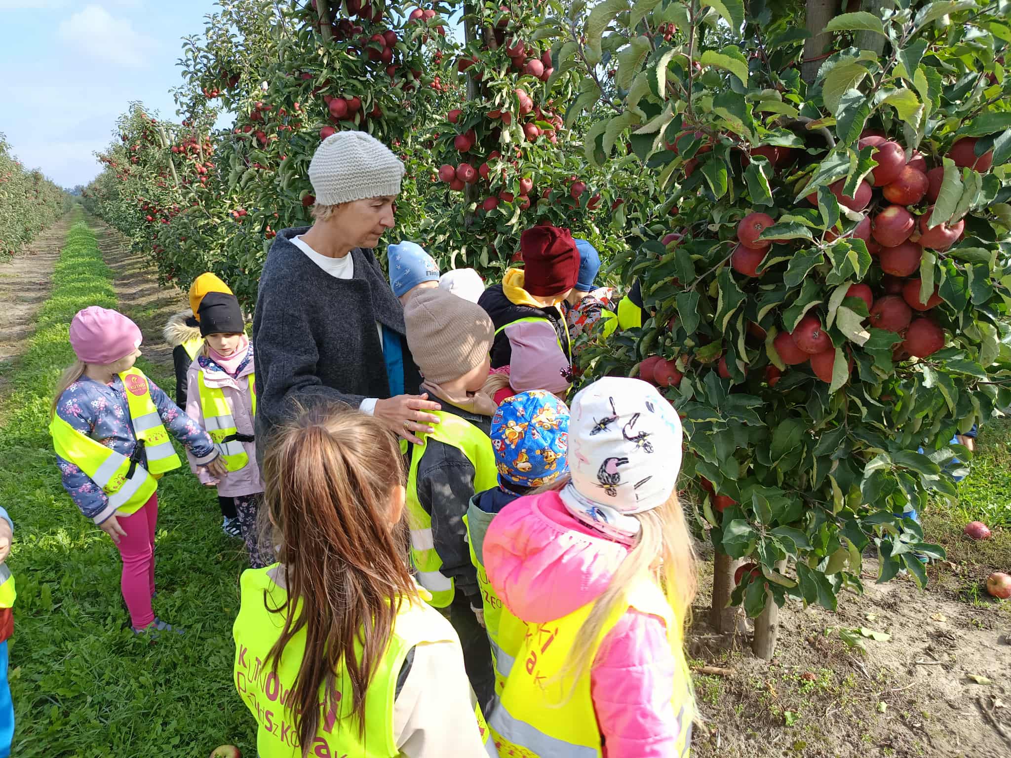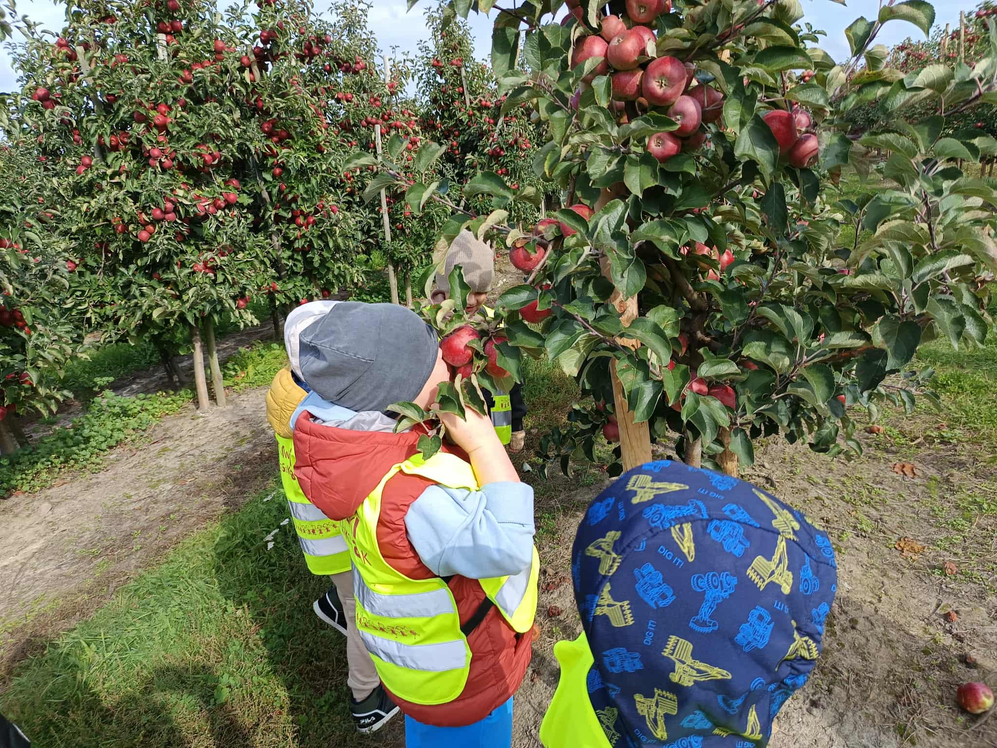 Podczas wycieczki do sadu Rumianki miały okazję z bliska przyjrzeć się pracy sadowników, obserwować zbiory owoców oraz poznać sposoby ich sortowania i przechowywania. Podczas spaceru alejkami dzieci mogły obserwować owoce na drzewach, poczuć ich zapach, a także dostrzec różnice pomiędzy gatunkami. Pyszne, rumiane jabłuszka stanowiły doskonałą bardzo zdrową przekąskę.