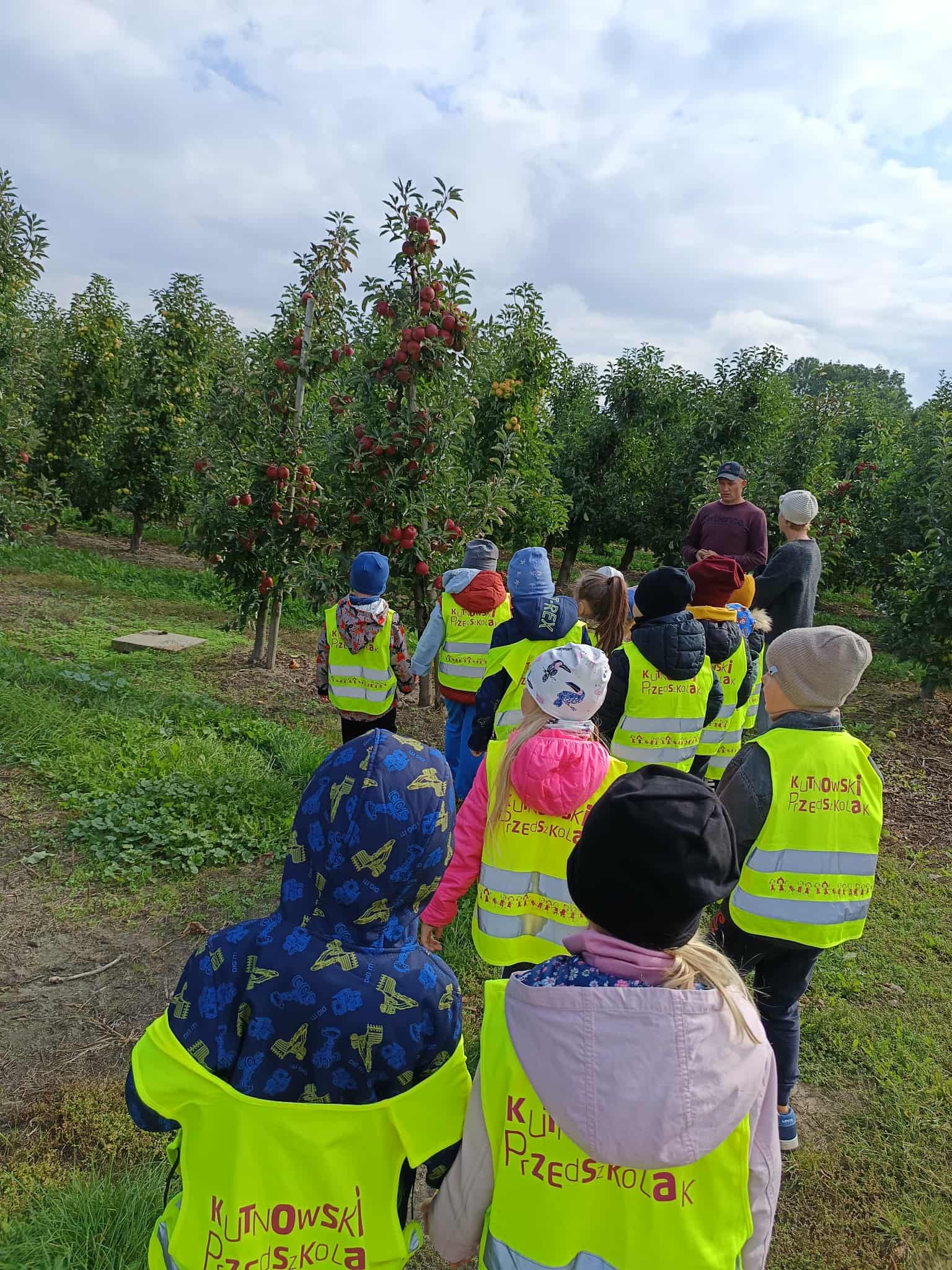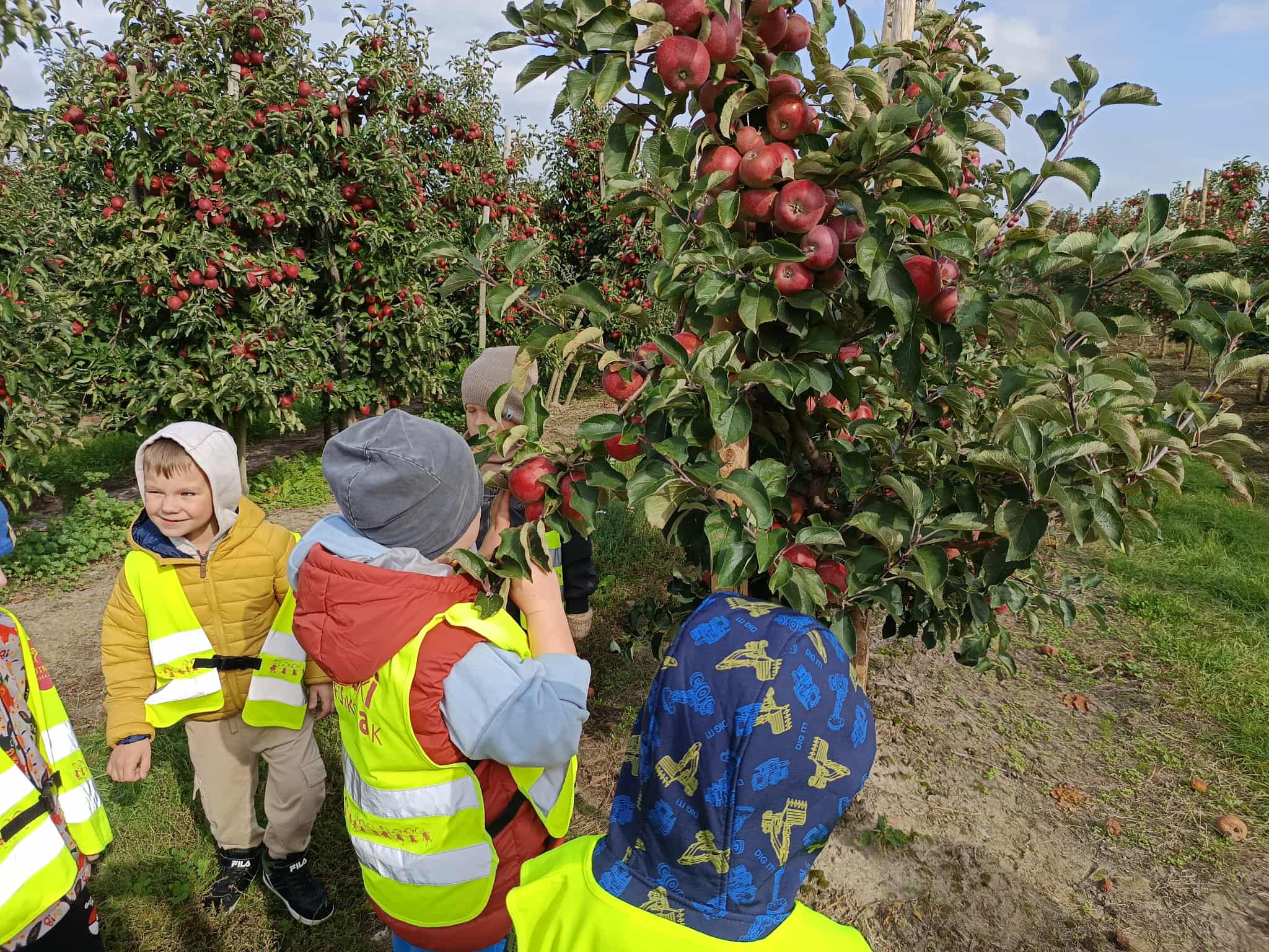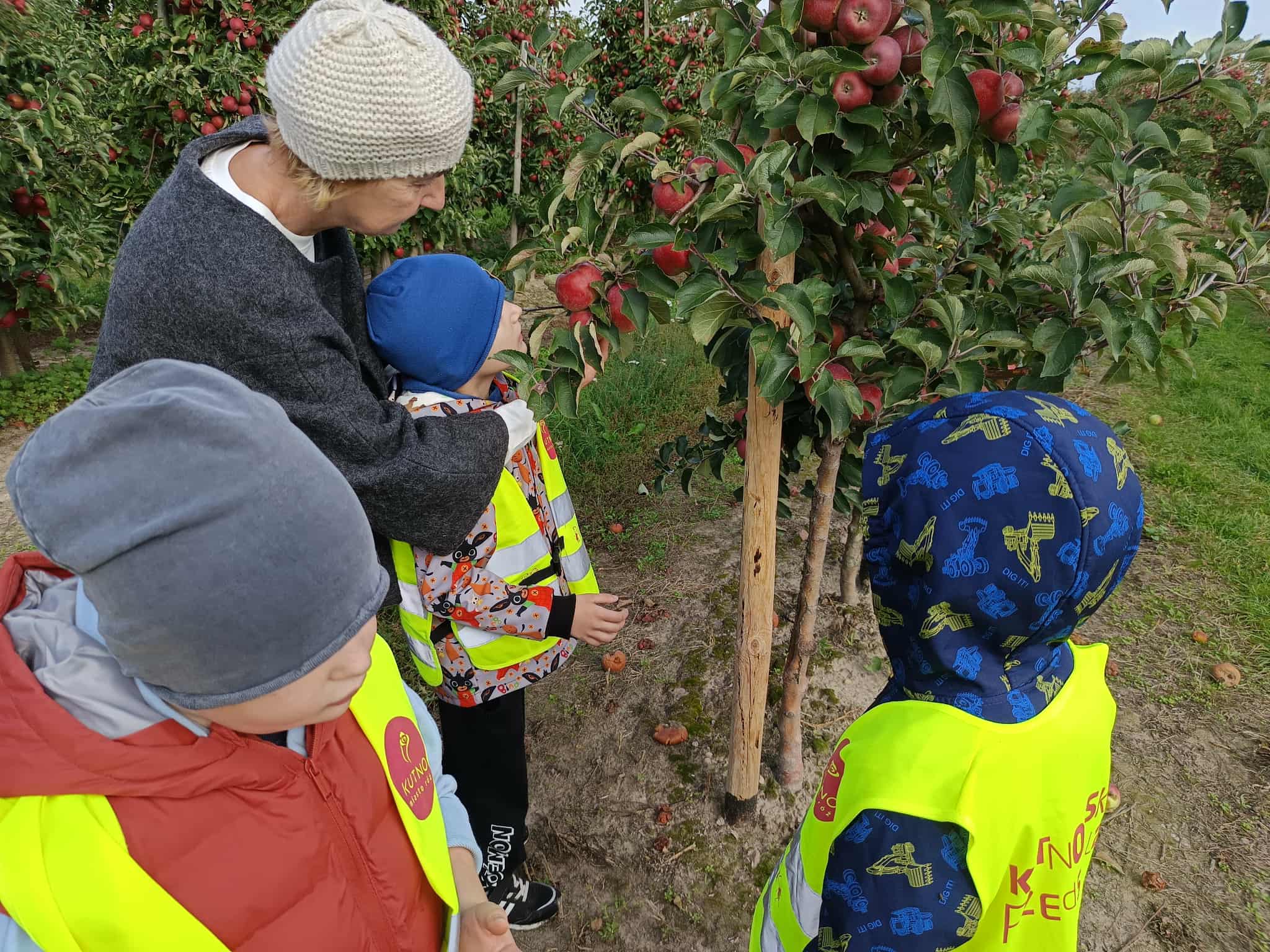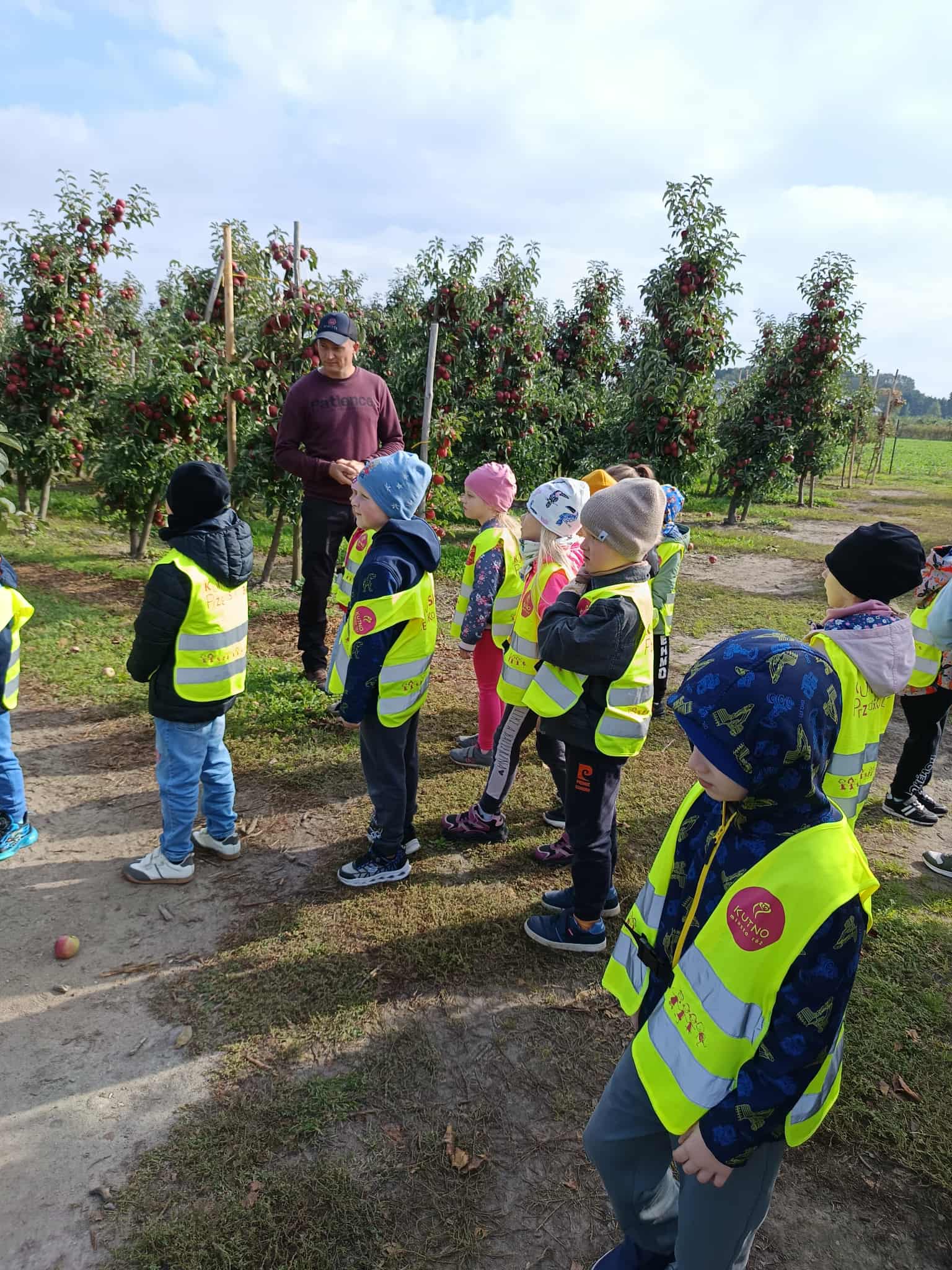 Podczas wycieczki do sadu Rumianki miały okazję z bliska przyjrzeć się pracy sadowników, obserwować zbiory owoców oraz poznać sposoby ich sortowania i przechowywania. Podczas spaceru alejkami dzieci mogły obserwować owoce na drzewach, poczuć ich zapach, a także dostrzec różnice pomiędzy gatunkami. Pyszne, rumiane jabłuszka stanowiły doskonałą bardzo zdrową przekąskę.