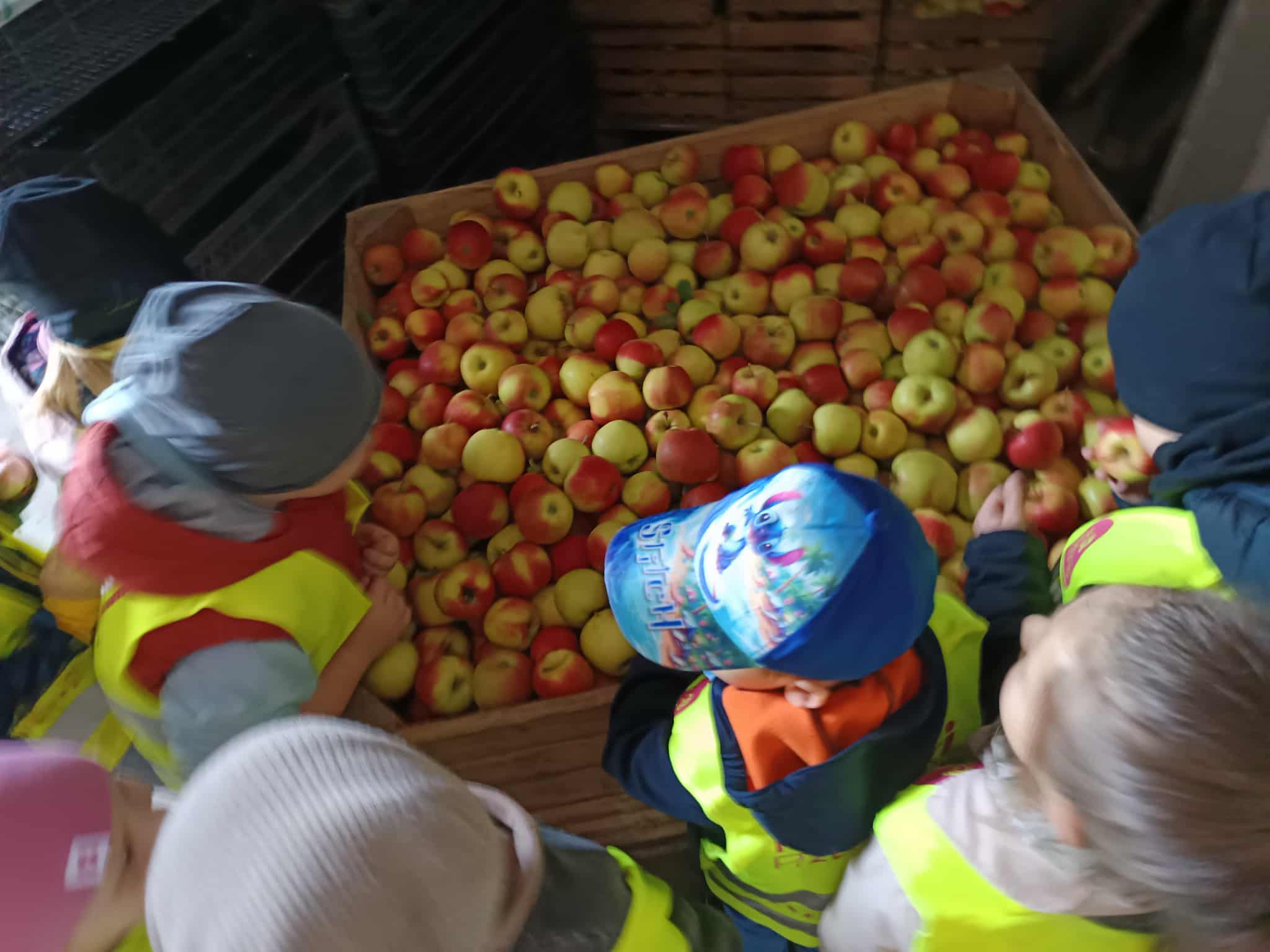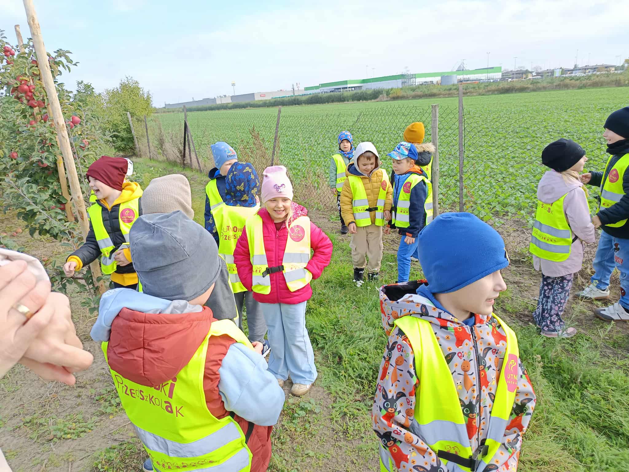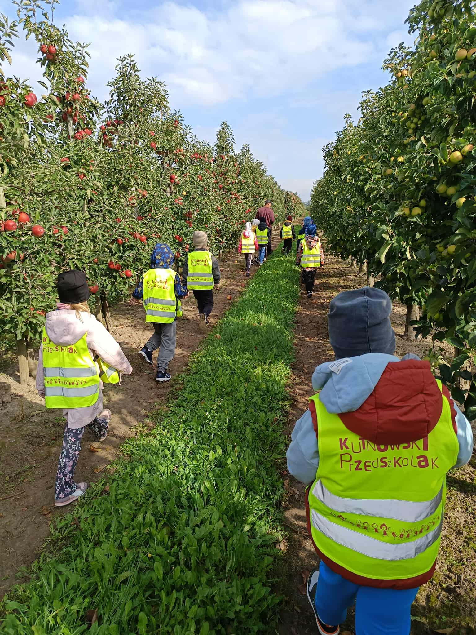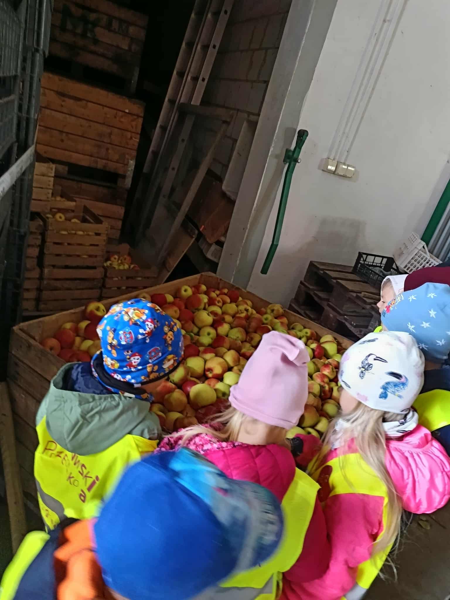 Podczas wycieczki do sadu Rumianki miały okazję z bliska przyjrzeć się pracy sadowników, obserwować zbiory owoców oraz poznać sposoby ich sortowania i przechowywania. Podczas spaceru alejkami dzieci mogły obserwować owoce na drzewach, poczuć ich zapach, a także dostrzec różnice pomiędzy gatunkami. Pyszne, rumiane jabłuszka stanowiły doskonałą bardzo zdrową przekąskę.