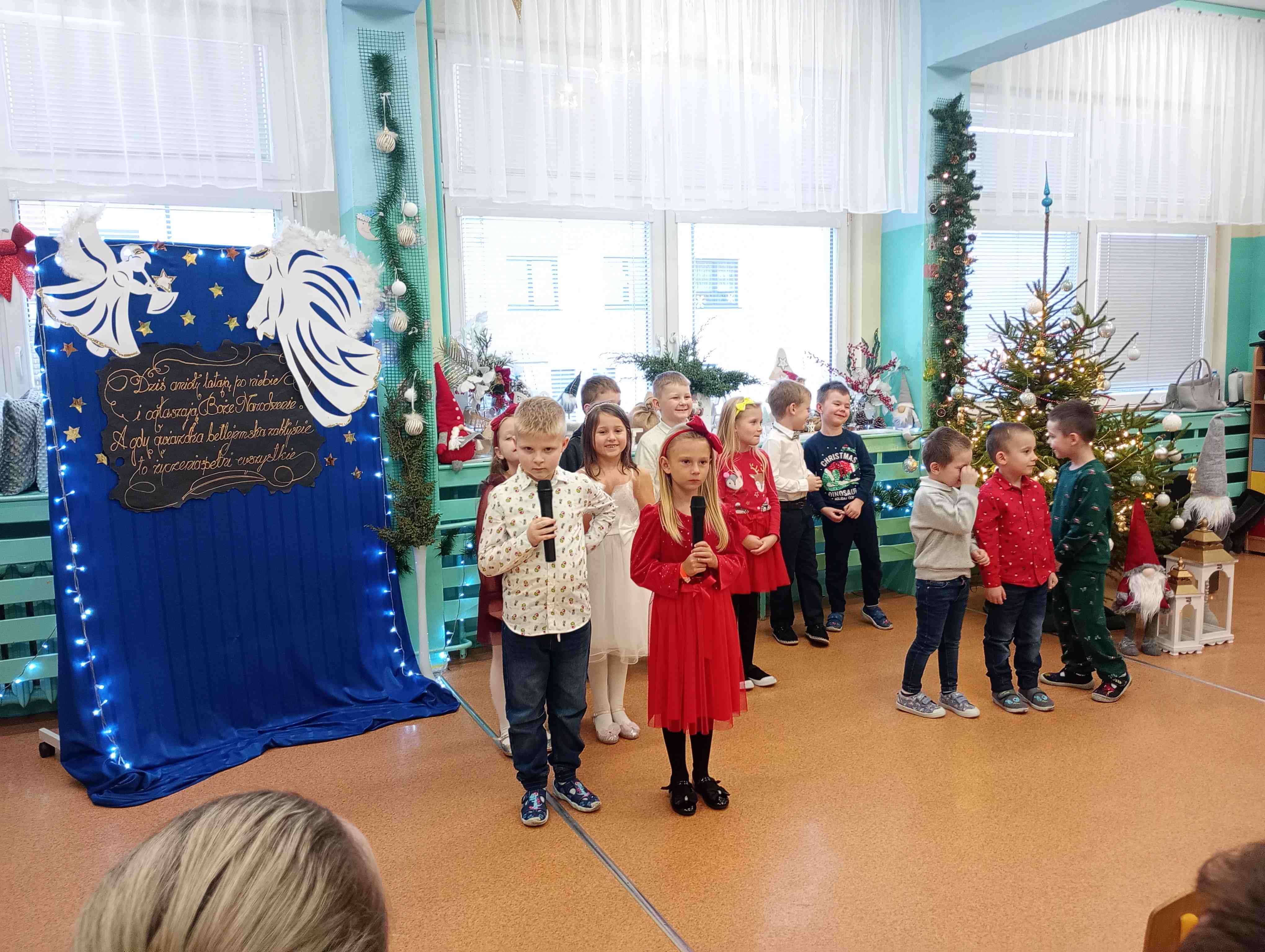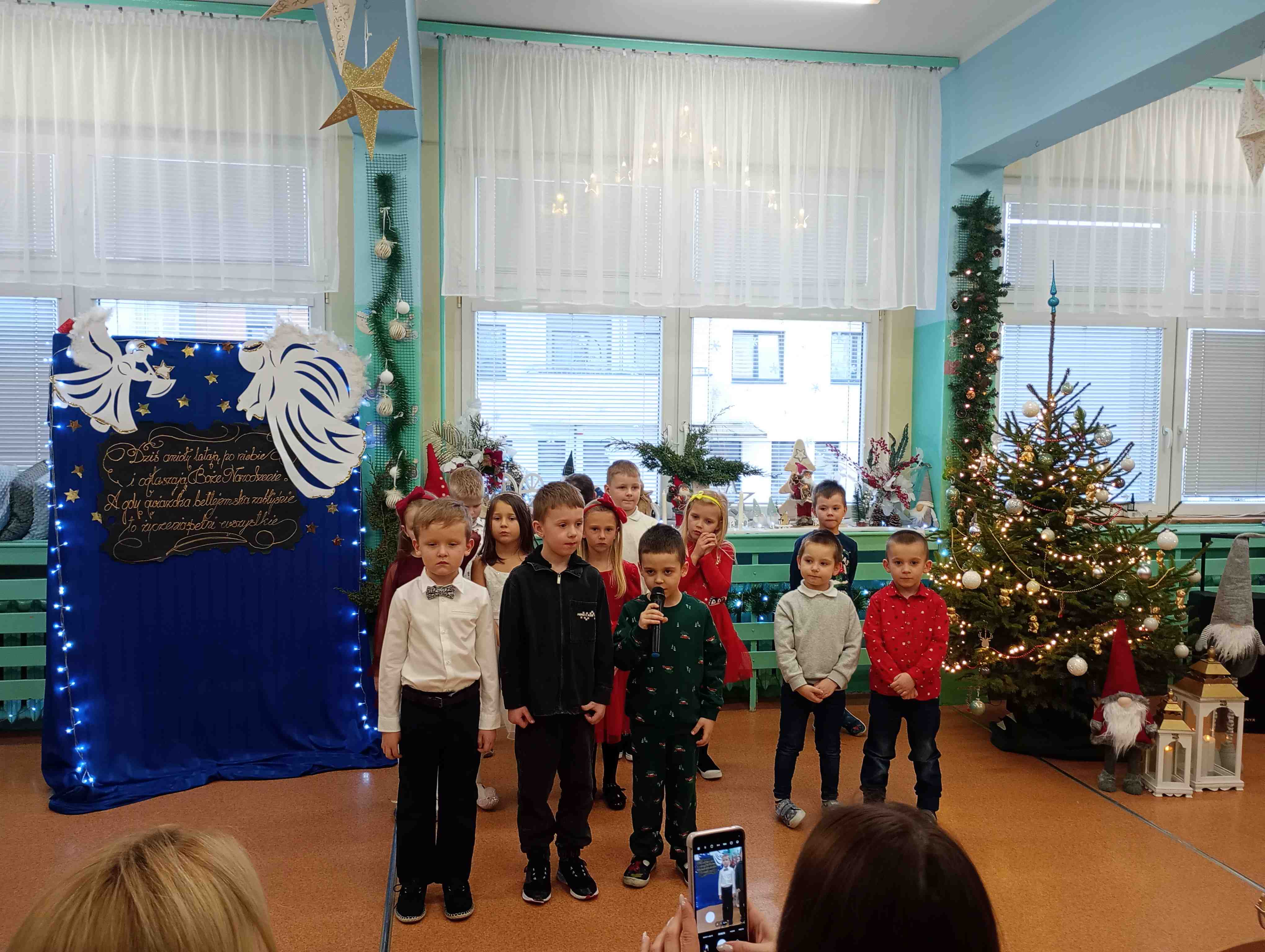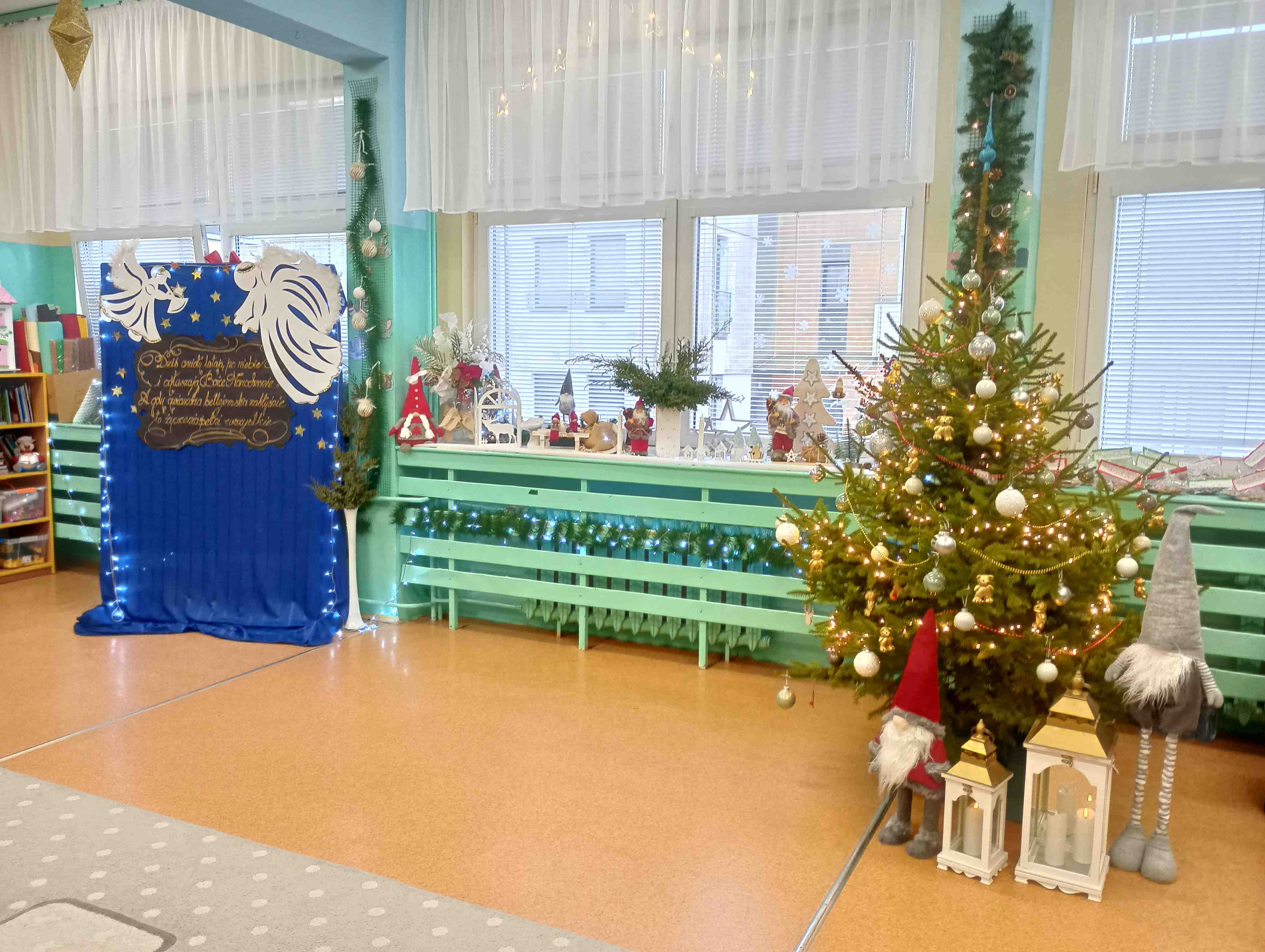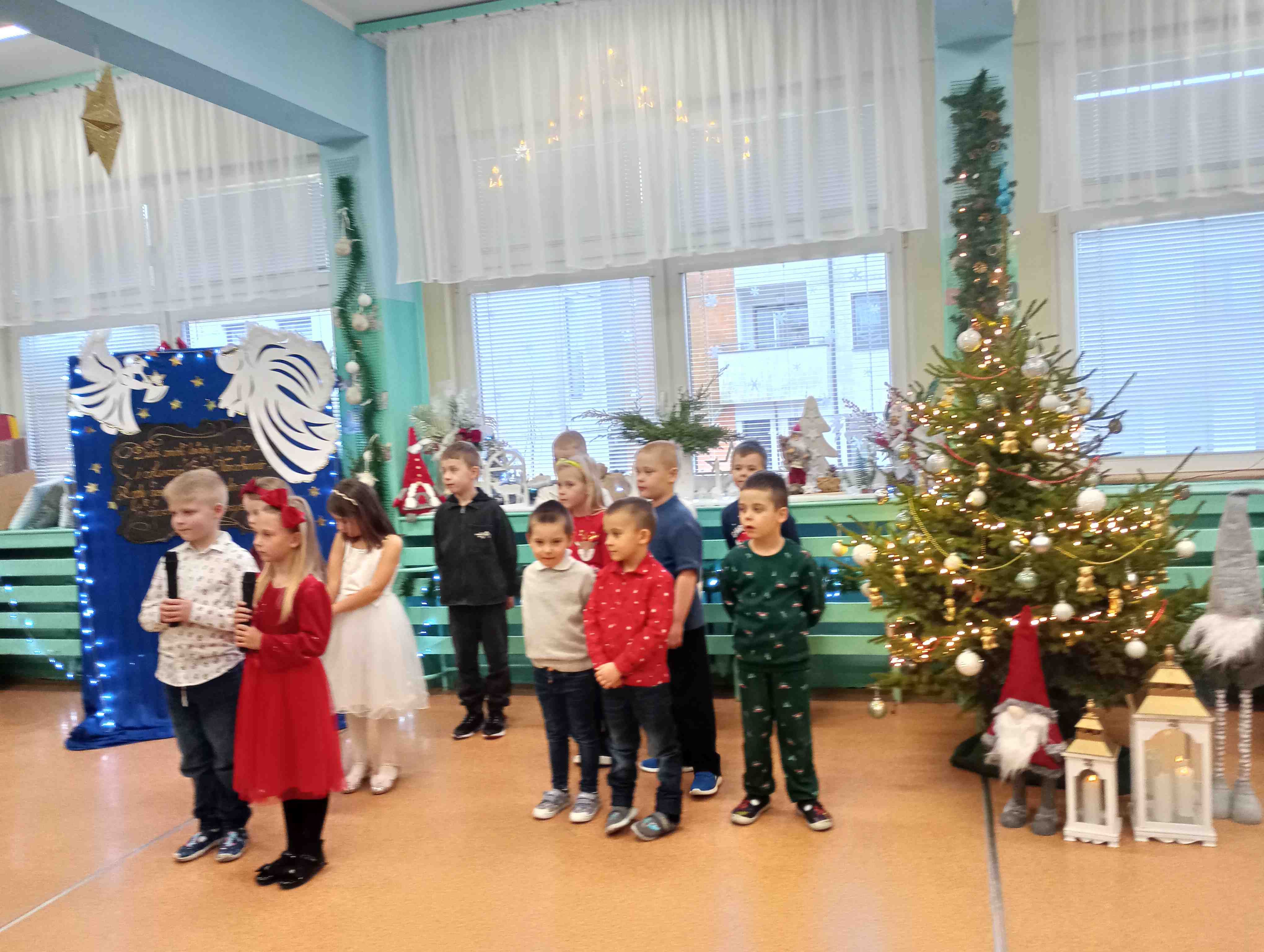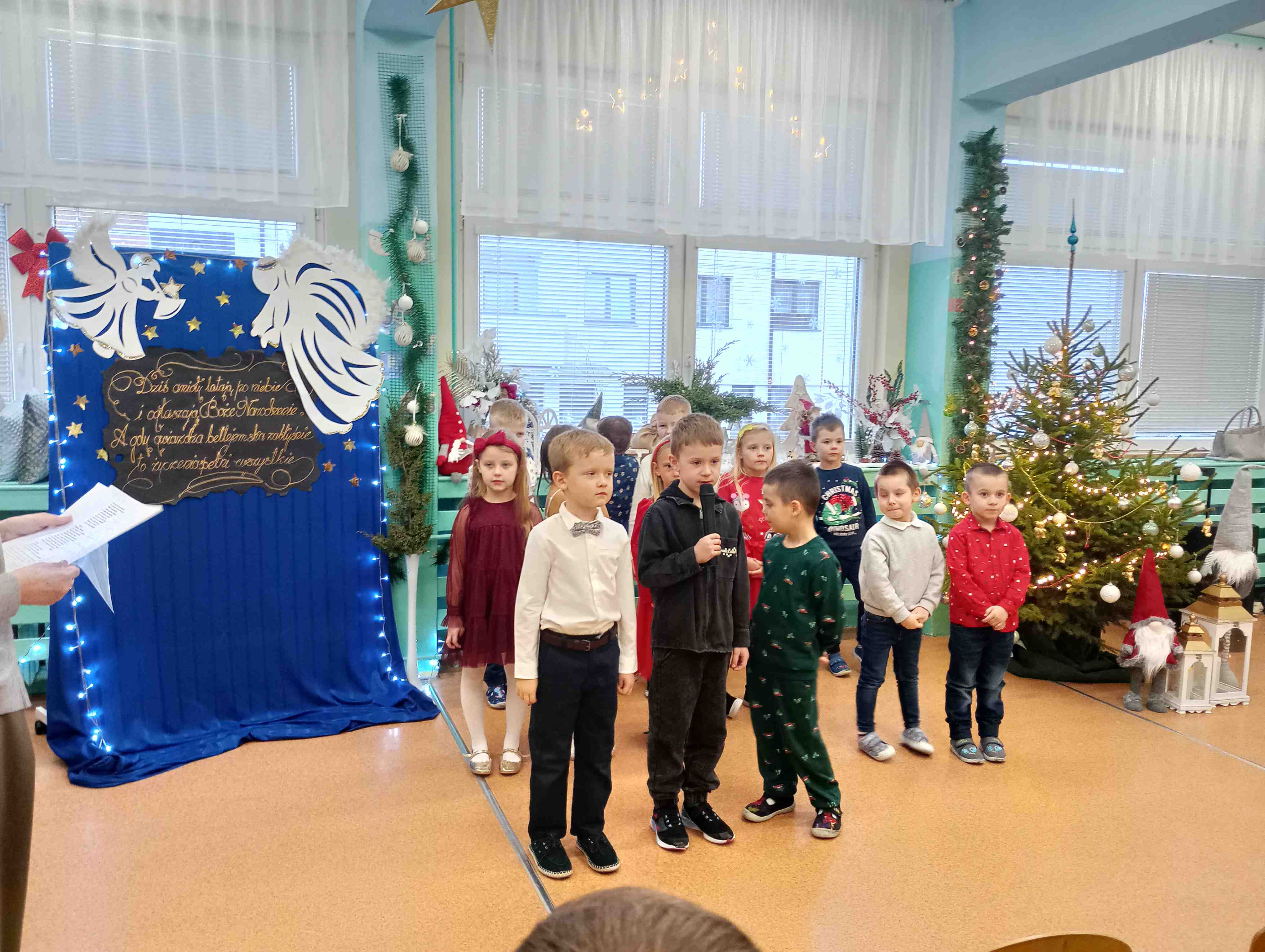 Te pierniczki pięknie zapakowane i z podpisaną przez dzieci wizytówką z życzeniami były prezentem dla rodziców na spotkaniu przedświątecznym. Na tle nastrojowej dekoracji w odświętnych strojach przedszkolaki zaprezentowały program artystyczny o tematyce Świąt Bożego Narodzenia.