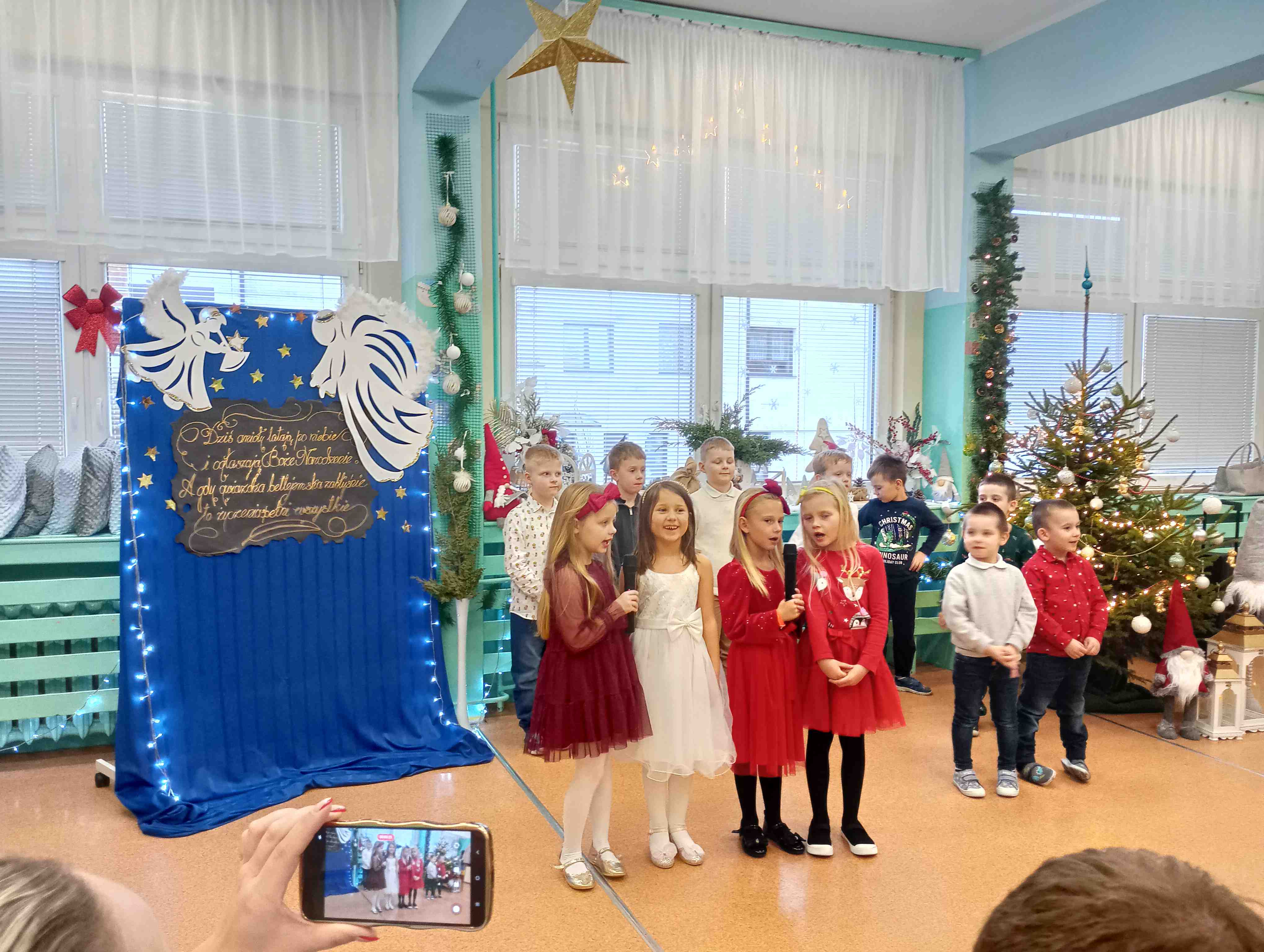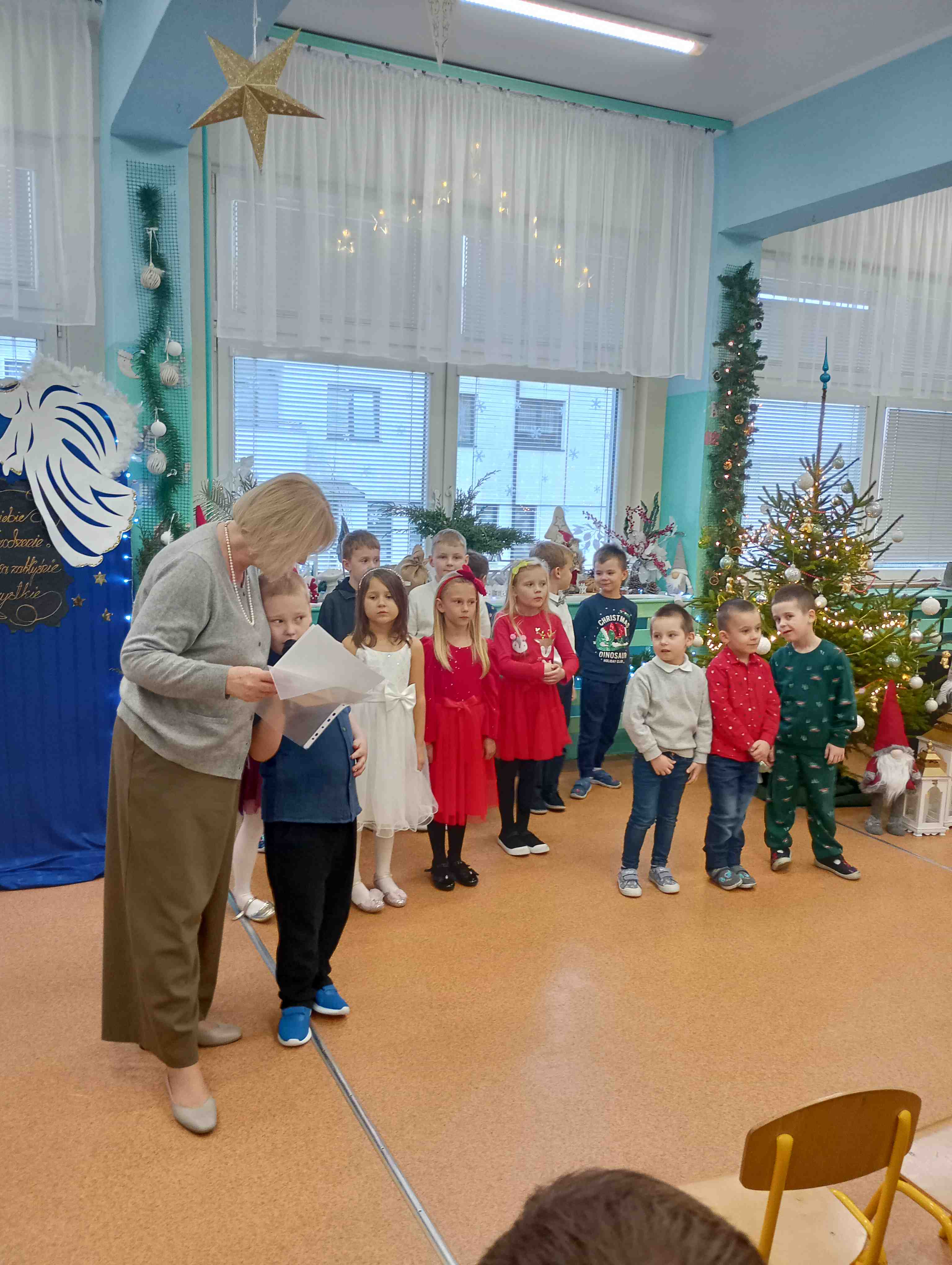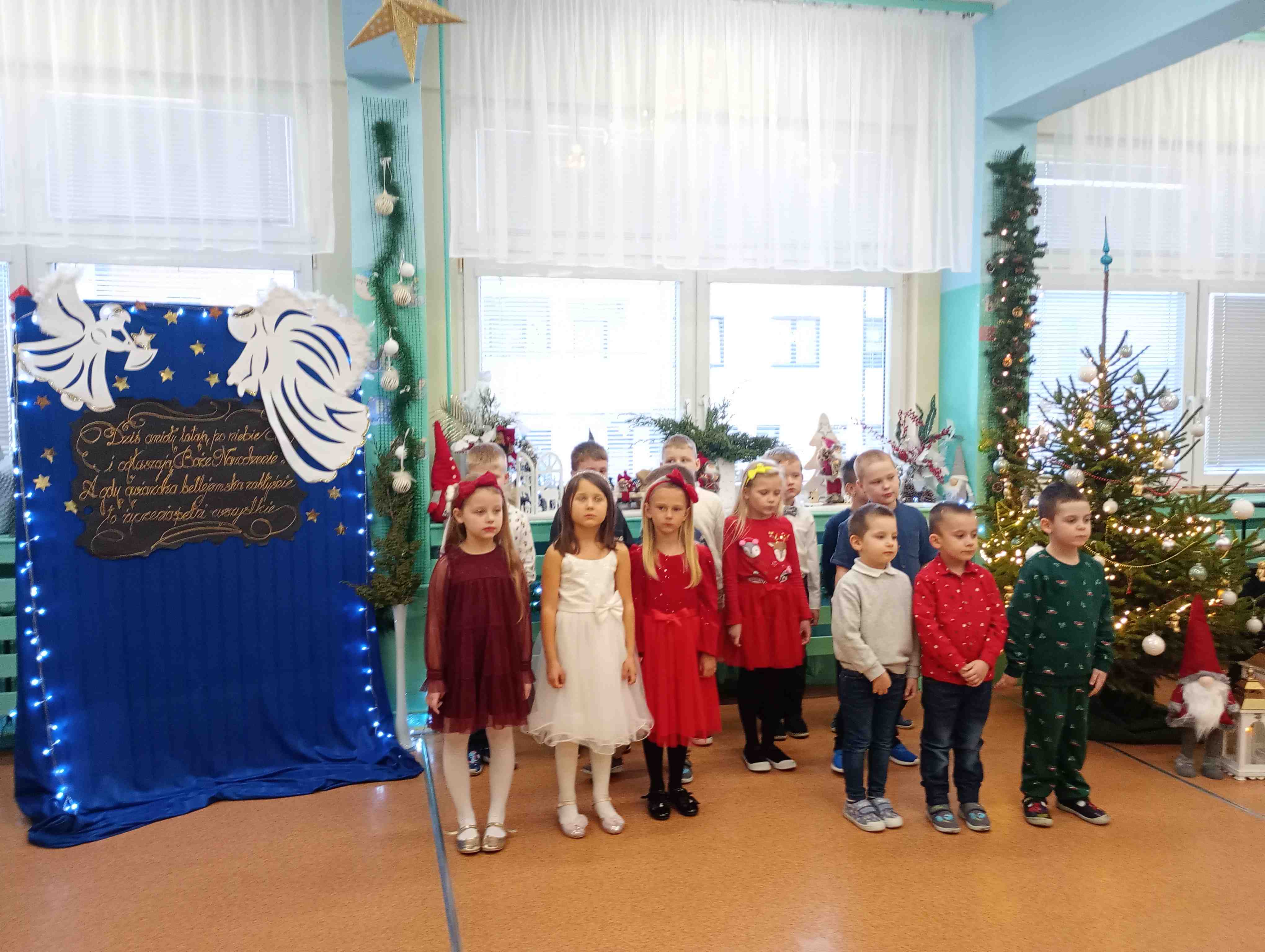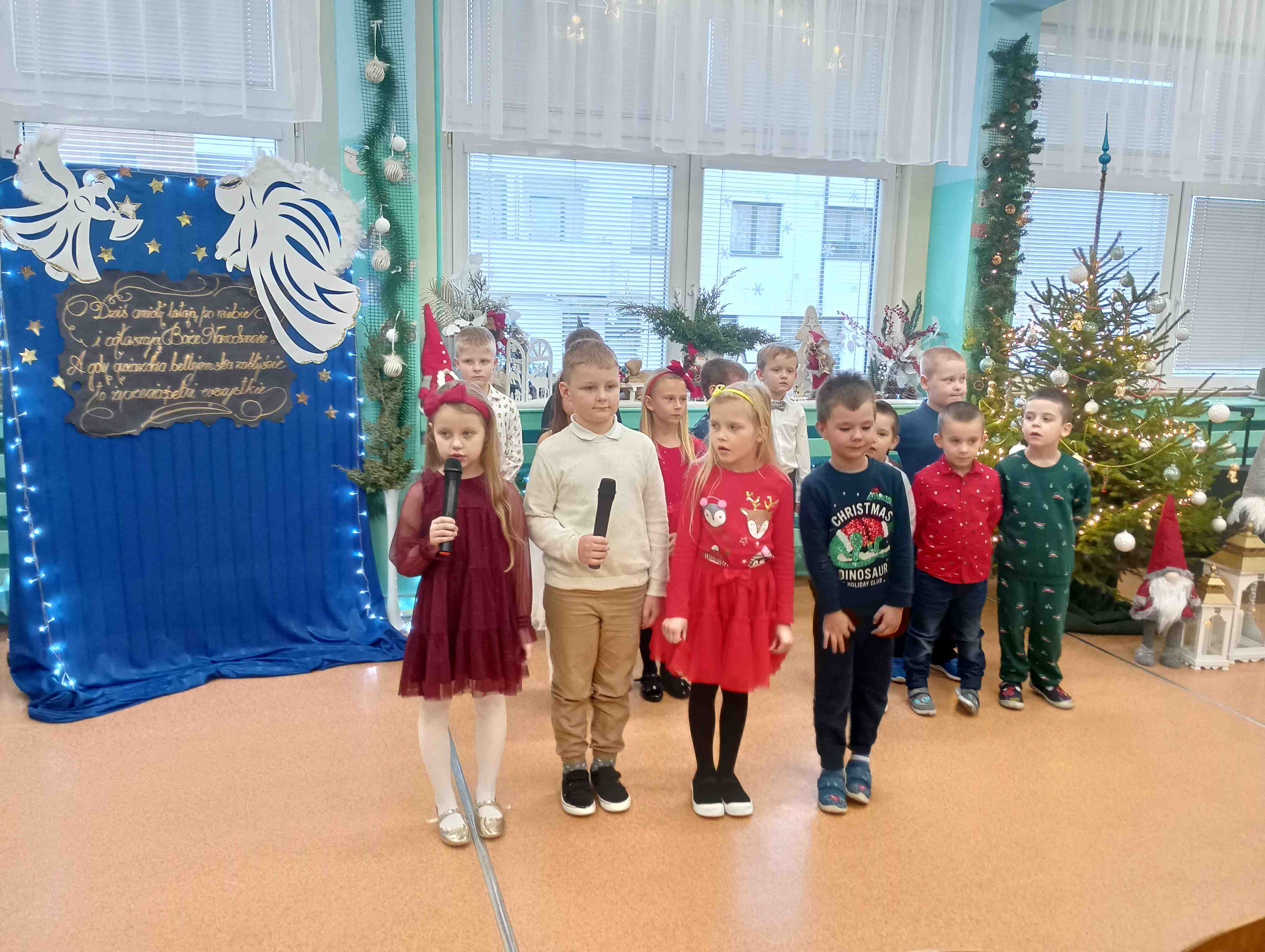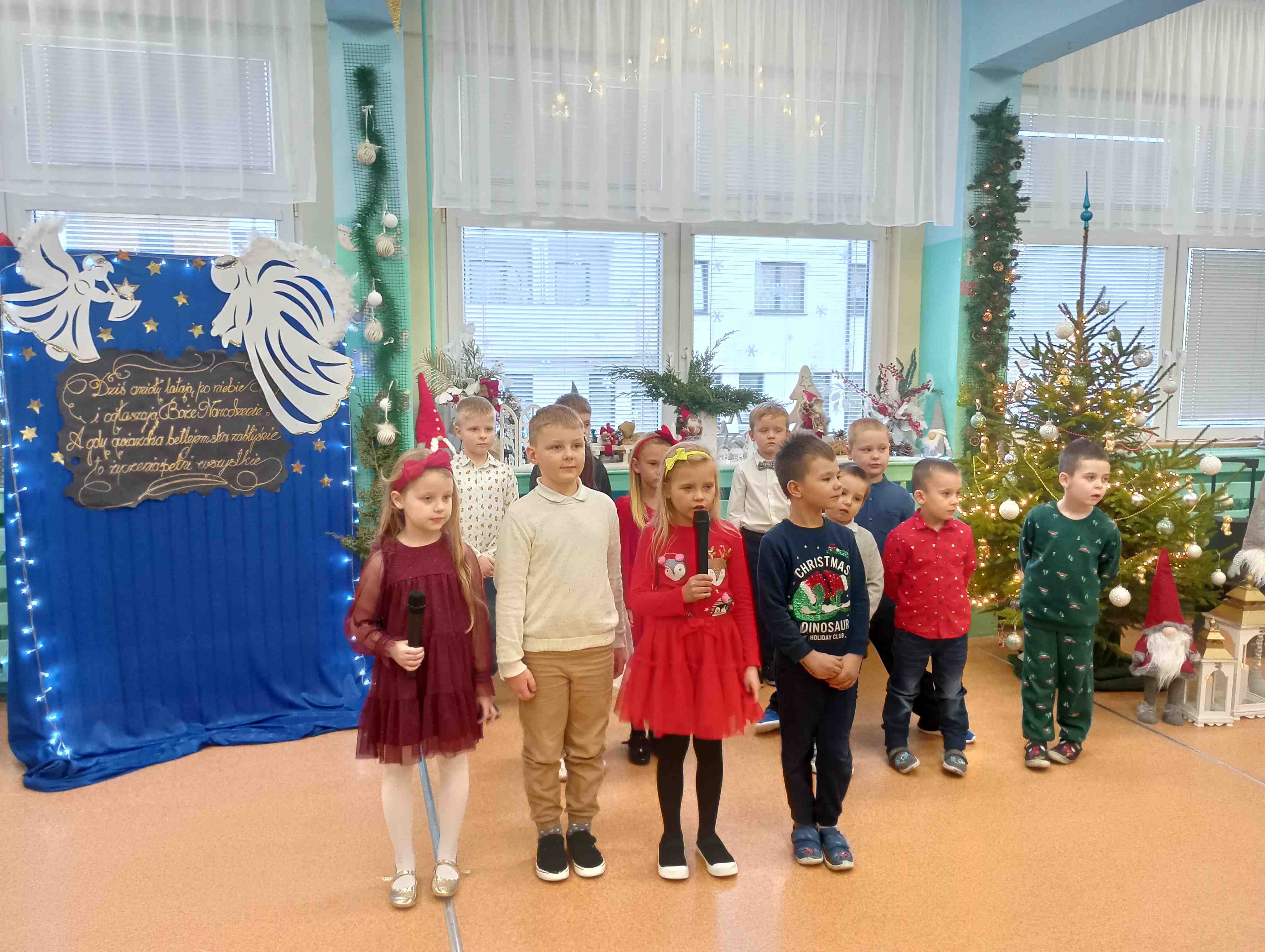 Te pierniczki pięknie zapakowane i z podpisaną przez dzieci wizytówką z życzeniami były prezentem dla rodziców na spotkaniu przedświątecznym. Na tle nastrojowej dekoracji w odświętnych strojach przedszkolaki zaprezentowały program artystyczny o tematyce Świąt Bożego Narodzenia.