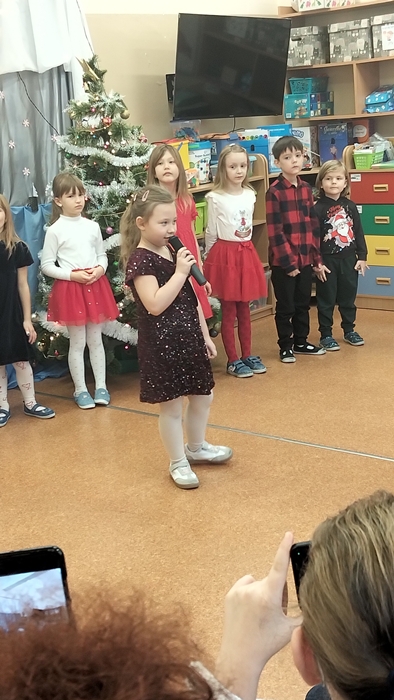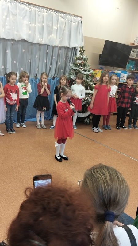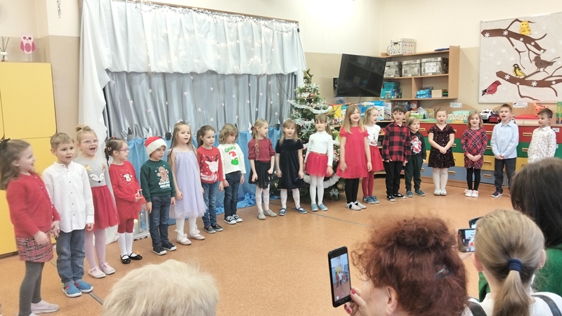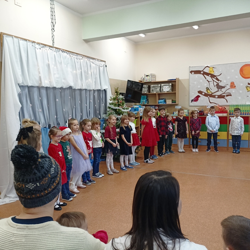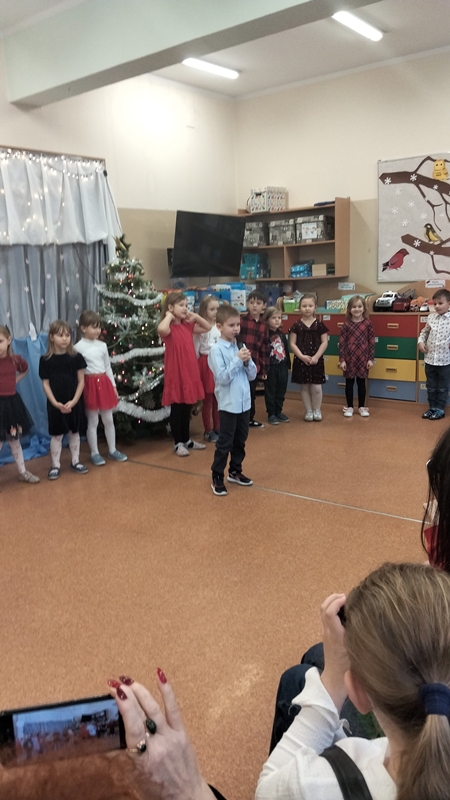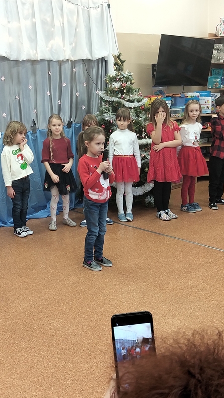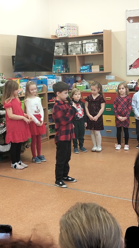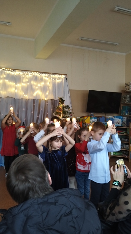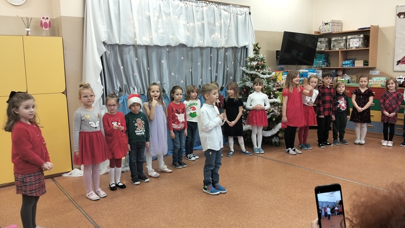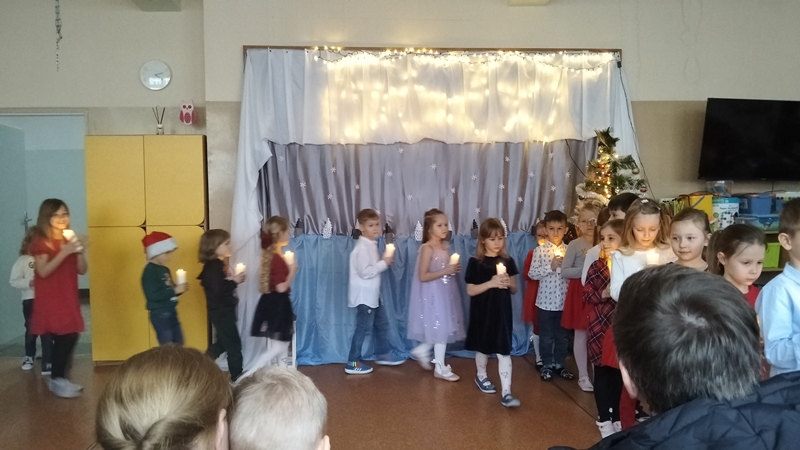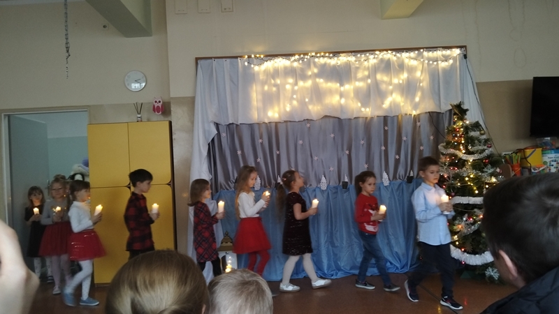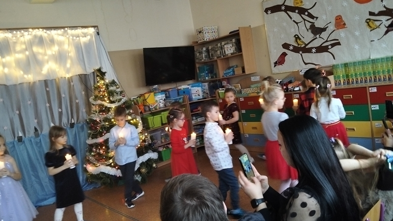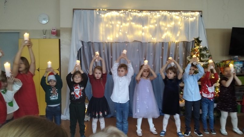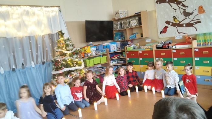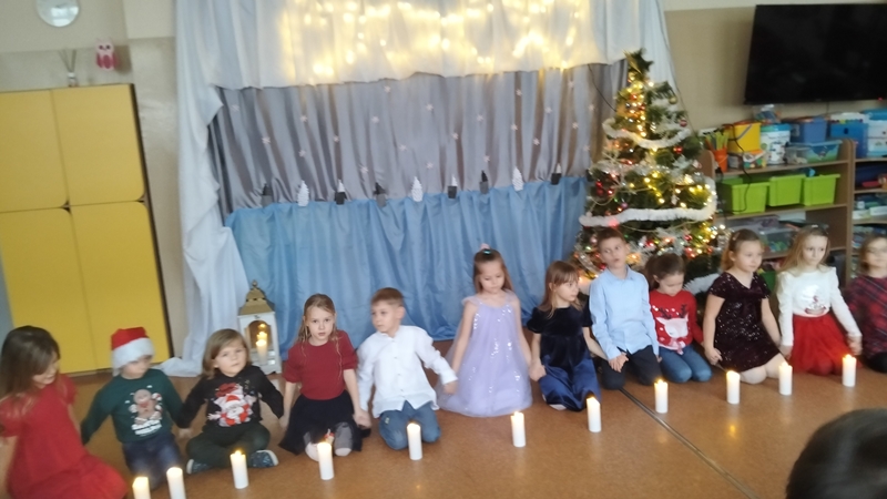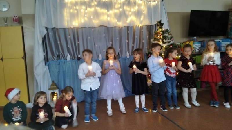 18 grudnia w naszej grupie odbyło się spotkanie Wigilijne dla rodziców i najbliższych. Dzieci przygotowały montaż muzyczno-słowny, a na koniec zaprezentowały taniec z lampionami. Magia świąt zagościła w naszej sali, teraz tylko oczekujemy Mikołaja i cudownych prezentów pod choinką. Życzymy wszystkim dzieciom i ich rodzinom, cudownych i magicznych świąt.