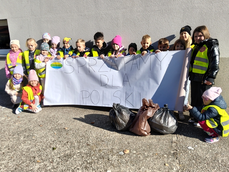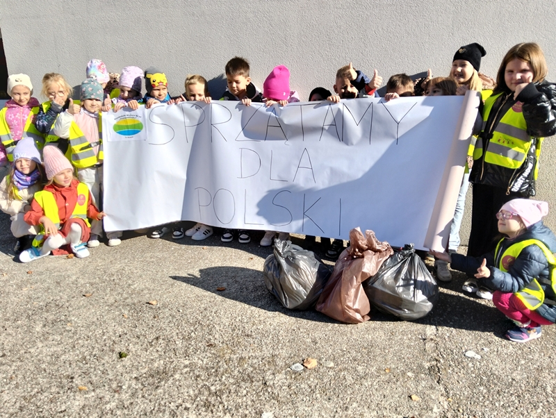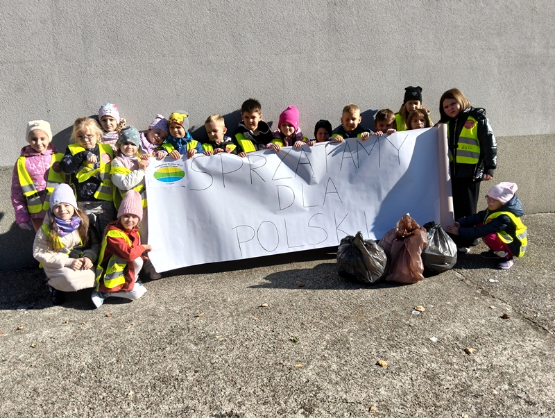 3 października dzieci przystąpiły do X Edycji #SprzątamyDlaPolski# - wszystkie przedszkolaki ochoczo ruszyły do sprzątania terenu przyległego do szkoły. Akcja została objęta Honorowym Patronem Prezydenta Rzeczpospolitej Polskiej Karola Nawrockiego.