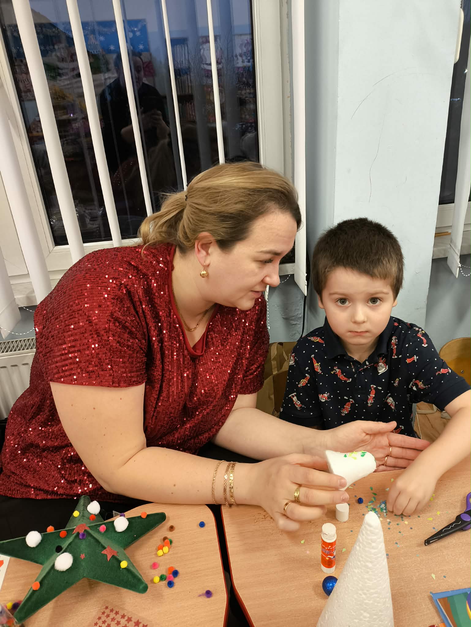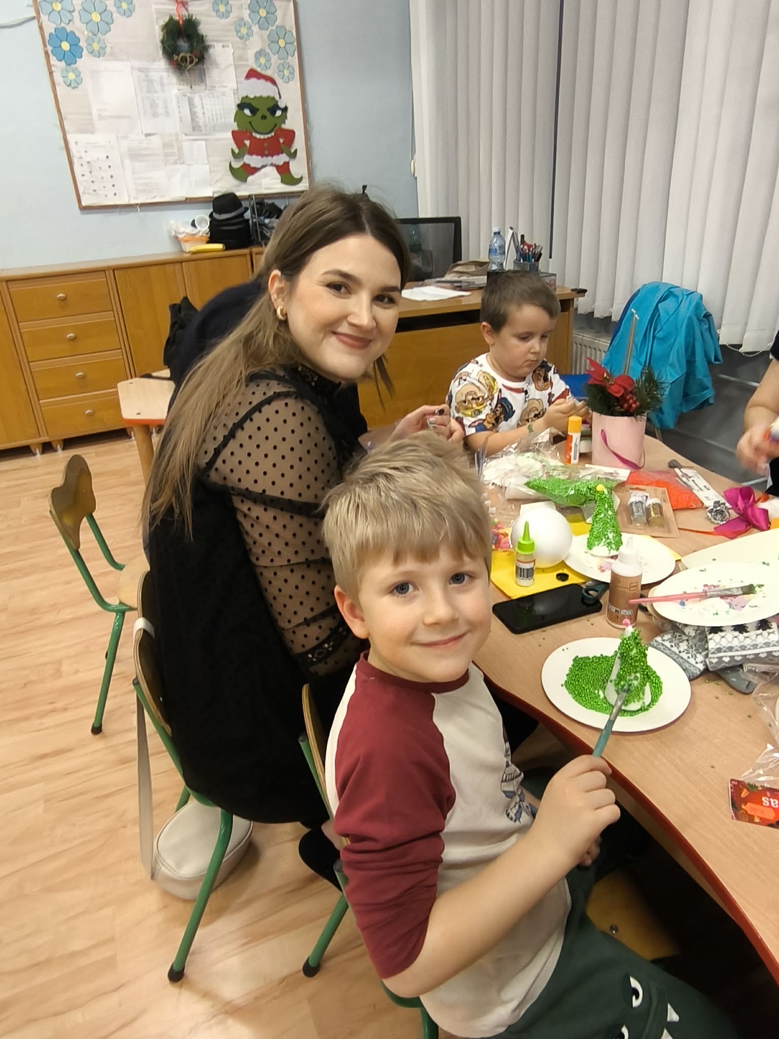 11 grudnia w grupie Myszek odbyły się świąteczne warsztaty plastyczne dla dzieci i rodziców pt. „Świąteczna ozdoba”. Uczestnicy wspólnie tworzyli dekoracje świąteczne, rozwijając swoją kreatywność i zdolności manualne. Warsztaty przebiegały w miłej, radosnej atmosferze i były okazją do wspólnego spędzenia czasu oraz wprowadzenia się w świąteczny nastrój.