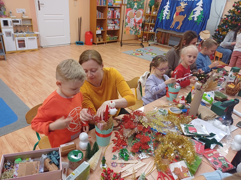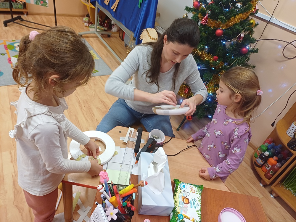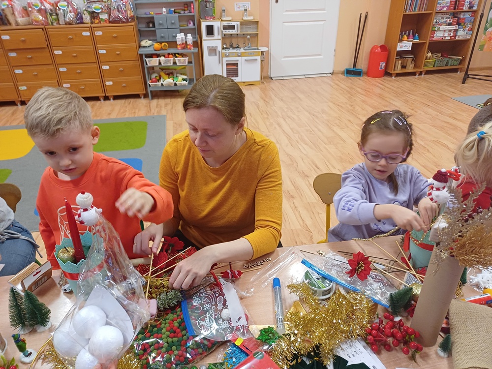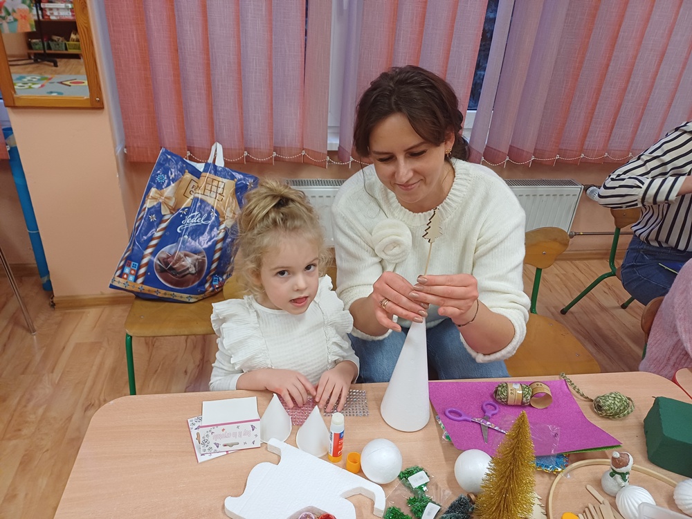 W środę 10 grudnia w godzinach popołudniowych w naszej grupie odbyły się warsztaty z rodzicami pod hasłem „Świąteczna Ozdoba”. Dzieci wspólnie z rodzicami stworzyły przepiękne, pomysłowe ozdoby świąteczne, które już wkrótce będzie można podziwiać na wystawie w korytarzu. Serdecznie dziękujemy wszystkim rodzicom za obecność, zaangażowanie i ciepłą, twórczą atmosferę. To było naprawdę wyjątkowe spotkanie!
