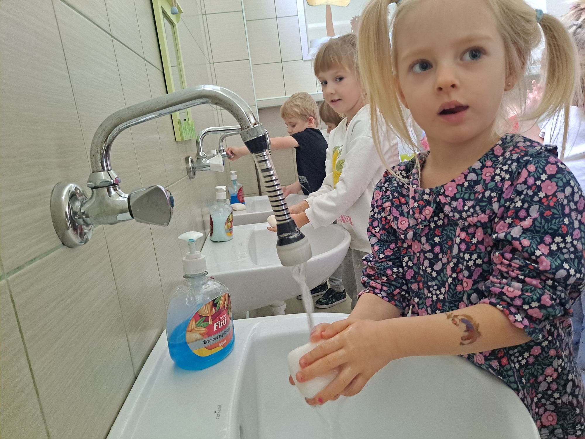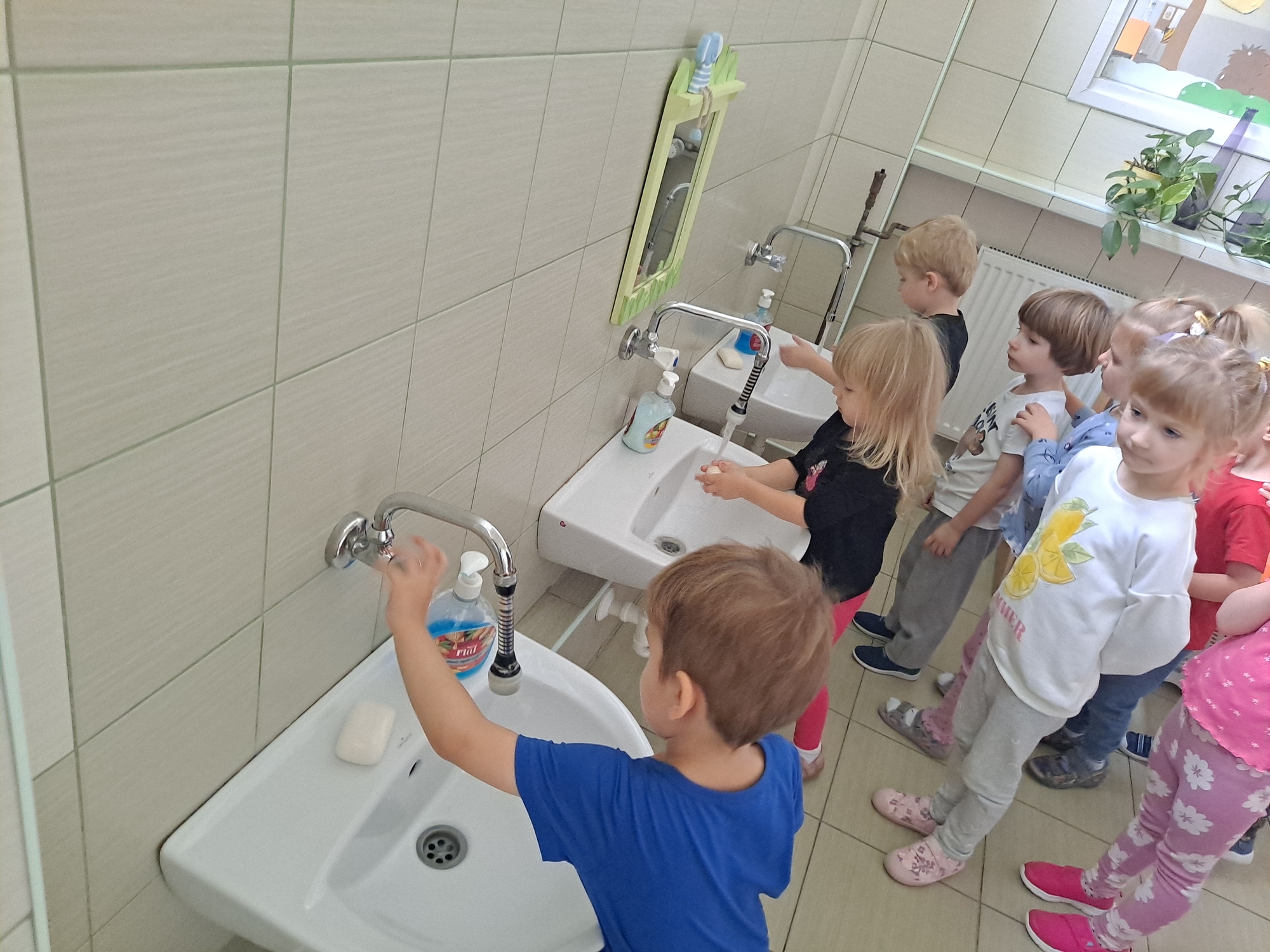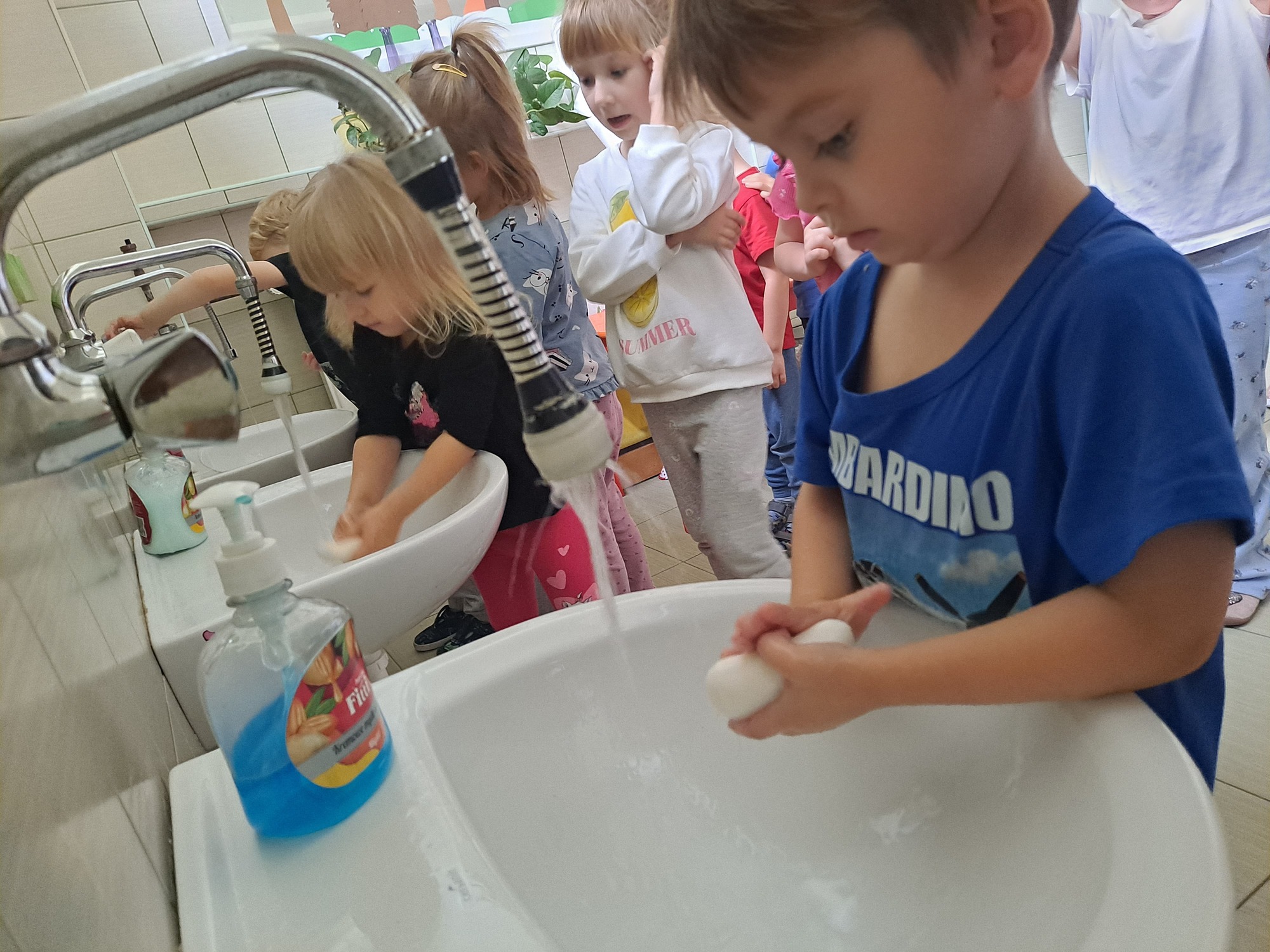 Na zakończenie wspólnie przypomnieliśmy sobie zasady prawidłowego mycia rąk, a dzieci obiecały, że będą pamiętać o tym każdego dnia – przed posiłkiem, po zabawie i po powrocie do domu.