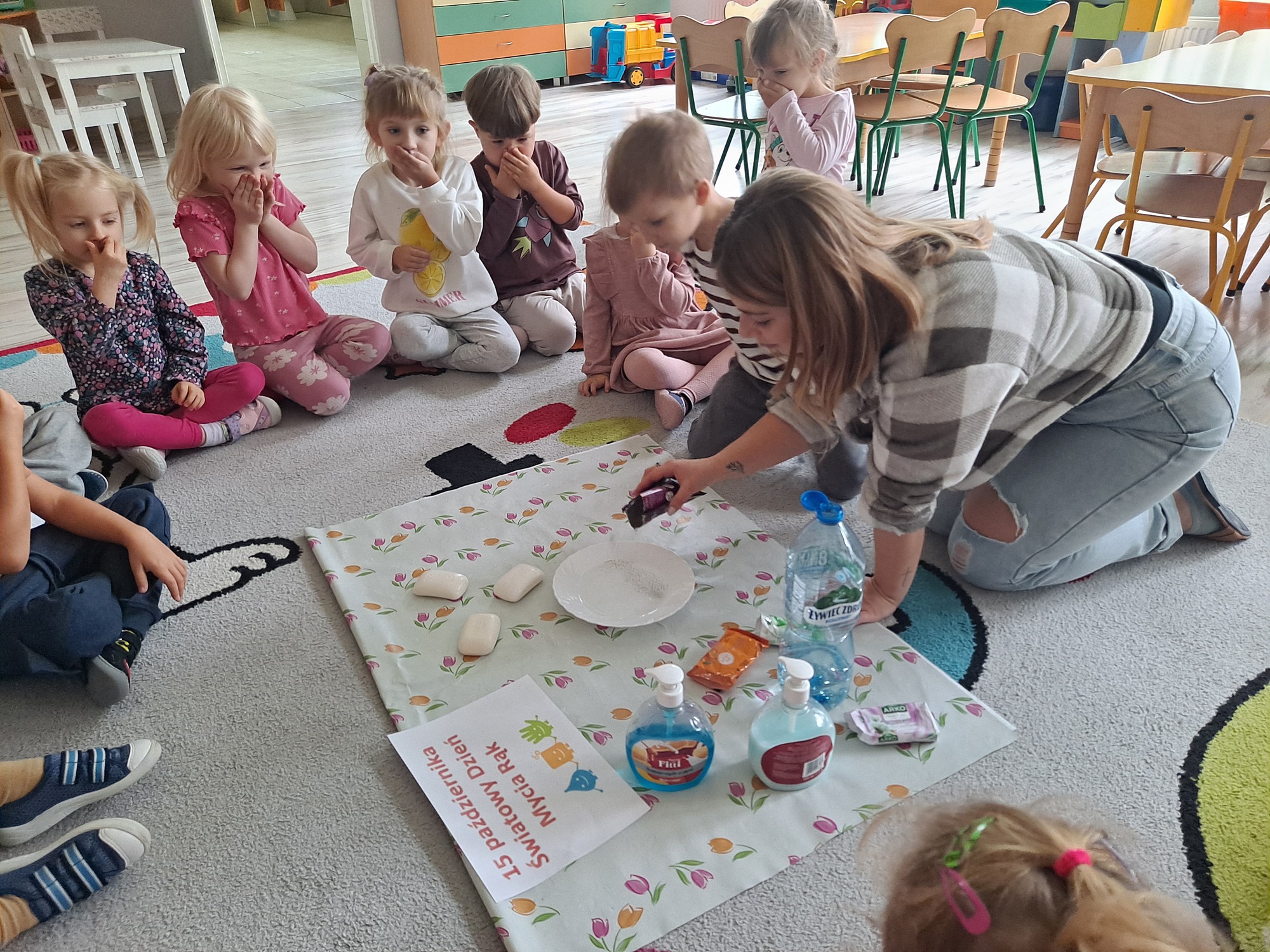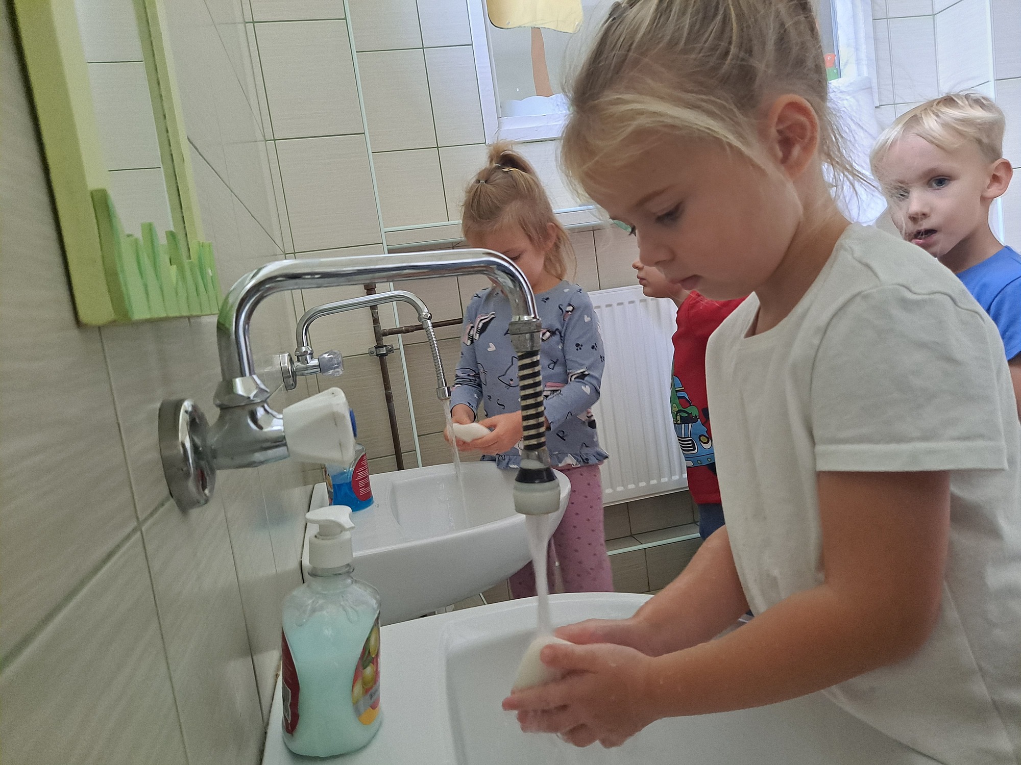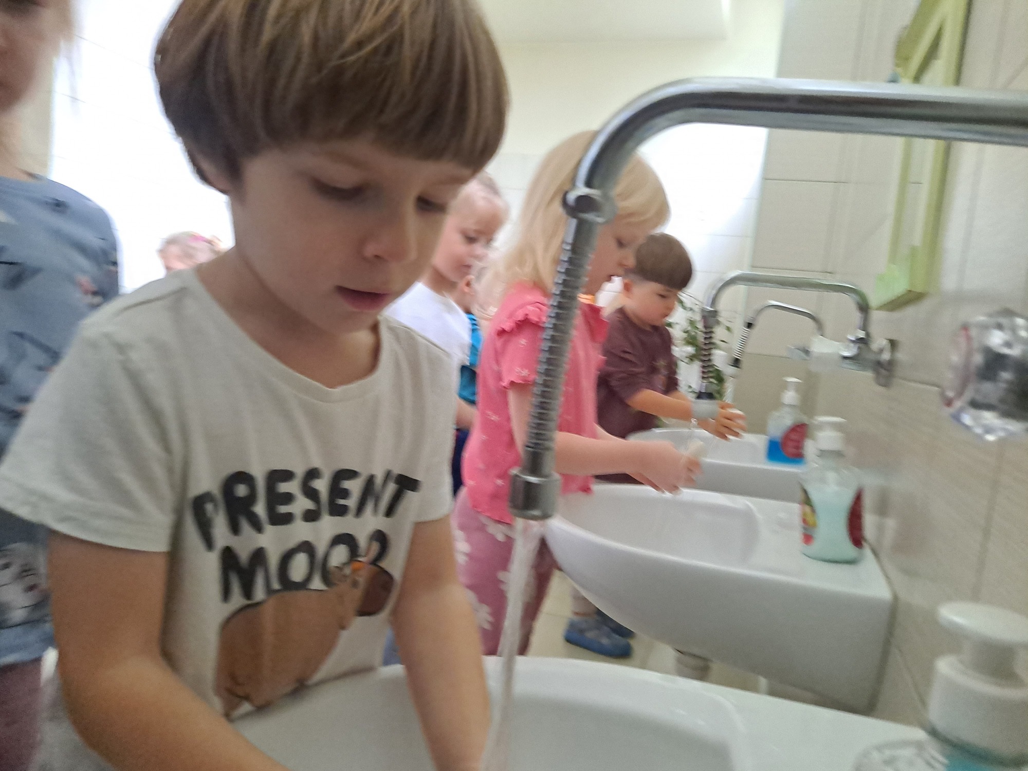 Na zakończenie wspólnie przypomnieliśmy sobie zasady prawidłowego mycia rąk, a dzieci obiecały, że będą pamiętać o tym każdego dnia – przed posiłkiem, po zabawie i po powrocie do domu.