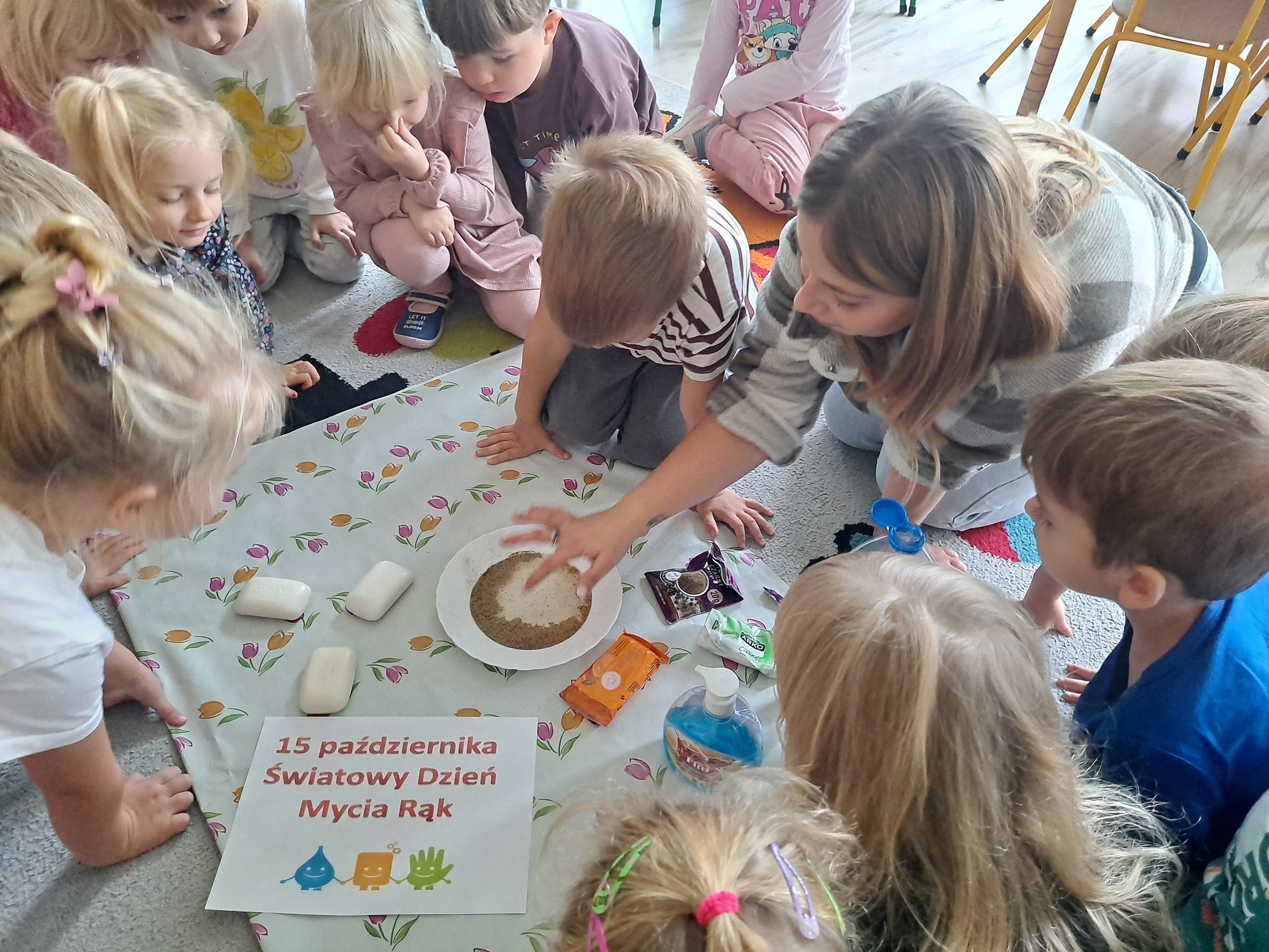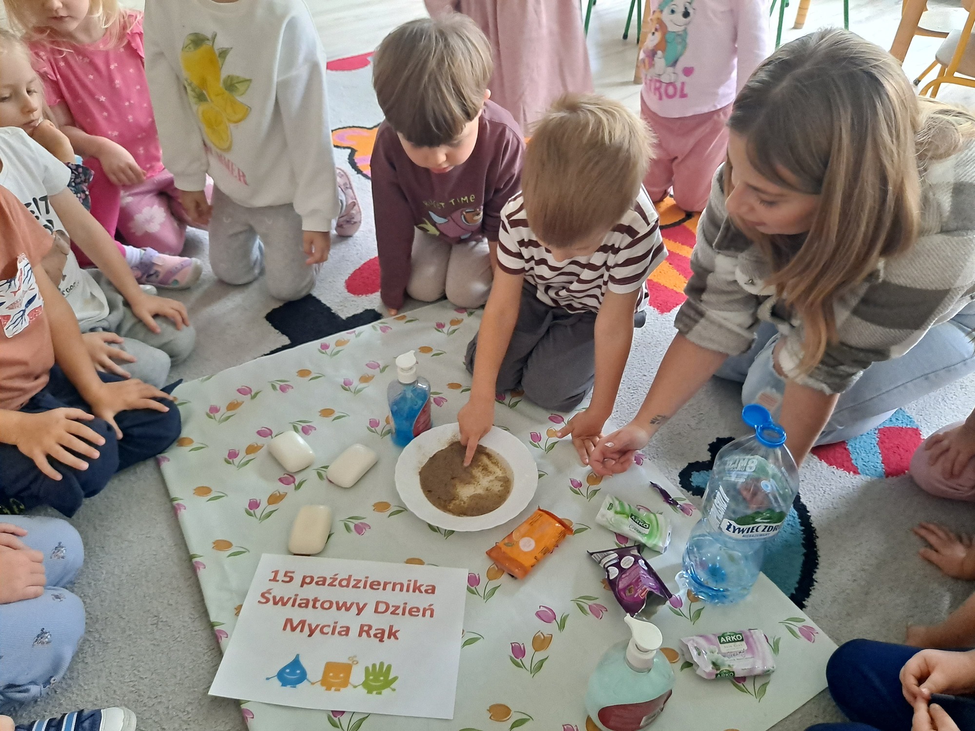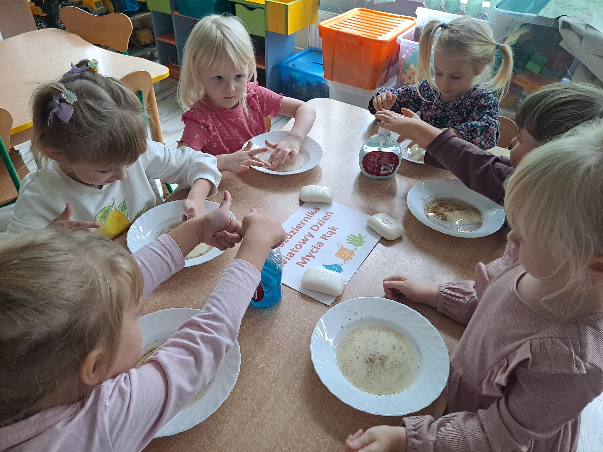 Dzieci rozmawiały o tym, dlaczego tak ważne jest dbanie o higienę i regularne mycie rąk.