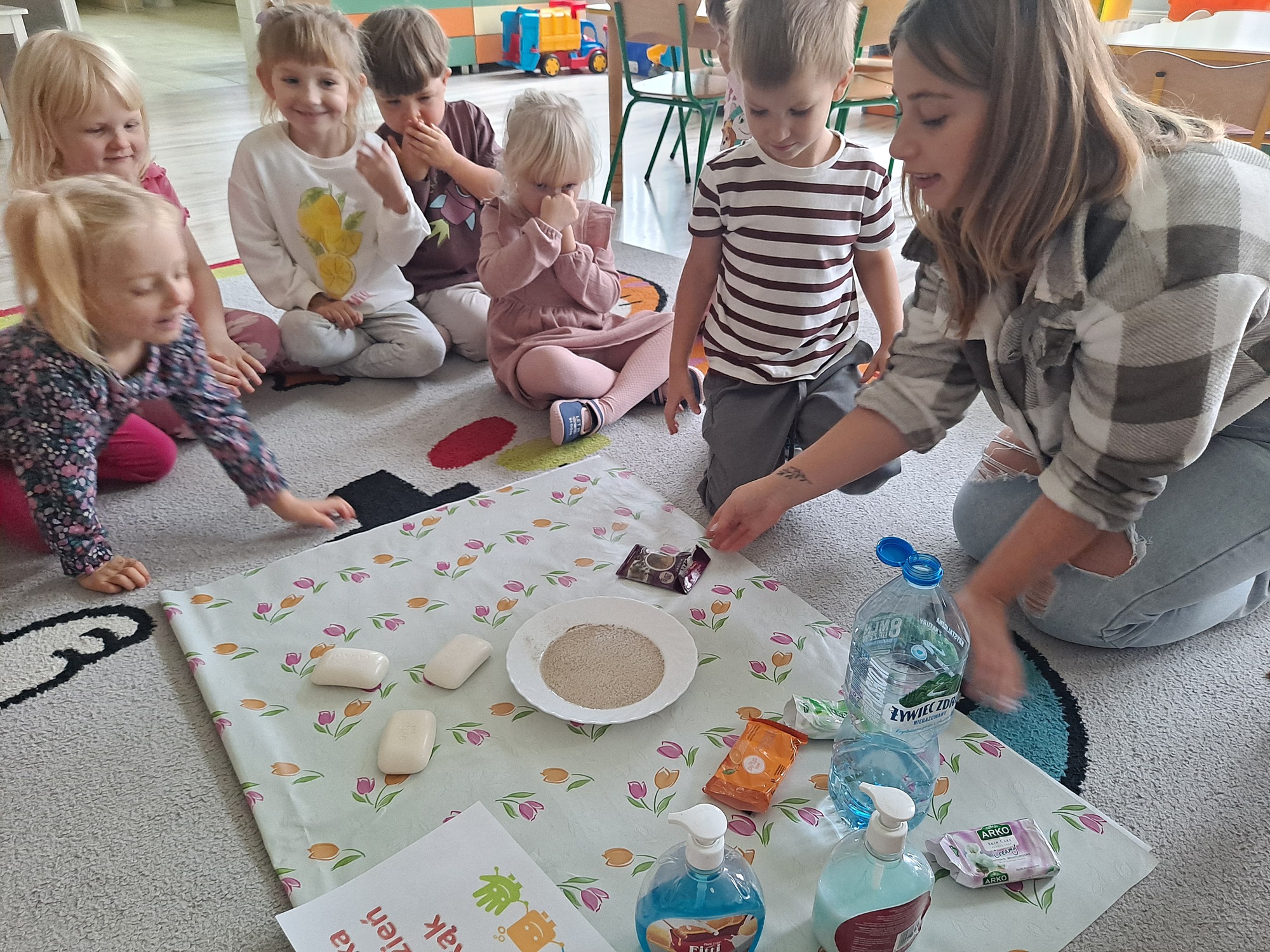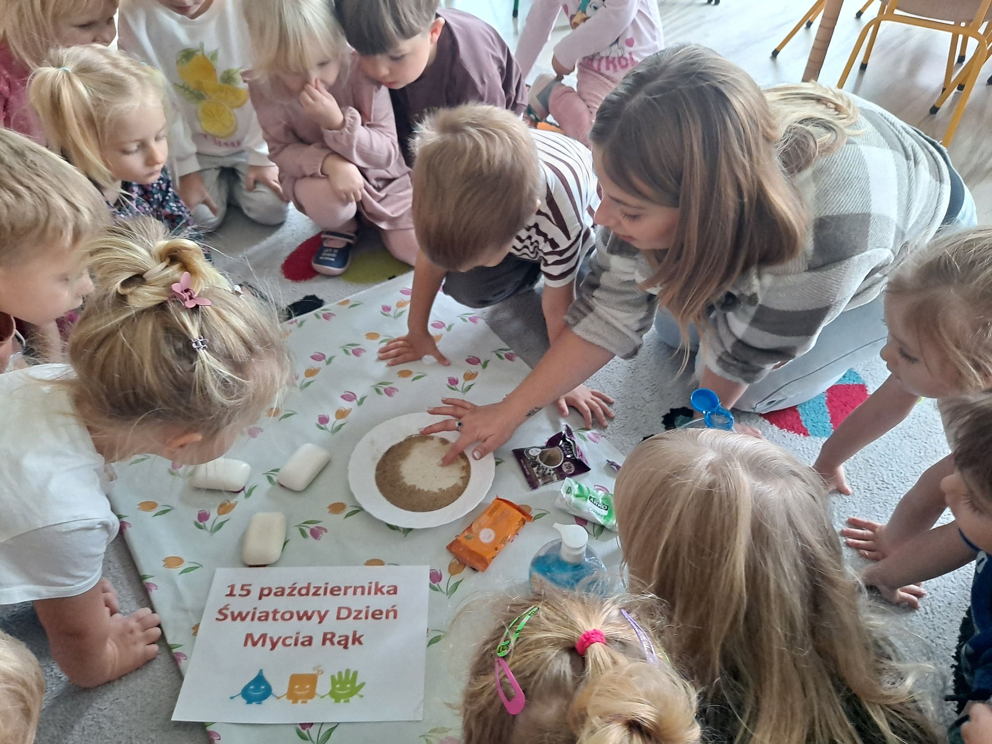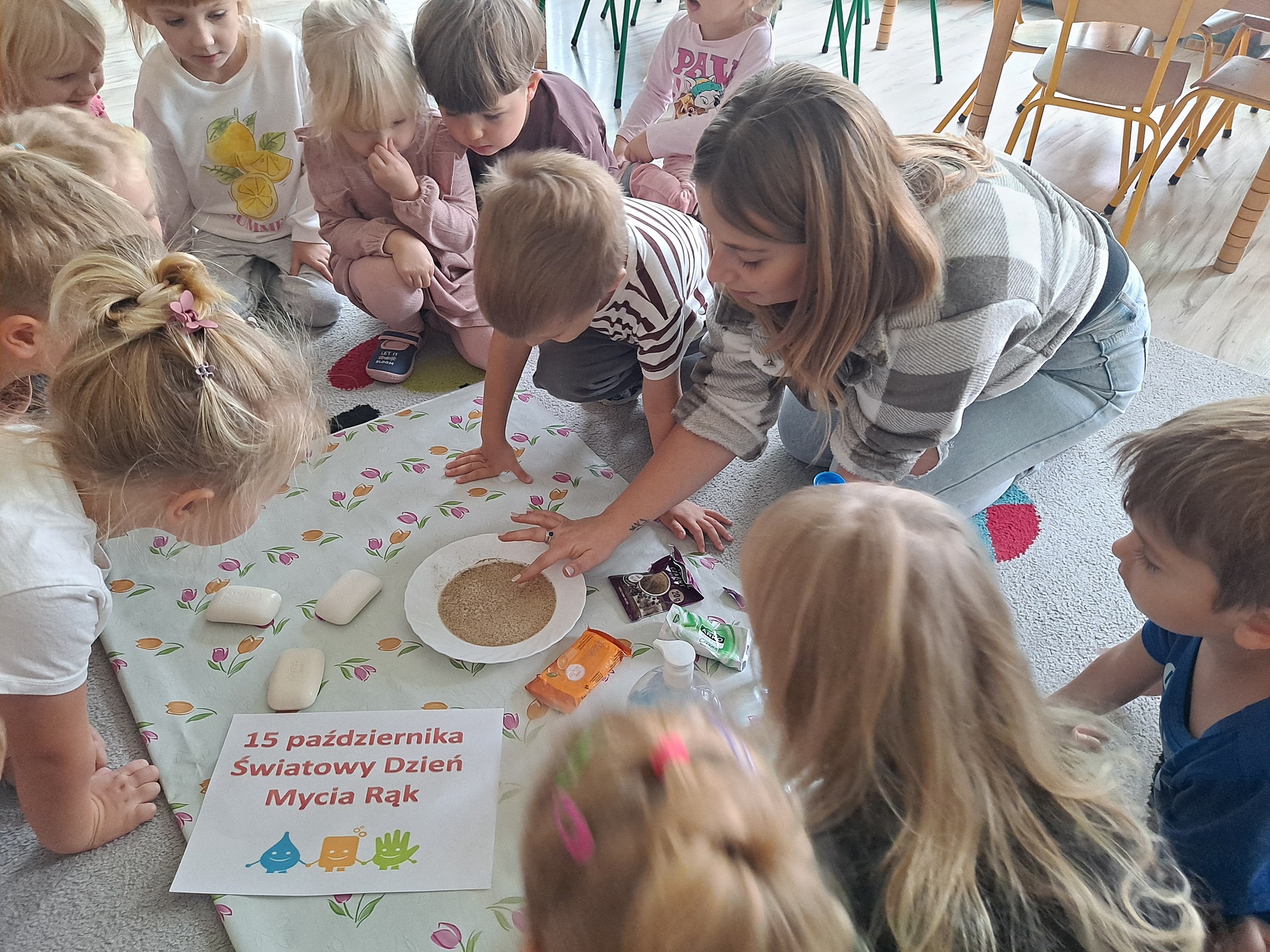 Dzieci rozmawiały o tym, dlaczego tak ważne jest dbanie o higienę i regularne mycie rąk.