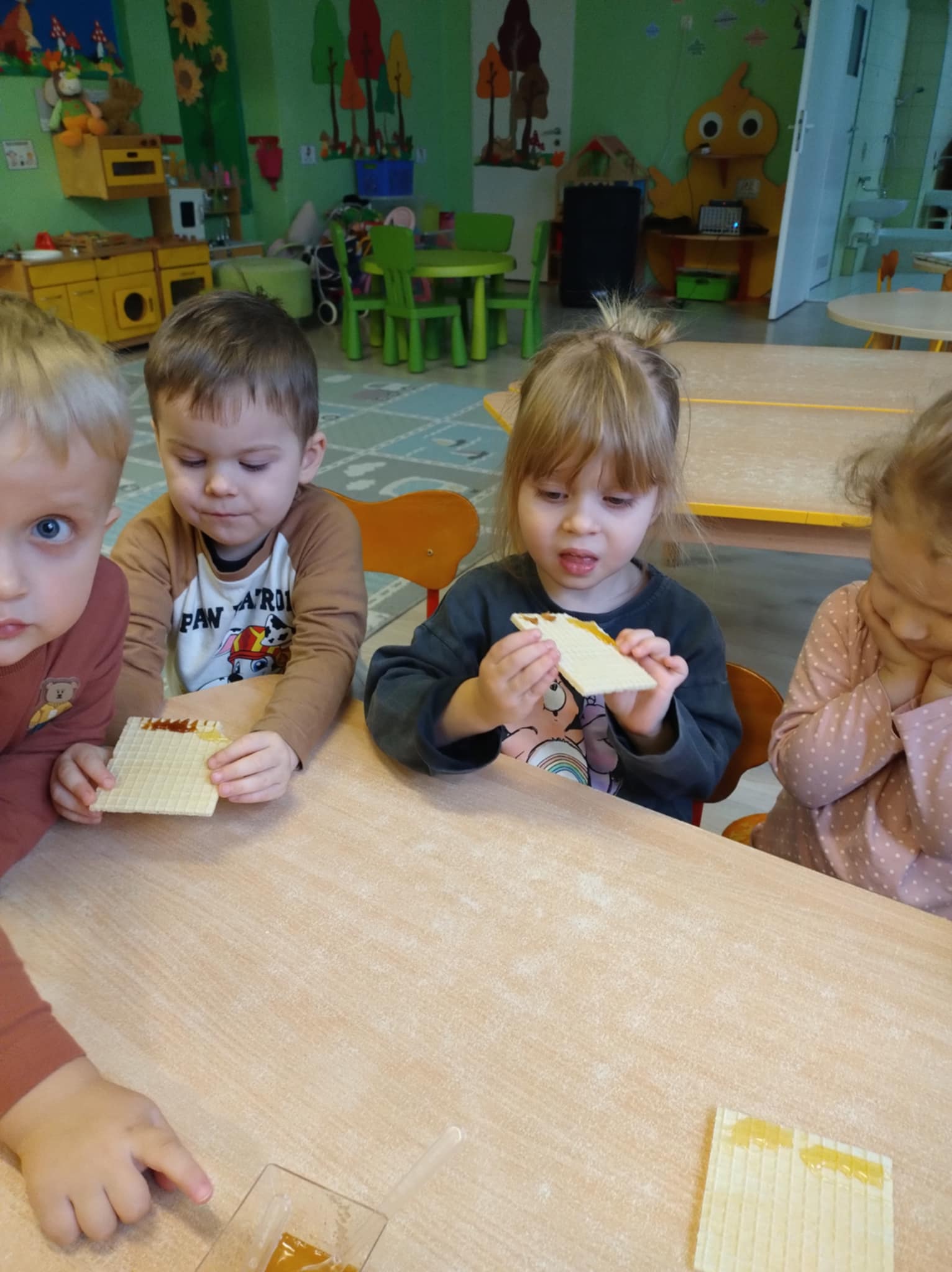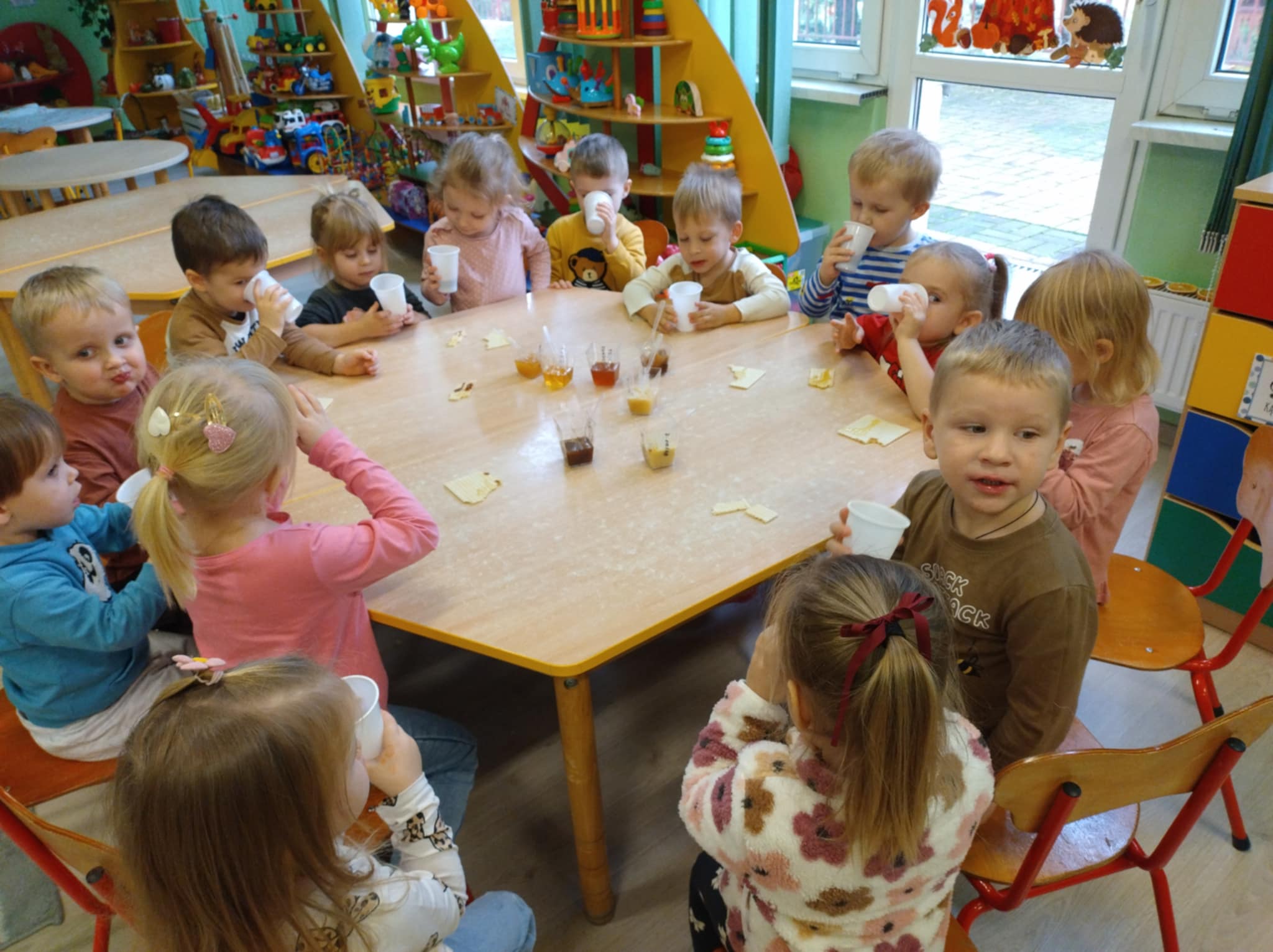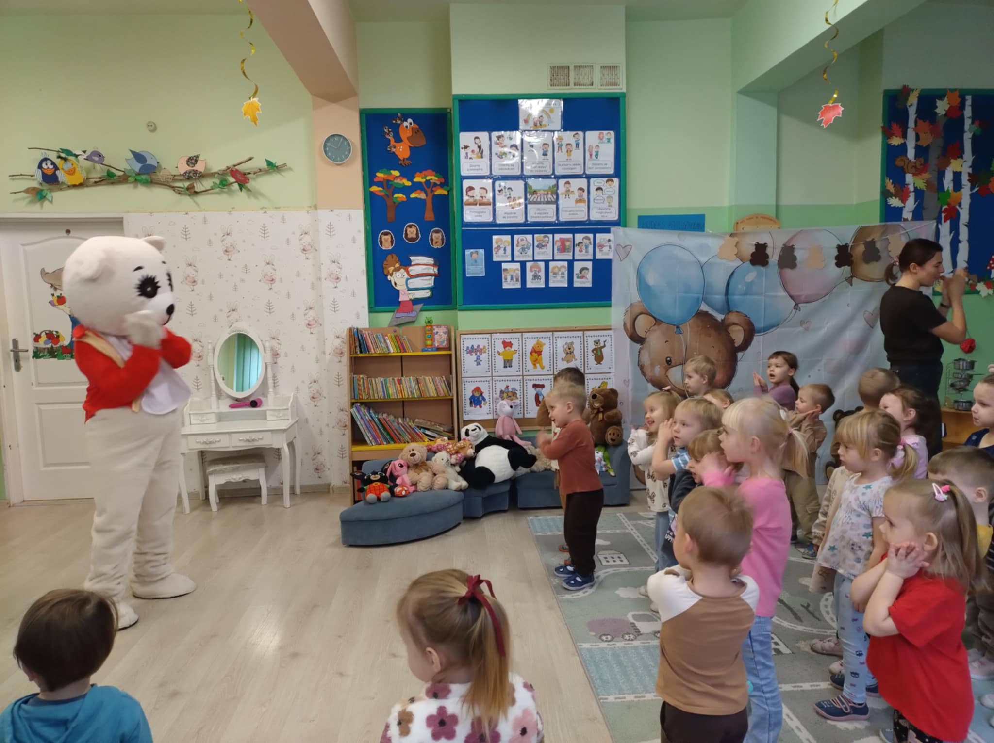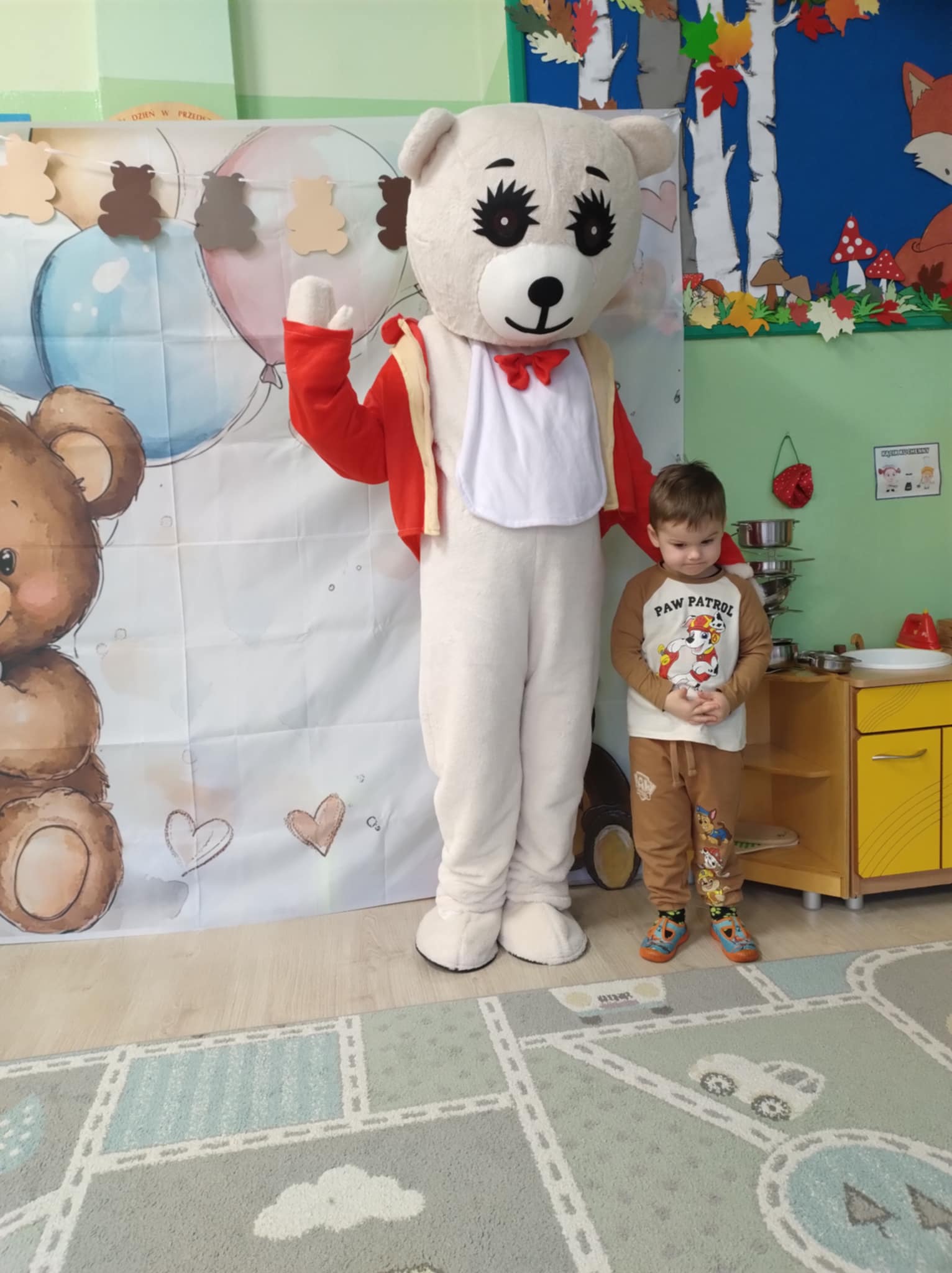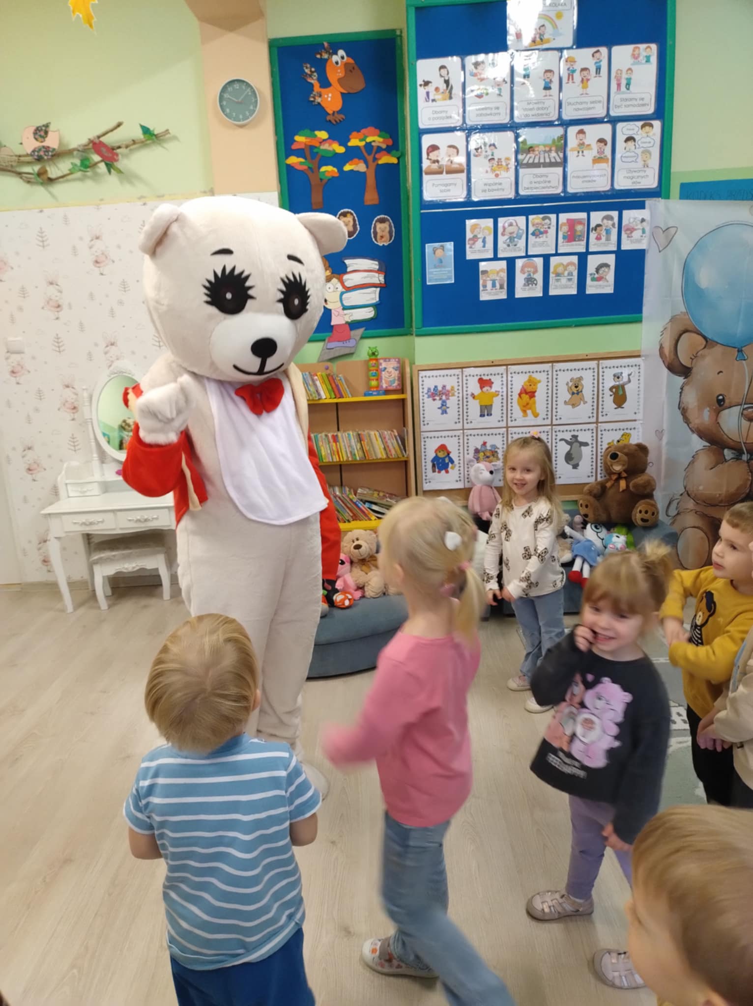 Dzień Pluszowego Misia w przedszkolu był pełen radości, zabawy i ciepłych emocji. Już od rana dzieci z dumą przyniosły do przedszkola swoje ulubione maskotki, które towarzyszyły im we wszystkich aktywnościach. Sale wypełniły się kolorowymi, miękkimi pluszakami, a atmosfera stała się niezwykle przytulna. Największą atrakcją okazały się wspólne tańce z dużym, uśmiechniętym Misiem. Przedszkolaki chętnie uczestniczyły w zabawach tanecznych, naśladowały ruchy Misia i tworzyły roztańczony korowód pełen energii i śmiechu. Kolejnym punktem była degustacja miodów o różnych smakach. Dzieci próbowały miodu lipowego, akacjowego, gryczanego czy wielokwiatowego, ucząc się, jak różne mogą być ich zapachy i słodycz. To była nie tylko pyszna, ale też bardzo ciekawa lekcja. Nie zabrakło również pamiątkowych zdjęć z pluszowymi ulubieńcami oraz z wyjątkowym gościem – Misiem. W ramach pracy plastycznej dzieci tworzyły portrety Misiów, wykorzystując farby. Każdy projekt był jedyny w swoim rodzaju i pokazał ogromną kreatywność przedszkolaków. Gotowe prace ozdobiły przedszkolną galerię, tworząc misiową wystawę. To był pełen uśmiechu, zabawy i ciepła dzień, który na długo pozostanie w pamięci dzieci.