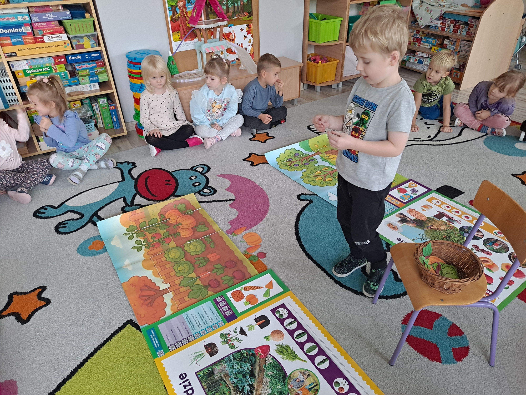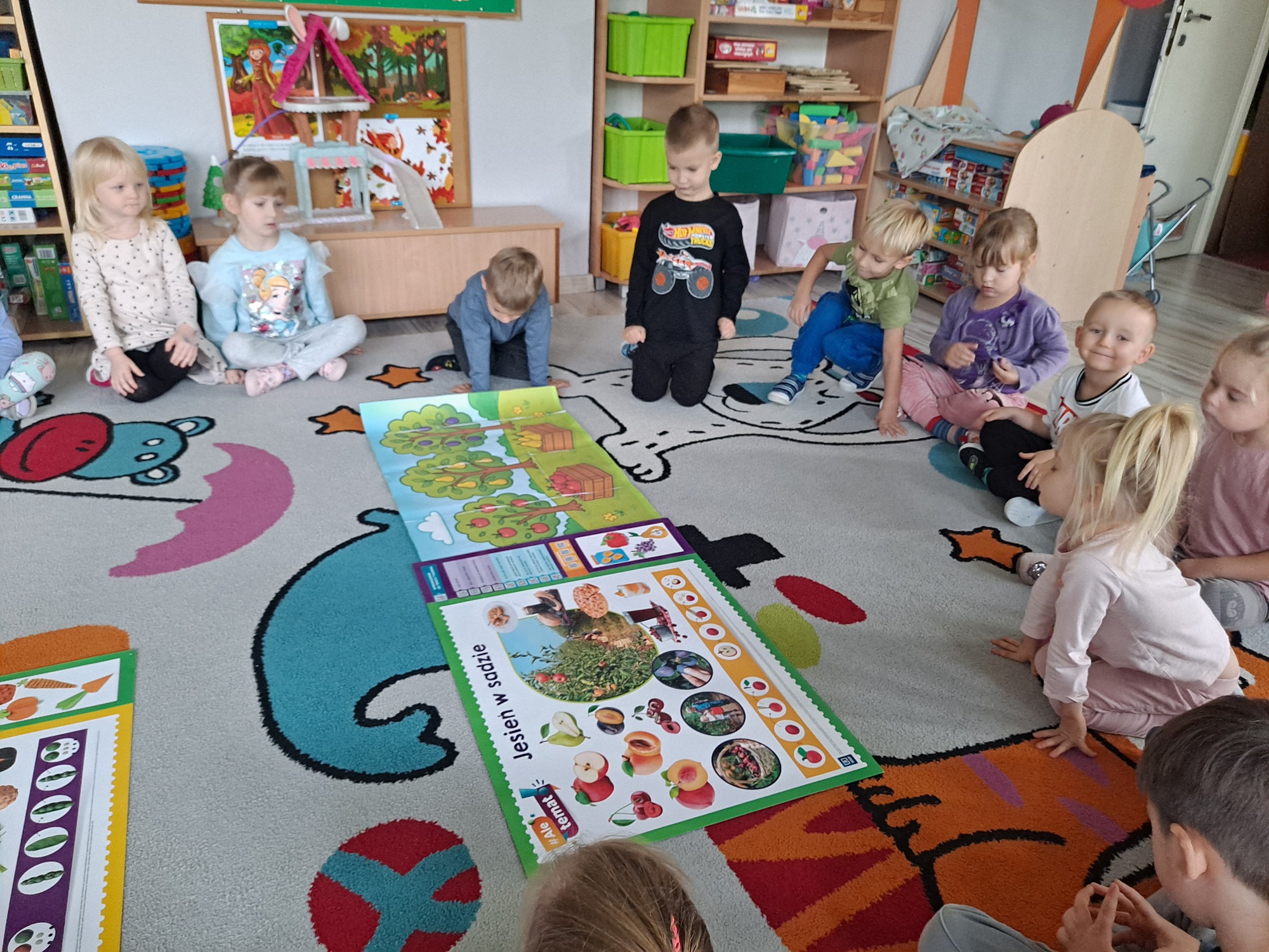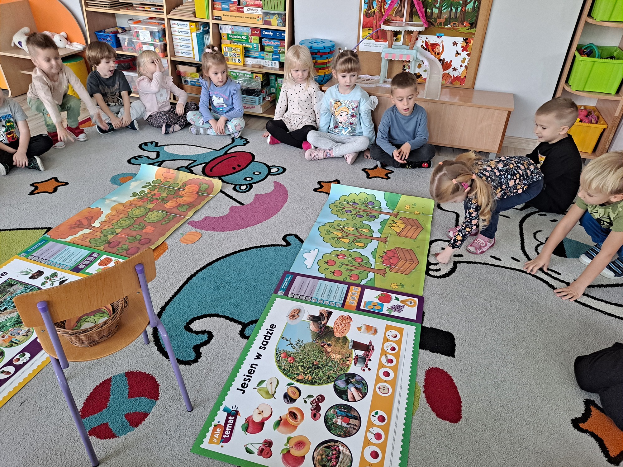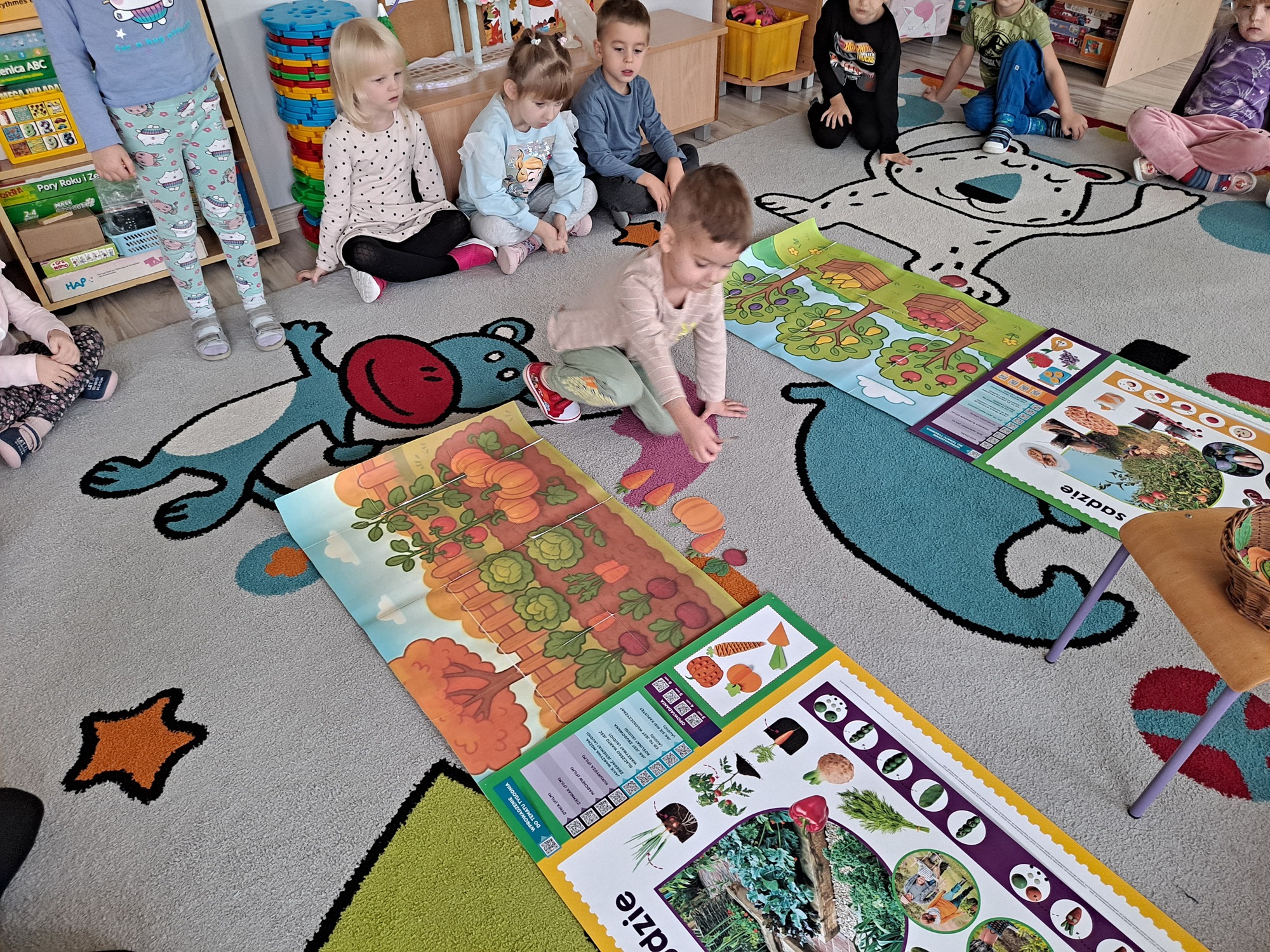 Podczas zajęć dzieci pracowały z serią obrazków, dzięki którym mogły poznać, co rośnie w sadzie, a co w ogrodzie.