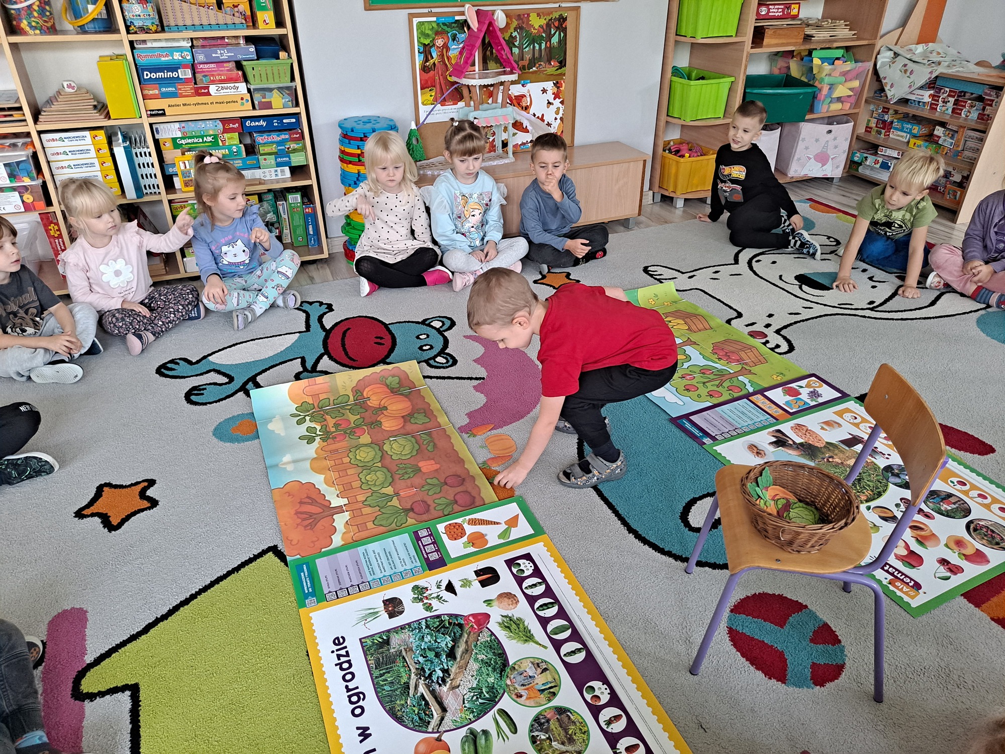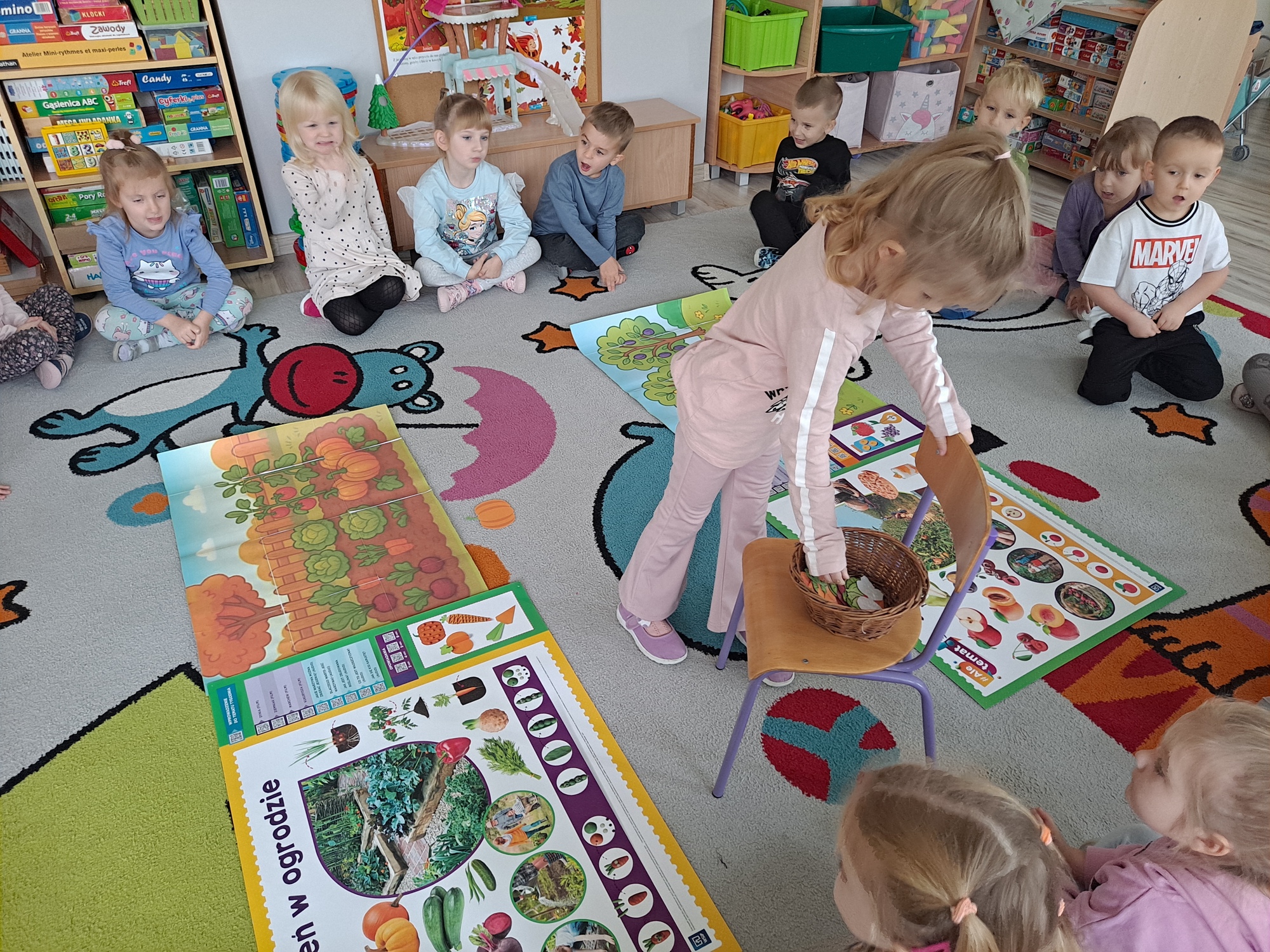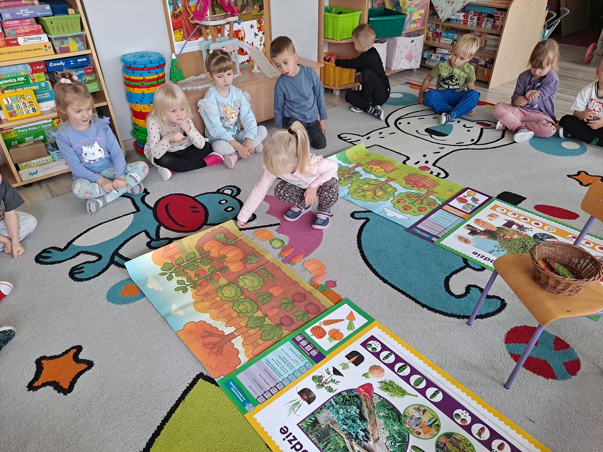 Podczas zajęć dzieci pracowały z serią obrazków, dzięki którym mogły poznać, co rośnie w sadzie, a co w ogrodzie.