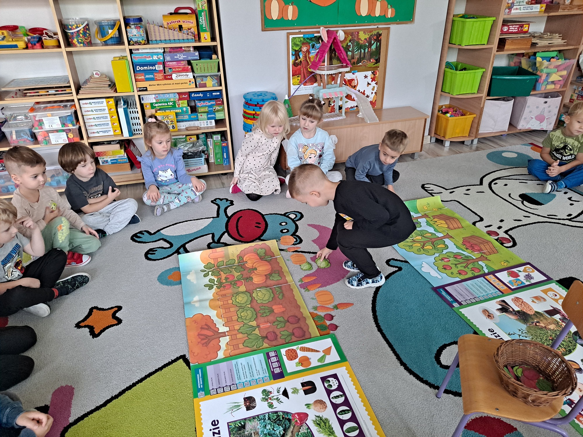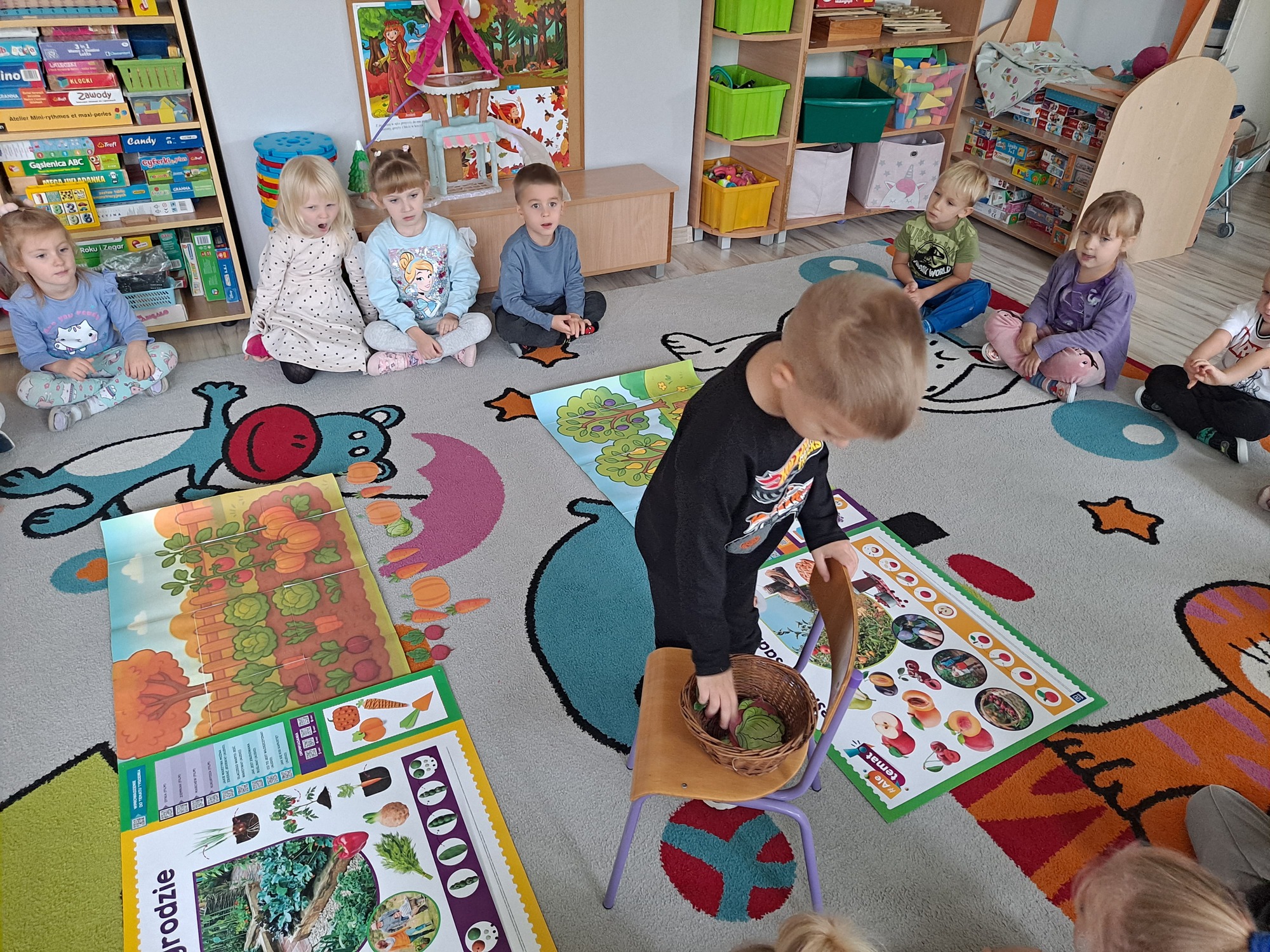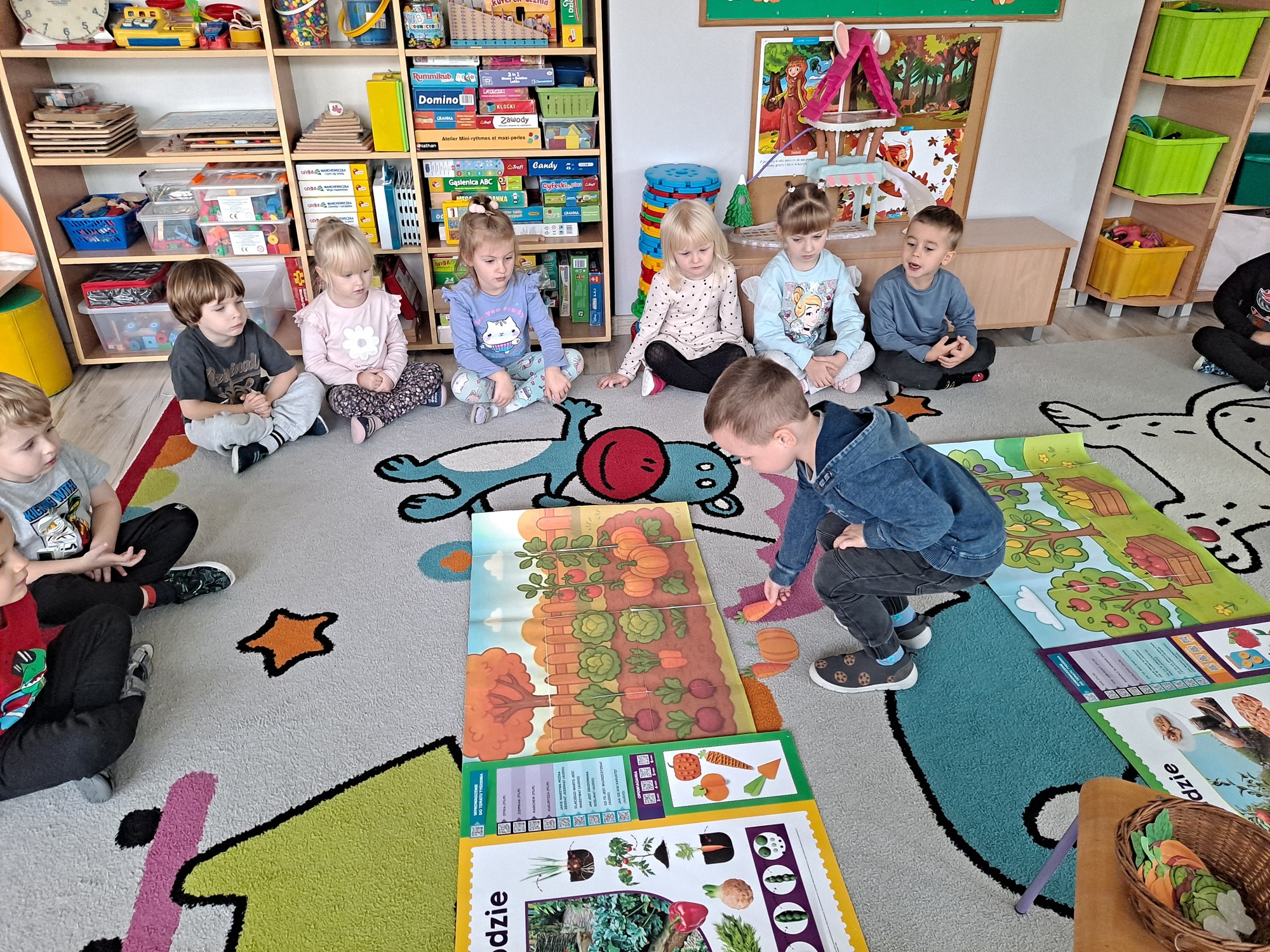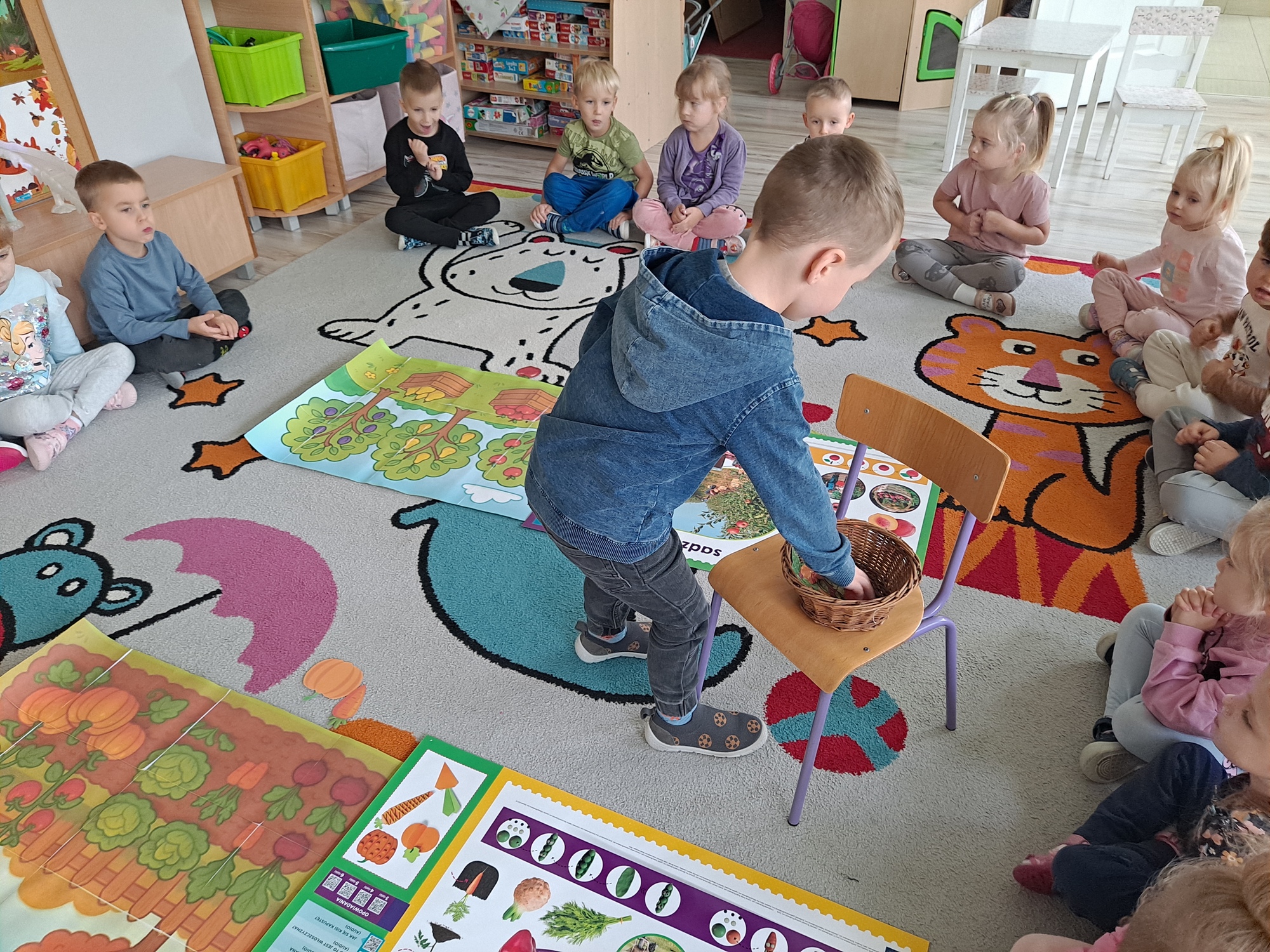Podczas zajęć dzieci pracowały z serią obrazków, dzięki którym mogły poznać, co rośnie w sadzie, a co w ogrodzie.