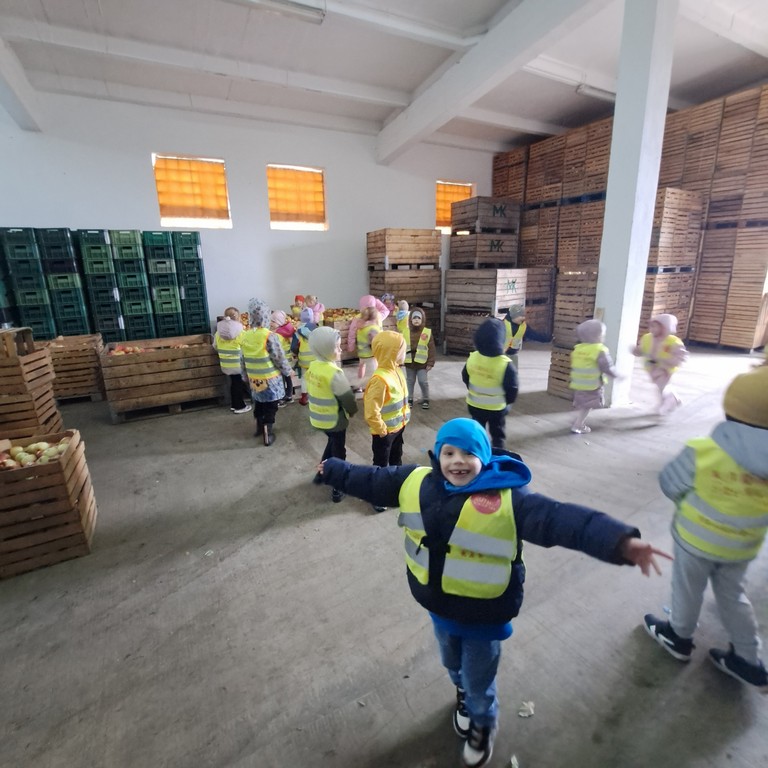 Dzieci zobaczyły także chłodnię, w której przechowywane są jabłka, poznały sposób sprawdzania dojrzałości owoców.