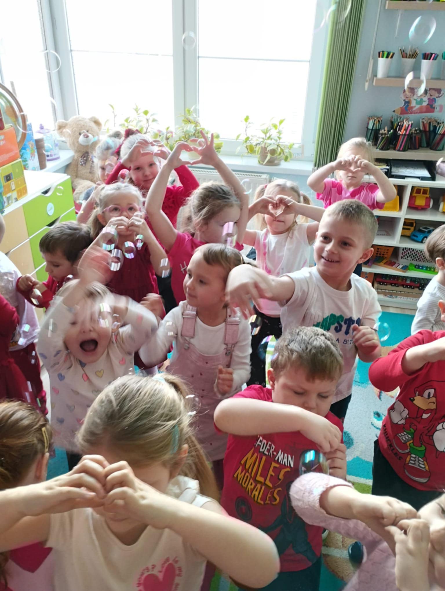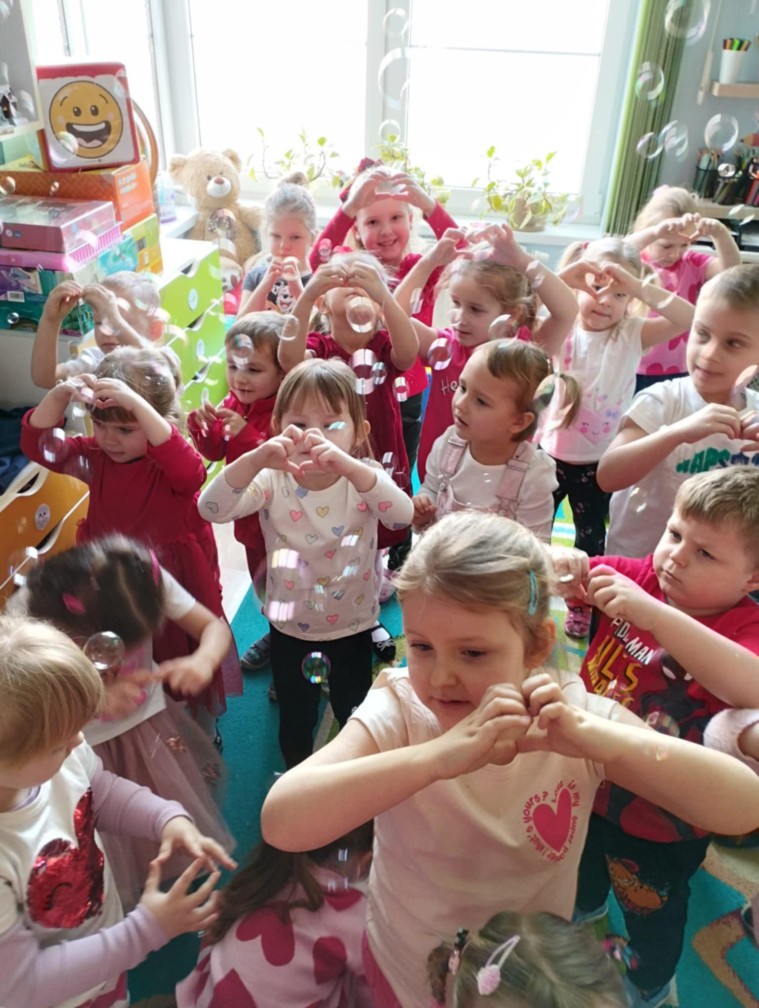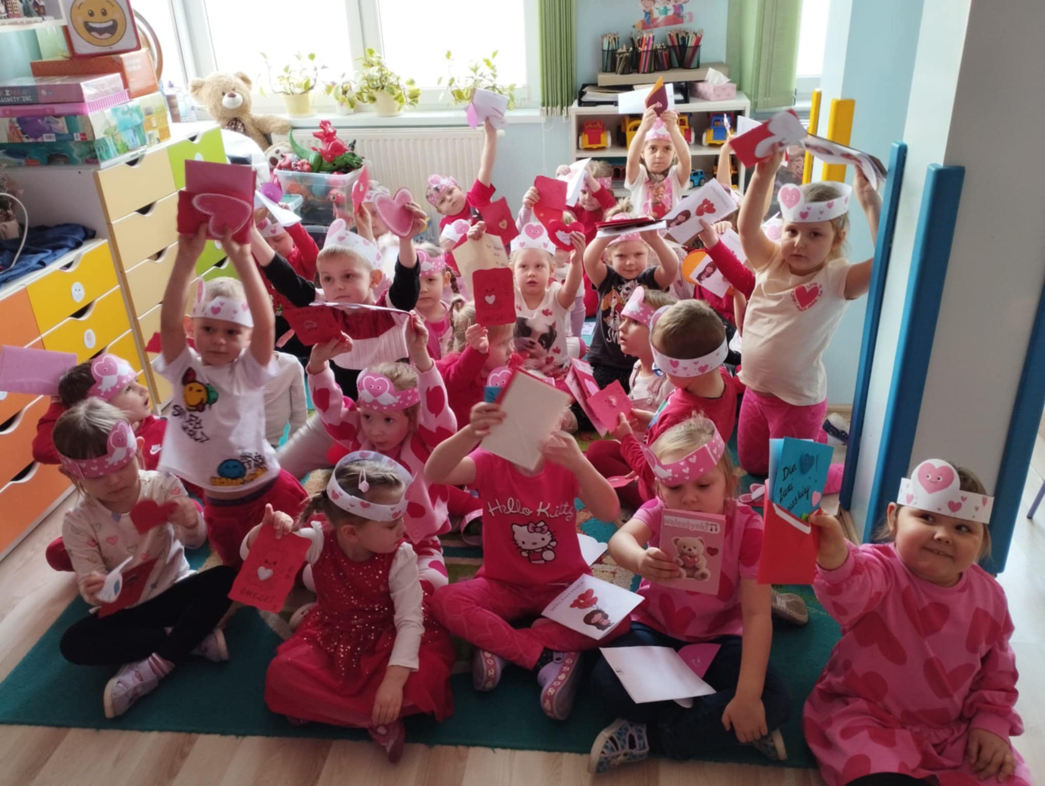 Chłopcy i dziewczęta w oczekiwaniu na liściki i laurki, dowiedziały się, na czym polega fenomen tego dnia oraz chętnie uczestniczyły w tańcach i pląsach przy walentynkowych piosenkach, a także pozowały do zdjęć na tle dekoracji. Dla każdego czekał także słodki poczęstunek w kształcie tostowego serduszka z pysznym dżemem.