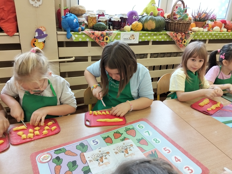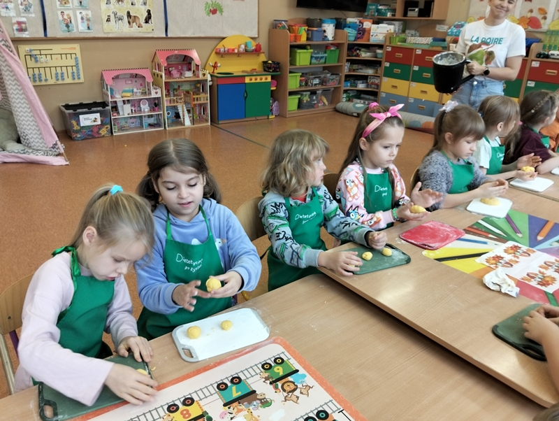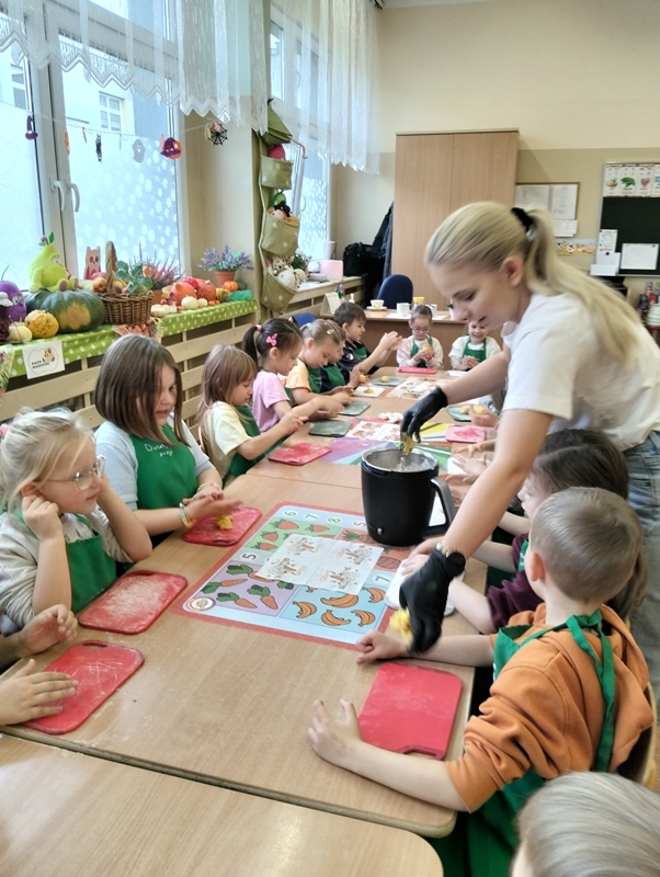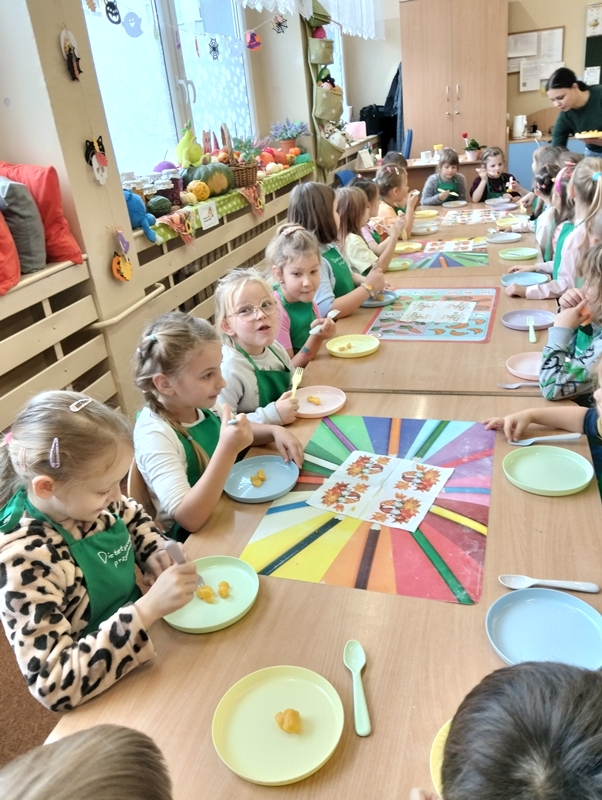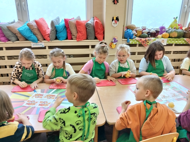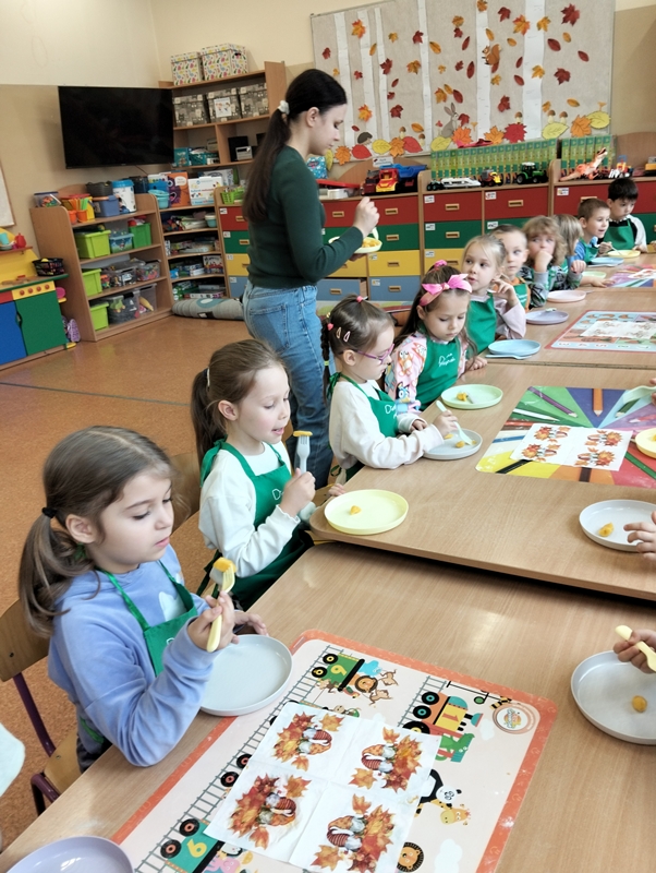 30 października jest Święto Dyni - dzisiaj dzieci miały okazję brać udział w warsztatach dietetycznych z wykorzystaniem dyni. Panie opowiedziały o walorach smakowych i odżywczych dyni. Biedronki miały okazję samodzielnie wykonać i skosztować kopytek dyniowych.