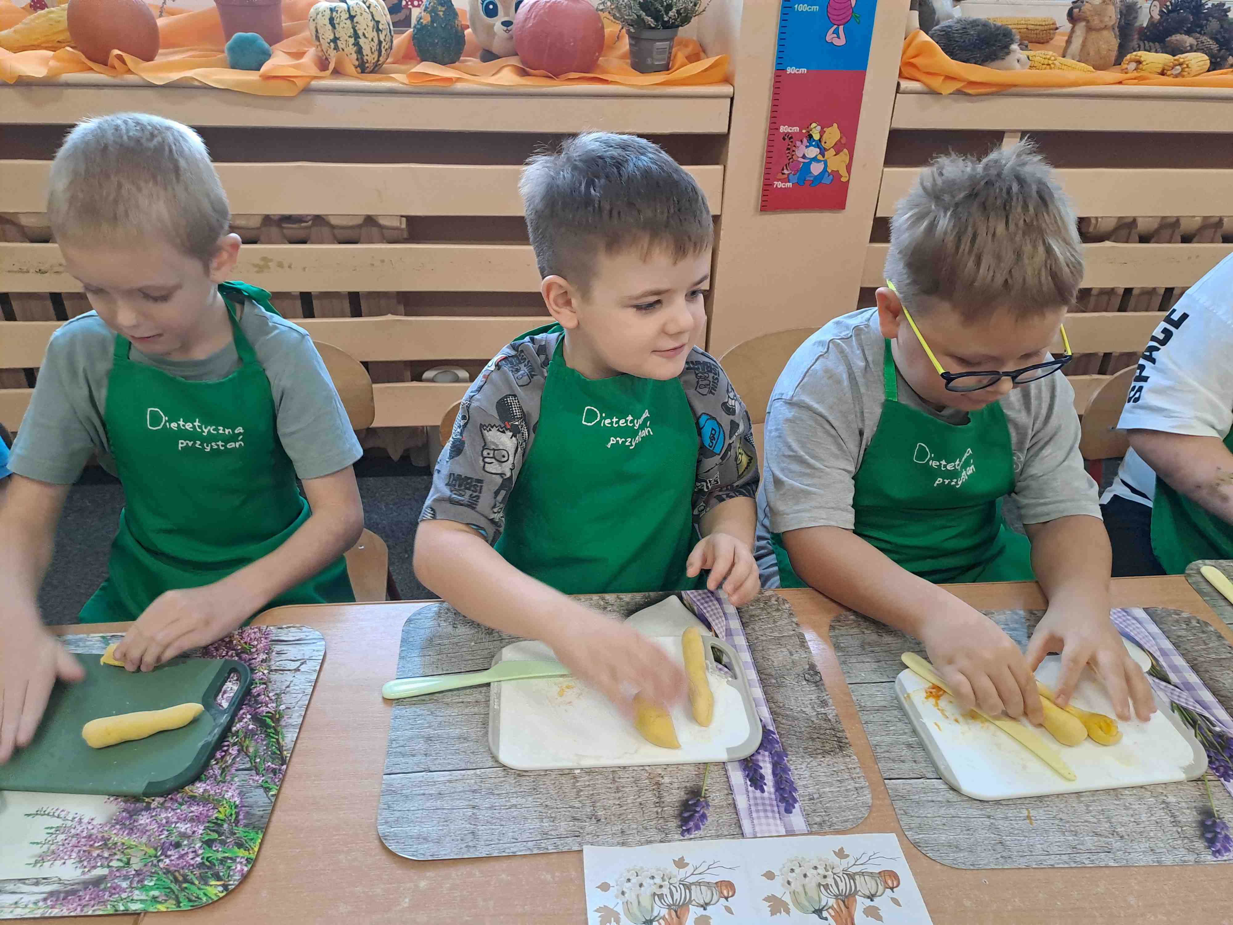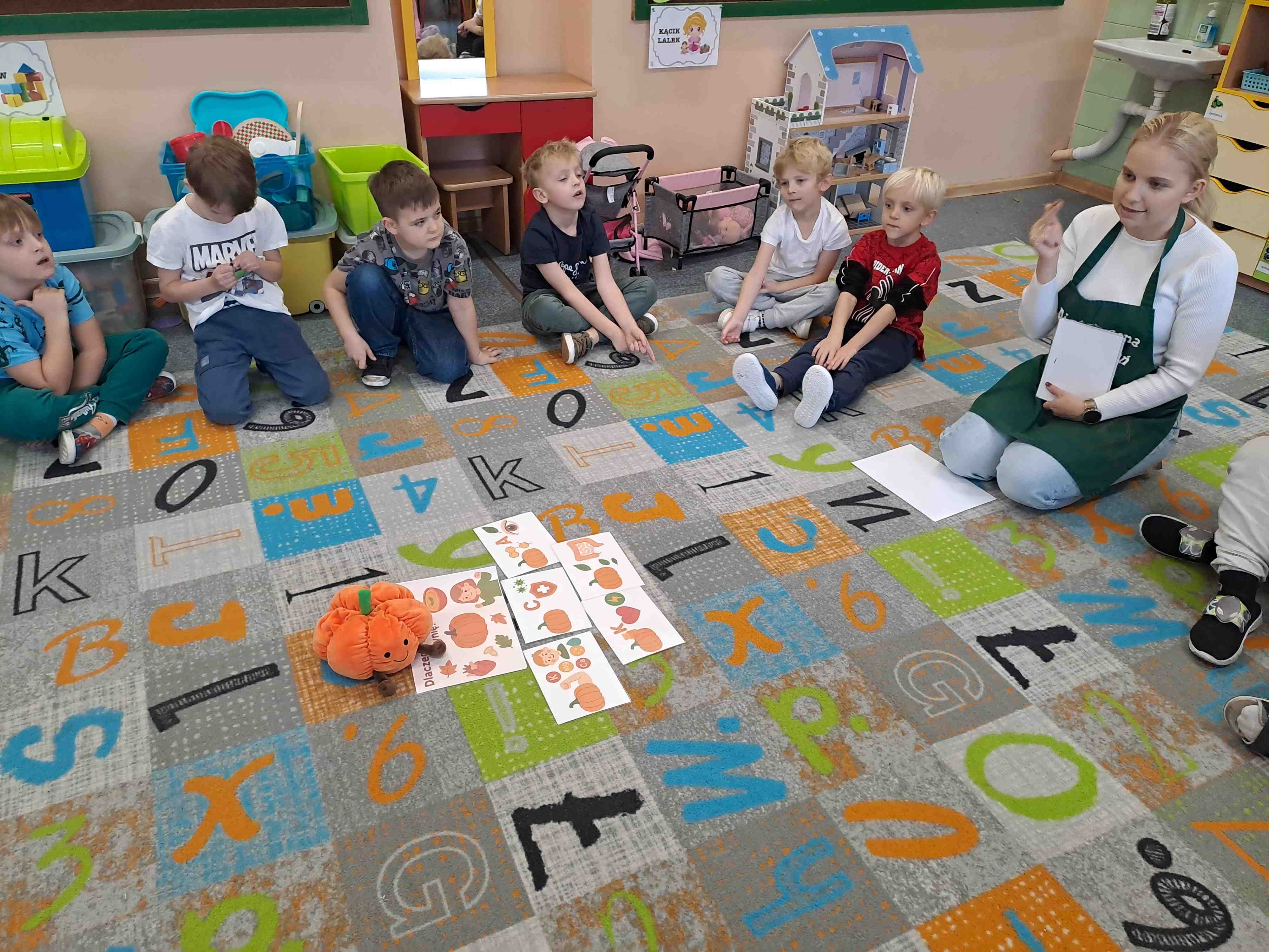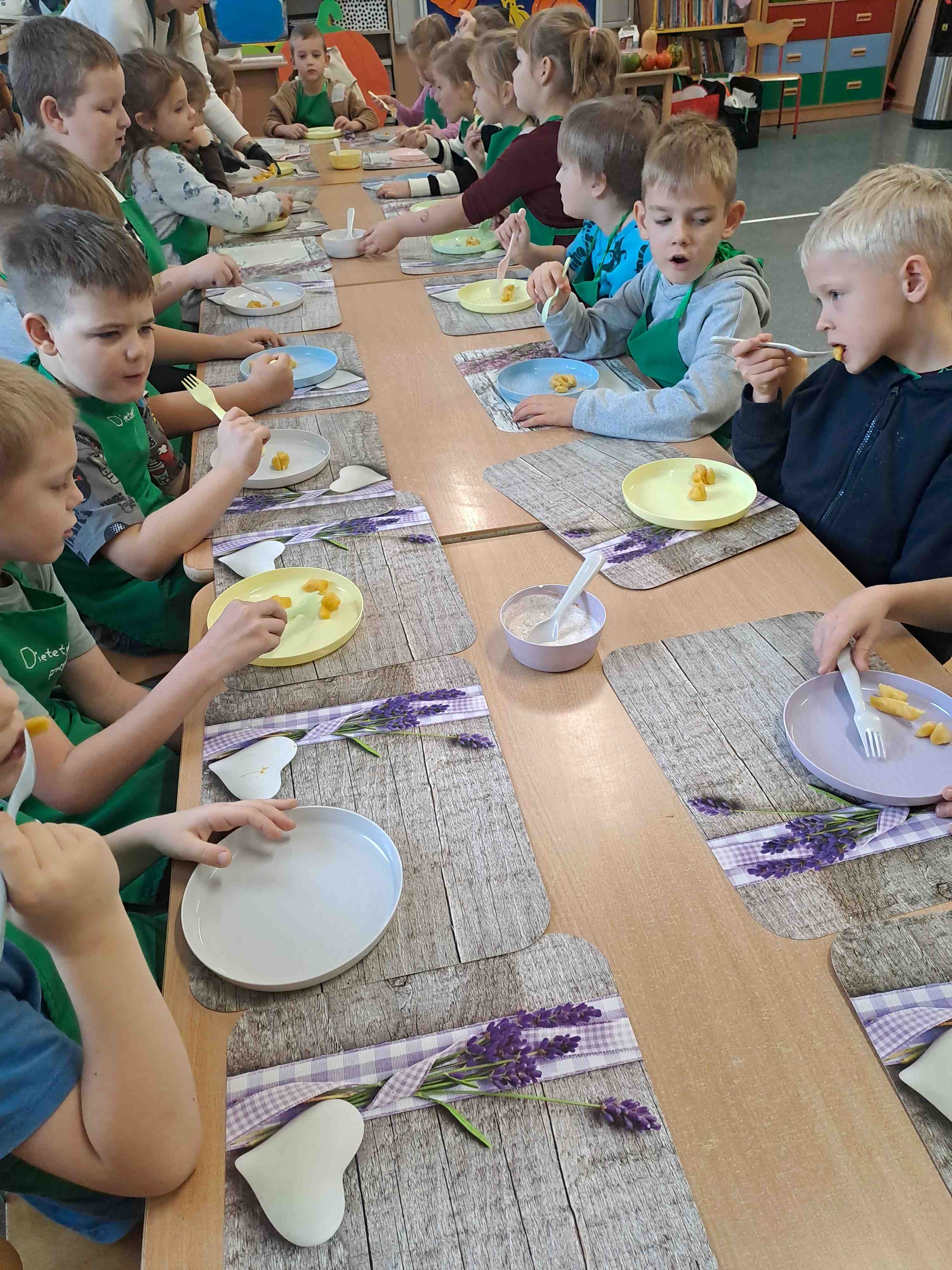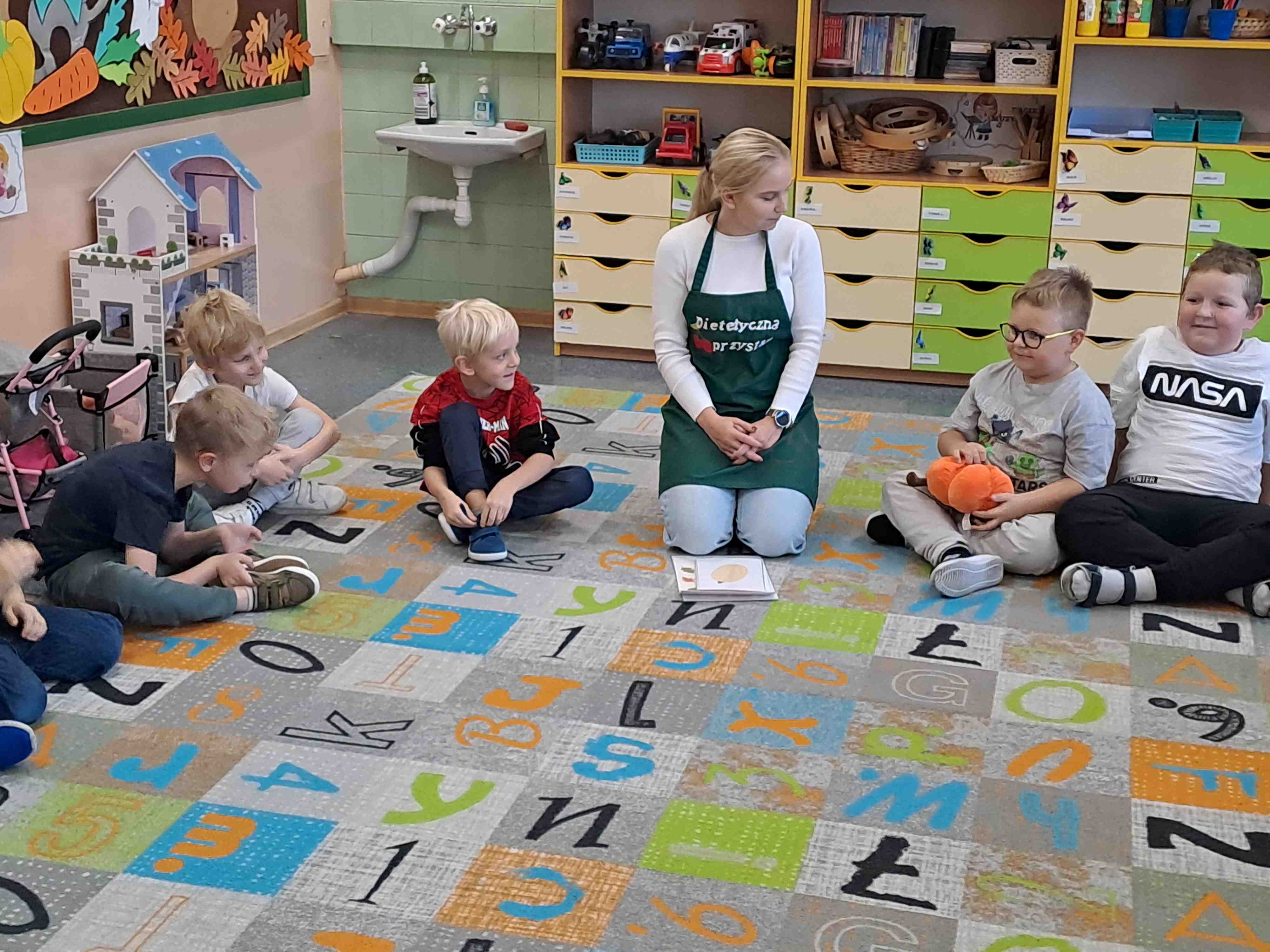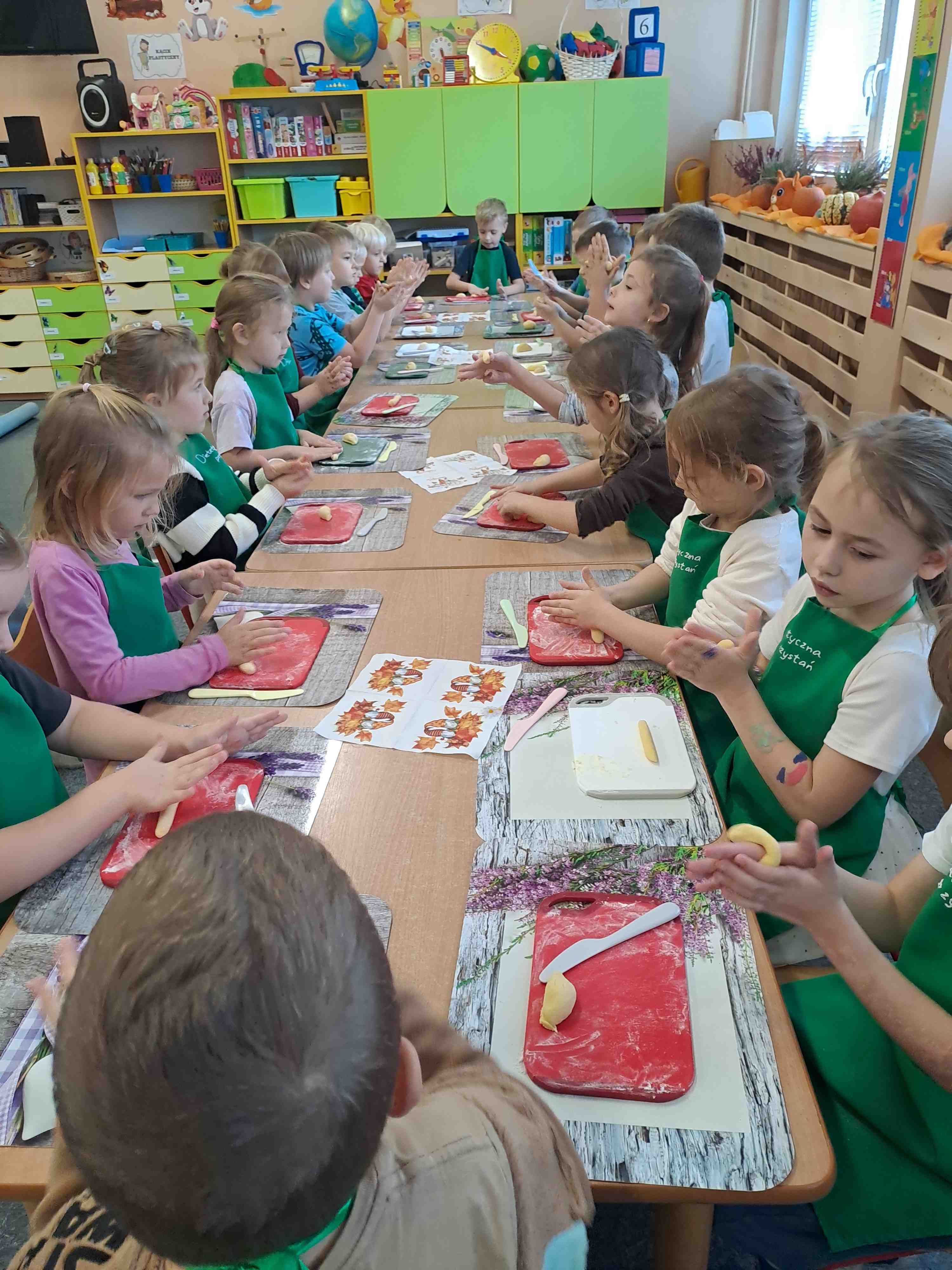 W dniu dzisiejszym Motylki miały możliwość uczestniczyć w warsztatach kulinarnych, przeprowadzonych przez p. Weronikę Moruzgałę z "Dietetycznej przystani". Tematem przewodnim tegorocznego spotkania z panią dietetyk była dynia. Dzieci usłyszały wiele cennych ciekawostek na temat tego warzywa, opisywały jego walory smakowe i zdrowotne. Oglądały różne gatunki dyń. Ale najważniejszym punktem warsztatów było przygotowanie przez dzieci dyniowych kopytek, które bardzo nam wszystkim smakowały!