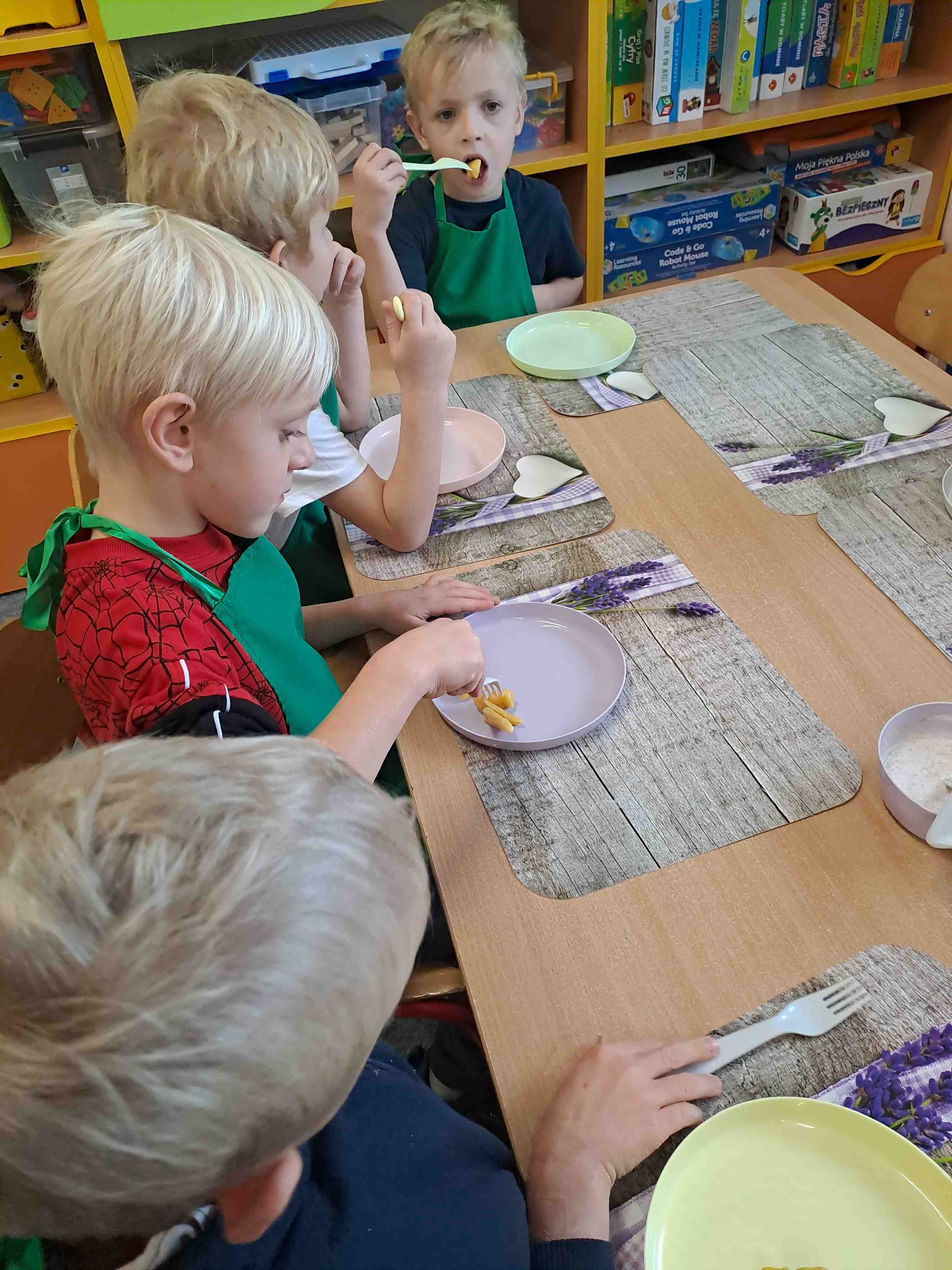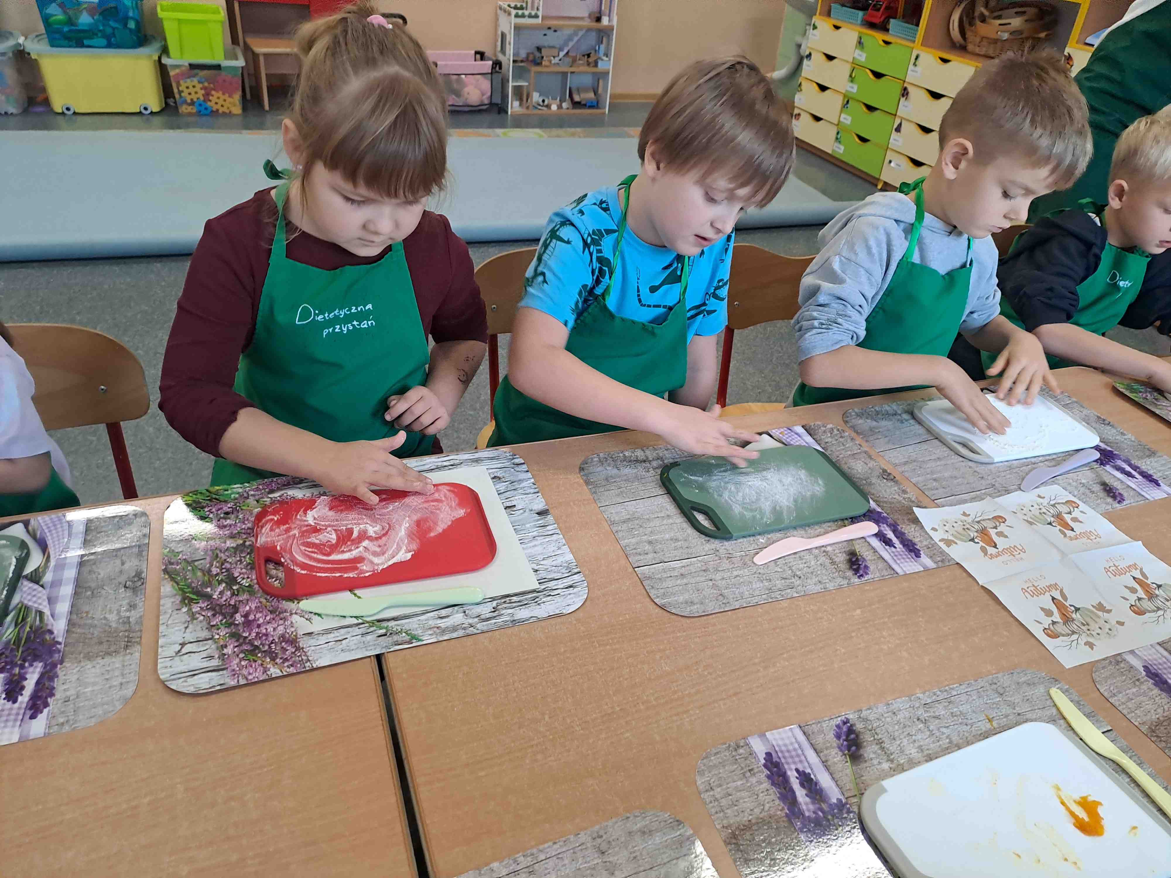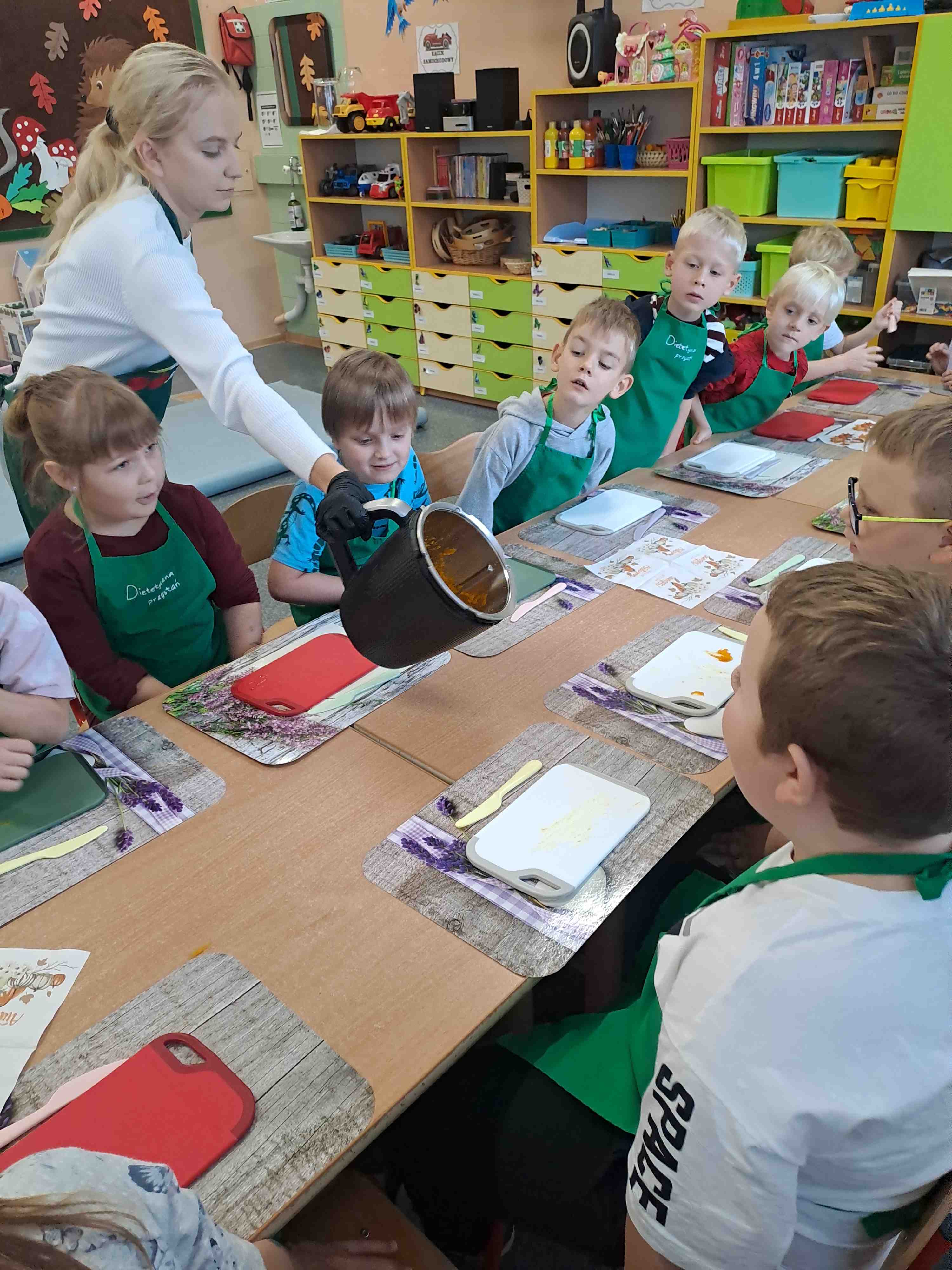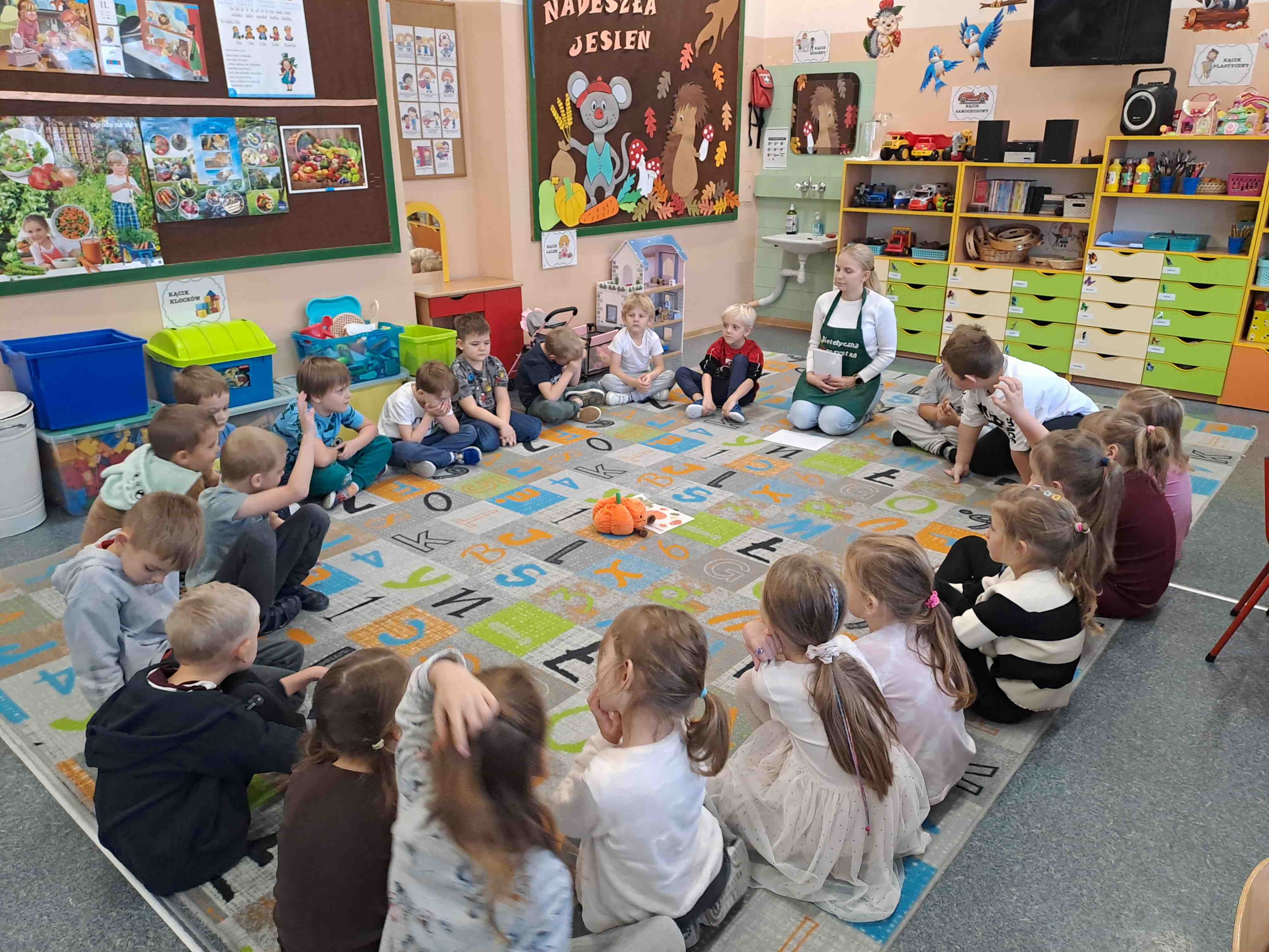 W dniu dzisiejszym Motylki miały możliwość uczestniczyć w warsztatach kulinarnych, przeprowadzonych przez p. Weronikę Moruzgałę z "Dietetycznej przystani". Tematem przewodnim tegorocznego spotkania z panią dietetyk była dynia. Dzieci usłyszały wiele cennych ciekawostek na temat tego warzywa, opisywały jego walory smakowe i zdrowotne. Oglądały różne gatunki dyń. Ale najważniejszym punktem warsztatów było przygotowanie przez dzieci dyniowych kopytek, które bardzo nam wszystkim smakowały!