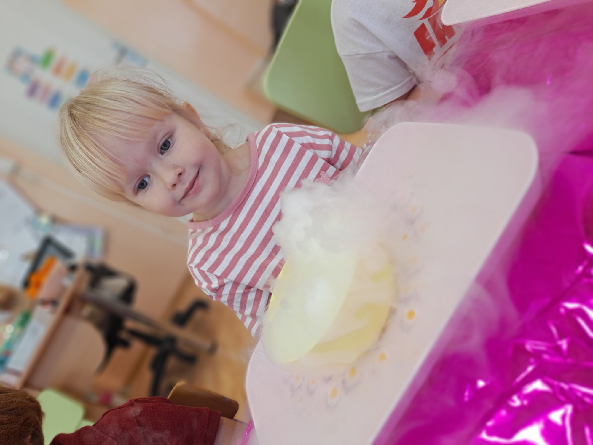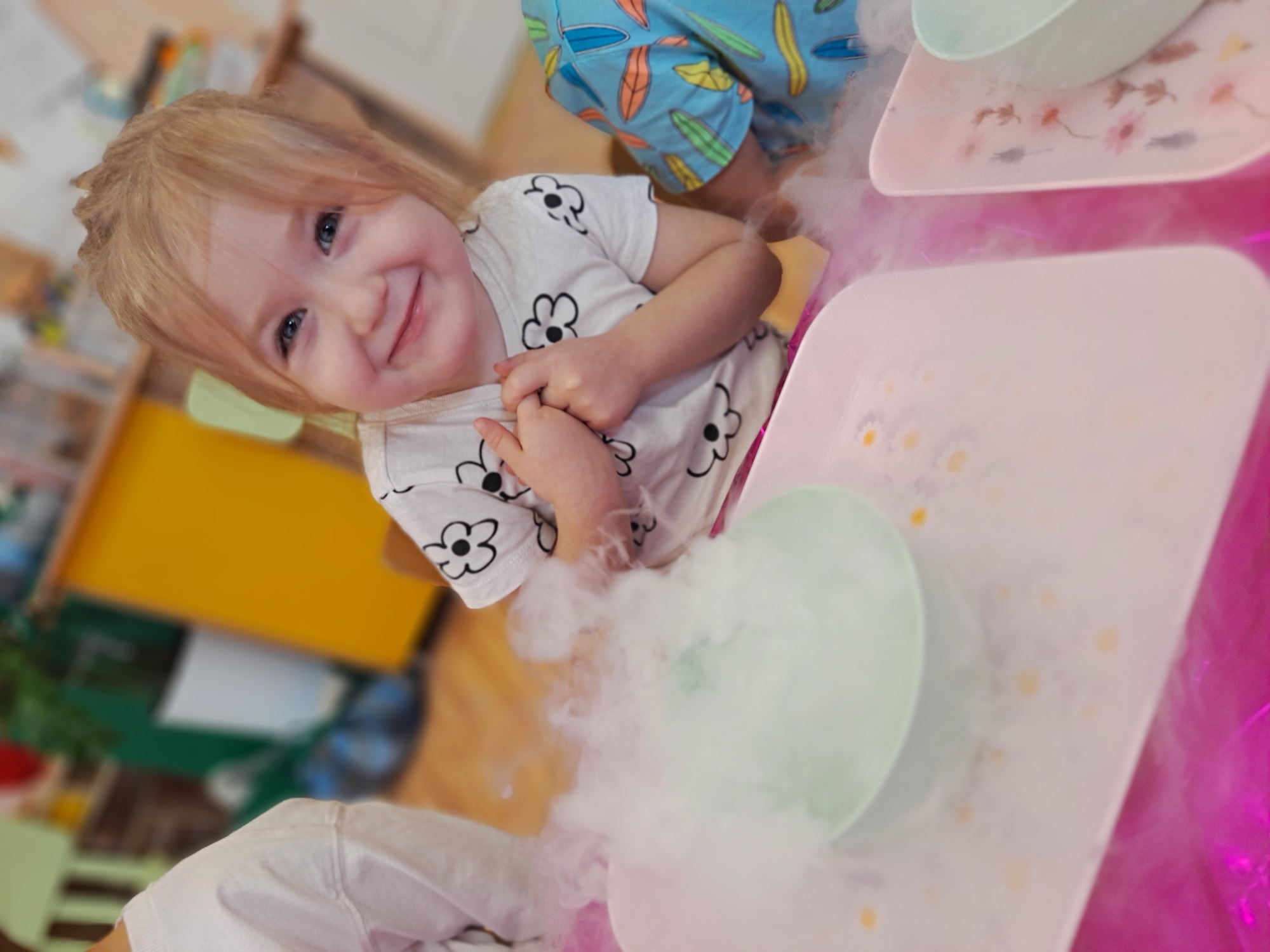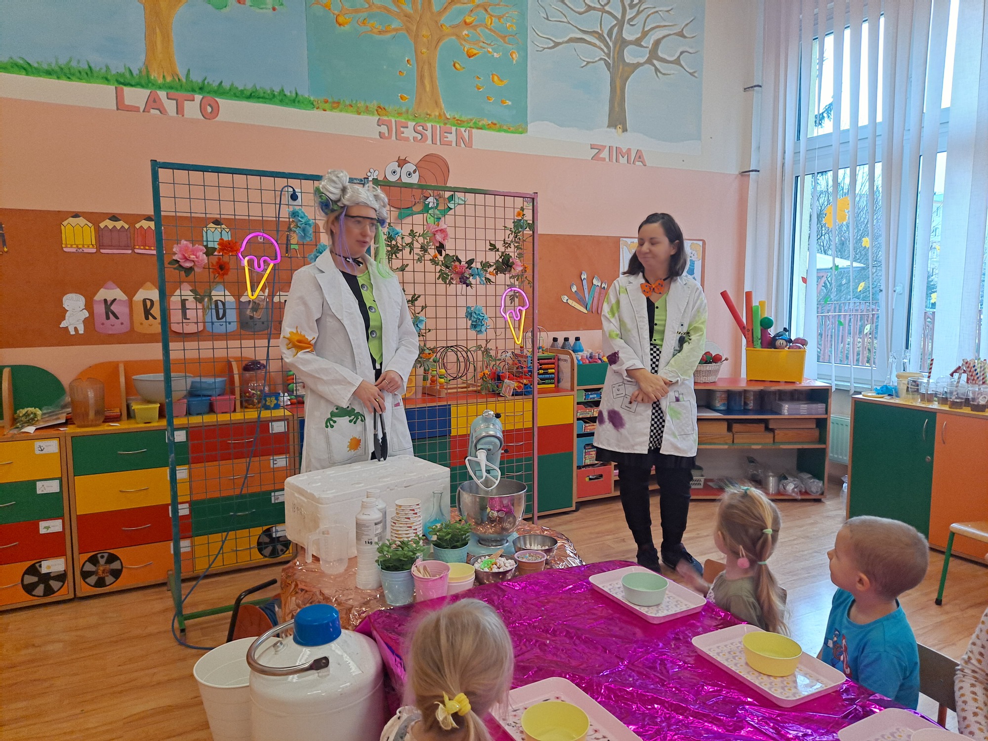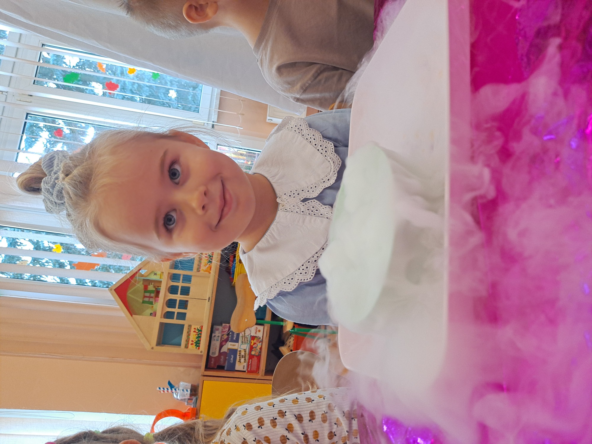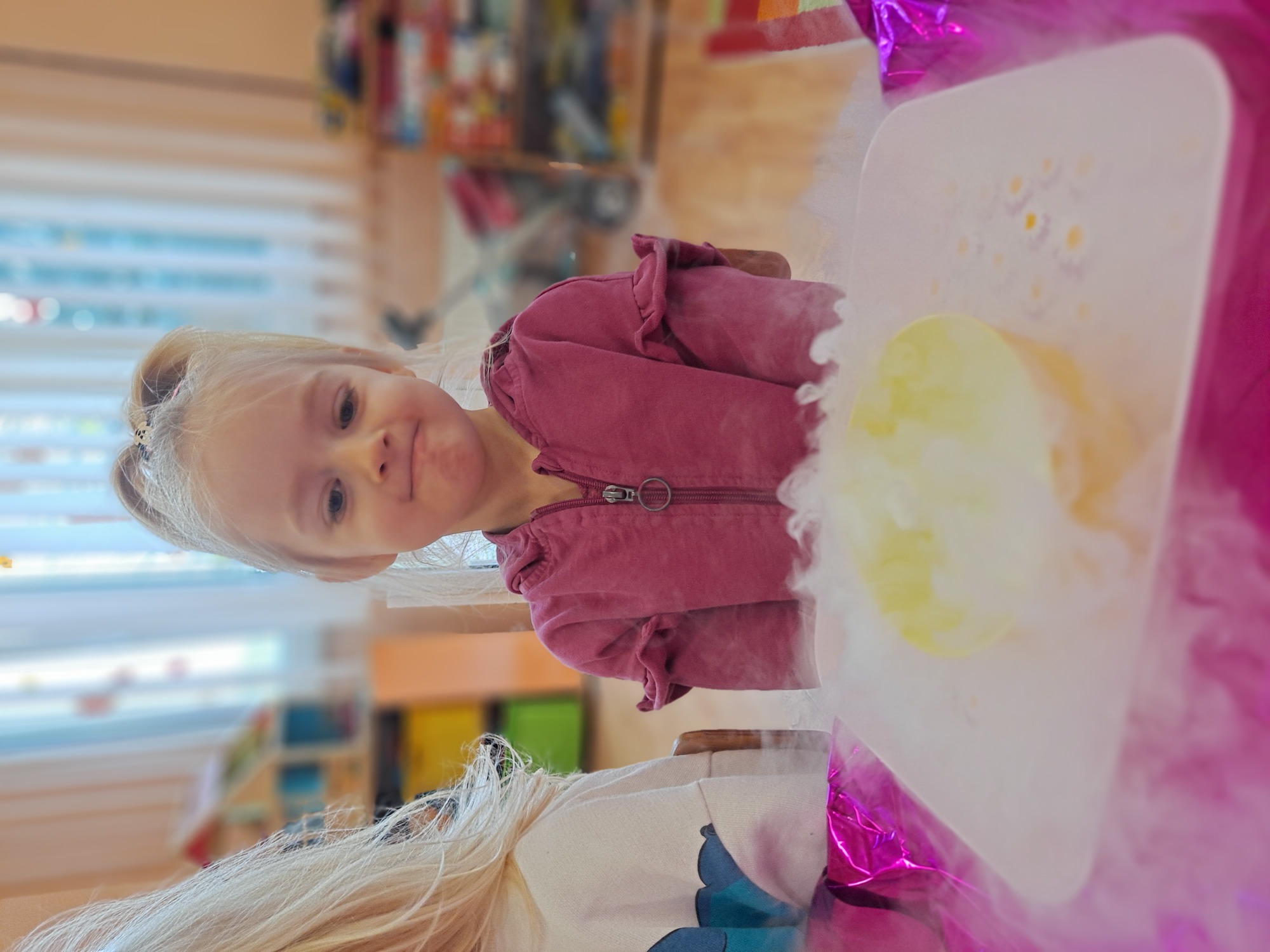 Dzieci miały okazję uczestniczyć w fascynujących doświadczeniach, w tym w zabawach z suchym lodem, które wywołały wiele śmiechu i zachwytu.
