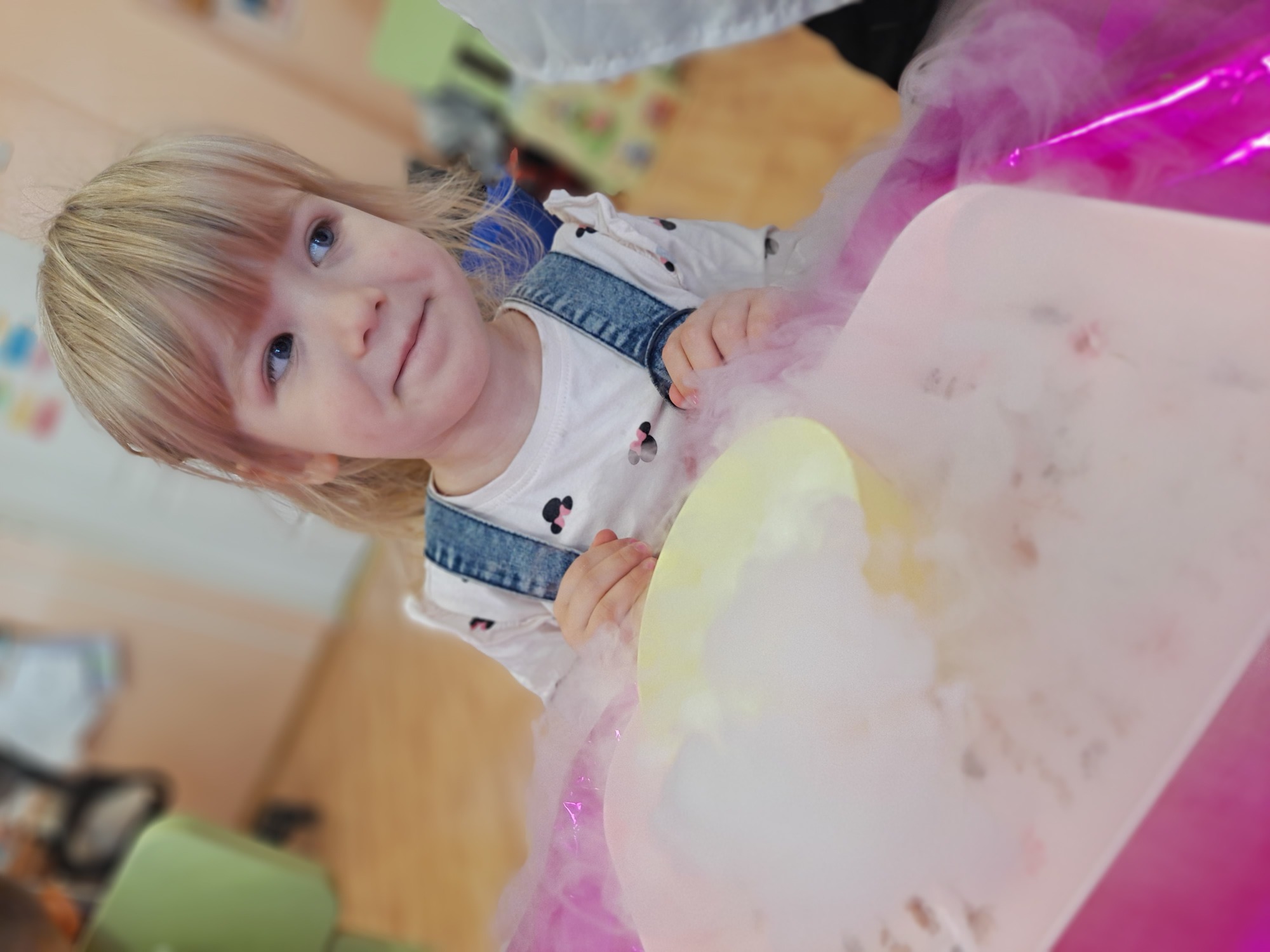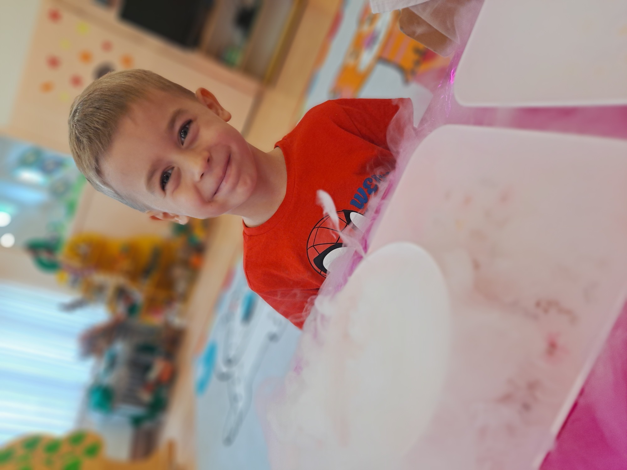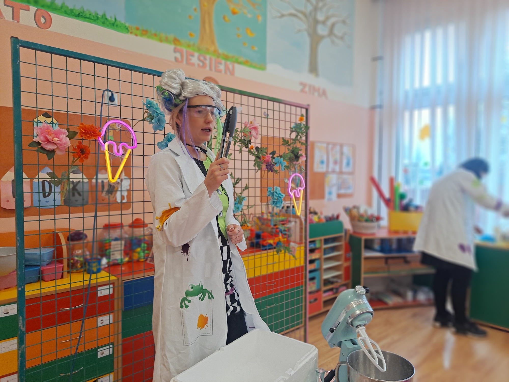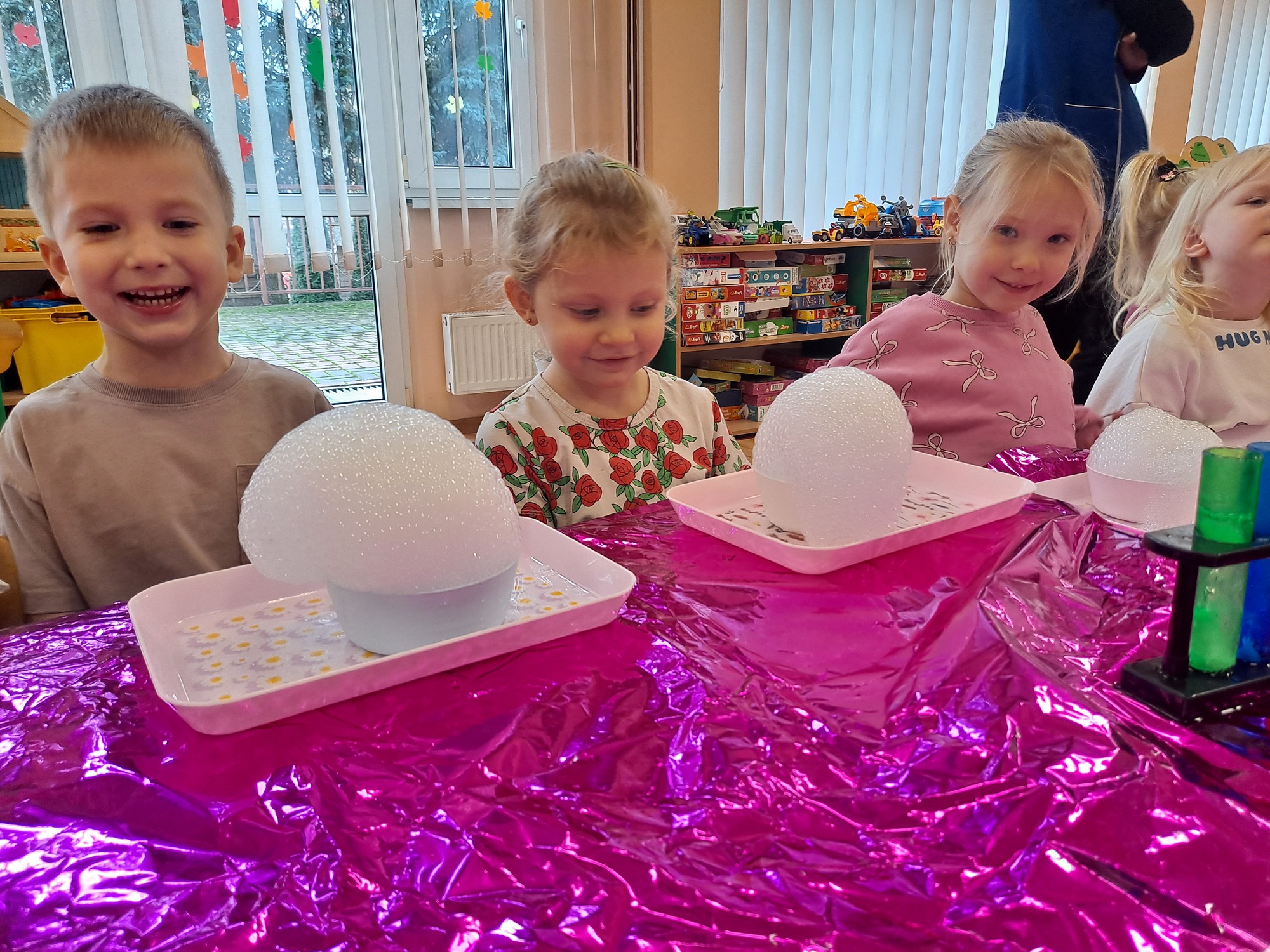 Dzieci miały okazję uczestniczyć w fascynujących doświadczeniach, w tym w zabawach z suchym lodem, które wywołały wiele śmiechu i zachwytu.