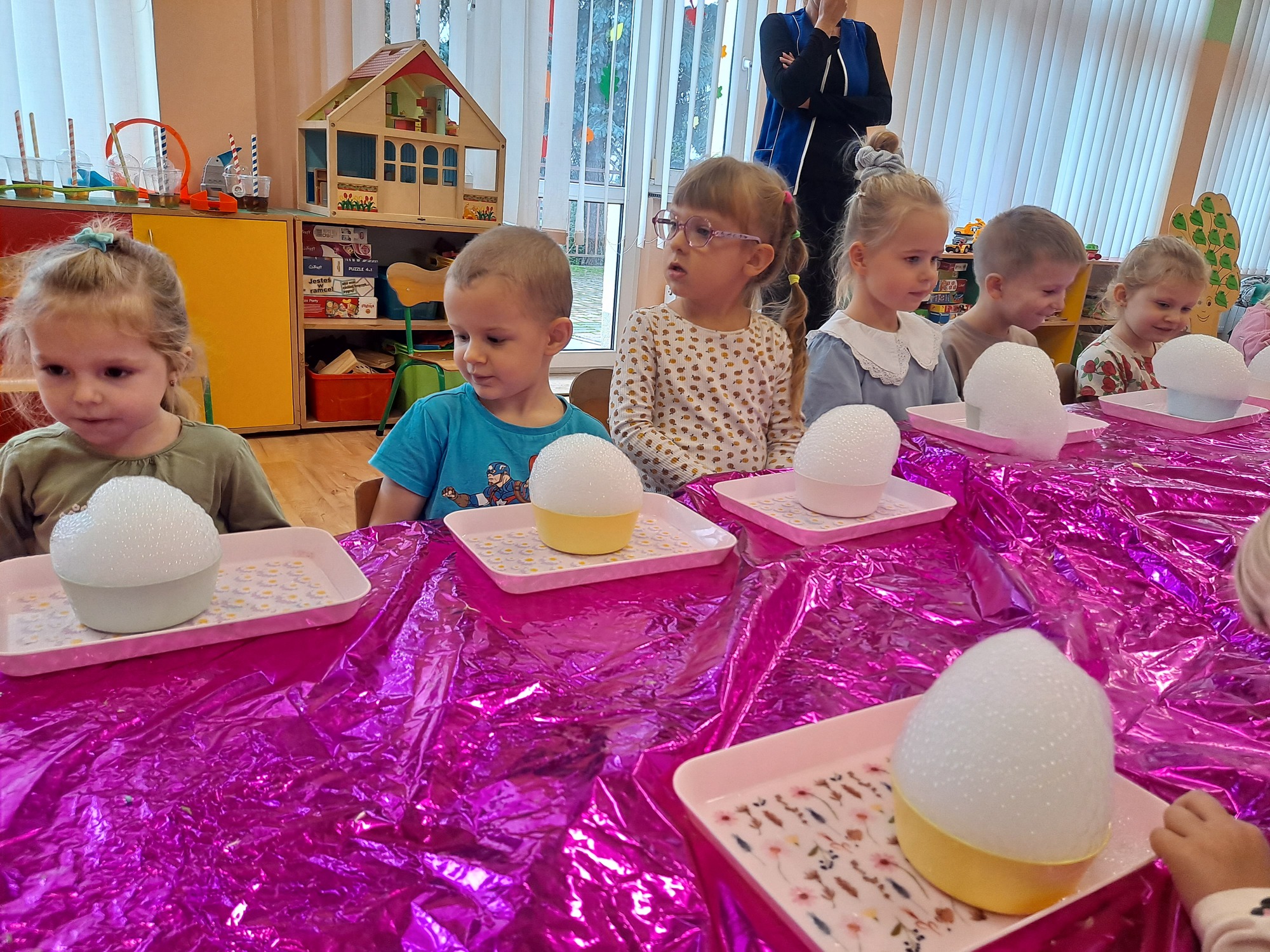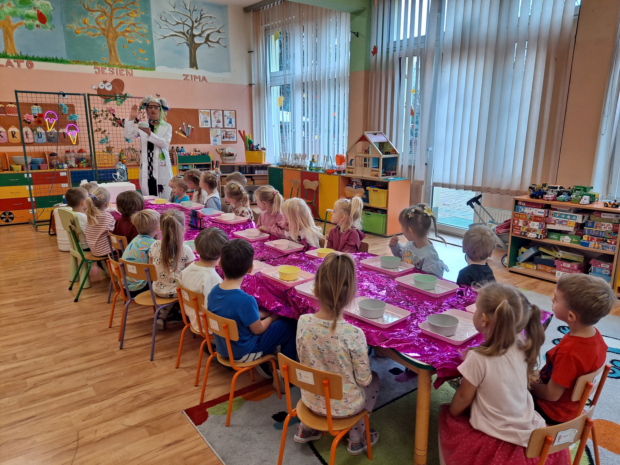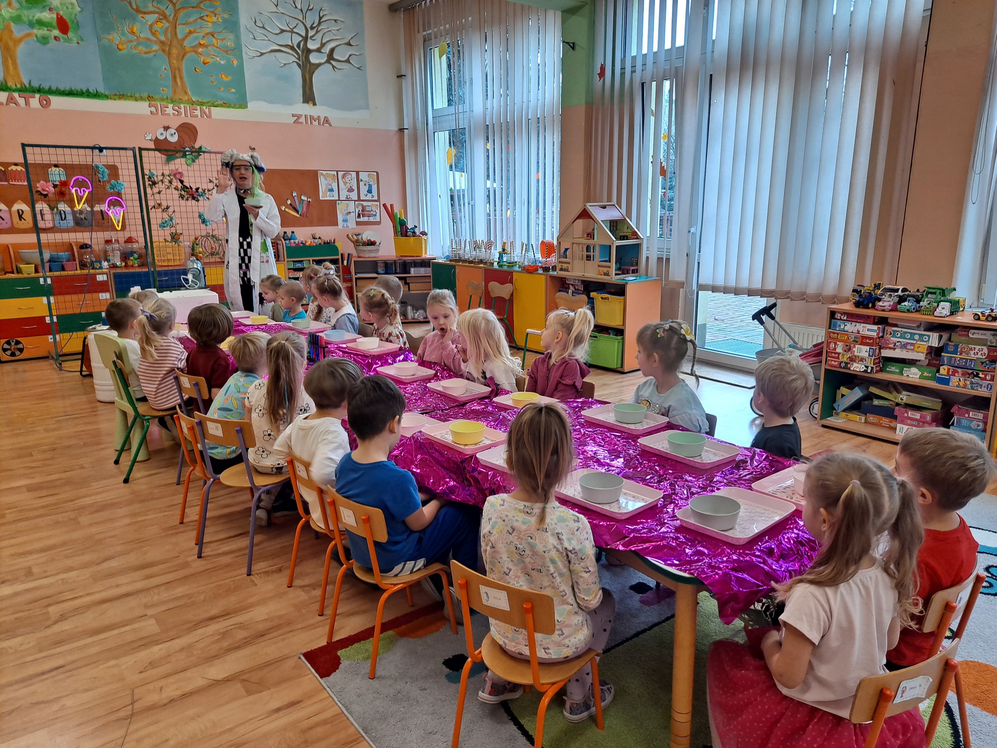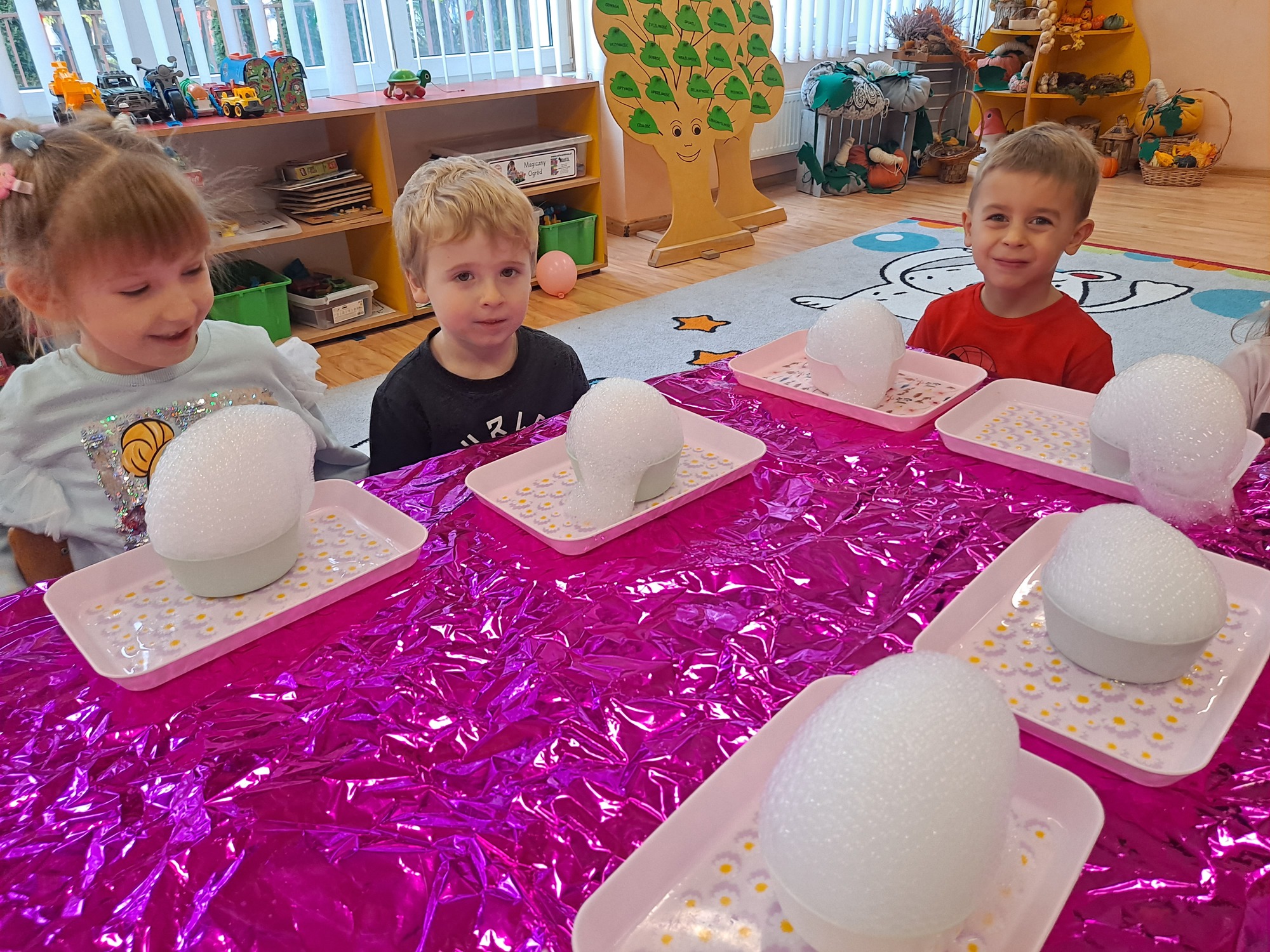 Dzieci miały okazję uczestniczyć w fascynujących doświadczeniach, w tym w zabawach z suchym lodem, które wywołały wiele śmiechu i zachwytu.