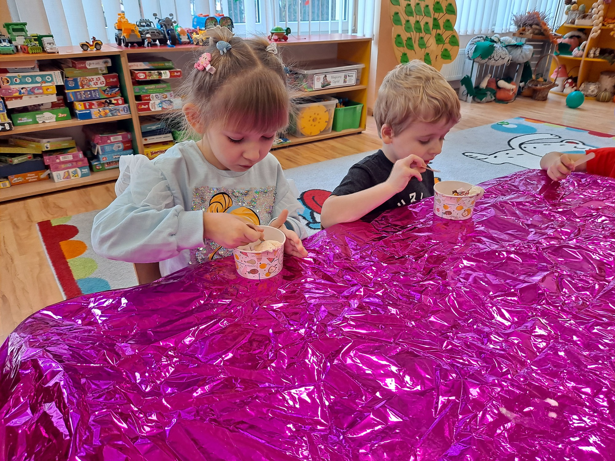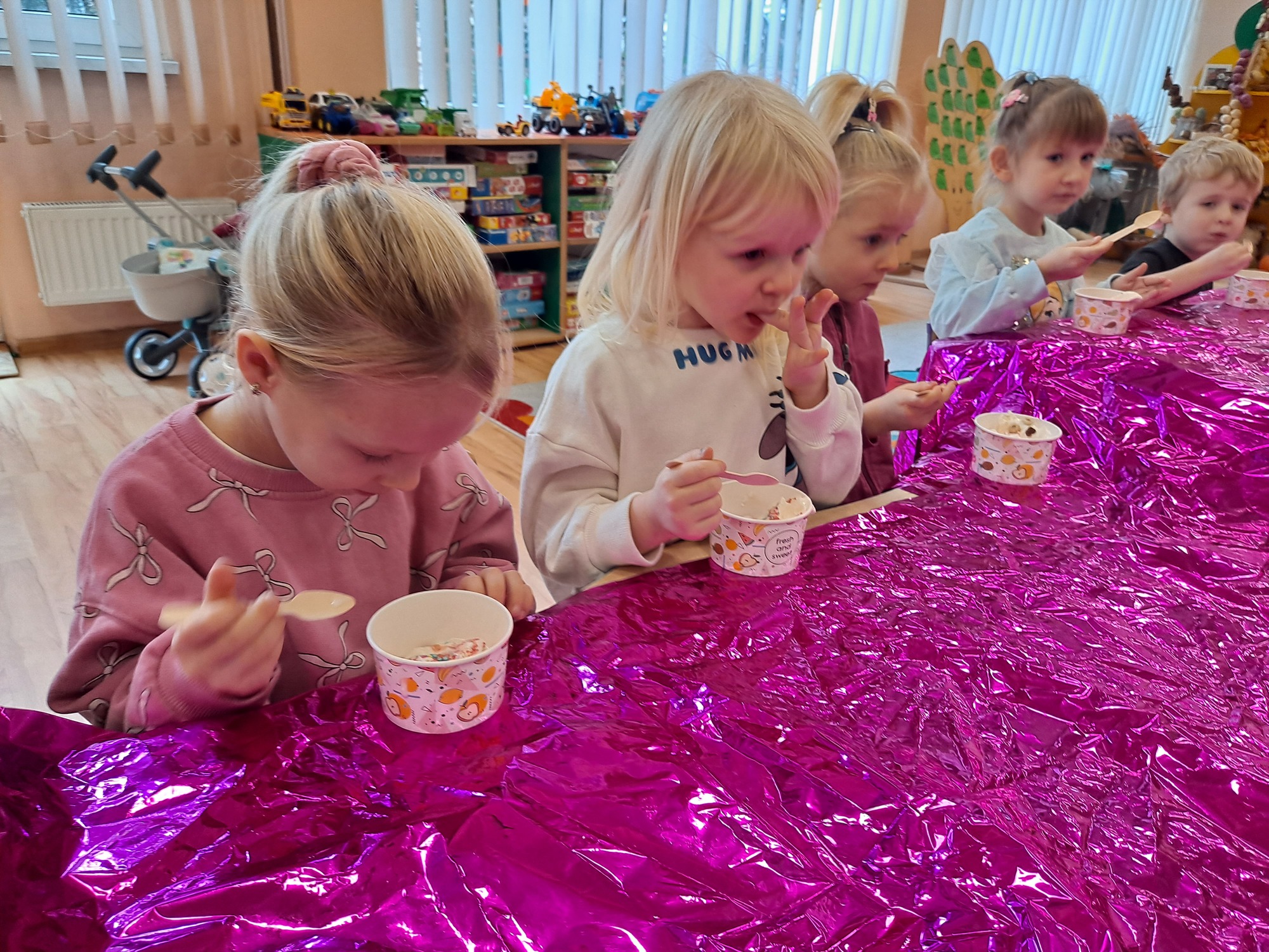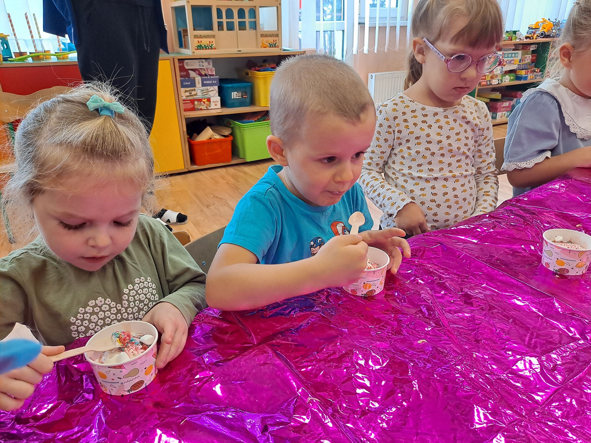 Na zakończenie zajęć przygotowano dla dzieci lody wykonane jedynie z mleka i lodu – prosty eksperyment, który okazał się prawdziwą atrakcją.