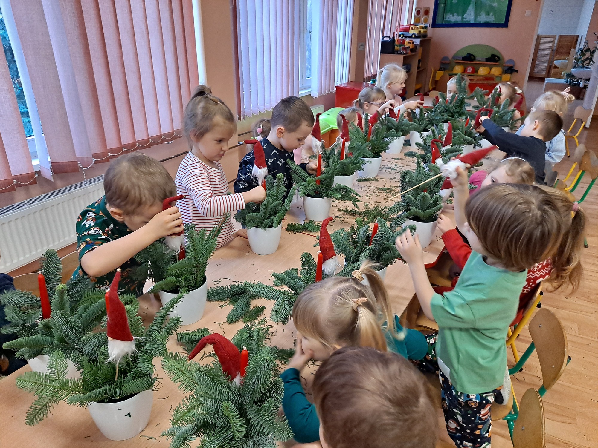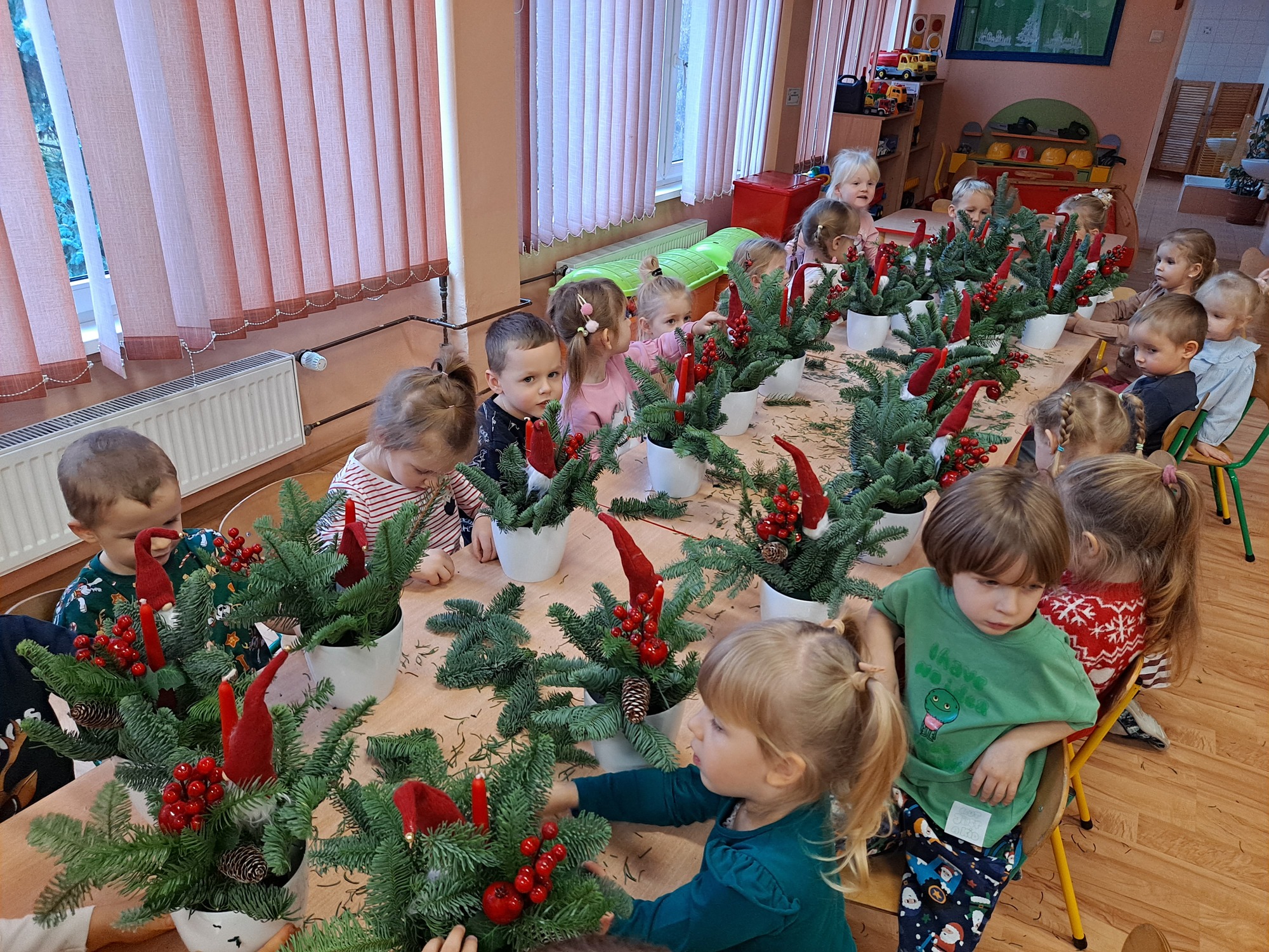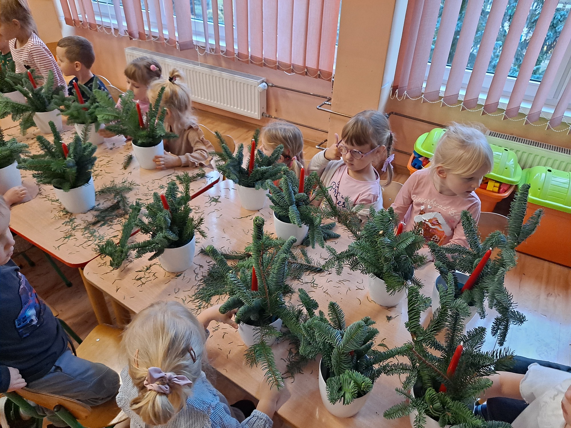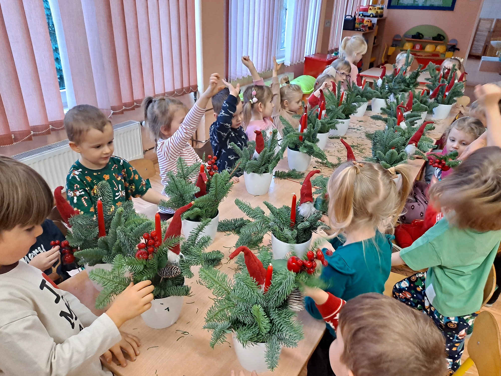 Dzisiaj w naszym przedszkolu odbyły się warsztaty świąteczne dla dzieci, podczas których mali uczestnicy mieli okazję wykonać własnoręcznie świąteczne stroiki.