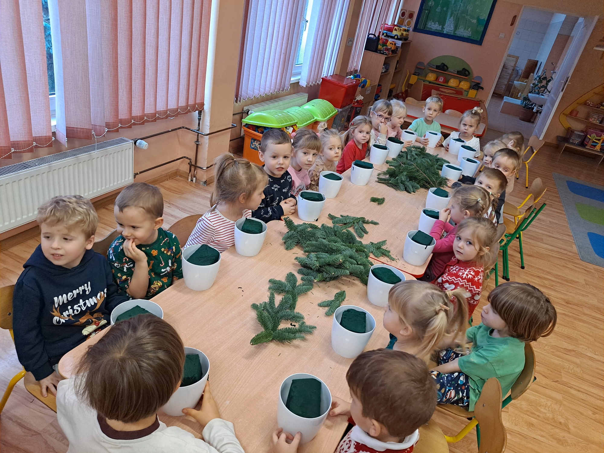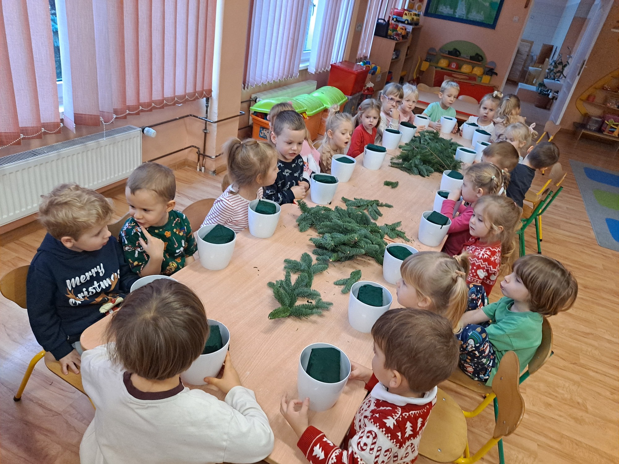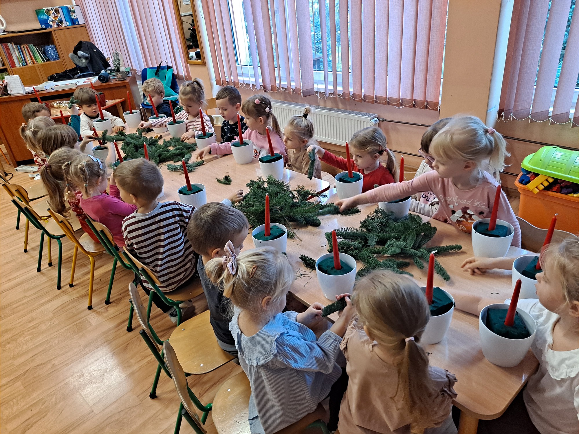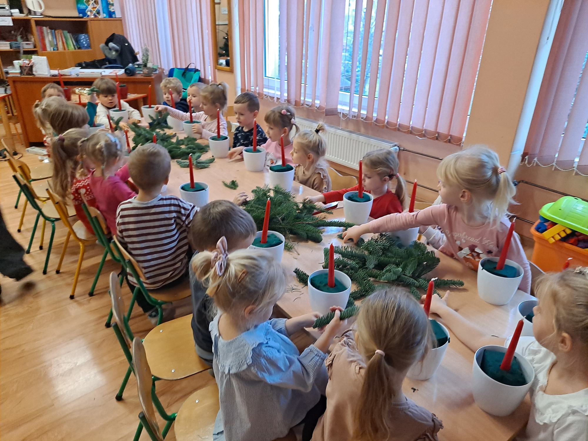 Dzisiaj w naszym przedszkolu odbyły się warsztaty świąteczne dla dzieci, podczas których mali uczestnicy mieli okazję wykonać własnoręcznie świąteczne stroiki.