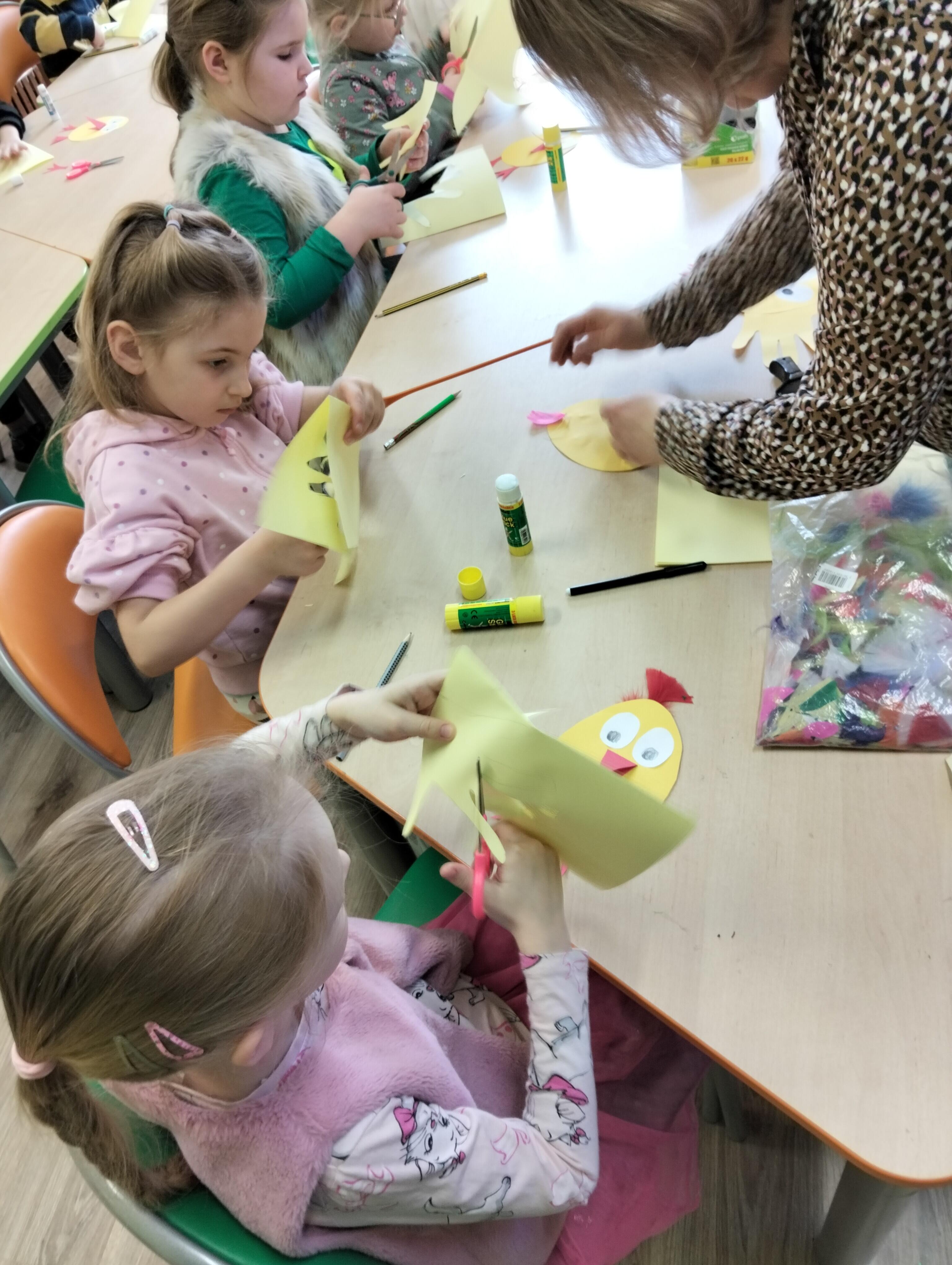 Grupa Biedronek wybrała się do Biblioteki Miejskiej na wielkanocne zajęcia edukacyjne. Spotkanie rozpoczęło się od oglądania prezentacji związanej z tradycjami Świąt Wielkanocnych. Przedszkolaki z zaciekawieniem oglądały prezentowane treści. Następnie dzieci wzięły udział w zajęciach plastycznych, podczas których wykonały kurczaczki wielkanocne. Wizyta w bibliotece była nie tylko okazją do rozwijania zainteresowań czytelniczych, ale też do wspólnej zabawy i twórczej aktywności. Dzieci wróciły do przedszkola pełne wrażeń, uśmiechnięte i z własnoręcznie wykonanymi pracami.