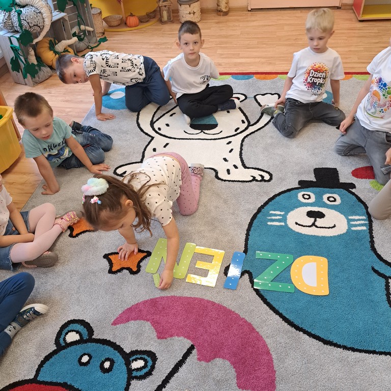 Dzień kropki to święto kreatywności, odwagi, budowania pewności siebie. Stwarzaliśmy okazję do odkrywania talentów, pobudzania wyobraźni i nieszablonowego myślenia. Tego dnia zorganizowane zostały dla dzieci kreatywne, nietuzinkowe zabawy z kropką w roli głównej. Uczyliśmy się jak dodawać innym i sobie wiary we własne możliwości. Podczas zajęć powstały też wyjątkowe i niepowtarzalne kropkowe dzieła sztuki.