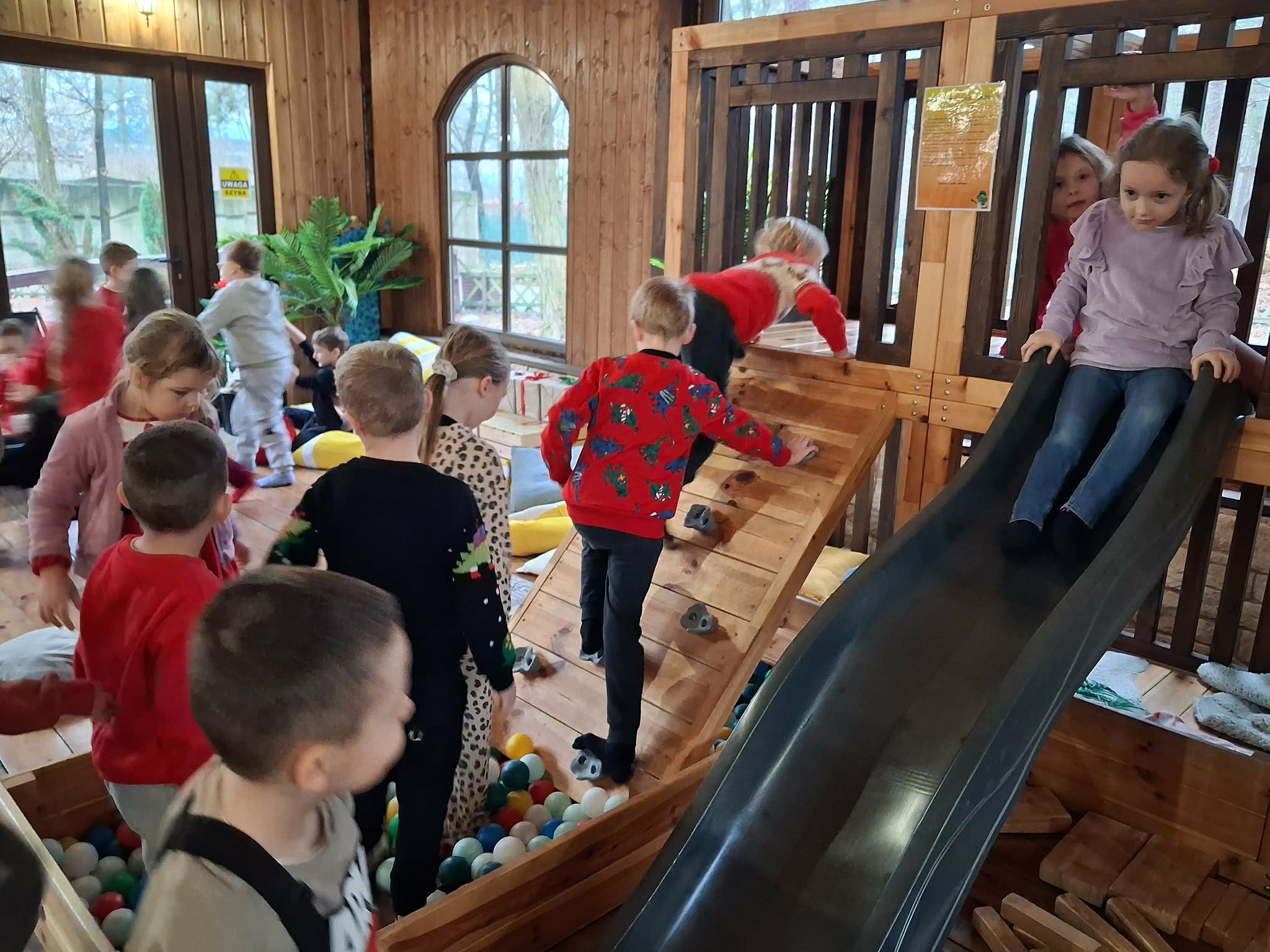 5 grudnia odbyła się wycieczka autokarowa do Solca Kujawskiego do Krainy Świętego Mikołaja. W wycieczce uczestniczyły dwie grupy przedszkolne: „Motylki” oraz „Rumianki”. Dzieci miały okazję zwiedzić Muzeum Ziemi, a następnie w zimowym kinie obejrzały film Kraina Lodu w wersji świątecznej. Jednym z najważniejszych punktów programu było spotkanie ze Świętym Mikołajem, który wręczył dzieciom prezenty. Uczestnicy wycieczki brali również udział w warsztatach plastycznych, podczas których malowały aniołki. Dużo radości sprawiło dzieciom zjeżdżanie na pontonach ze zjeżdżalni oraz zabawa w sali zabaw. Dodatkową atrakcją było zwiedzanie ekspozycji „Polska w miniaturze”, gdzie dzieci mogły zobaczyć wszystkie zamki znajdujące się na terenie Polski. Wycieczka dostarczyła dzieciom wielu niezapomnianych wrażeń i radości.