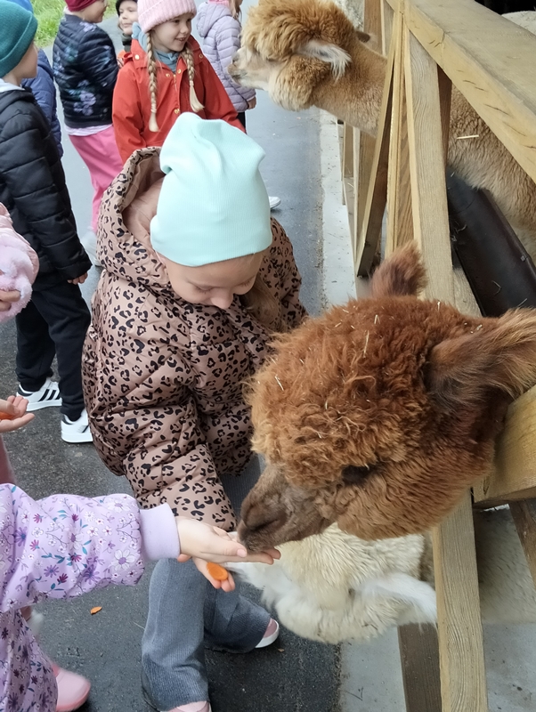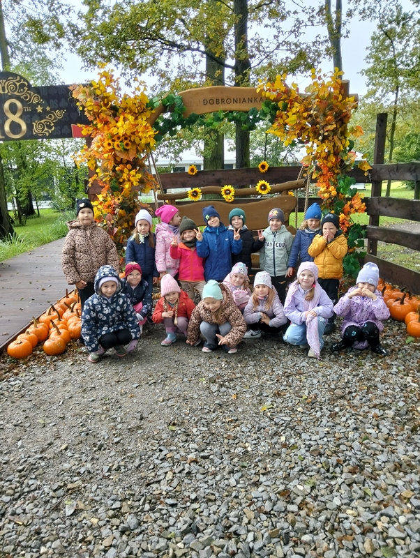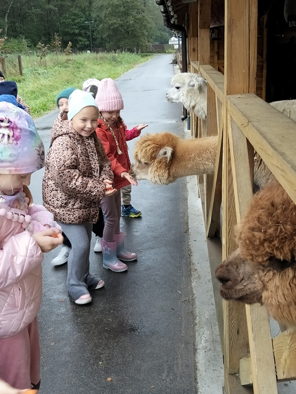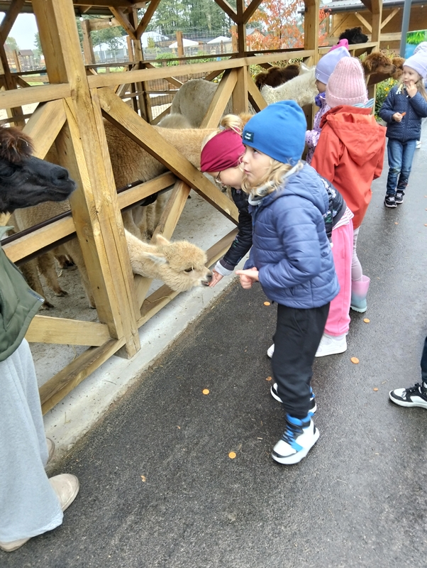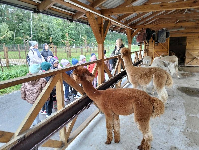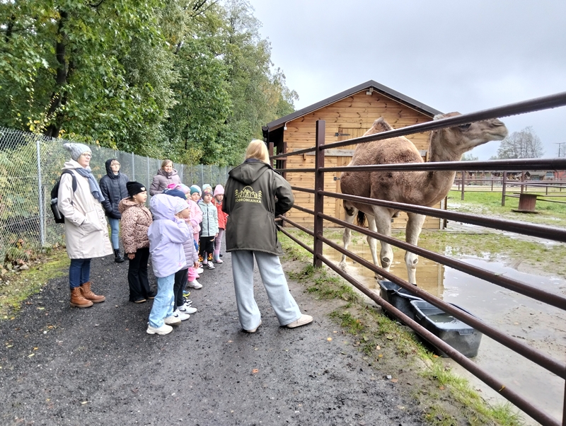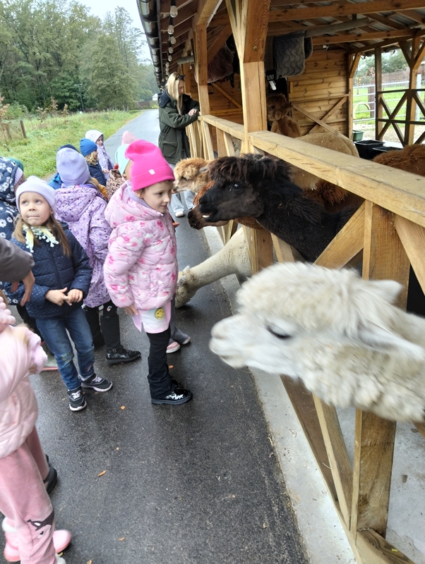 7 października dzieci uczestniczyły w wycieczce do Dobronianki - celem wycieczki było przede wszystkim nawiązanie kontaktu z przyrodą, obserwacja i poznawanie różnych gatunków zwierząt ( takich jak alpaki, kozy, wielbłądy, pawie) oraz kształtowanie świadomości ekologicznej poprzez zabawę i naukę.