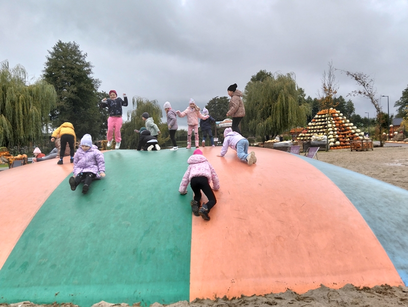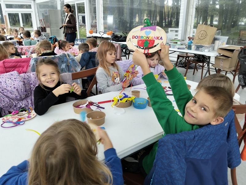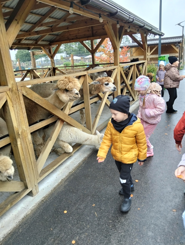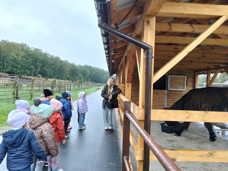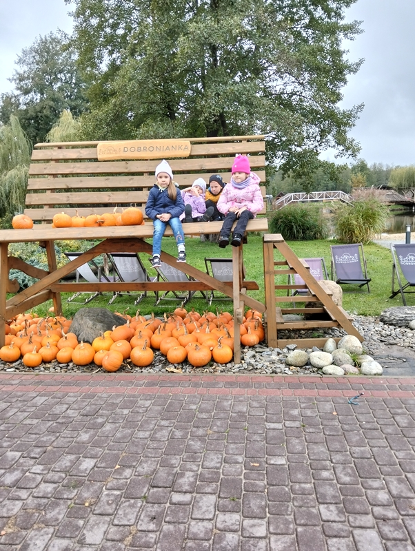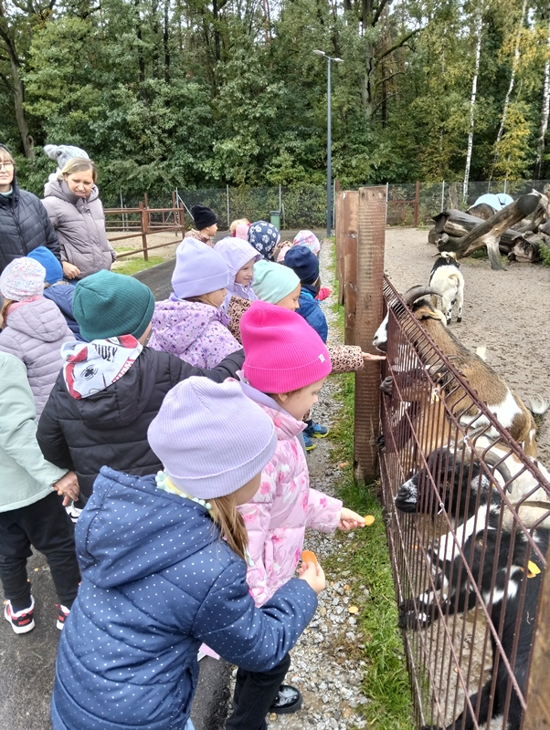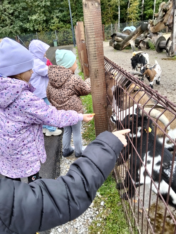 7 października dzieci uczestniczyły w wycieczce do Dobronianki - celem wycieczki było przede wszystkim nawiązanie kontaktu z przyrodą, obserwacja i poznawanie różnych gatunków zwierząt ( takich jak alpaki, kozy, wielbłądy, pawie) oraz kształtowanie świadomości ekologicznej poprzez zabawę i naukę.
