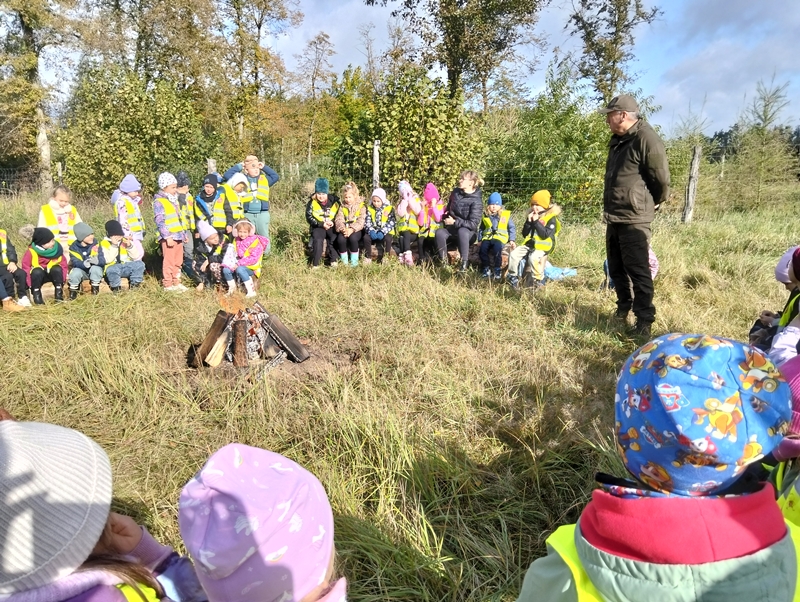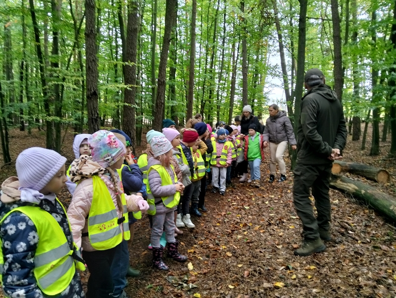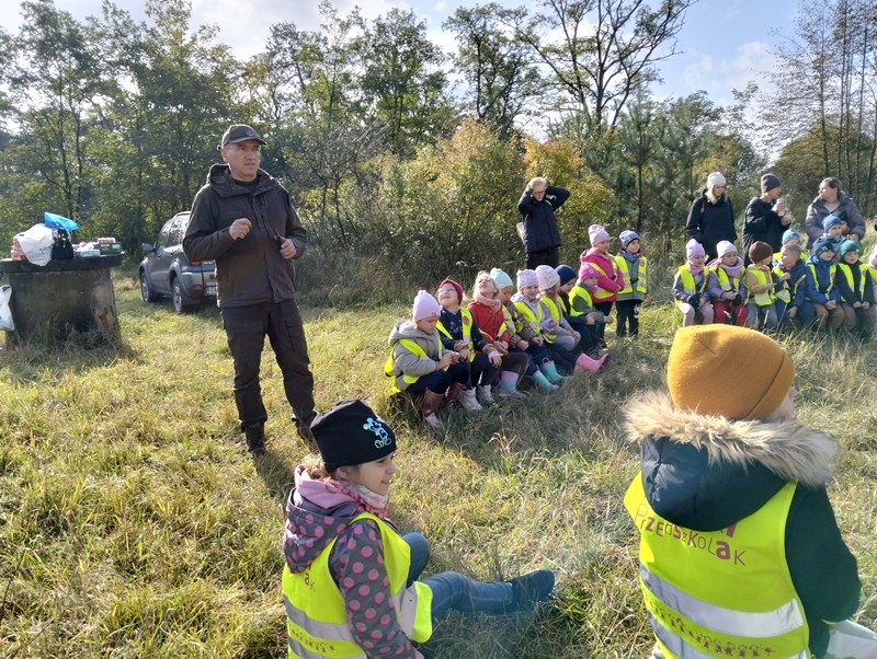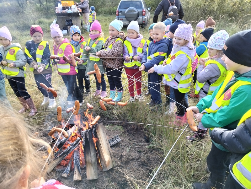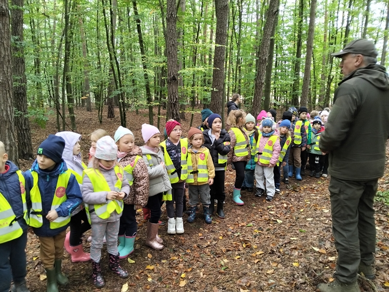 Głównym celem wycieczki do lasu to edukacja przyrodnicza ( poznawanie roślin, zwierząt, warstw lasu), kształtowanie postaw proekologicznych ( szacunek do przyrody, dbałość o czystość lasu) oraz poprawa samopoczucia fizycznego i psychicznego, jak dotlenienie, relaks, redukcja stresu. Pan leśniczy w sposób bardzo przystępny dla dzieci opowiedział o środowisku leśnym i rozpalił ognisko, przy którym upiekliśmy pyszne kiełbaski.
