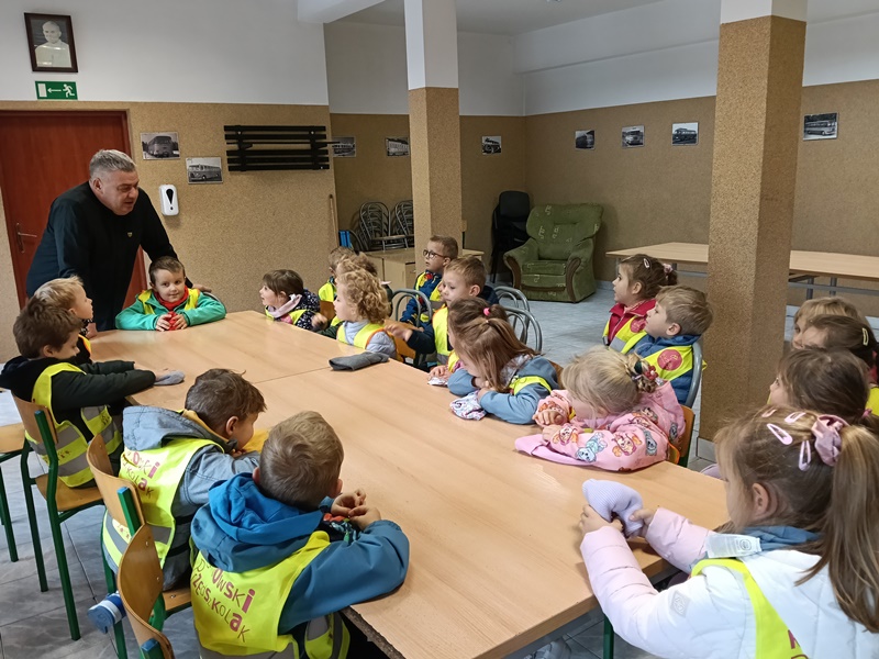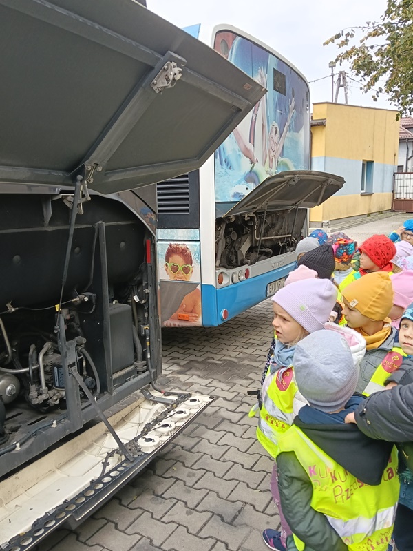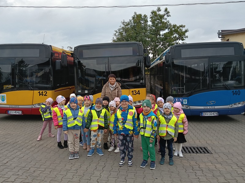 W dniu 1 października dzieci z naszego przedszkola miały wyjątkową okazję odwiedzić Miejskie Zakłady Komunikacji w Kutnie. Była to niezwykle ciekawa i pełna wrażeń wycieczka, podczas której przedszkolaki mogły poznać z bliska, jak funkcjonuje komunikacja miejska w naszym mieście. Na miejscu dzieci zostały serdecznie przyjęte dzięki uprzejmości prezesa pana Jacka Sikory, który umożliwił im zwiedzanie najciekawszych miejsc w zakładzie. Przedszkolaki odwiedziły dyspozytornię, gdzie mogły zobaczyć, jak koordynowany jest ruch autobusów po całym mieście. Następnie dzieci udały się do warsztatu, gdzie serwisowane są pojazdy – ogromne narzędzia, podnośniki i sprzęt zrobiły na nich duże wrażenie. Jednym z największych przeżyć była możliwość wejścia do prawdziwego autobusu i zajęcia miejsca za jego kierownicą. Dzieci z ogromnym entuzjazmem wcielały się w rolę kierowców, a błysk w ich oczach mówił sam za siebie! Na zakończenie wycieczki dzieci wręczyły panu prezesowi podziękowanie za serdeczne przyjęcie i możliwość przeżycia tak ciekawej przygody. W drodze powrotnej dzieci miały okazję jeszcze raz przejechać się autobusem, którym bezpiecznie wróciły do przedszkola. To był dzień pełen nowych doświadczeń i radości – przedszkolaki długo jeszcze będą wspominać tę wyjątkową wycieczkę!