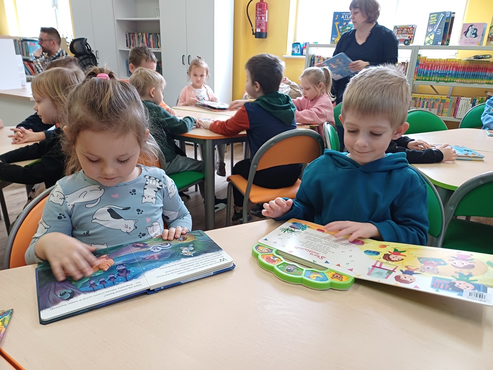 W poniedziałek dzieci uczestniczyły w zajęciach w Miejskiej i Powiatowej Bibliotece w Kutnie. Podczas wizyty przedszkolaki poznały to wyjątkowe miejsce, dowiedziały się, jak należy się w nich zachowywać oraz jakie zasady obowiązują czytelników. Dzieci z zainteresowaniem odkrywały, czym jest biblioteka i co można w niej robić. Spotkanie to było początkiem naszych cyklicznych wizyt w bibliotece.