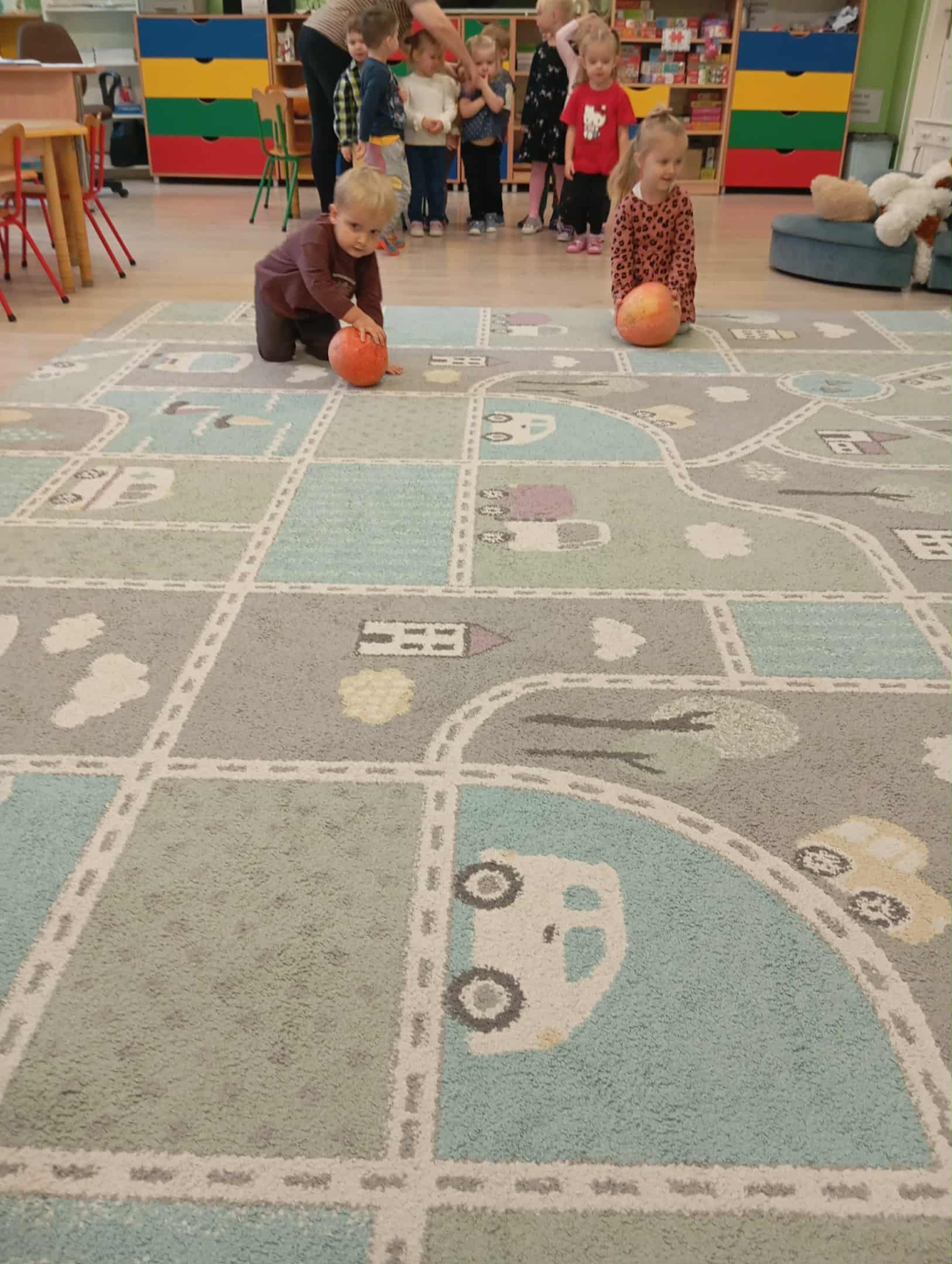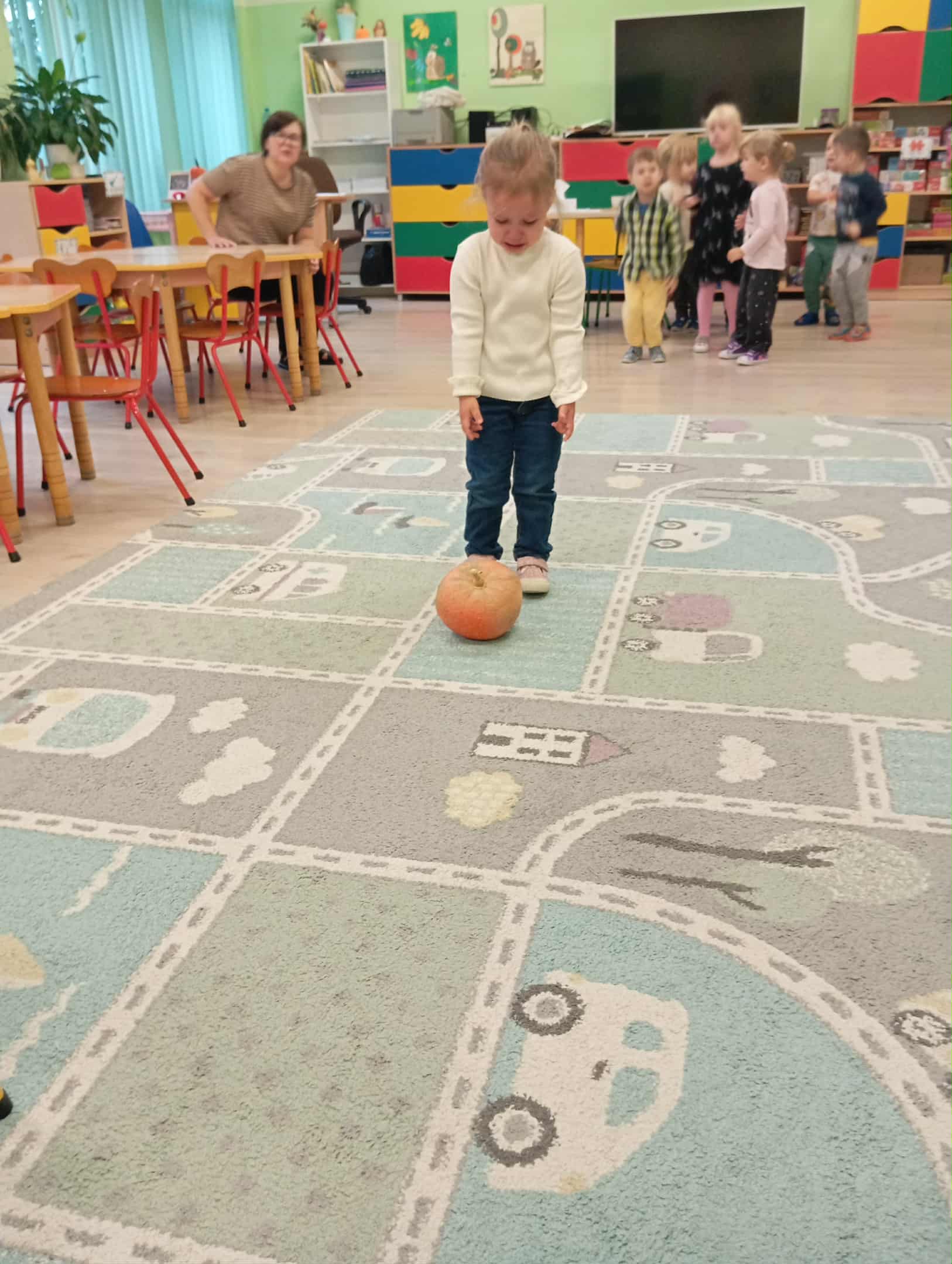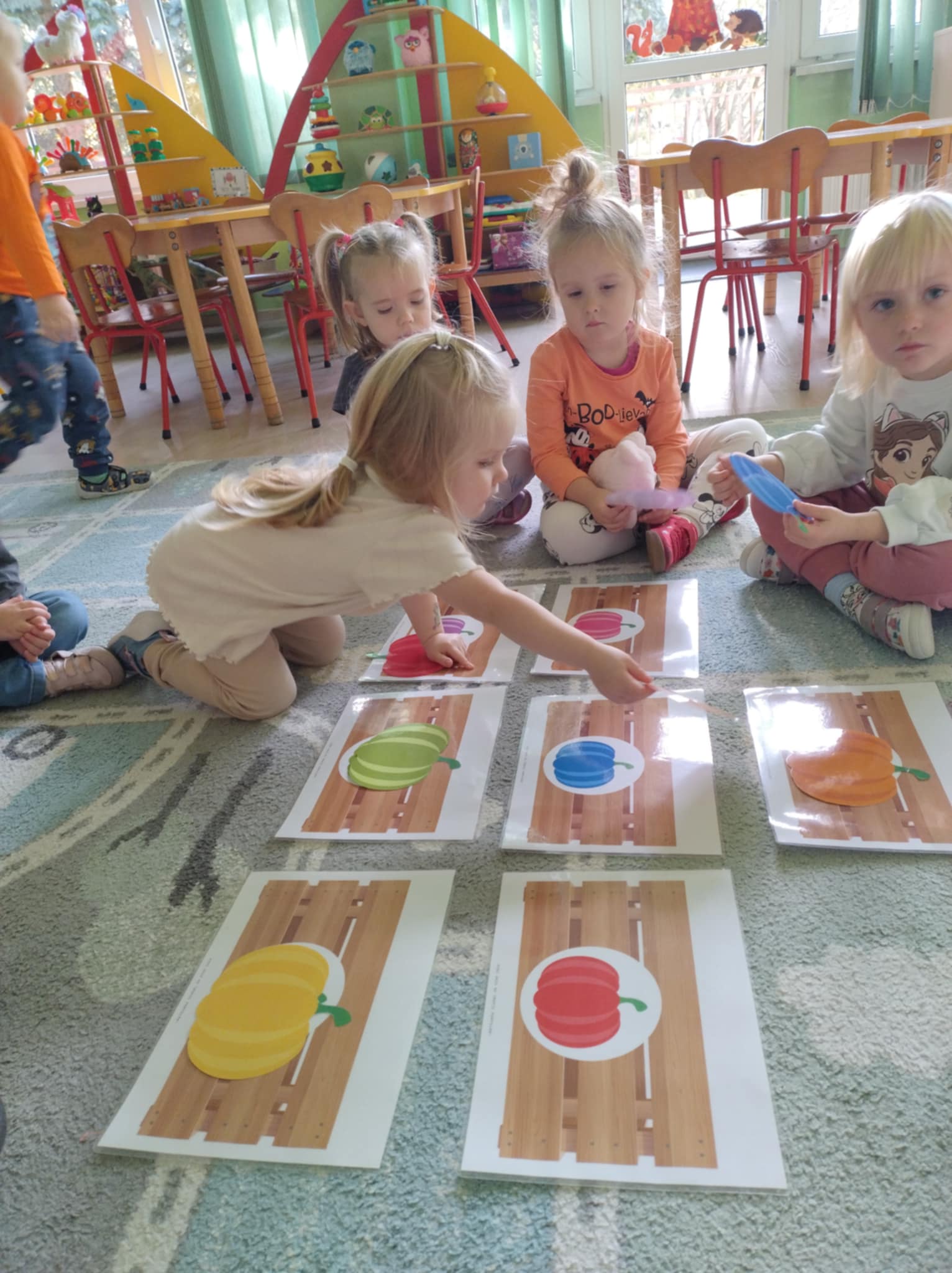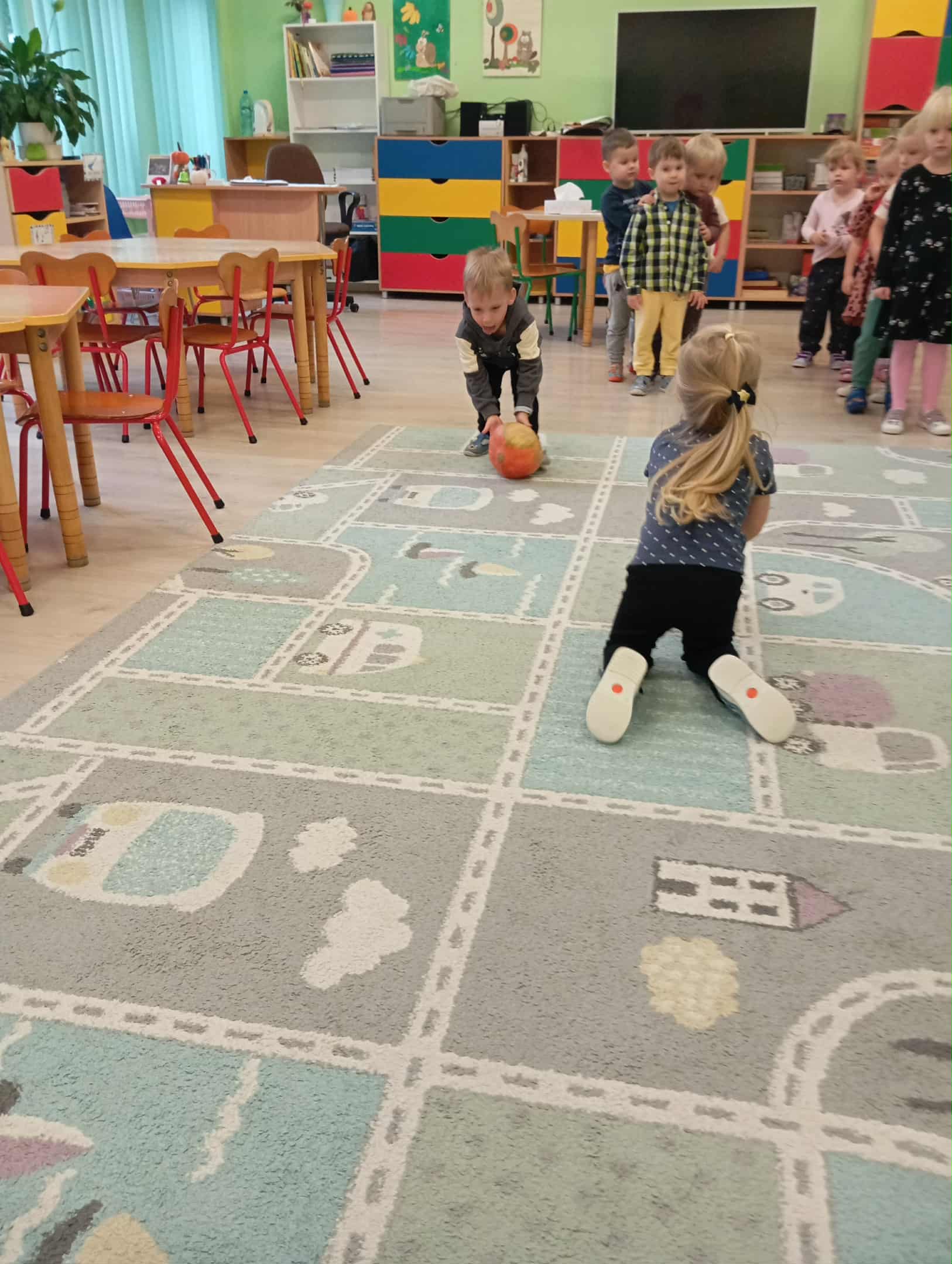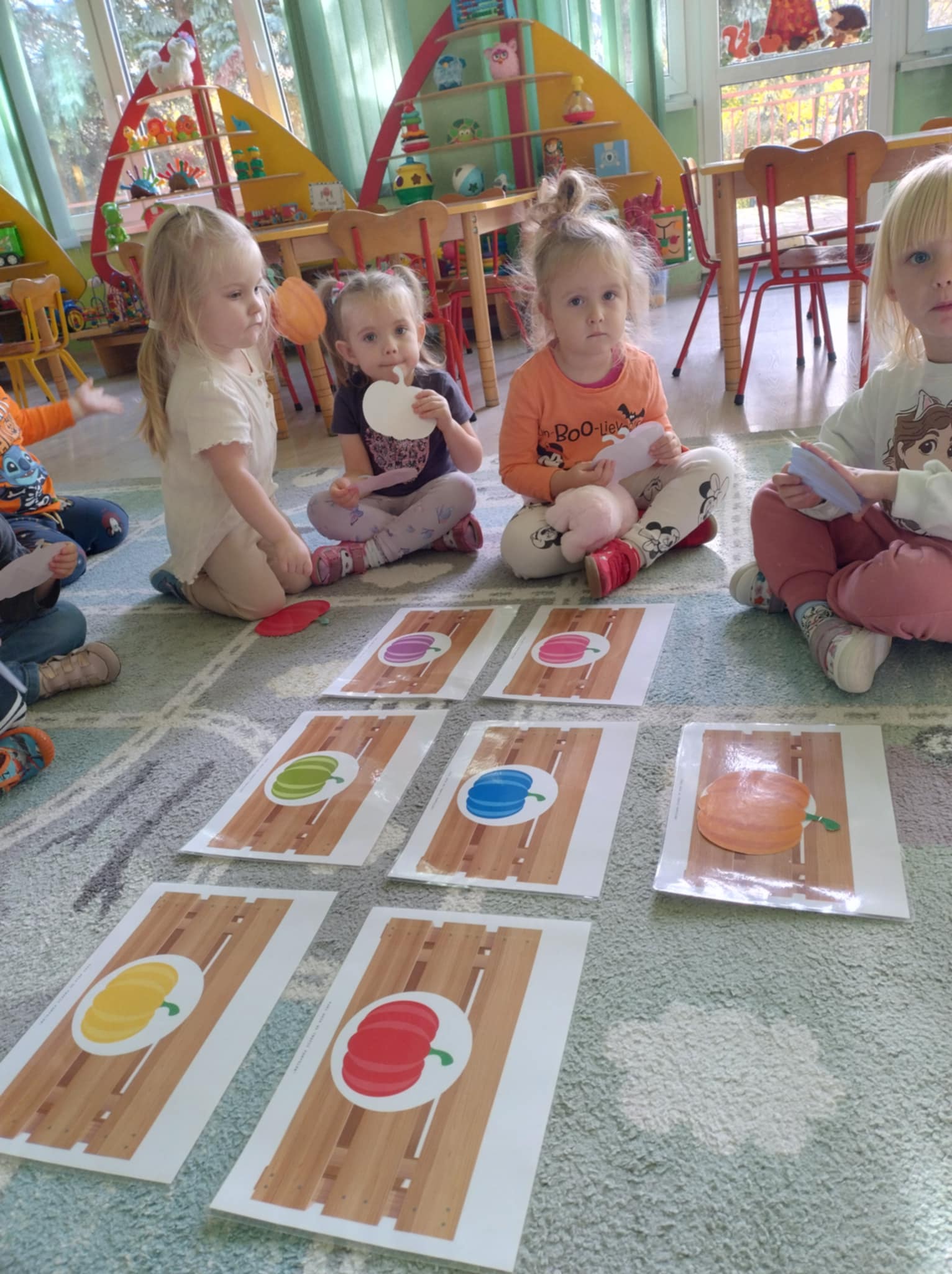 W naszym przedszkolu odbył się radosny „Dzień Dyni”, który wprowadził dzieci w jesienny nastrój pełen pomarańczowych barw i wesołej zabawy. Celem zajęć było rozwijanie spostrzegawczości, utrwalanie nazw kolorów oraz doskonalenie sprawności ruchowej poprzez zabawy tematyczne związane z dynią. Na początku dnia dzieci z zainteresowaniem obejrzały różne rodzaje dyń – małe, duże, gładkie i chropowate. Wspólnie określały ich kolory i kształty, a także porównywały zapach i ciężar. Przedszkolaki dowiedziały się, że dynia to nie tylko ozdoba jesieni, ale także zdrowe warzywo, z którego można przygotować pyszne potrawy. Podczas zabawy dydaktycznej „Dynia w kolorach” dzieci rozpoznawały i nazywały kolory, dopasowując papierowe dynie do odpowiednich barw – pomarańczowej, żółtej, zielonej czy niebieskiej. Zabawa wprowadziła dużo śmiechu i pozytywnej rywalizacji. Następnie odbyły się zabawy ruchowe: dzieci toczyły dynie po podłodze, pokonywały tor przeszkód z „dynią” w rękach, a także brały udział w zabawie „Tańczące dynie”, poruszając się do rytmu wesołej muzyki. W ten sposób ćwiczyły równowagę, koordynację ruchową i współpracę w grupie. Nie zabrakło także ćwiczeń spostrzegawczości – w zabawie „Znajdź dynię” dzieci wyszukiwały ukryte dynie lub różnice między ilustracjami przedstawiającymi dynie o odmiennych minach i kształtach. Na zakończenie dnia przedszkolaki wykonały własne prace plastyczne „Wesoła dynia”, tworząc pomarańczowe dynie malując farbami. Powstała piękna wystawa, która ozdobiła salę i przypominała o wspólnie spędzonym dniu pełnym zabawy i nauki.