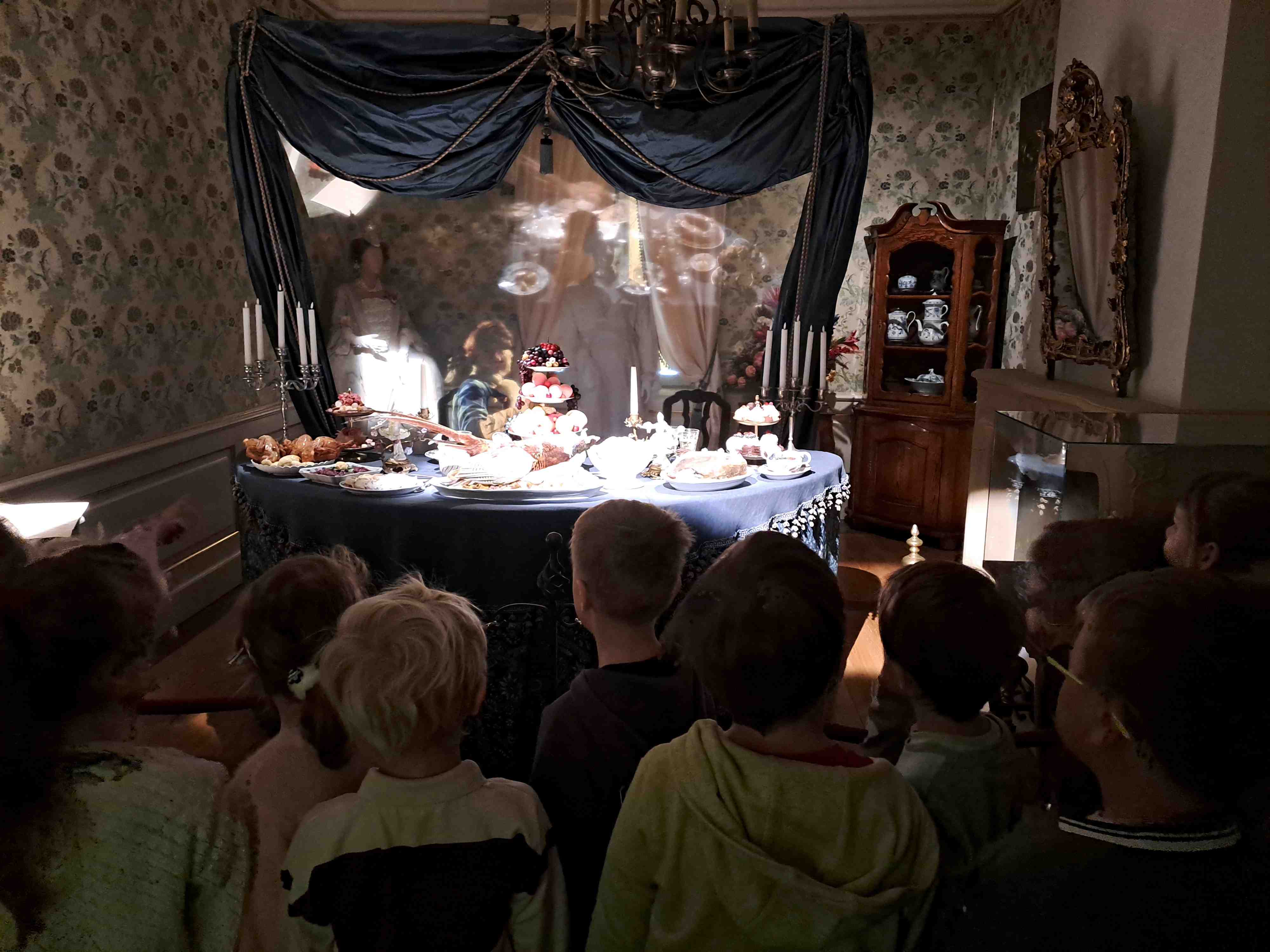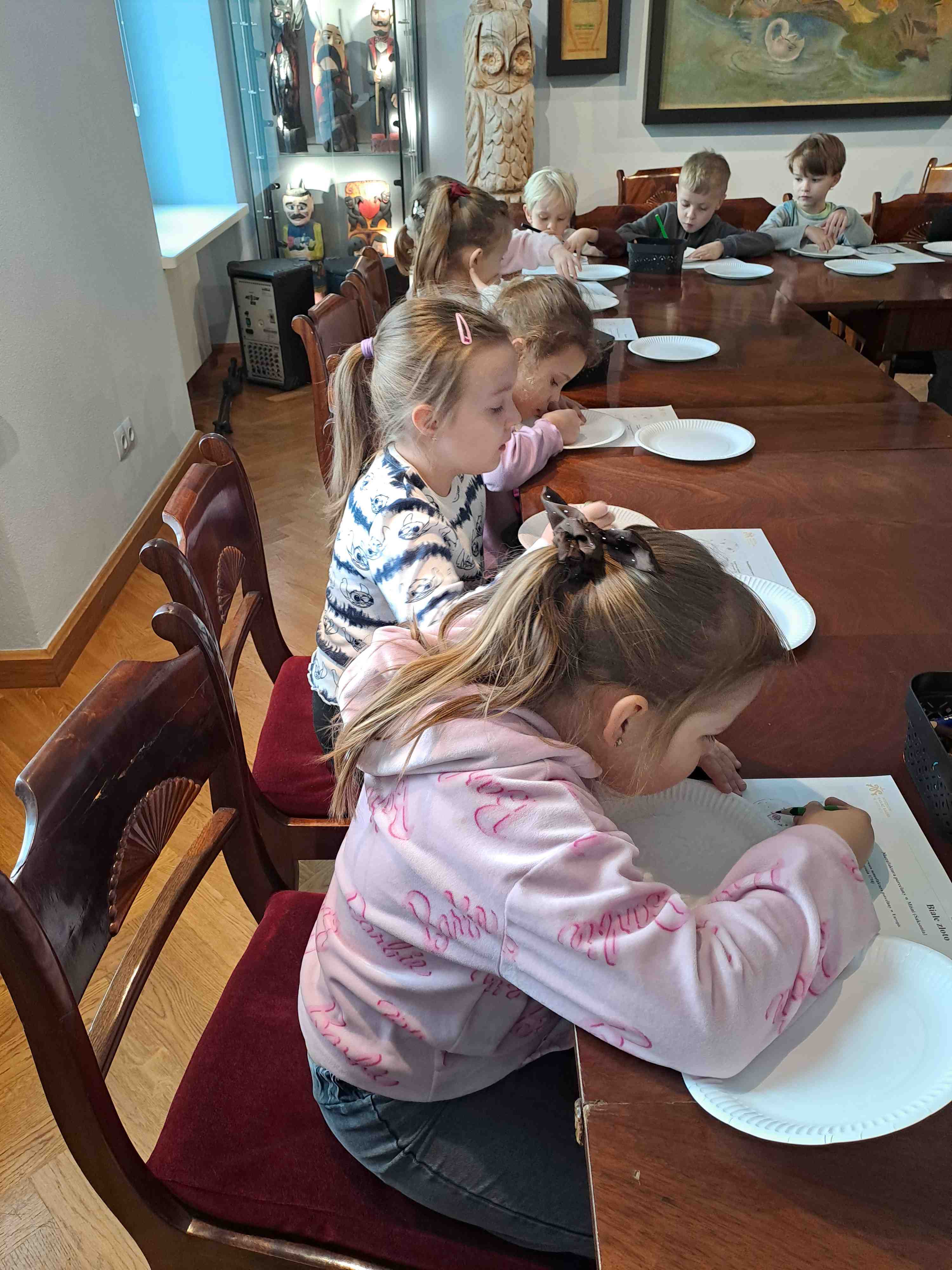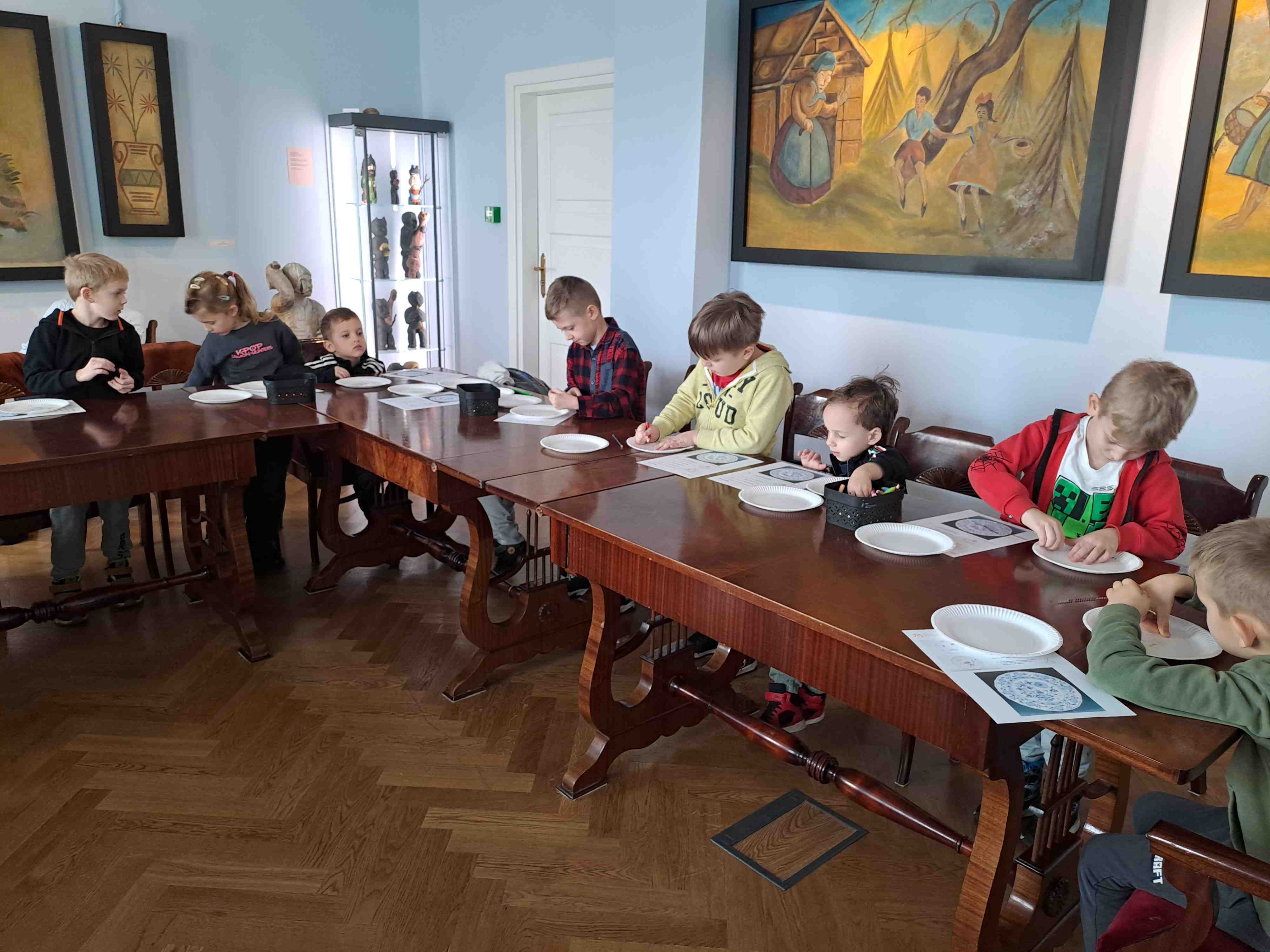 W dniu dzisiejszym "Motylki" uczestniczyły w zajęciach tematycznych pod hasłem "Królewski obiad" w Muzeum Regionalnym w Kutnie. Poznały zwyczaje kulinarne panujące za panowania króla Augusta III Sasa i królewskie zamiłowanie do gorącej czekolady. Podziwiały zastawę stołu oraz zbiory porcelany zgromadzone w muzeum. Następnie wysłuchały również krótkiej opowieści na temat organizowanych na dworach królewskich wystawnych przyjęć i uczt. W drugiej części zajęć dzieci projektowały wzory, które mogłyby znaleźć się na zastawie z dawnych lat. Doskonaliły także umiejętność nakrywania do stołu. Zajęcia bardzo podobały się "Motylkom" i z niecierpliwością czekają już na kolejne.