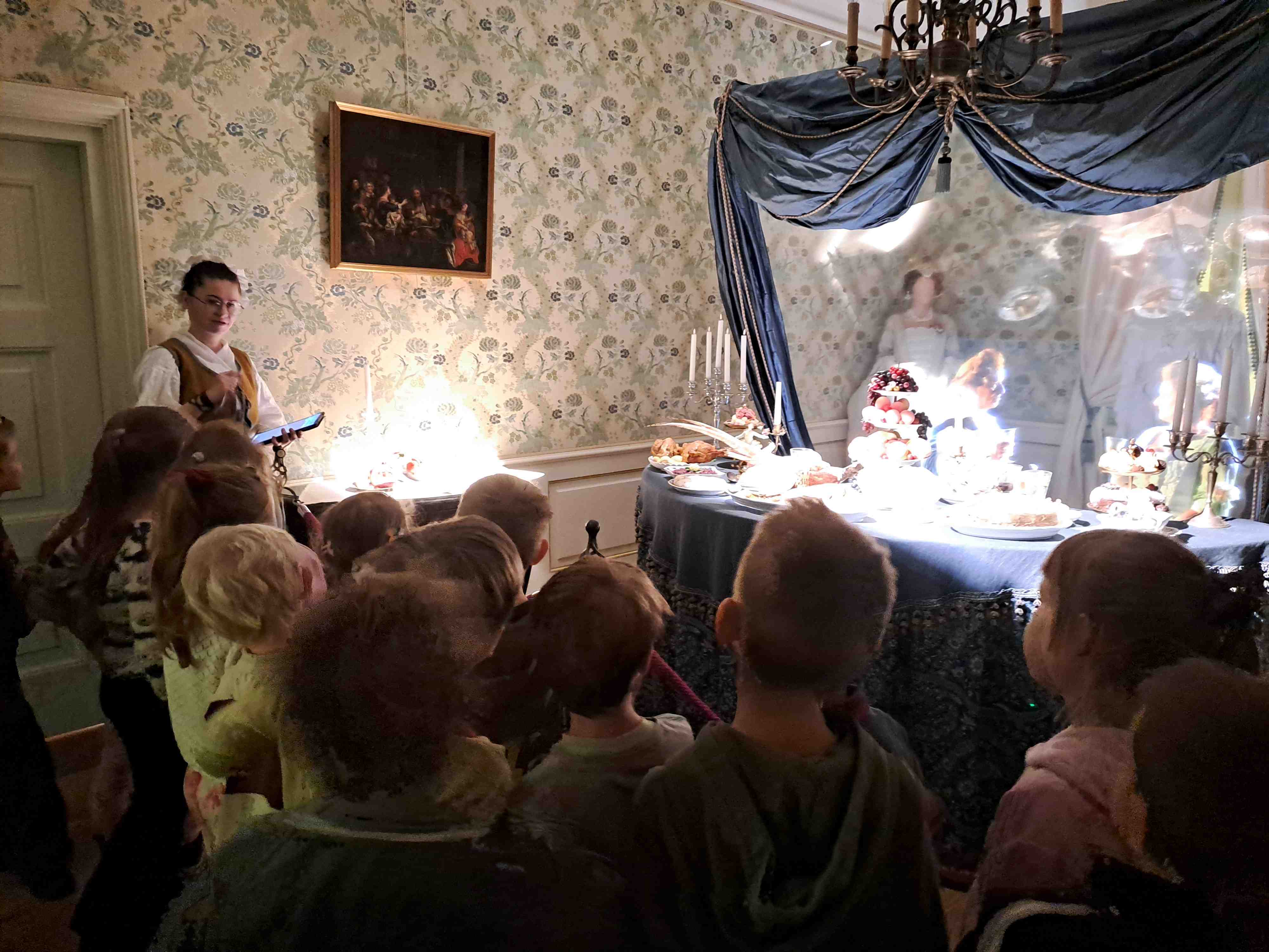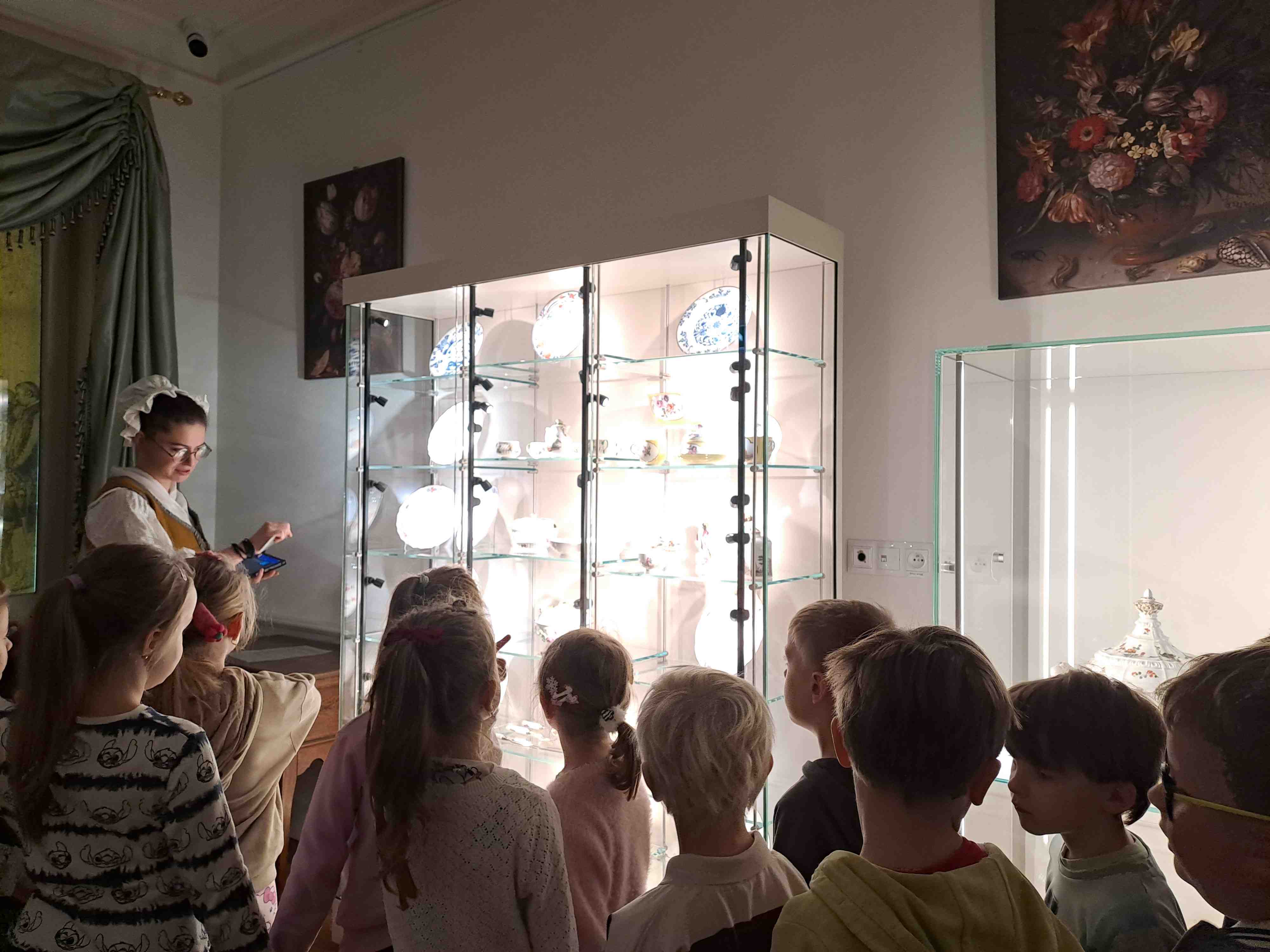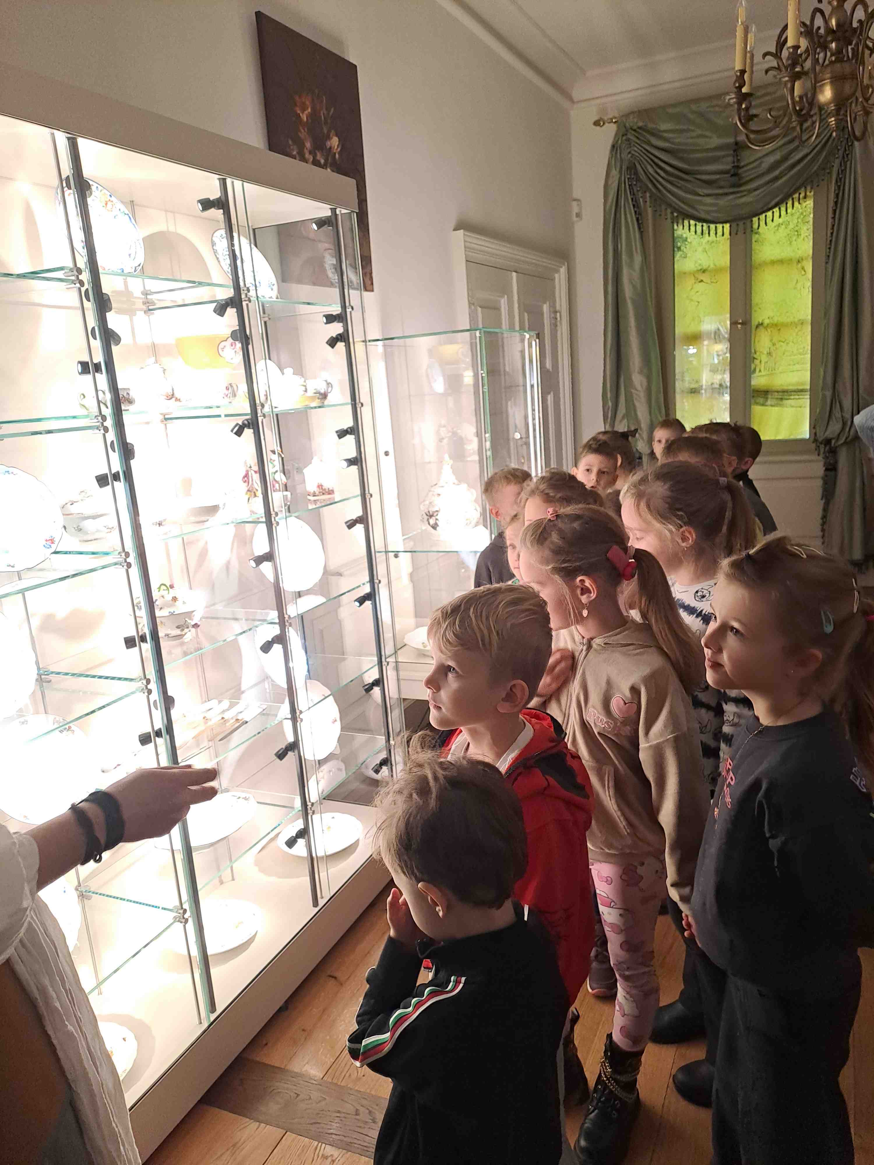 W dniu dzisiejszym "Motylki" uczestniczyły w zajęciach tematycznych pod hasłem "Królewski obiad" w Muzeum Regionalnym w Kutnie. Poznały zwyczaje kulinarne panujące za panowania króla Augusta III Sasa i królewskie zamiłowanie do gorącej czekolady. Podziwiały zastawę stołu oraz zbiory porcelany zgromadzone w muzeum. Następnie wysłuchały również krótkiej opowieści na temat organizowanych na dworach królewskich wystawnych przyjęć i uczt. W drugiej części zajęć dzieci projektowały wzory, które mogłyby znaleźć się na zastawie z dawnych lat. Doskonaliły także umiejętność nakrywania do stołu. Zajęcia bardzo podobały się "Motylkom" i z niecierpliwością czekają już na kolejne.